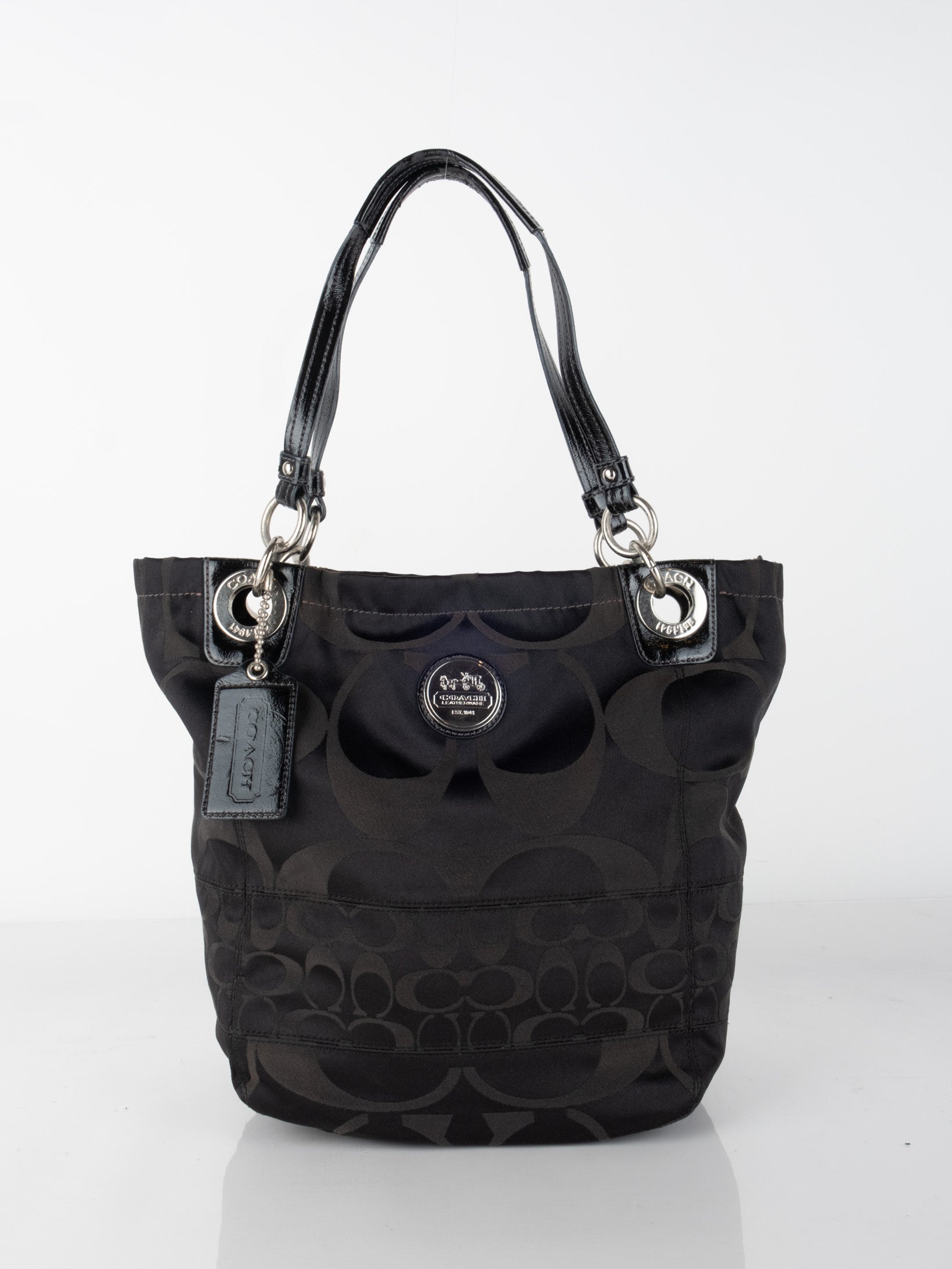 Burberry Vintage Check Canvas Tote with Black Leather Trim