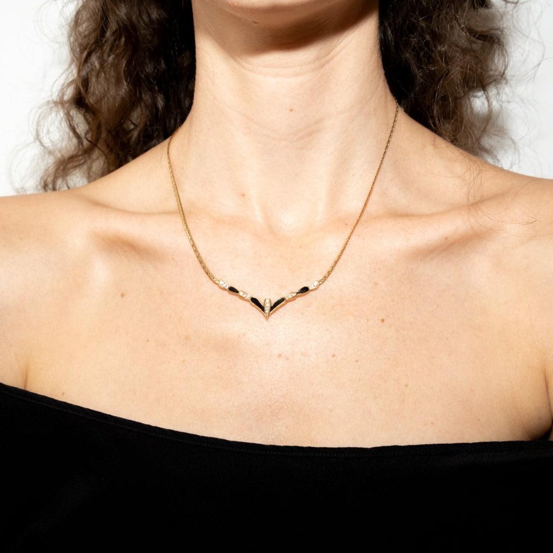 Vendor:Vintage Statement Pearl & Crystal Necklace – Art Deco Design