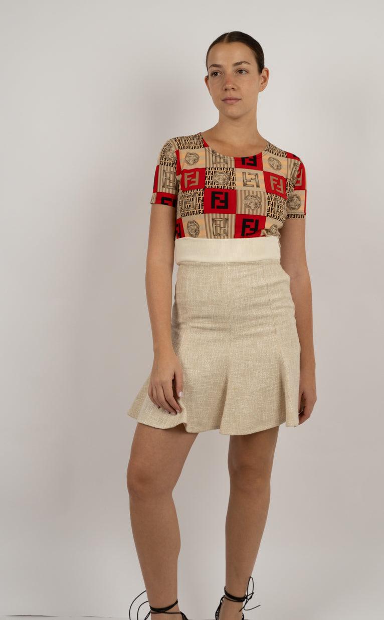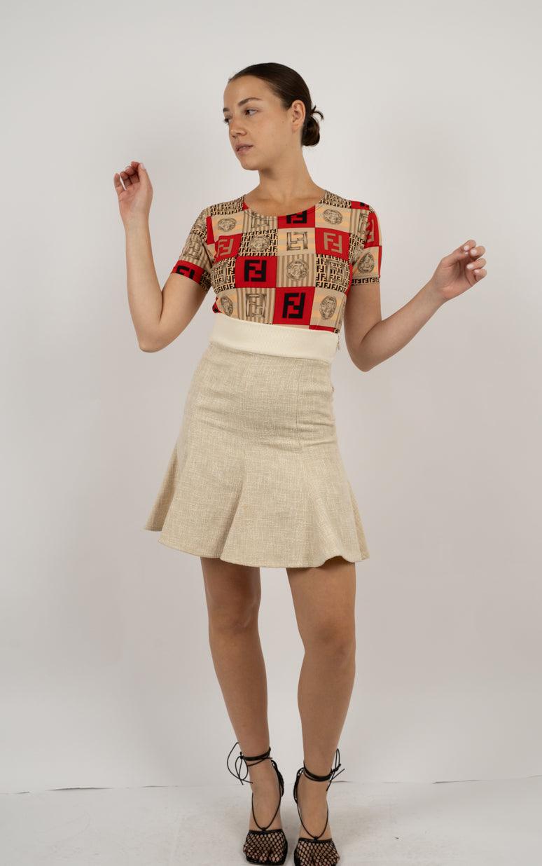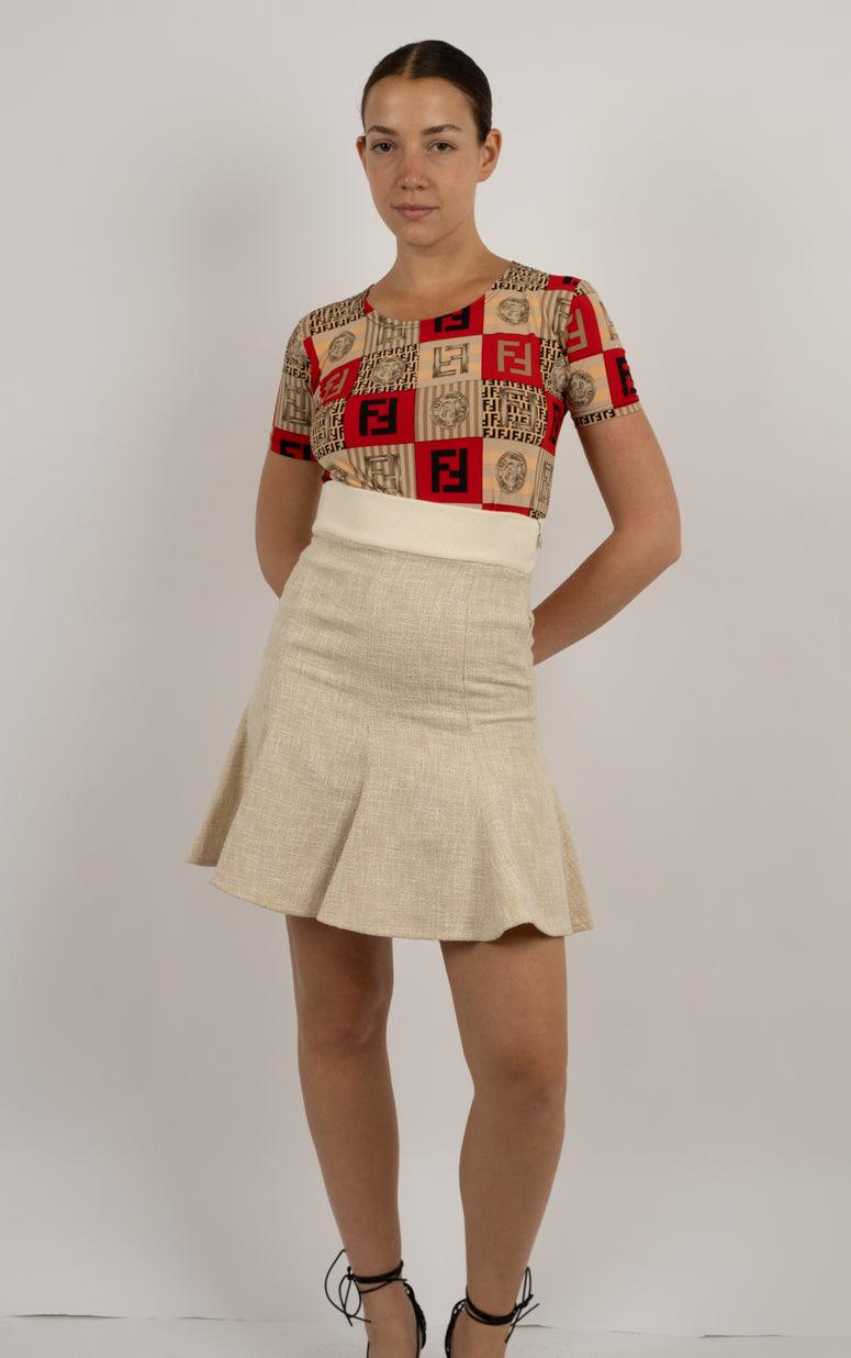 Vendor:Ralph Lauren Red Wool Mini Skirt – Fringe Detail נדיר