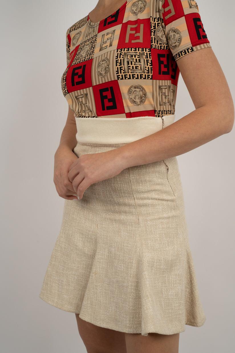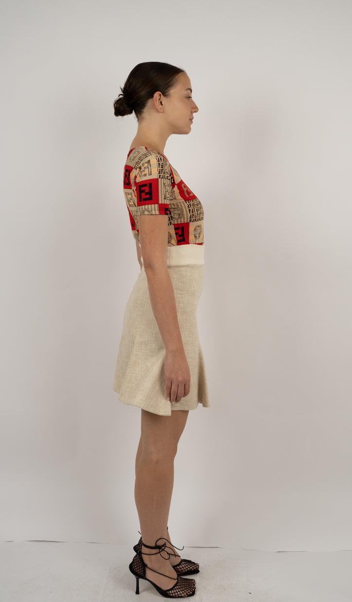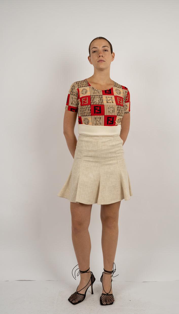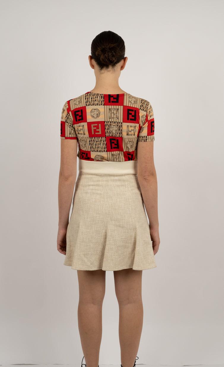 Vendor:Ralph Lauren Red Wool Mini Skirt – Fringe Detail נדיר