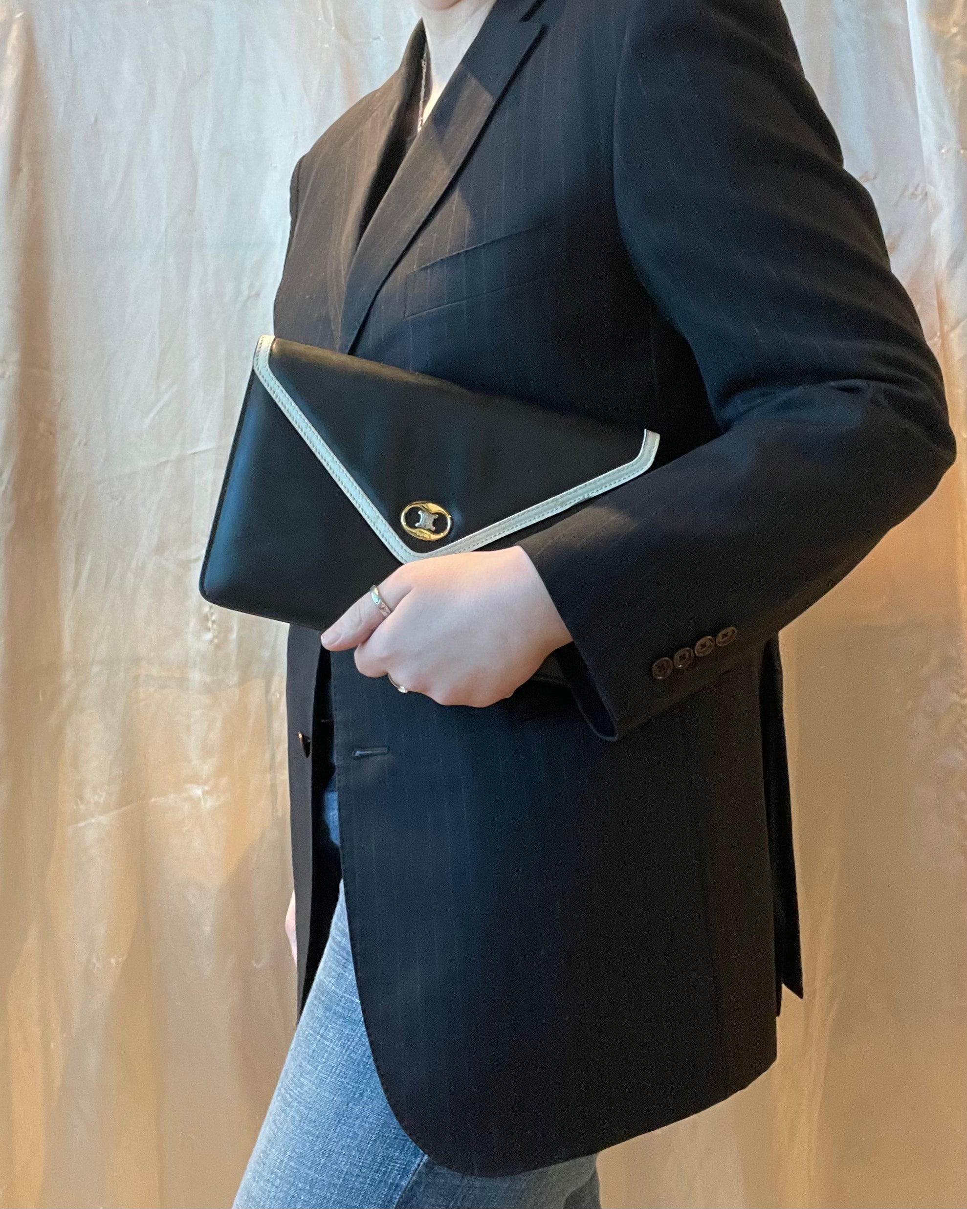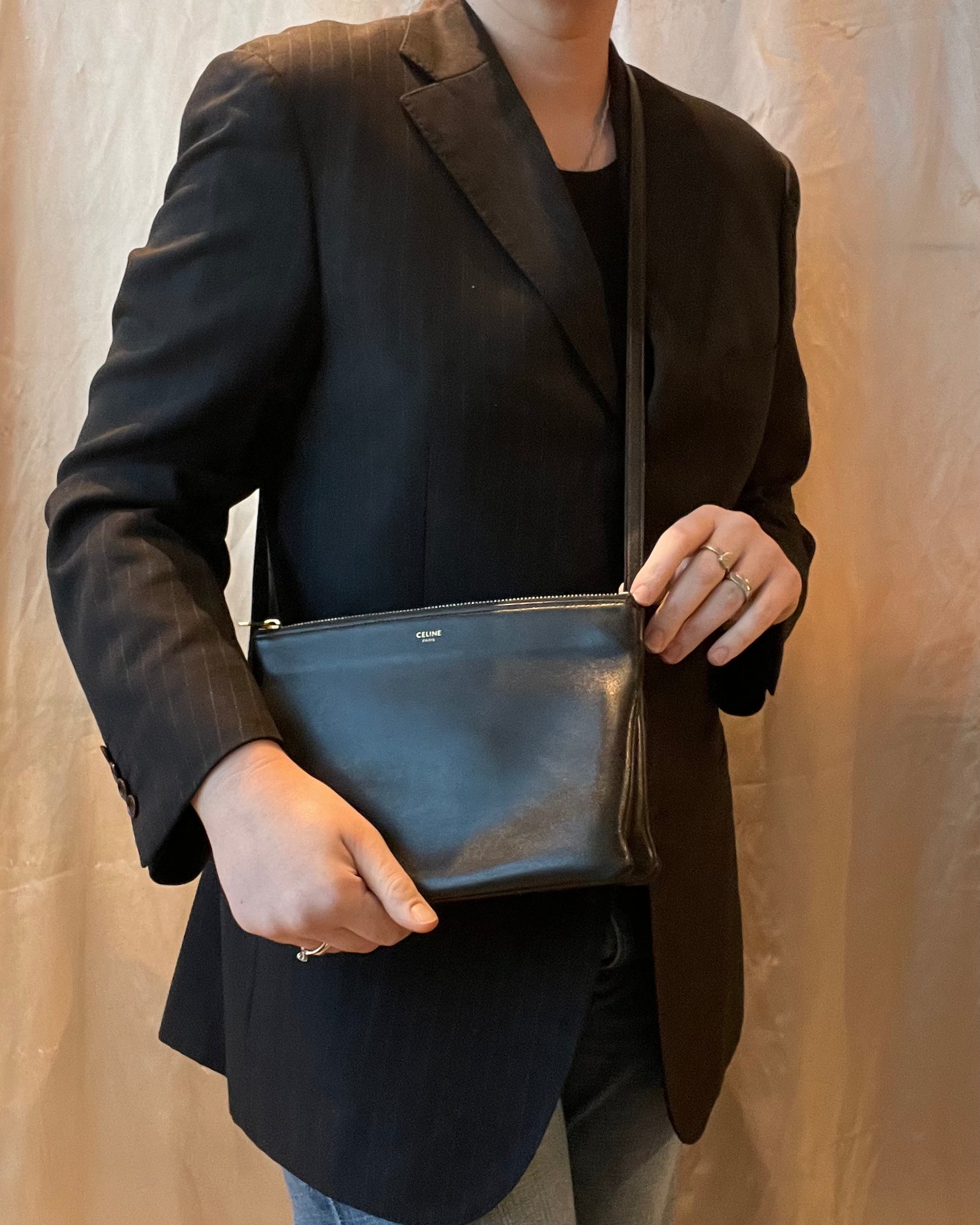 Vendor:Celine Long Wallet – Black Leather with Gold Details