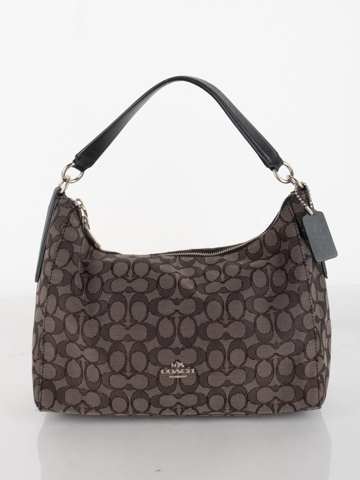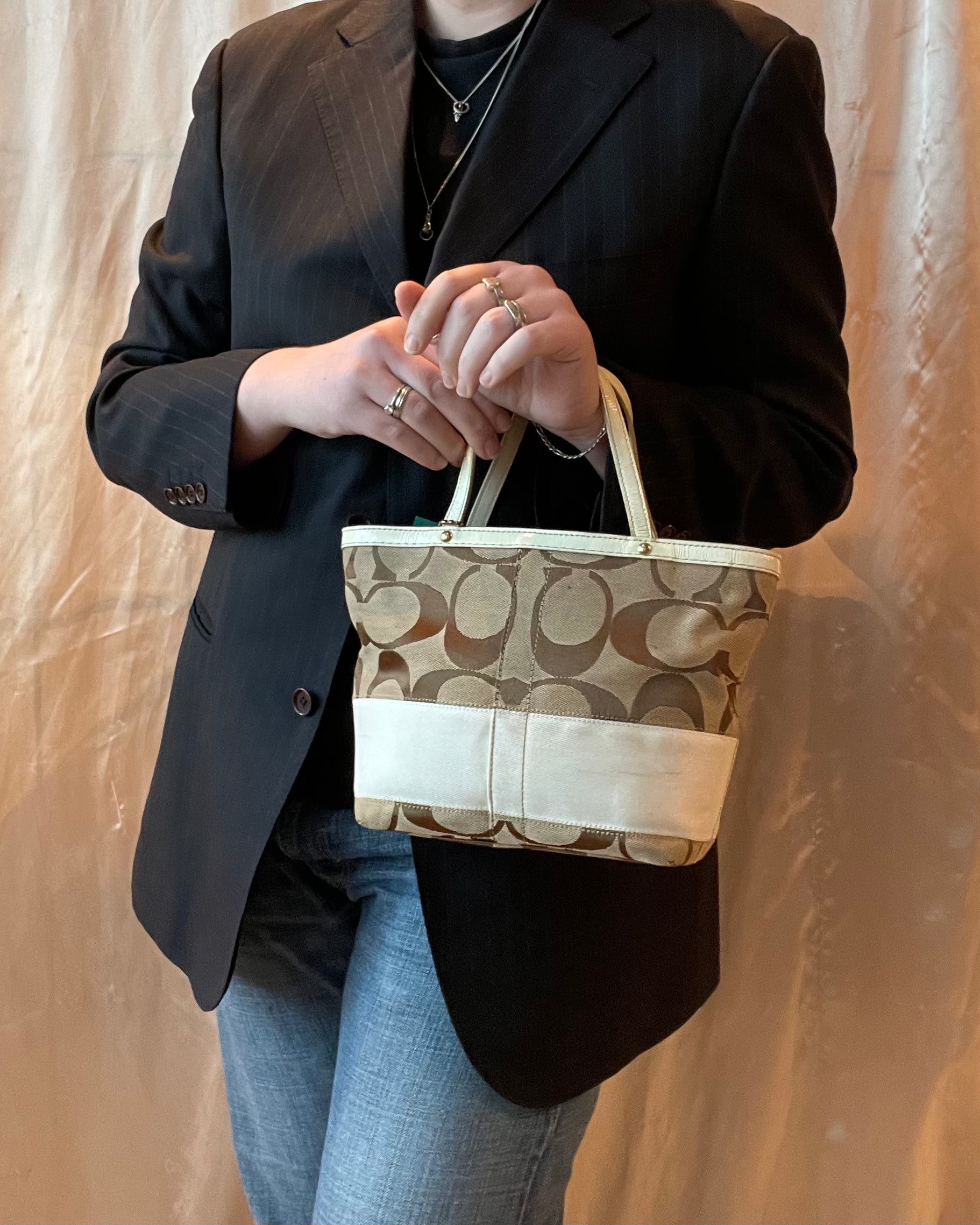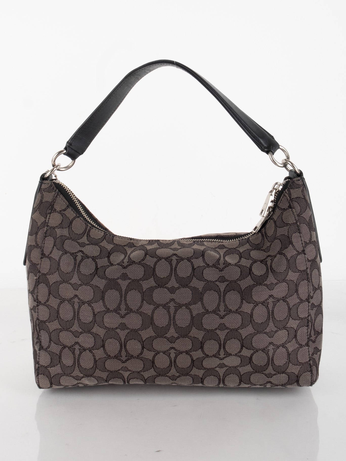 Coach Shoulder Bag – Signature Canvas with Cream Leather Trim