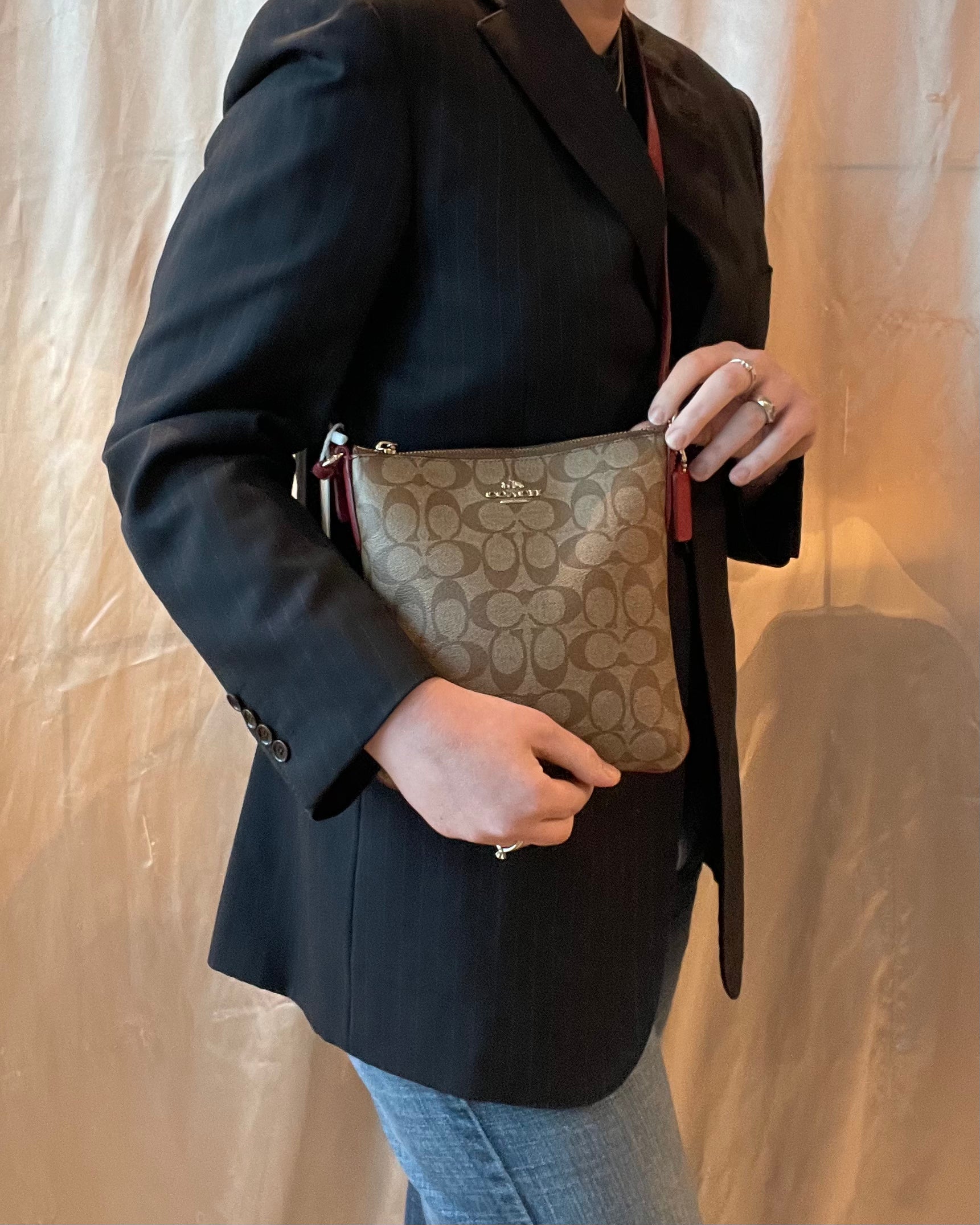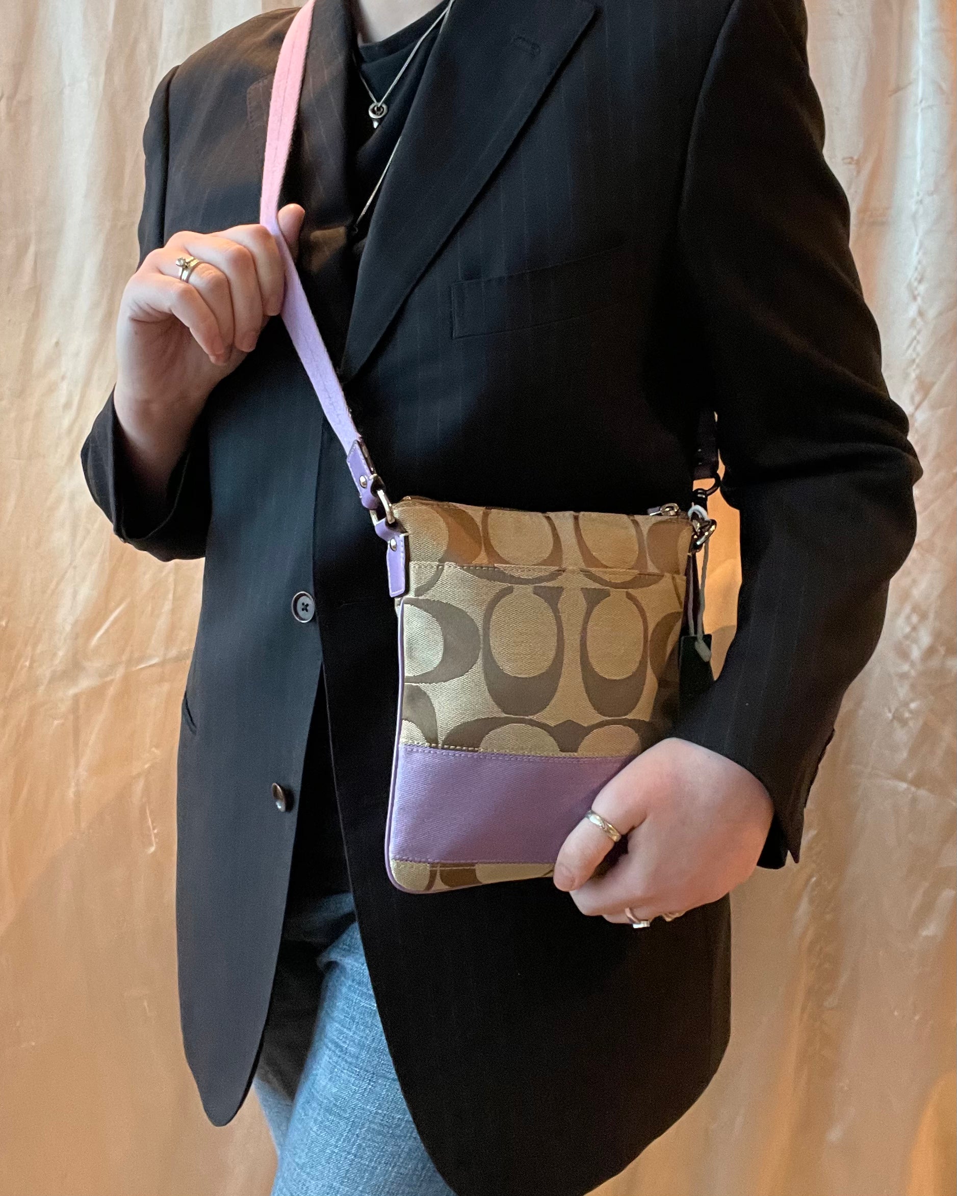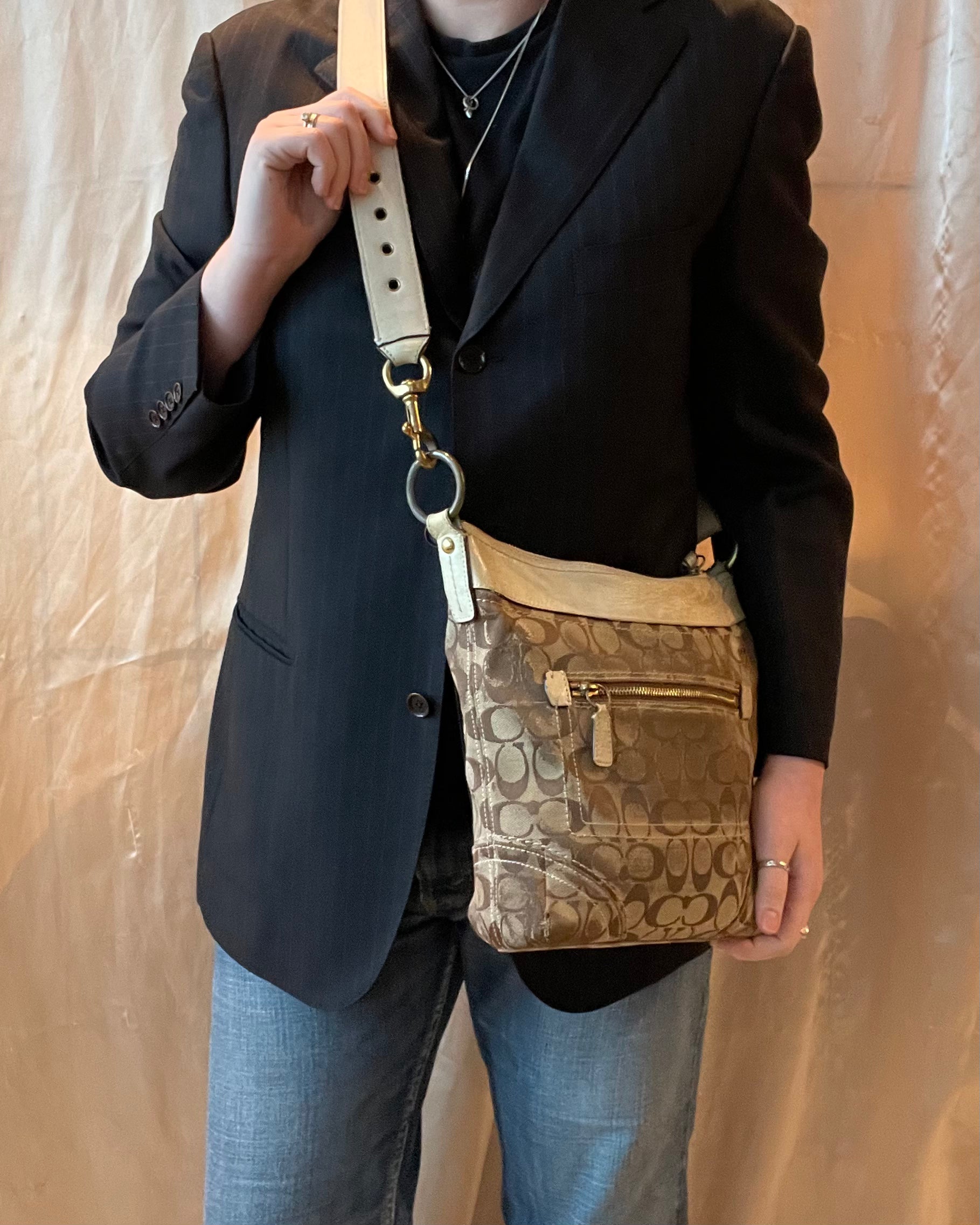 Coach Monogram Crossbody Bag – Brown & Tan Leather Trim