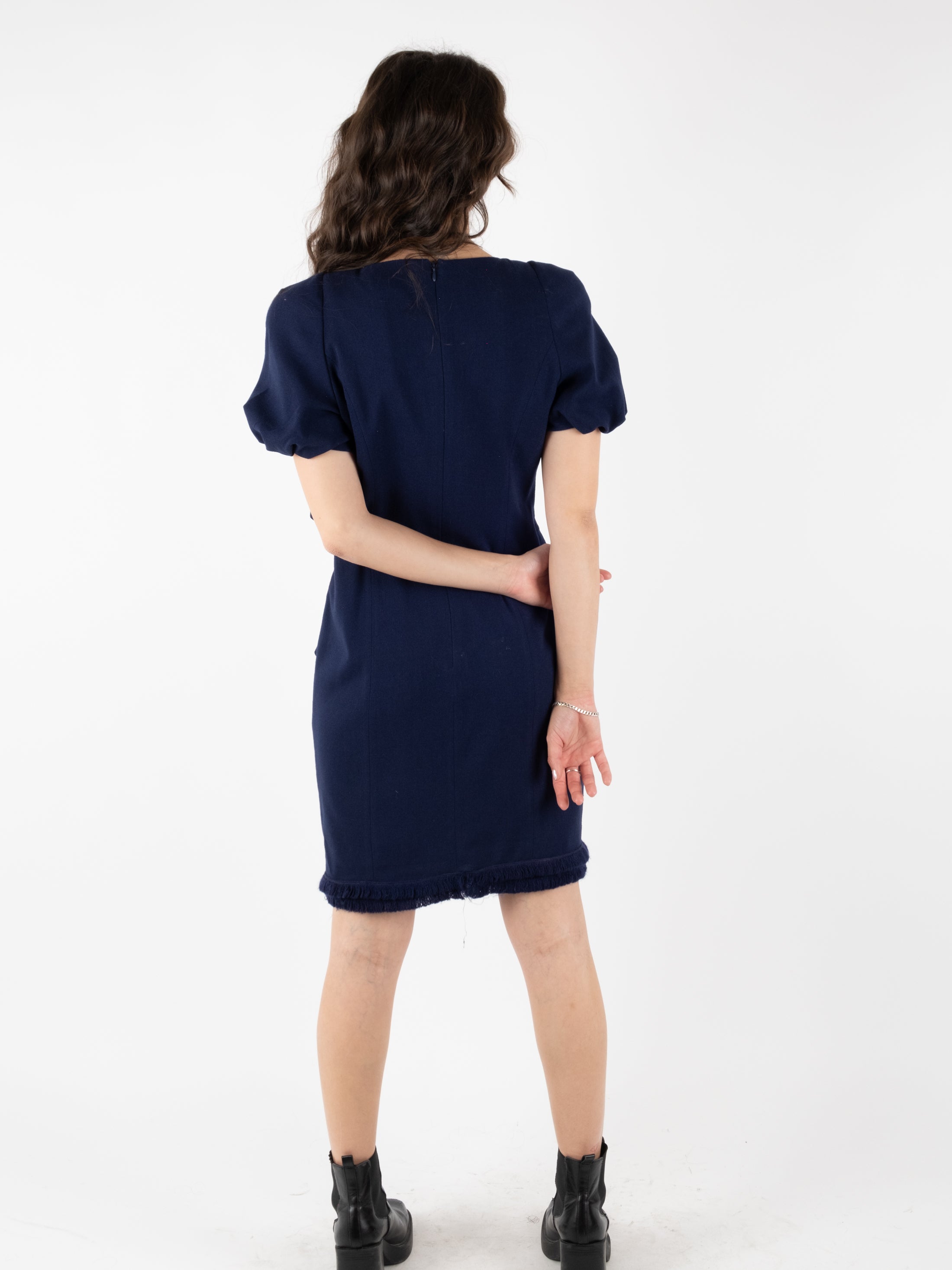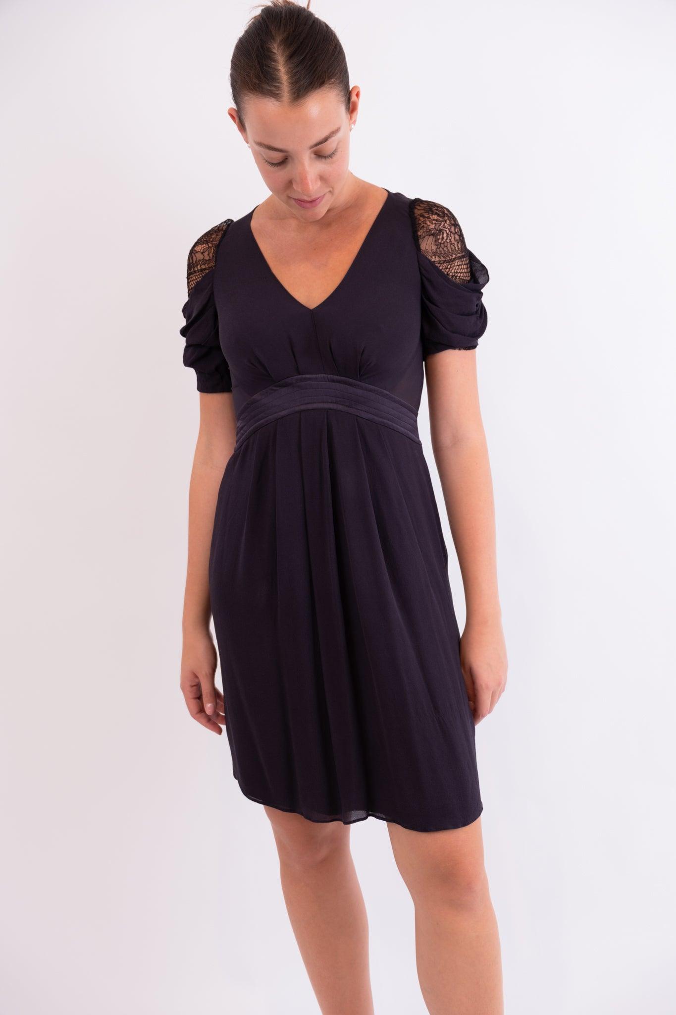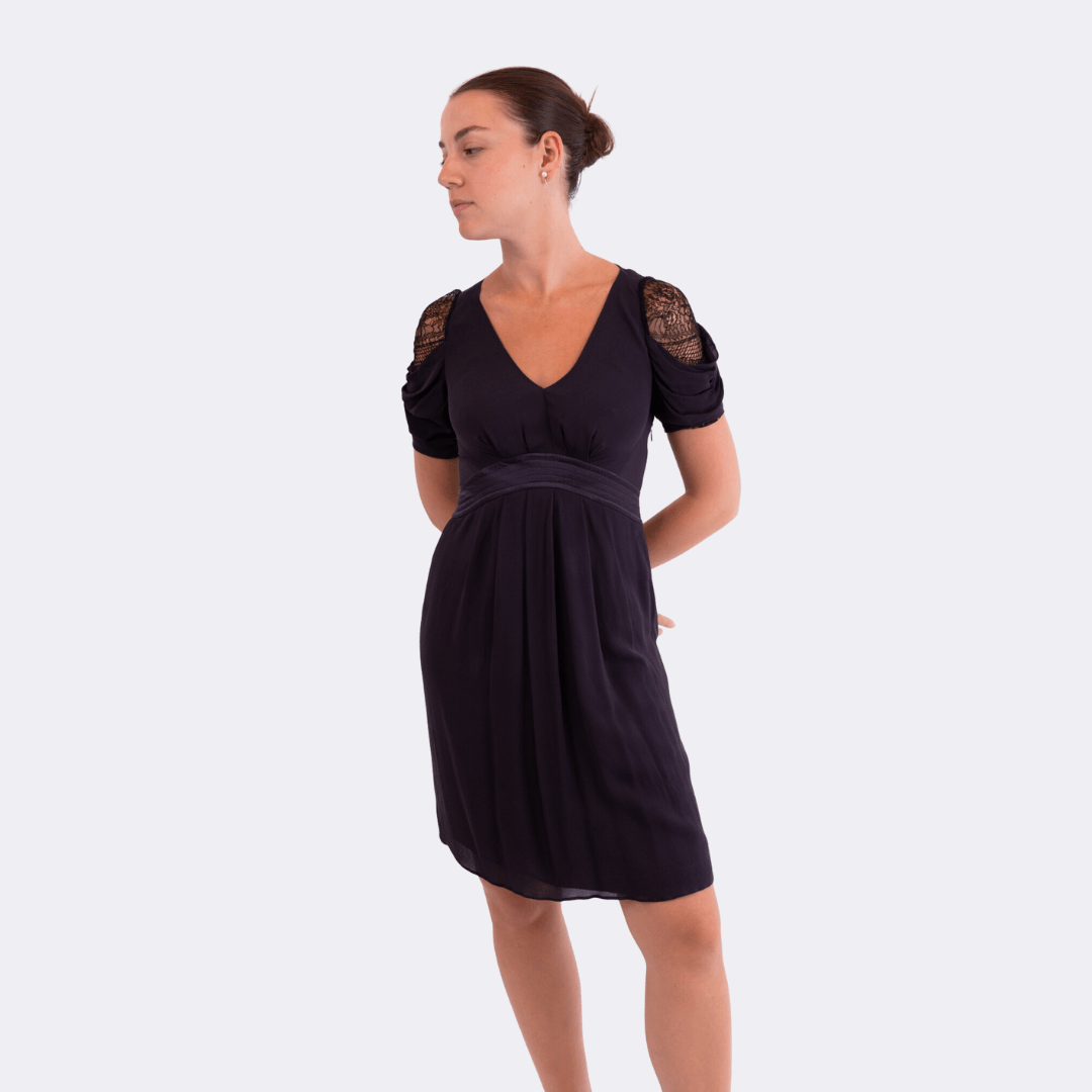 Navy Lace Dress – Black Trim