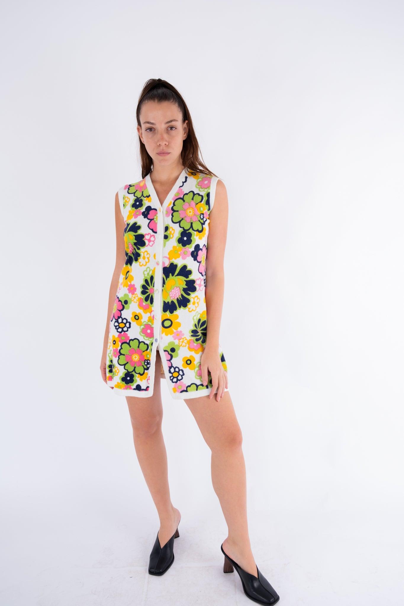 Vintage Green Floral Sleeveless Dress