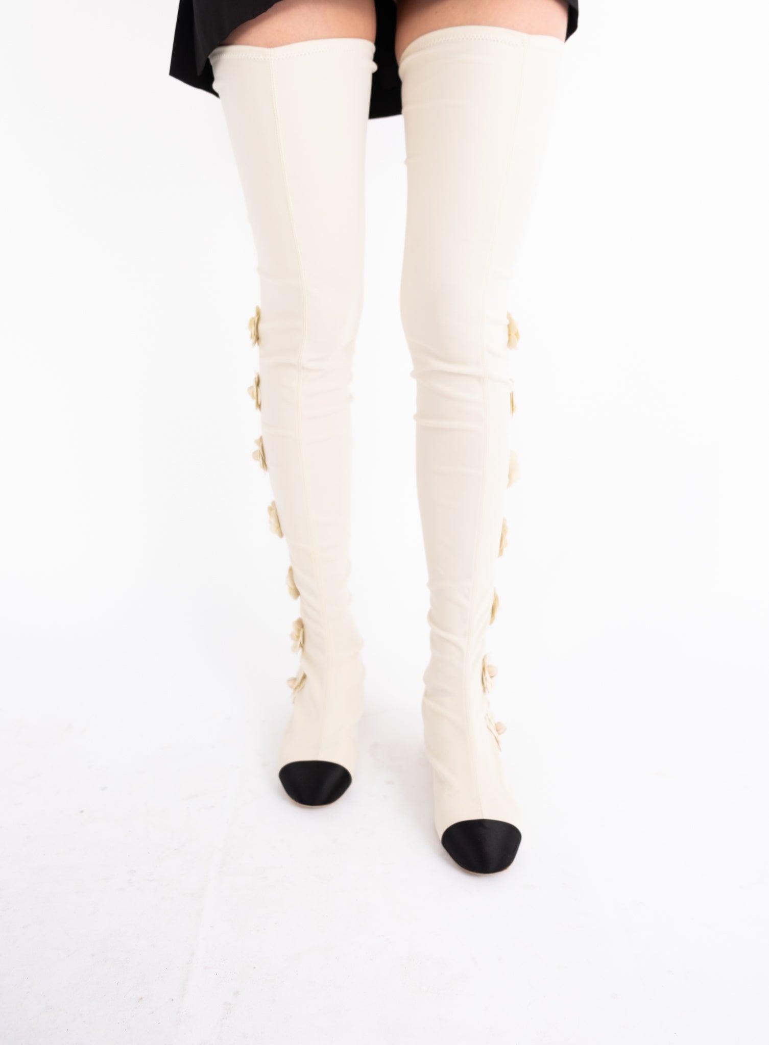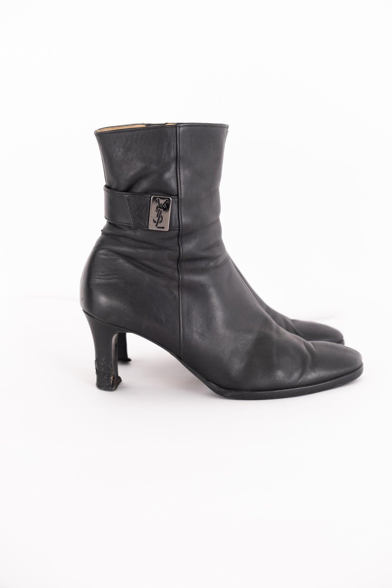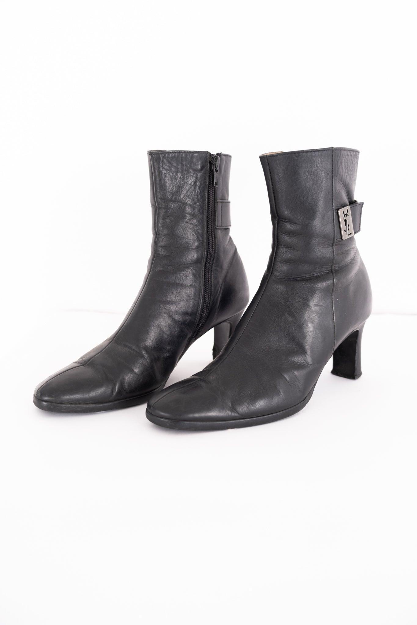 Vendor:Saint Laurent Knee-High Leather Boots – Olive