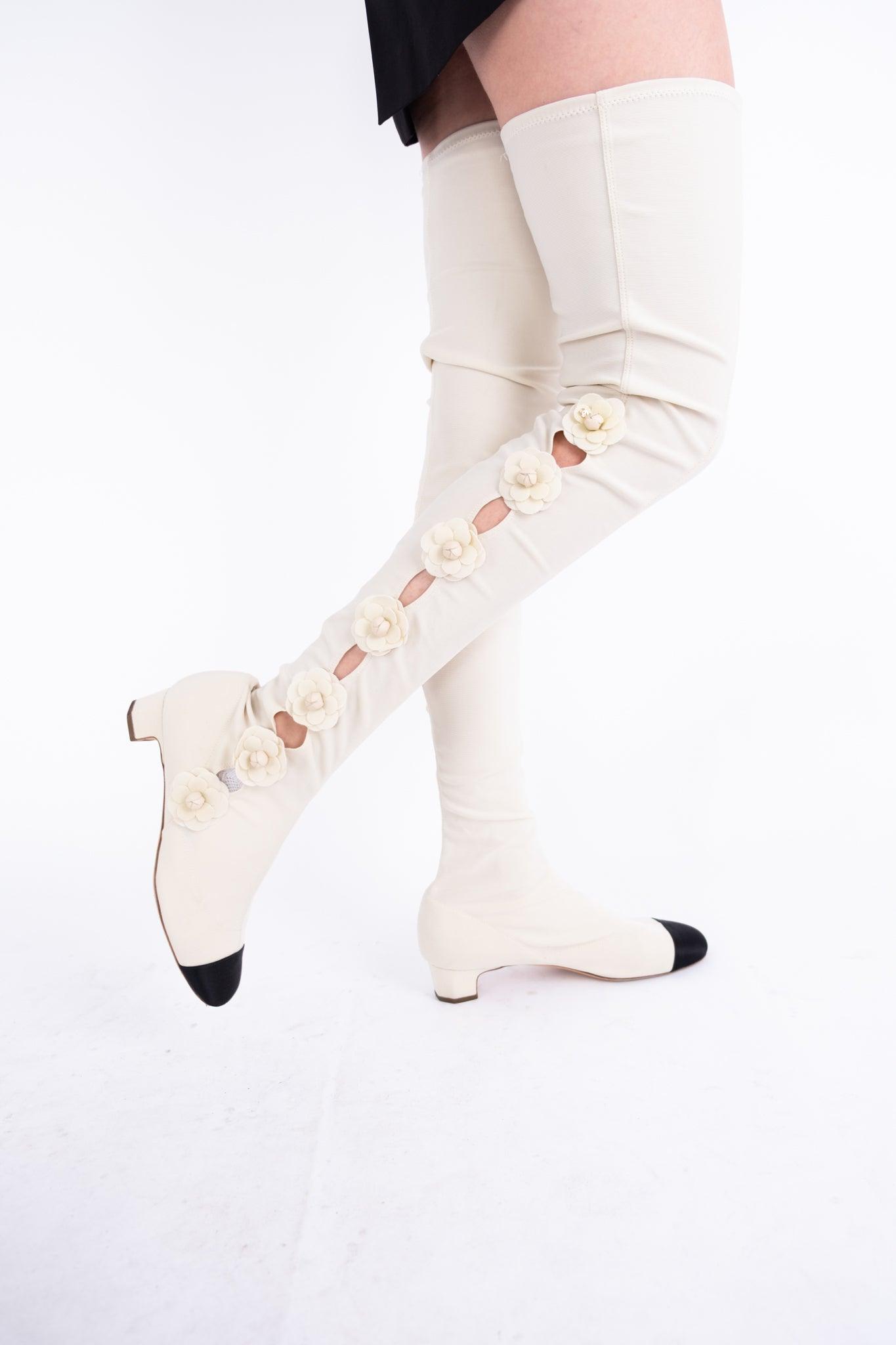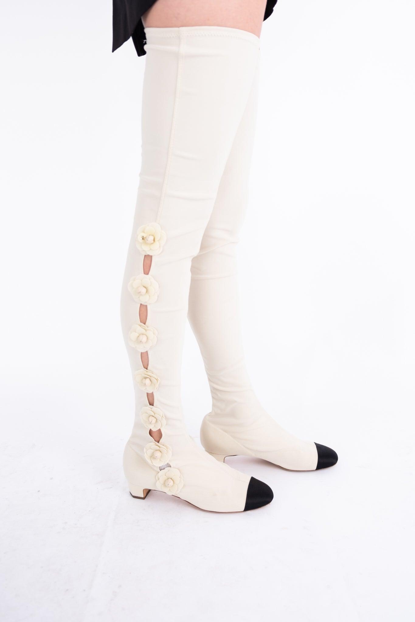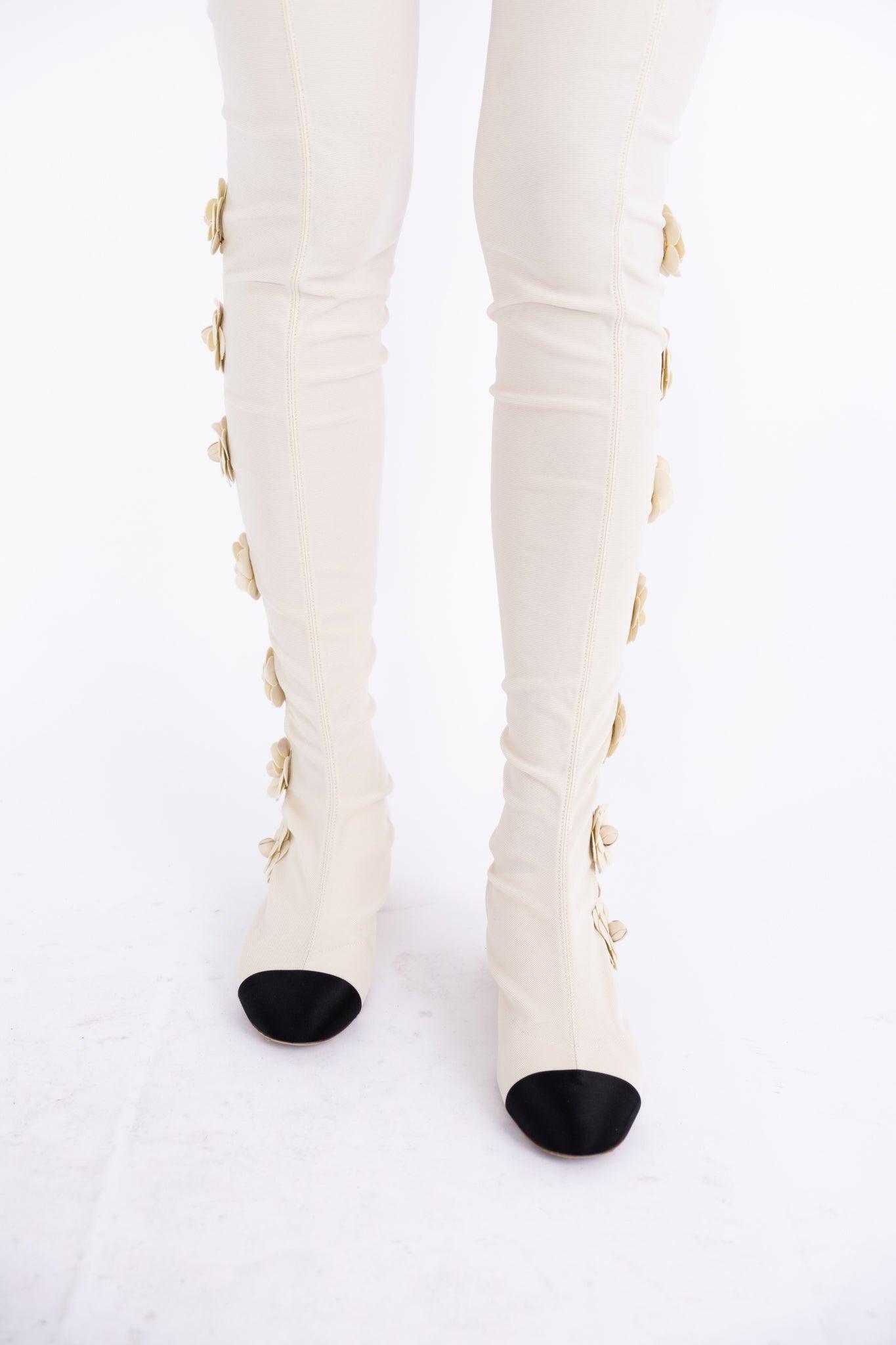 Vendor:Saint Laurent Knee-High Leather Boots – Olive