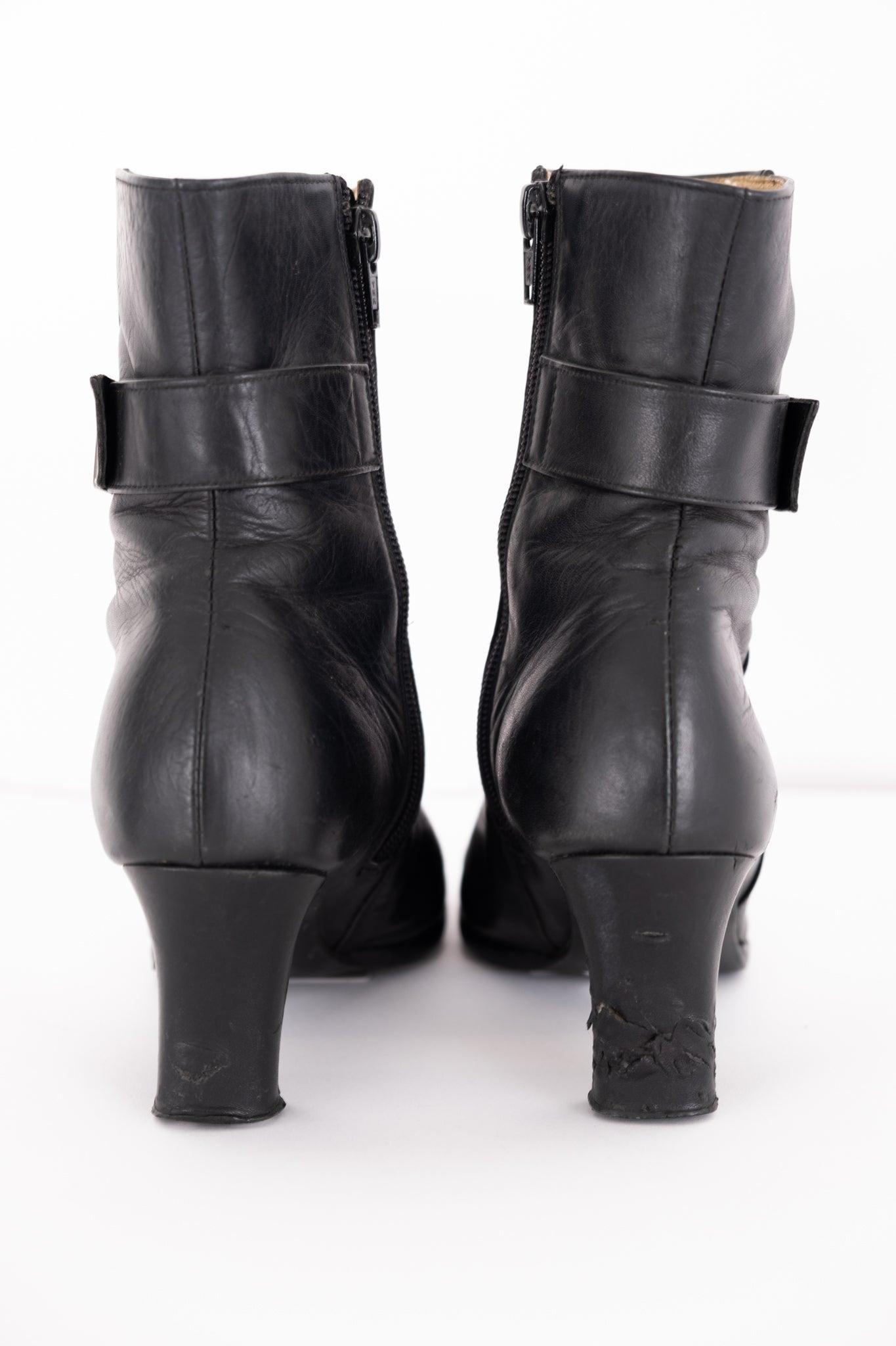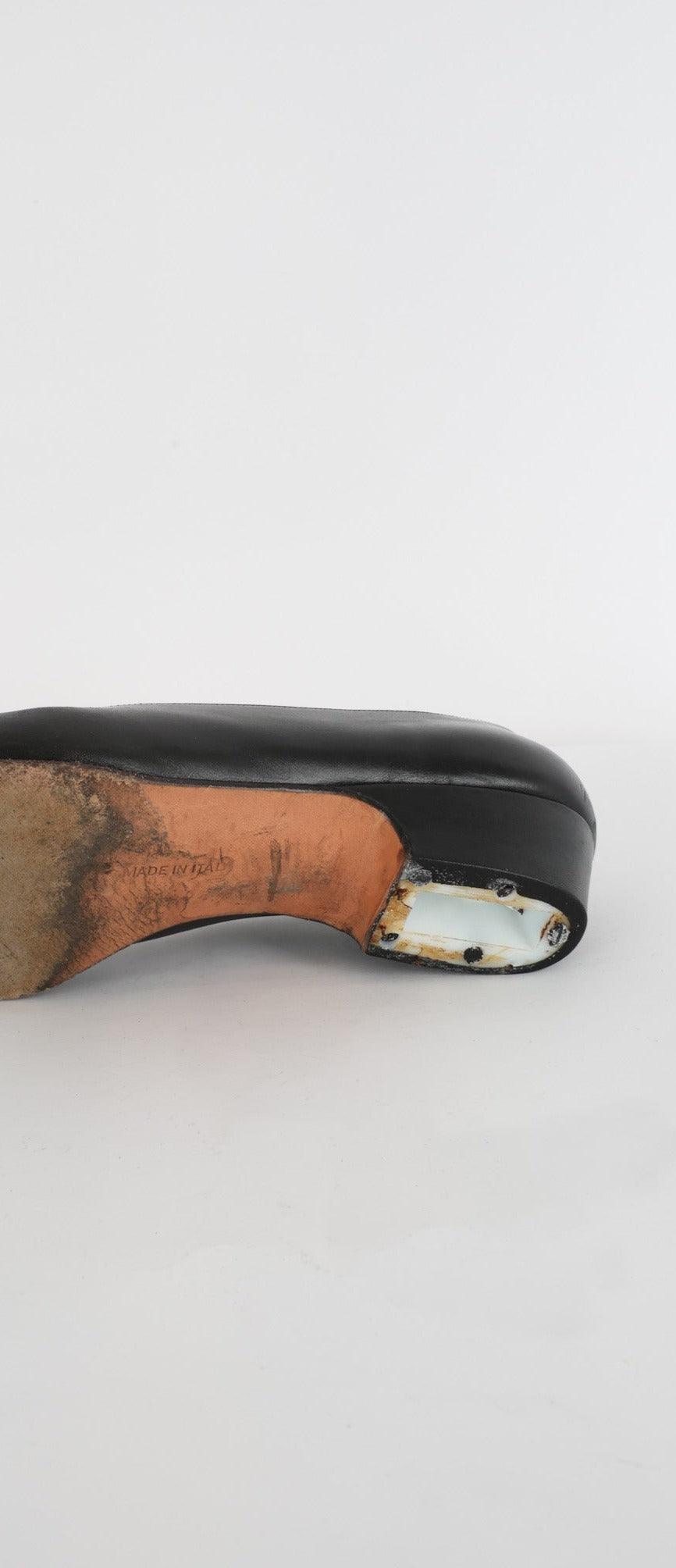 Vendor:Louis Vuitton Black Leather Loafers with Monogram Buckle