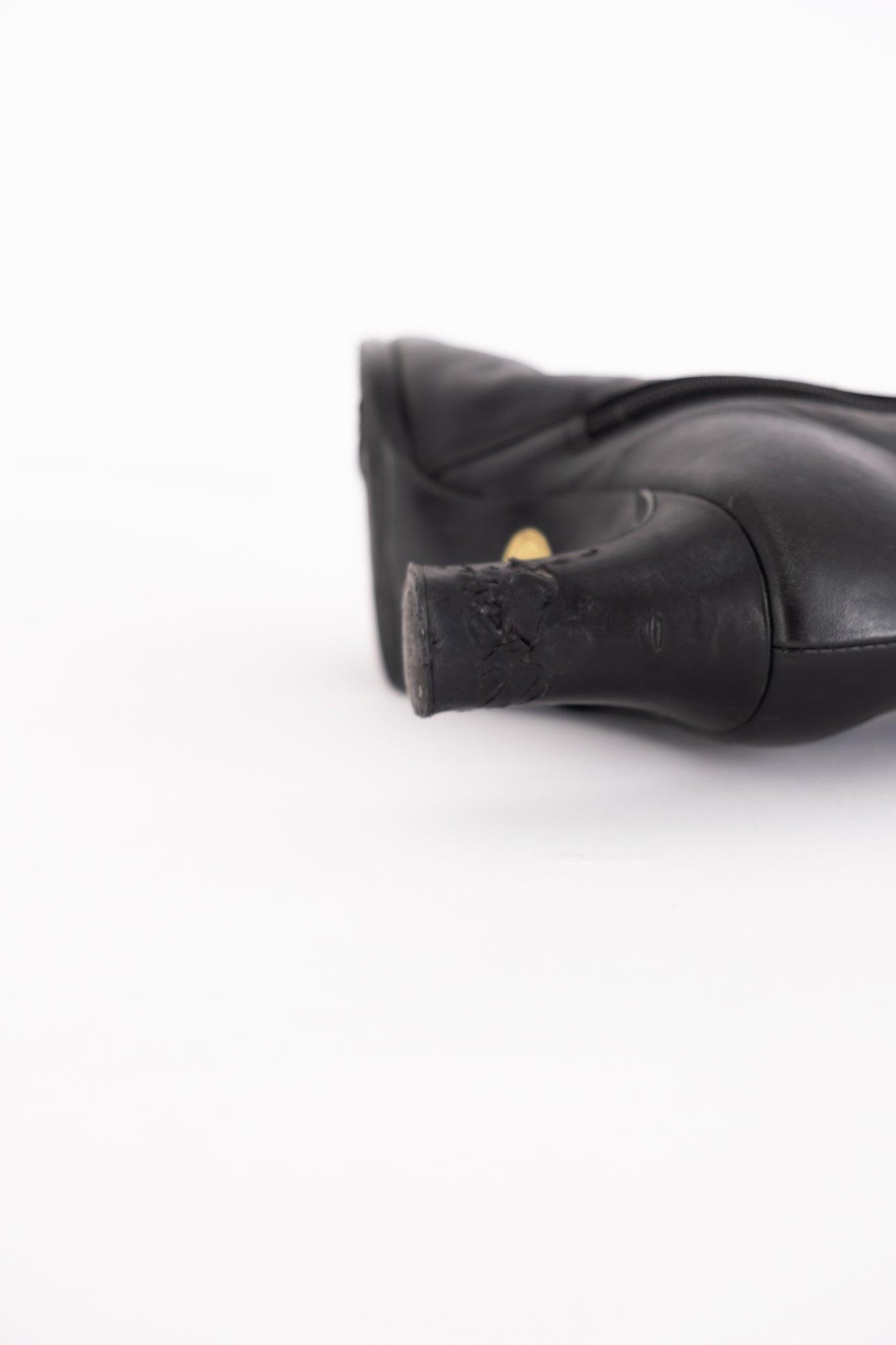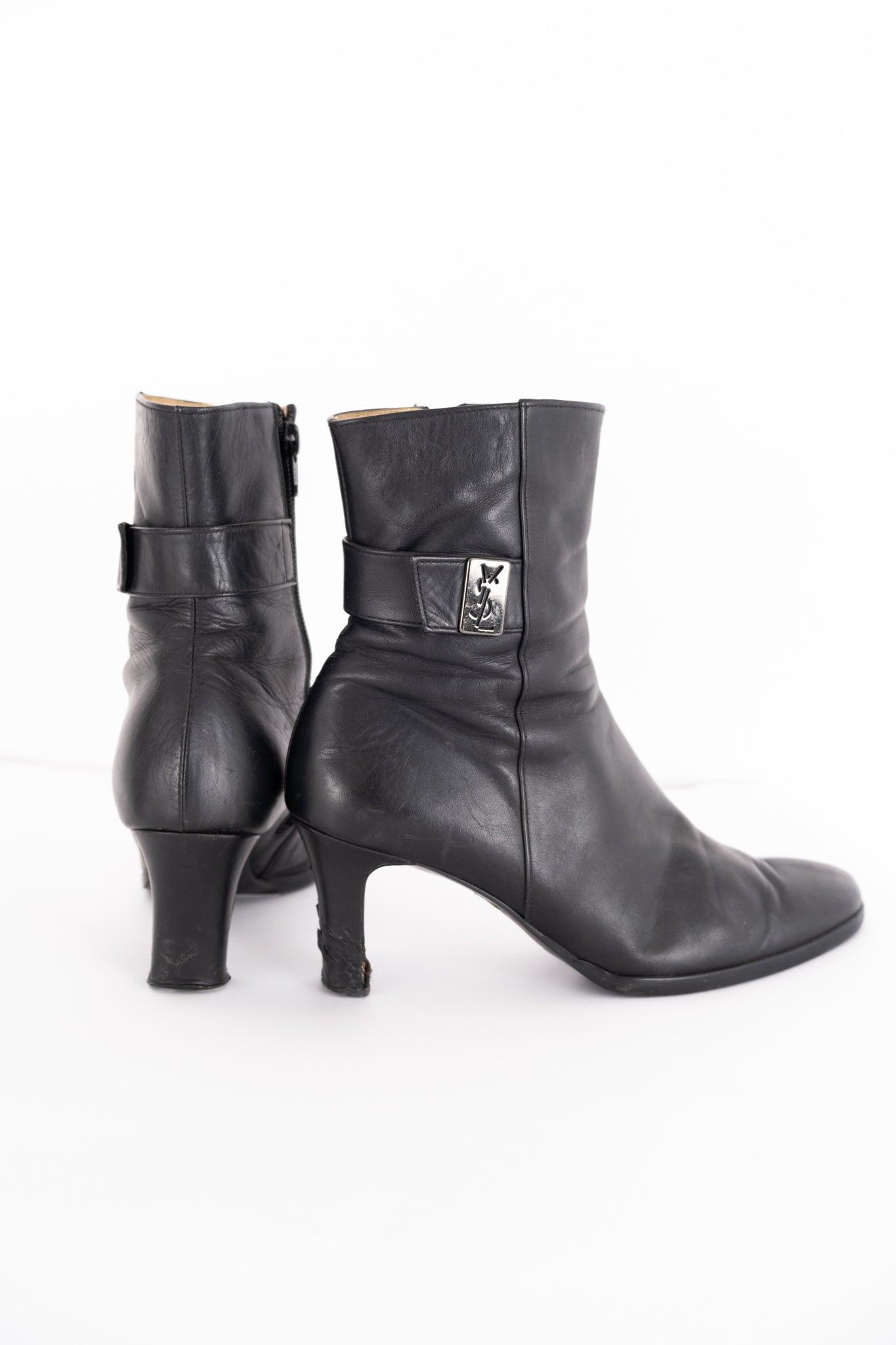 Vendor:Saint Laurent Black Suede Mules with Gold Chain