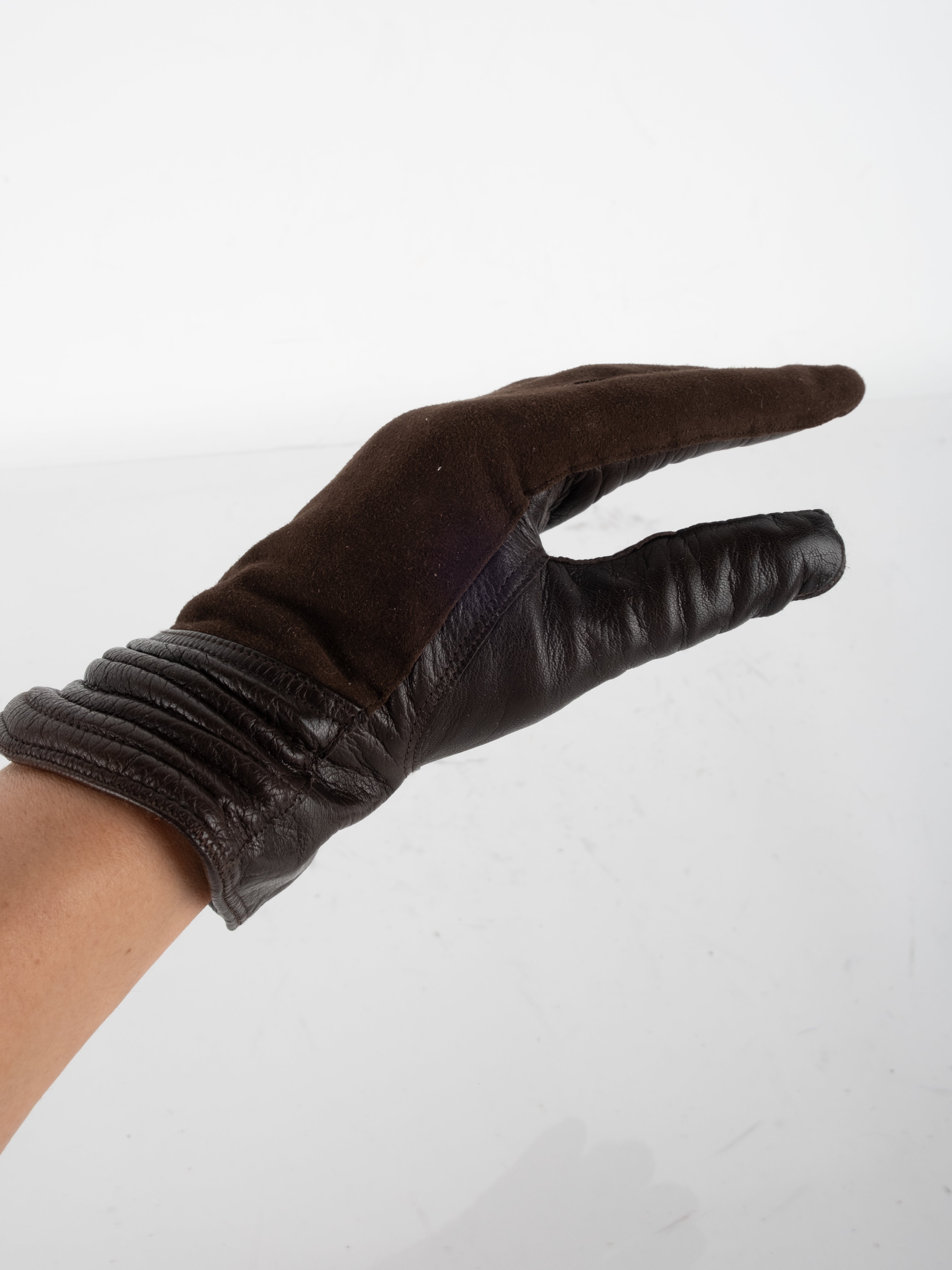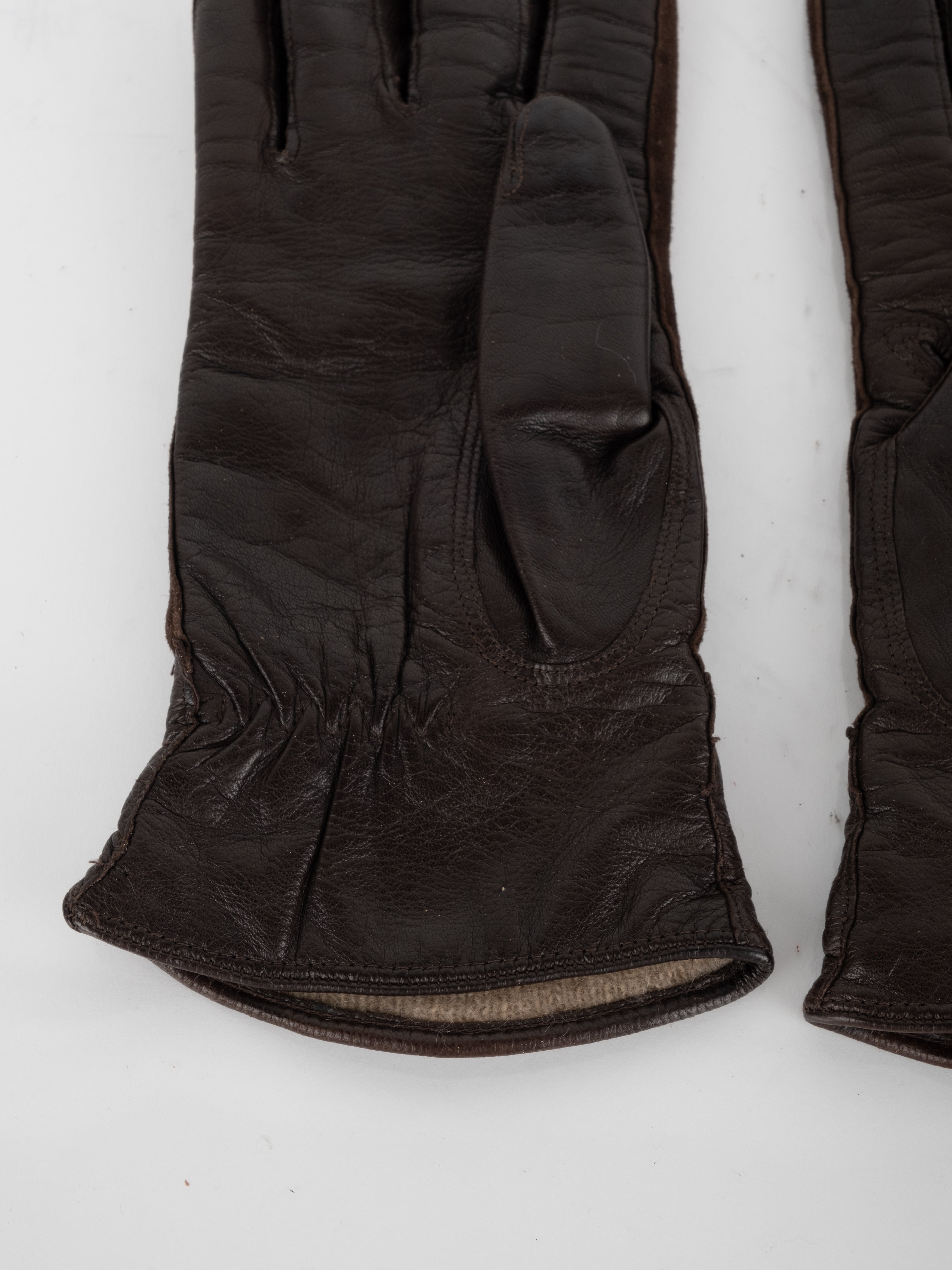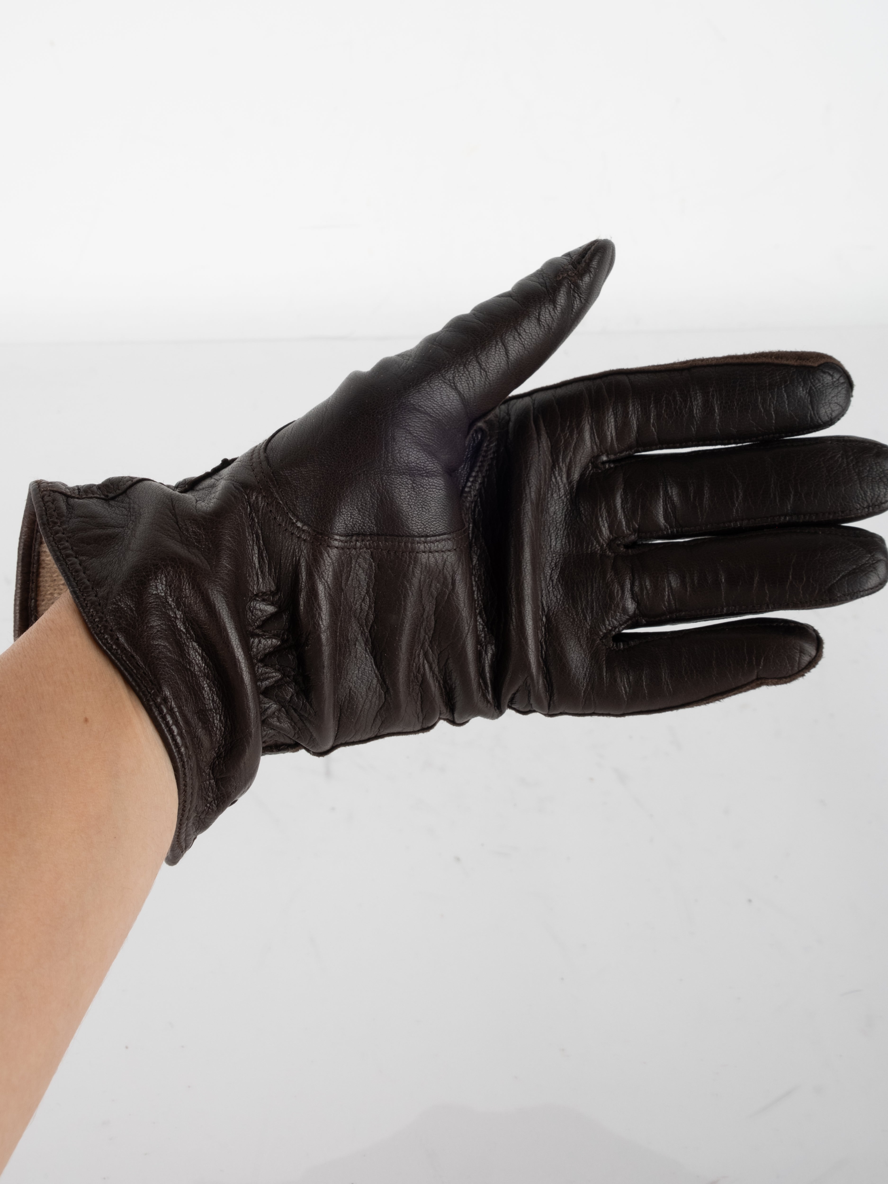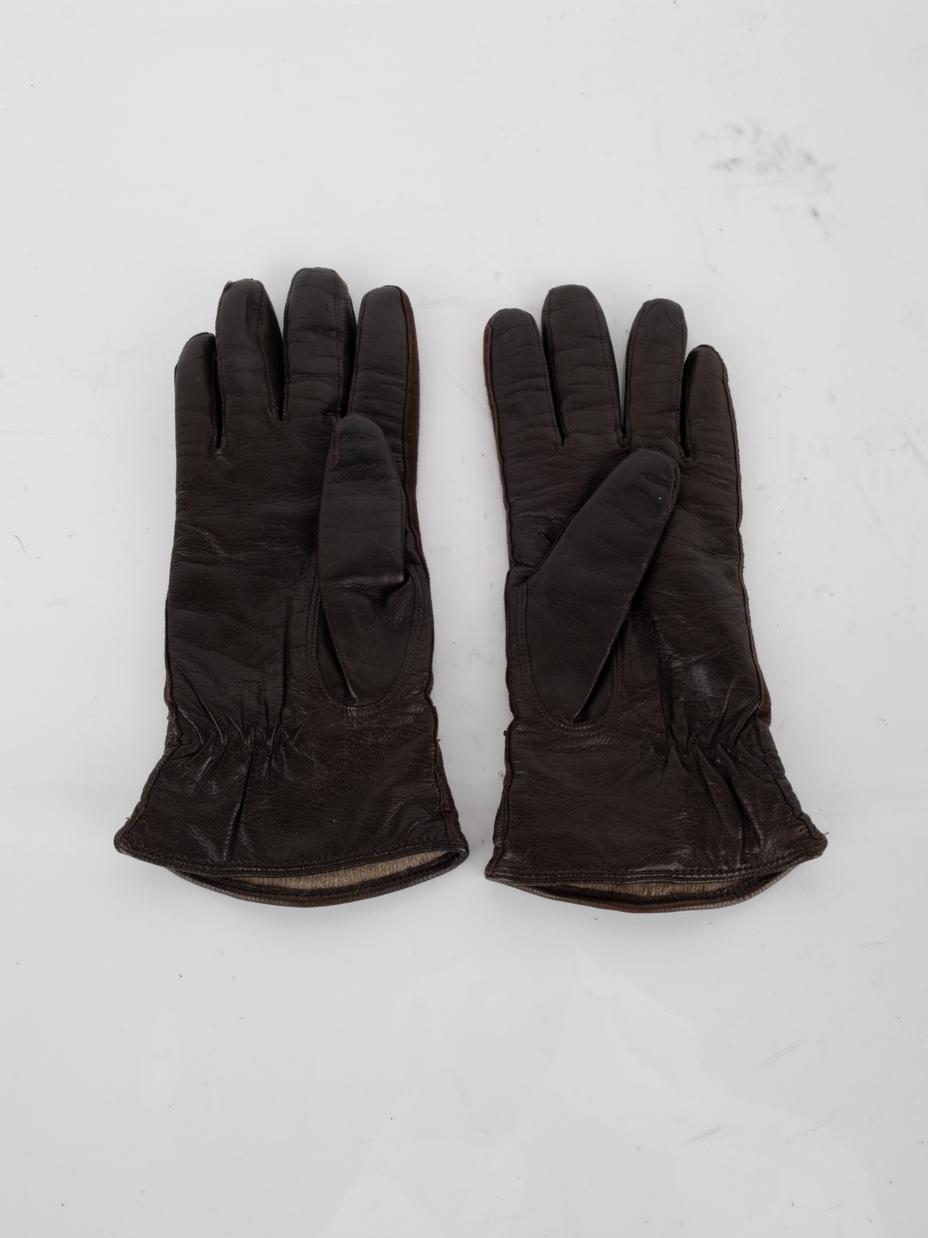 כפפות וינטג' יד שנייה בעור חום רך וגמיש במיוחד, עם גימור מבריק קל וקווי תפירה אלגנטיים. הכפפות משלבות נוחות עם יופי קלאסי ומתאימות לכל לוק חורפי מתוחכם.