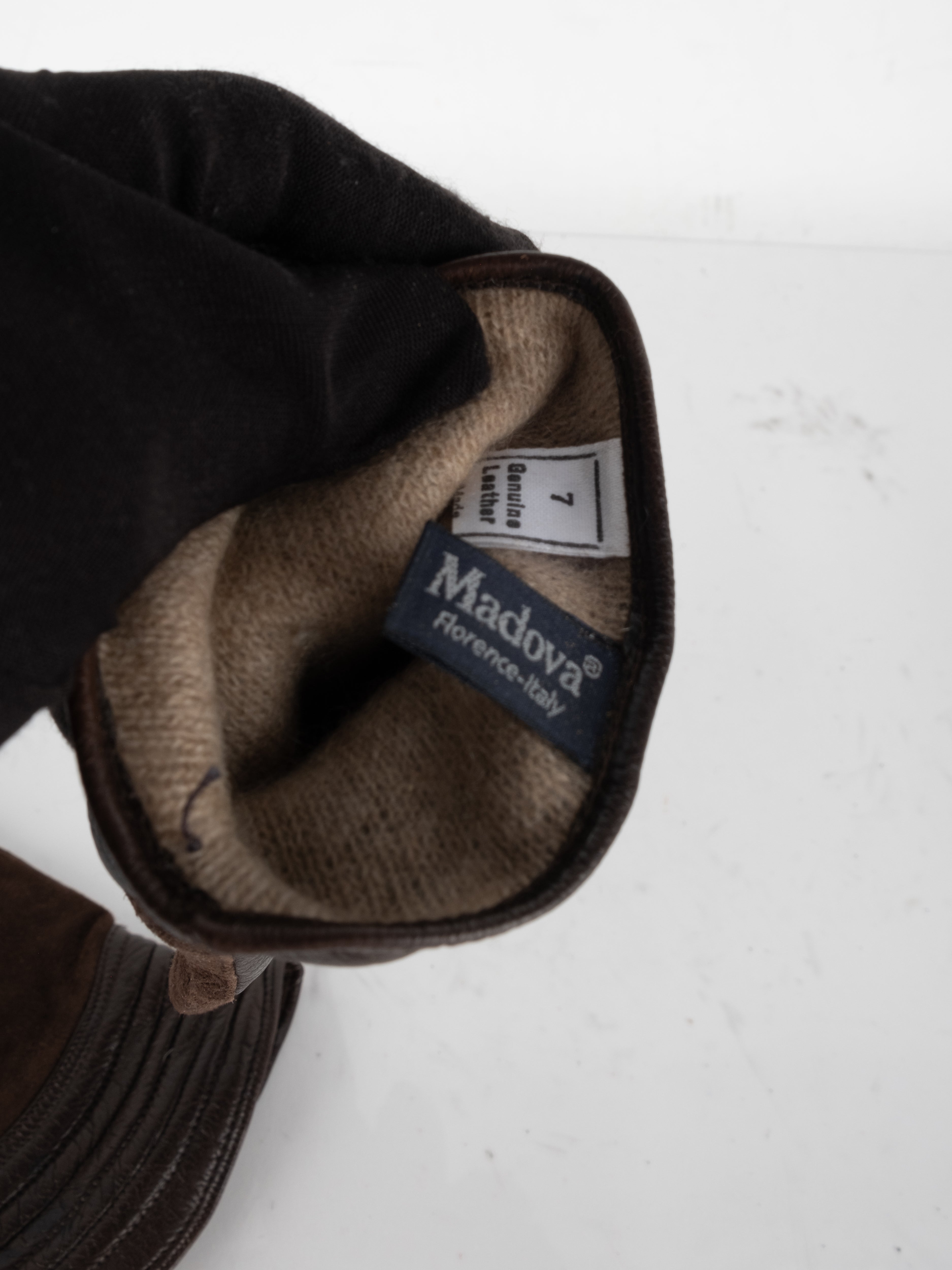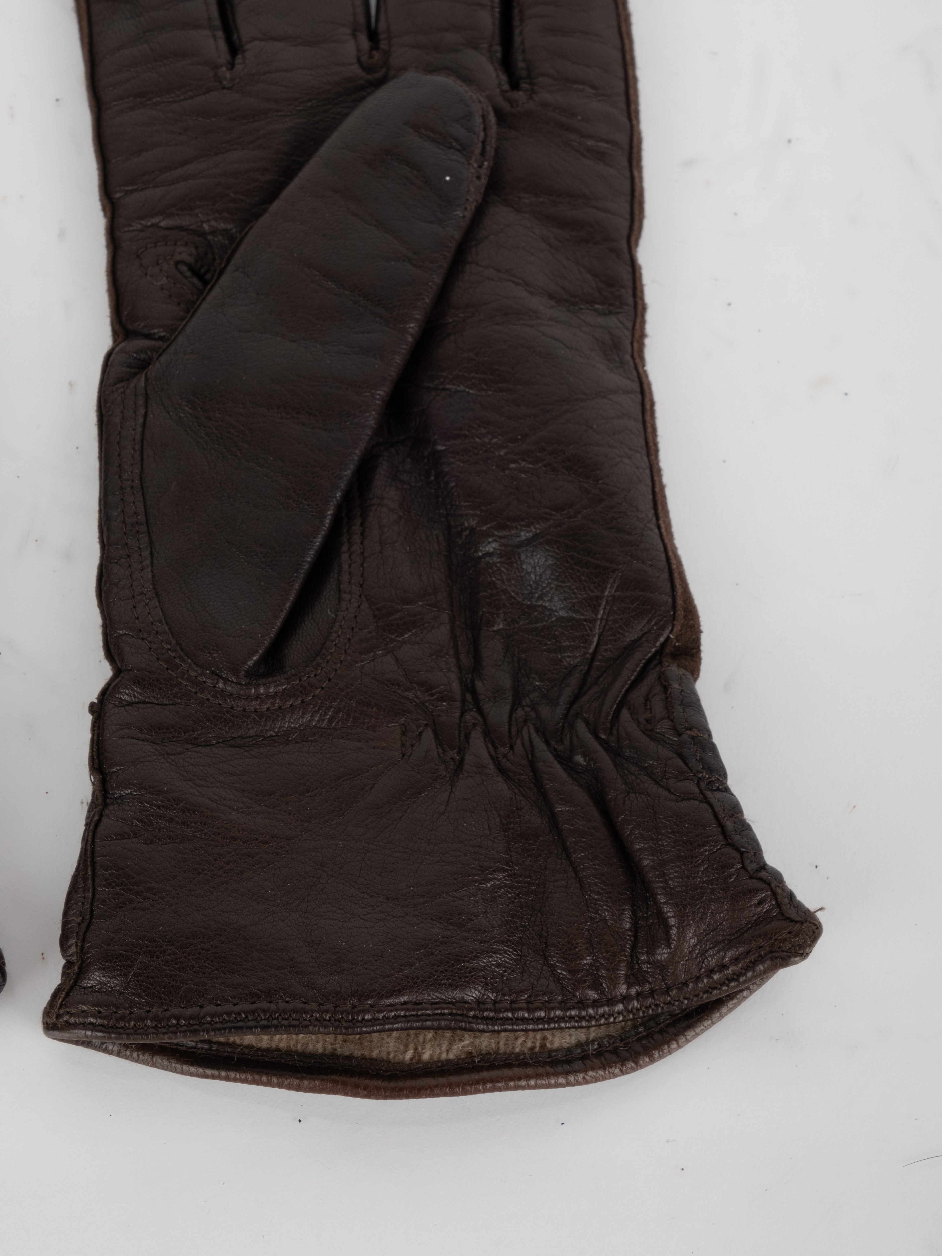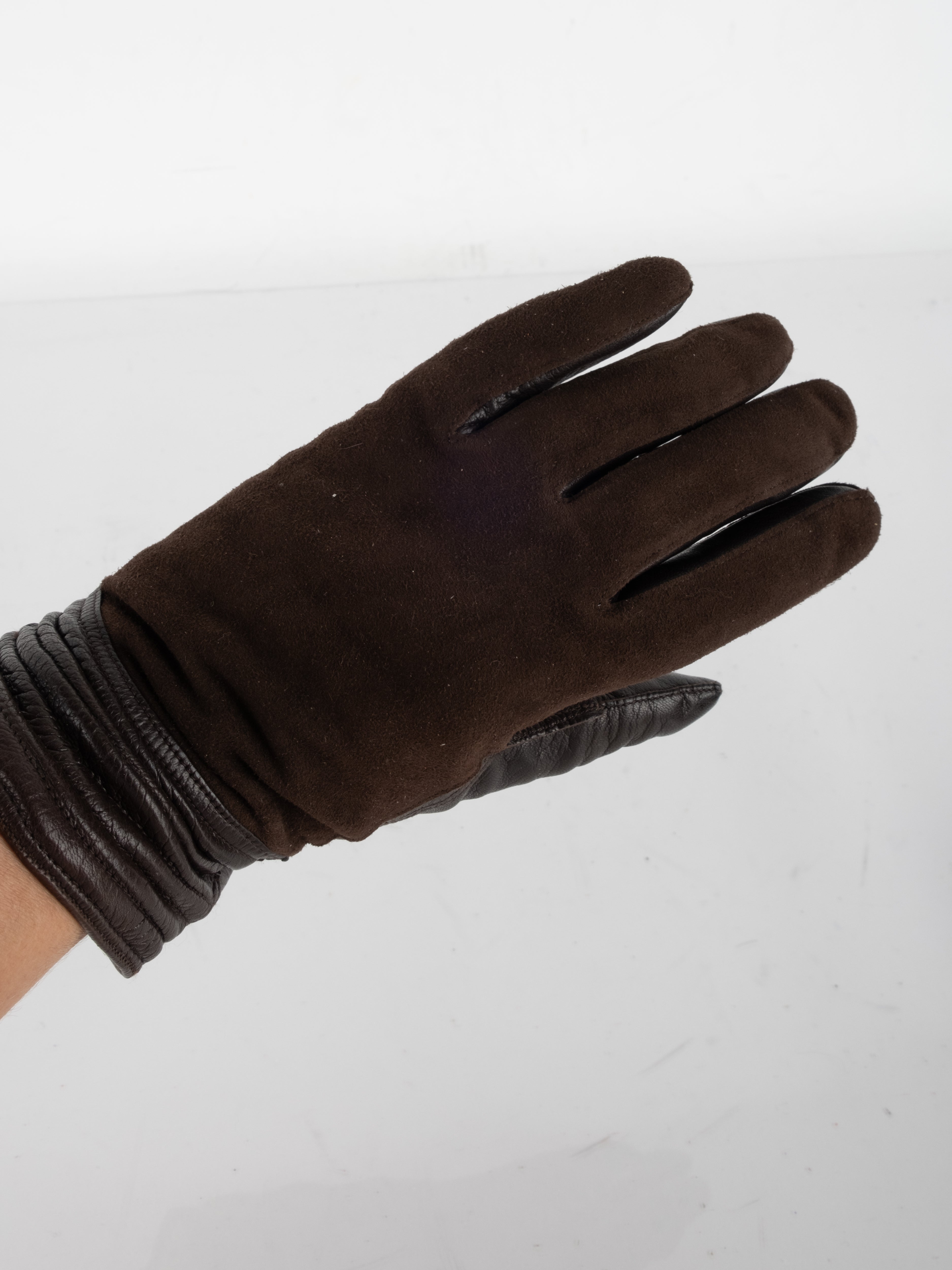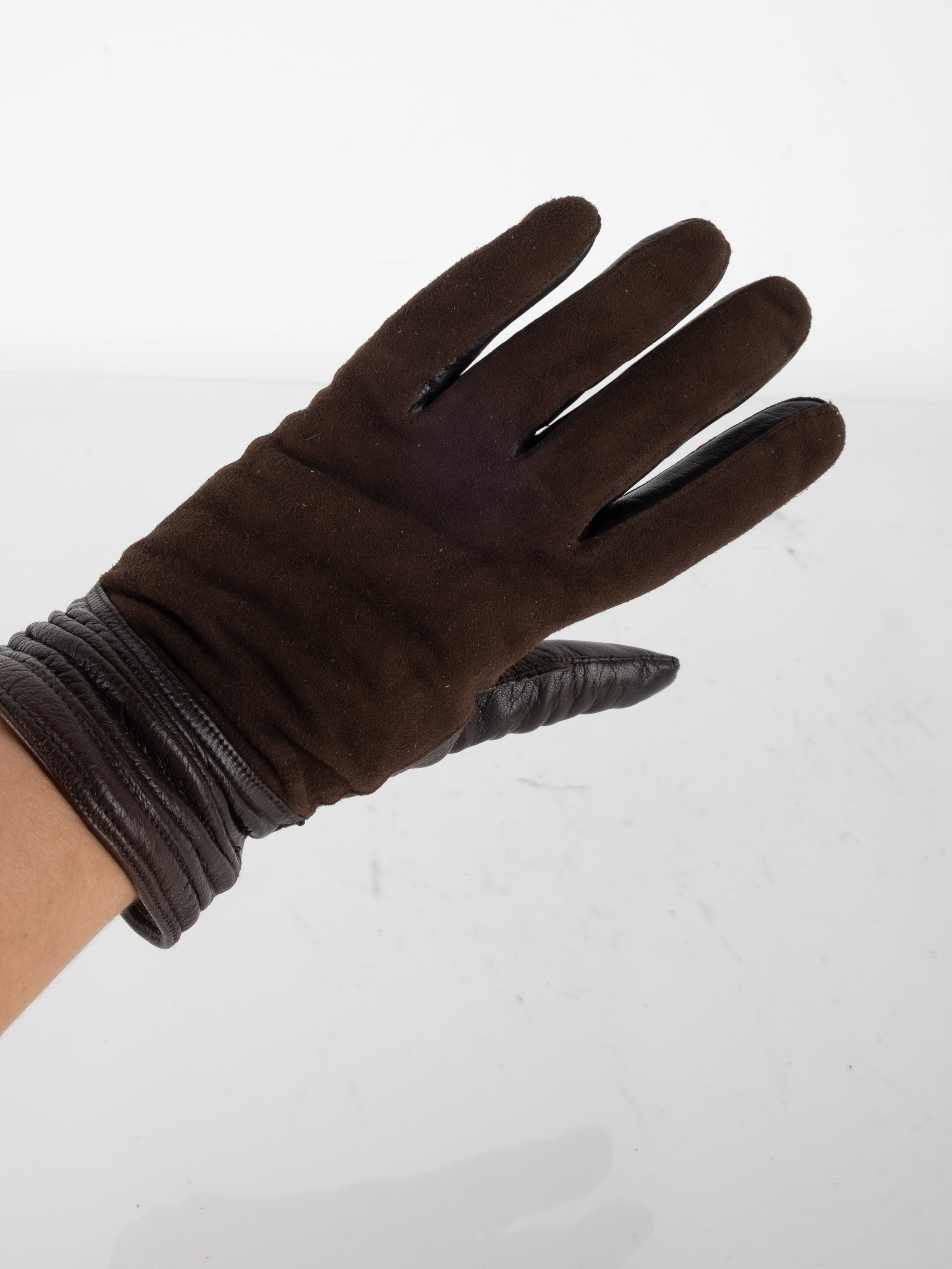 כפפות וינטג' יד שנייה בעור חום רך וגמיש במיוחד, עם גימור מבריק קל וקווי תפירה אלגנטיים. הכפפות משלבות נוחות עם יופי קלאסי ומתאימות לכל לוק חורפי מתוחכם.