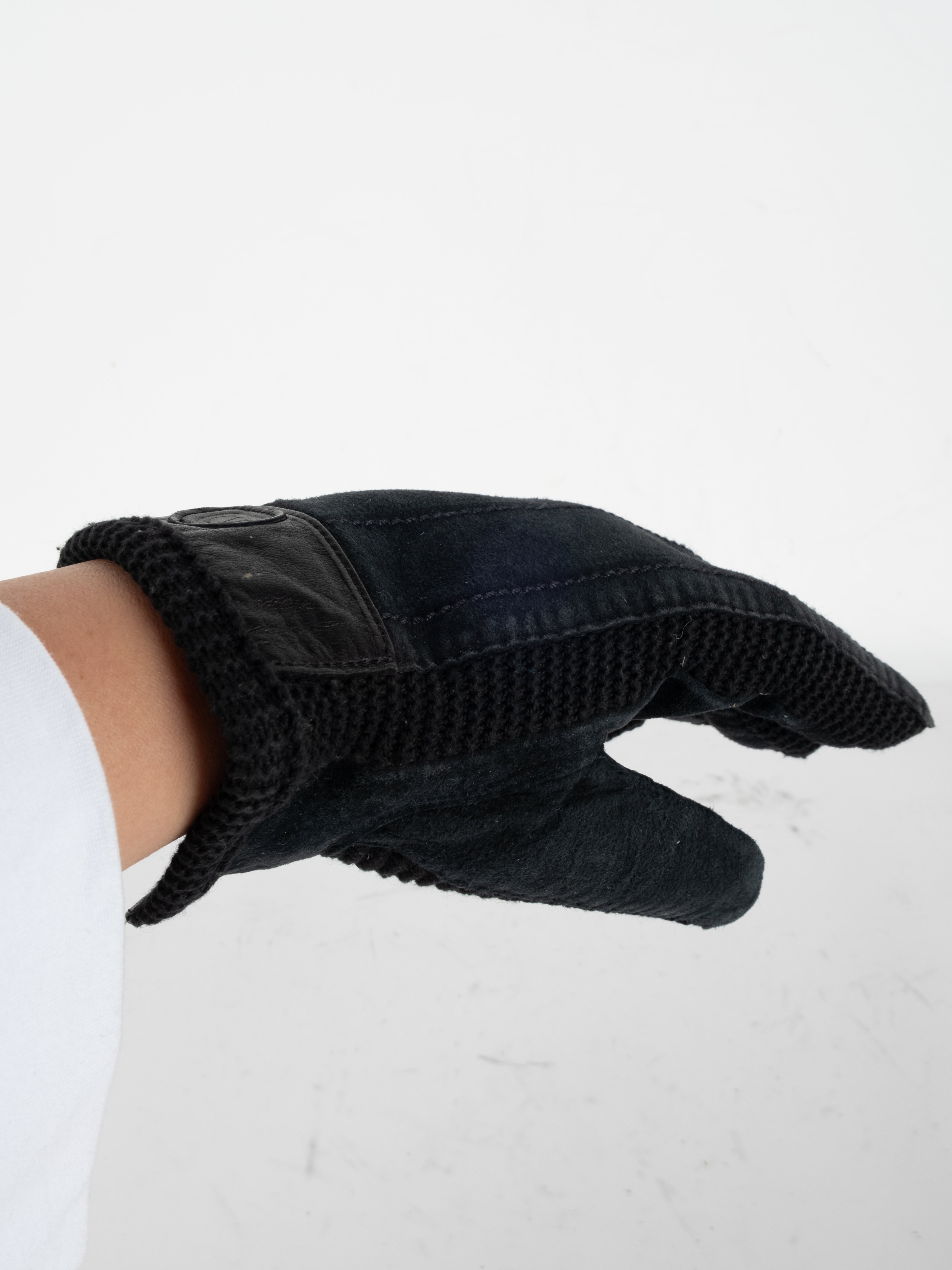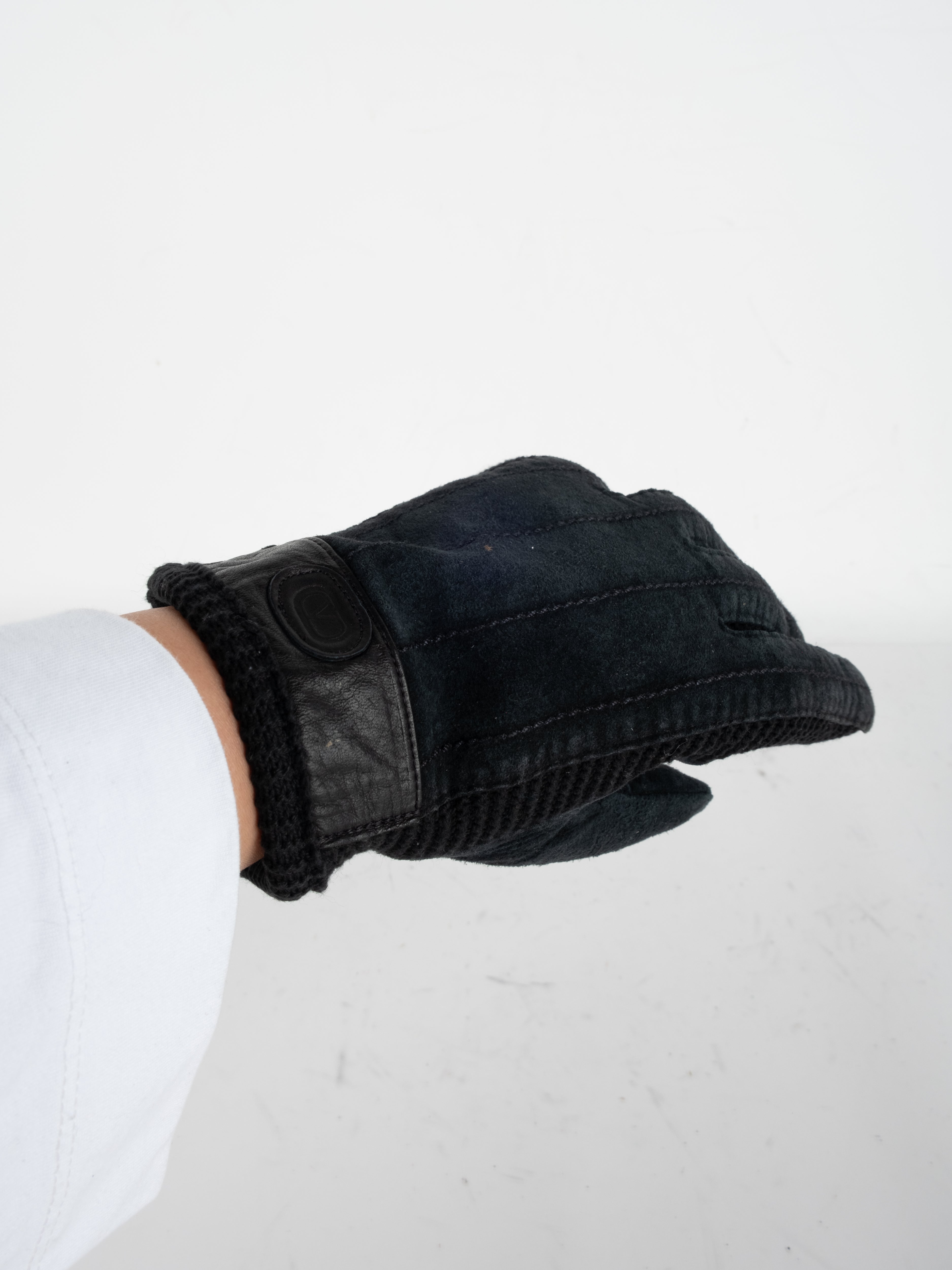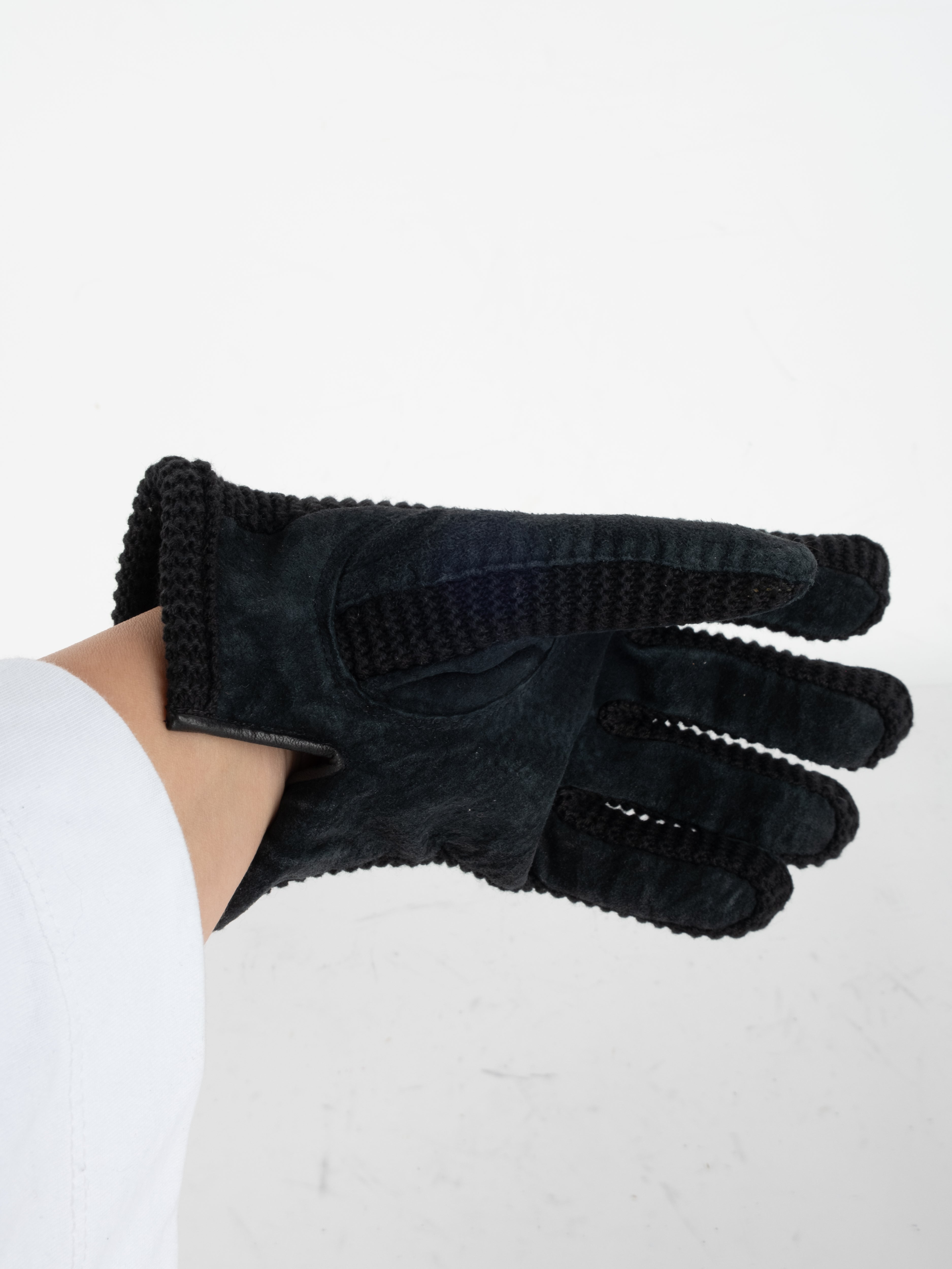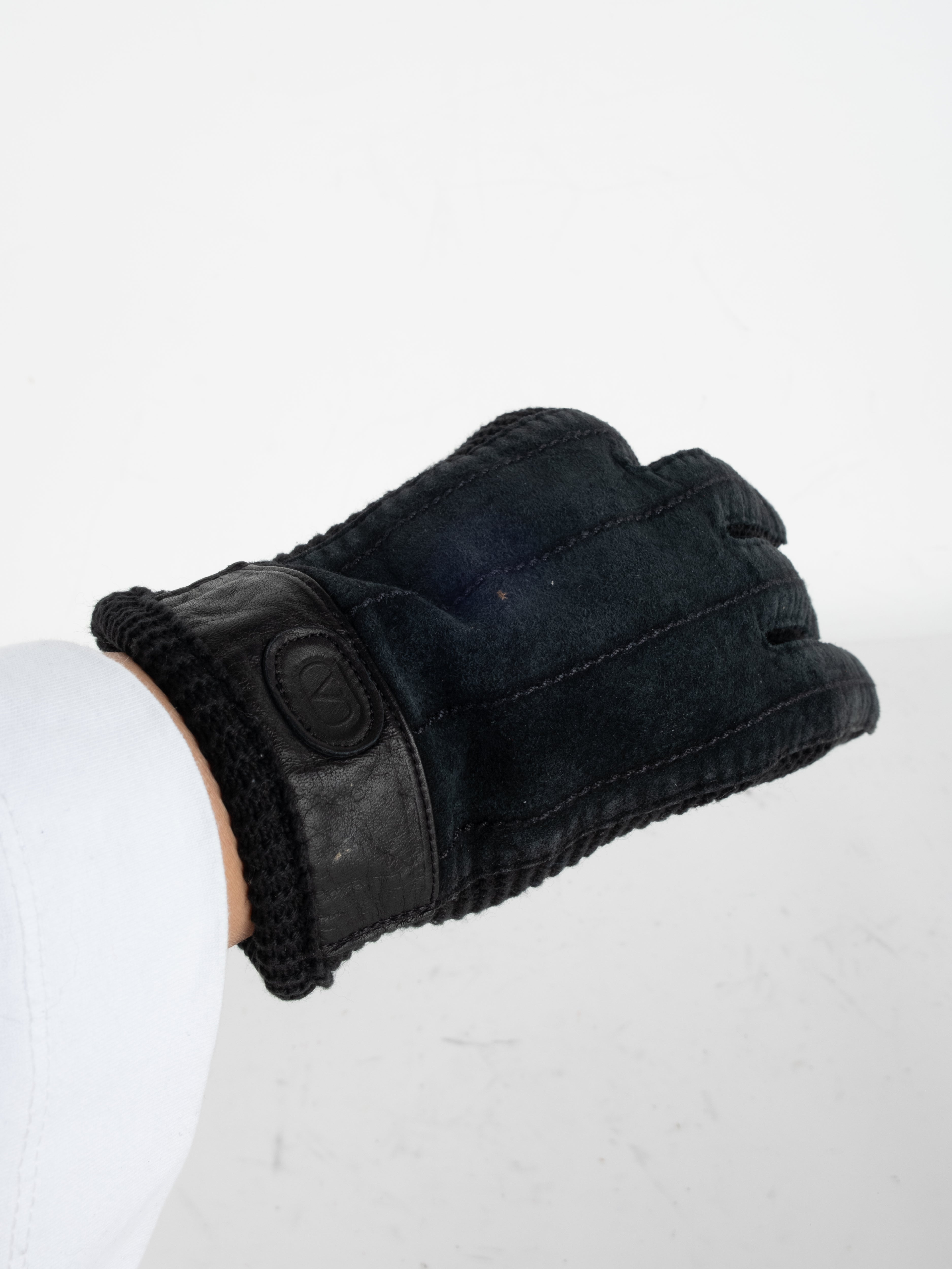 הכפפות עשויות זמש שחור עם מרקם רך. קווי תפר דקורטיביים לאורך כל הכפפה.