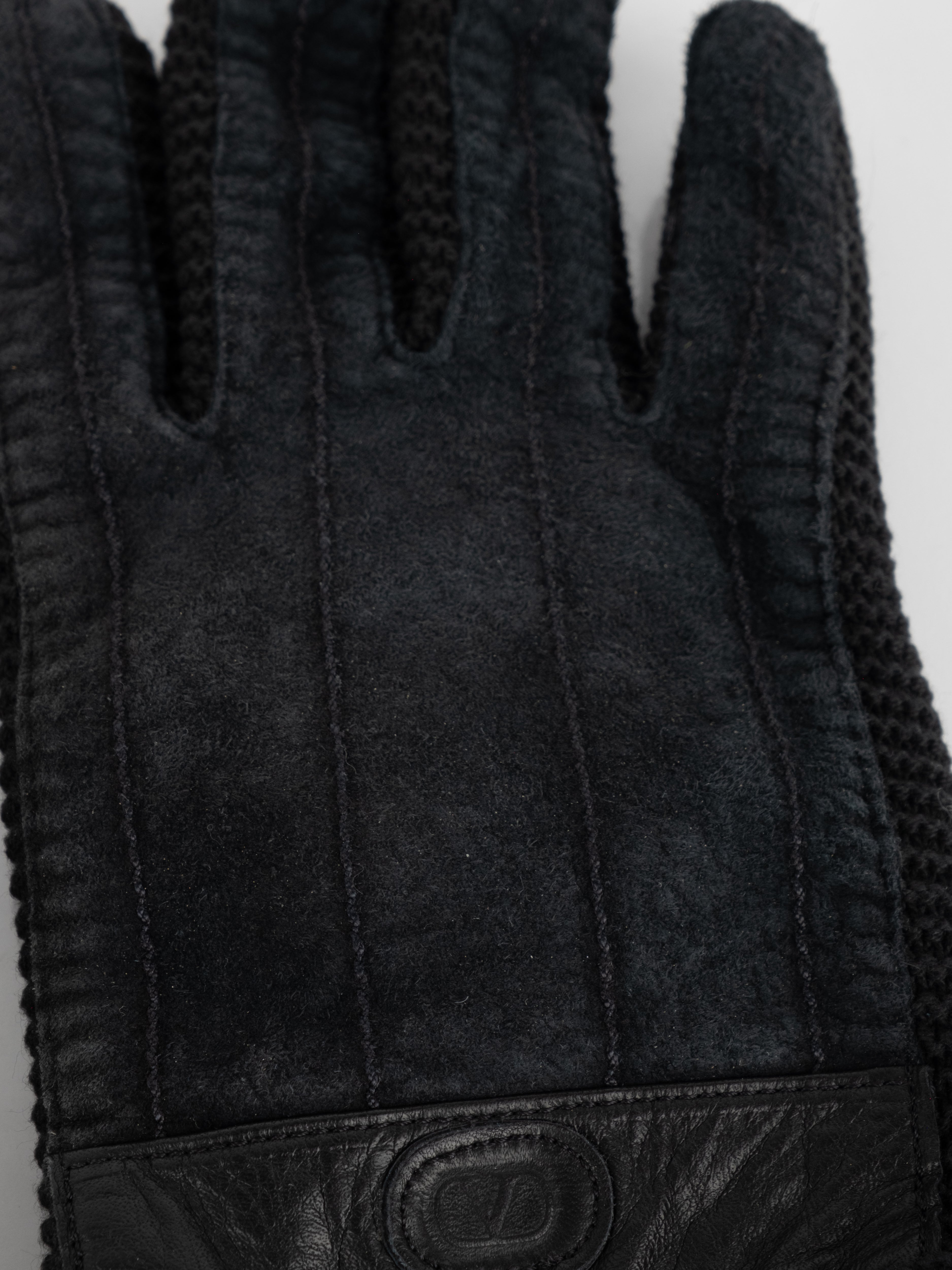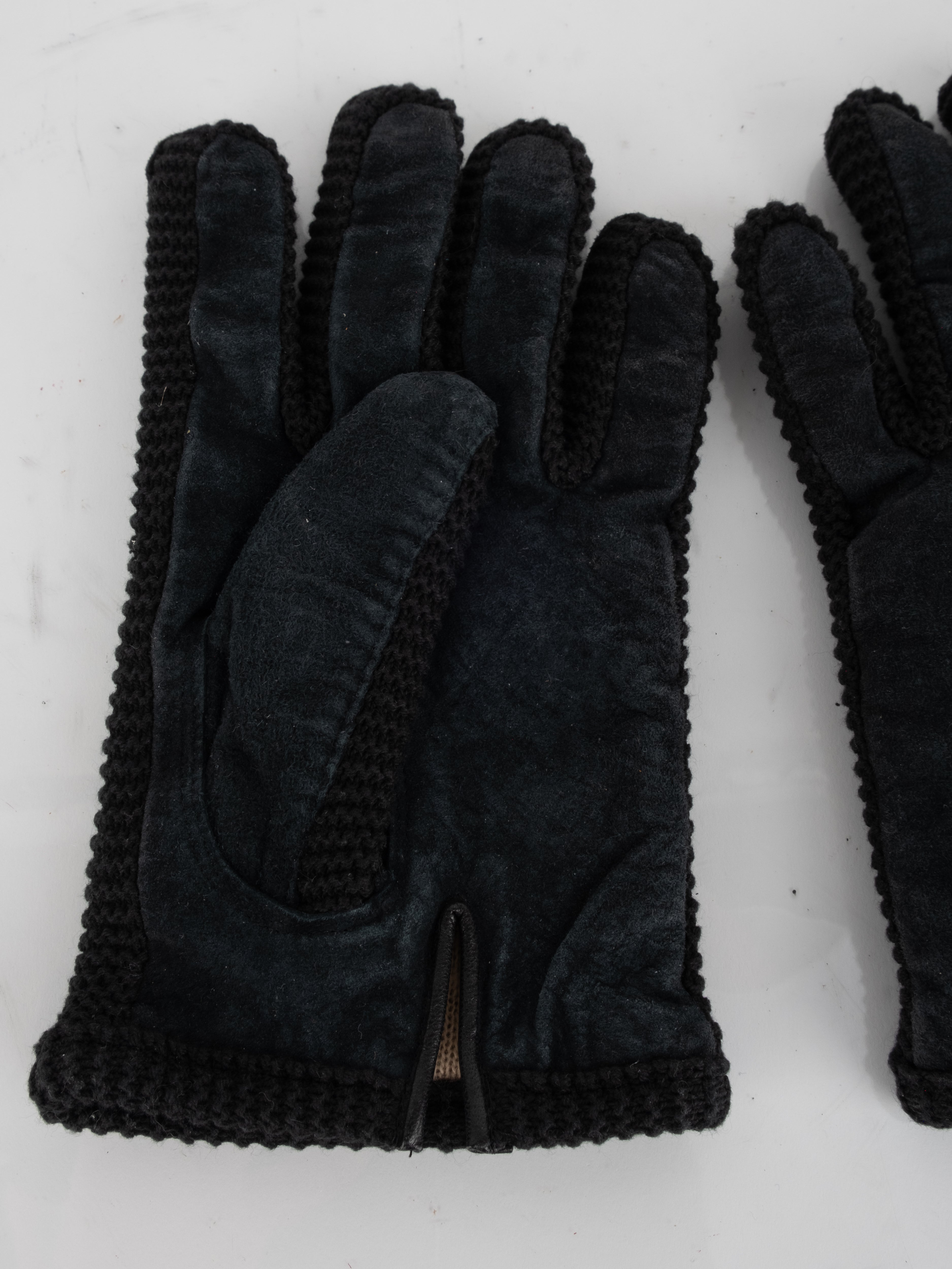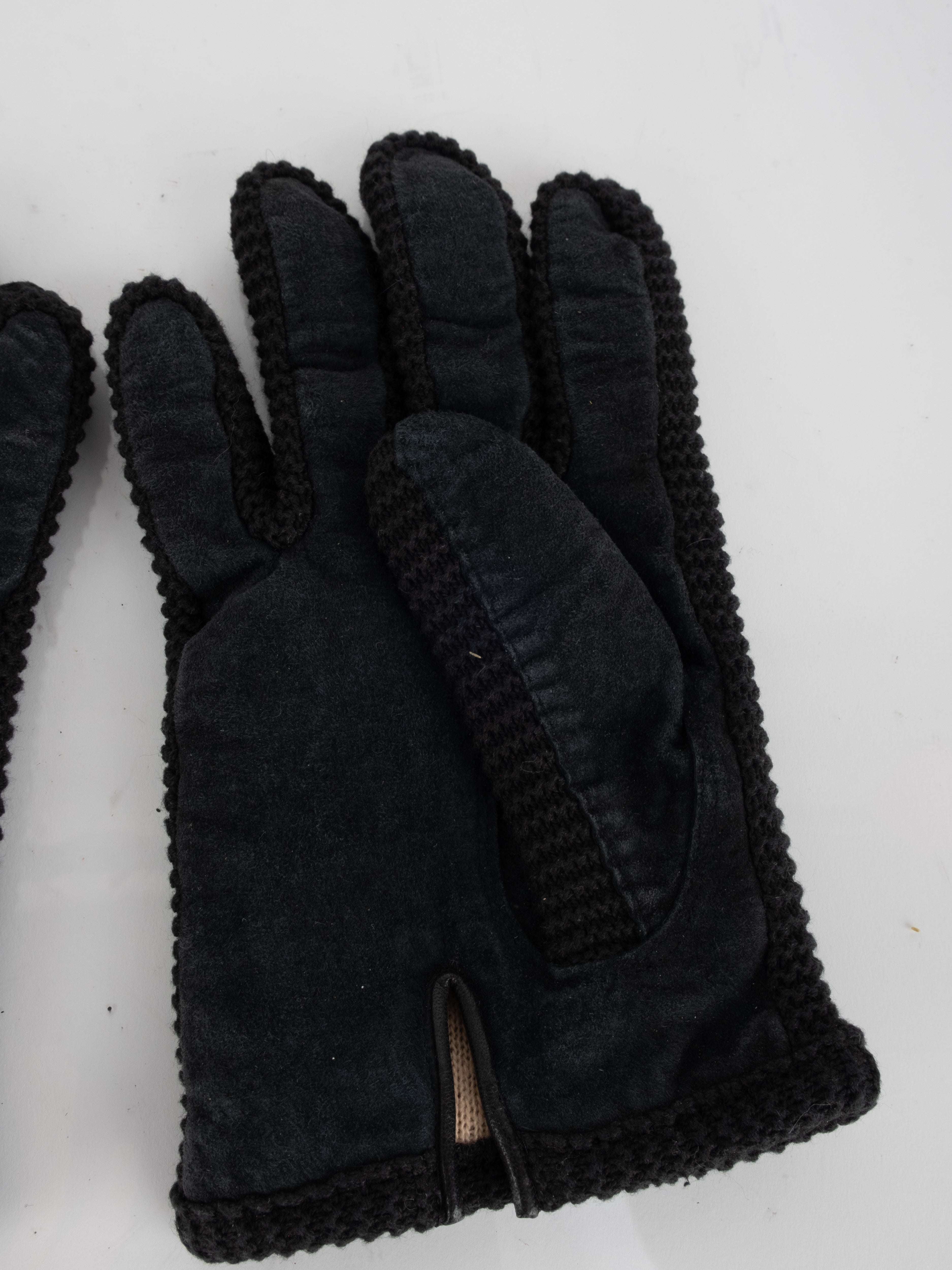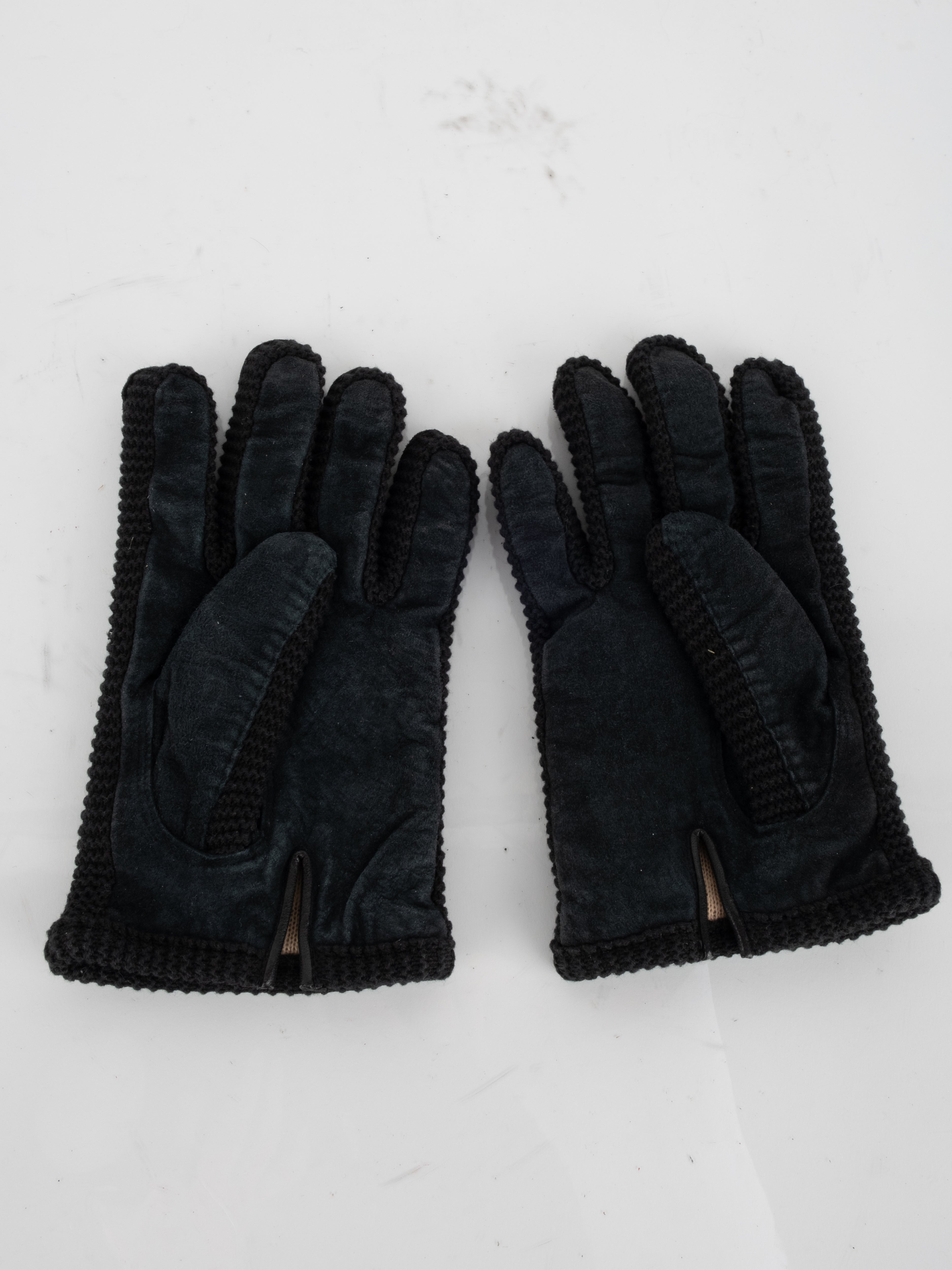 הכפפות עשויות זמש שחור עם מרקם רך. קווי תפר דקורטיביים לאורך כל הכפפה.