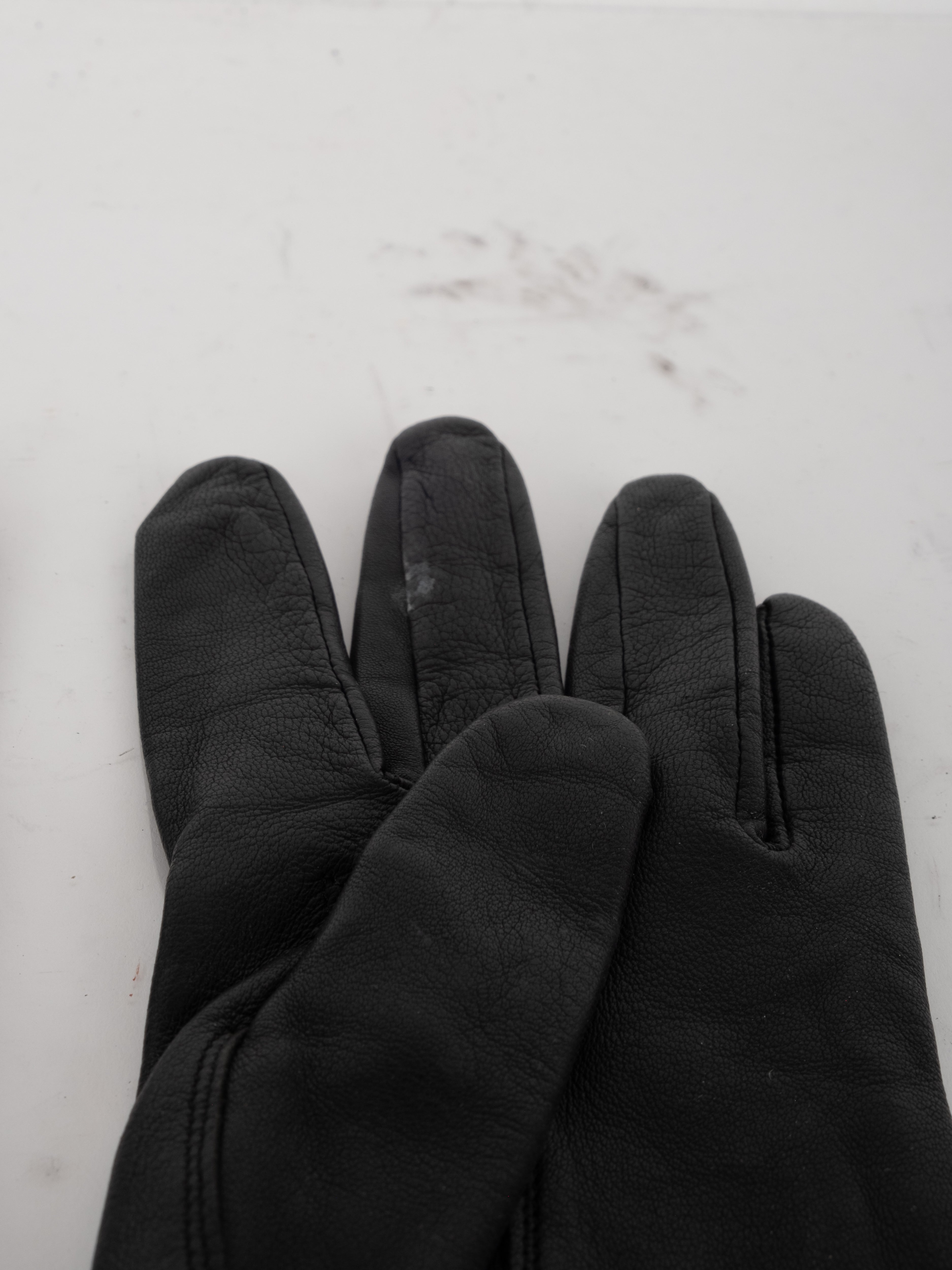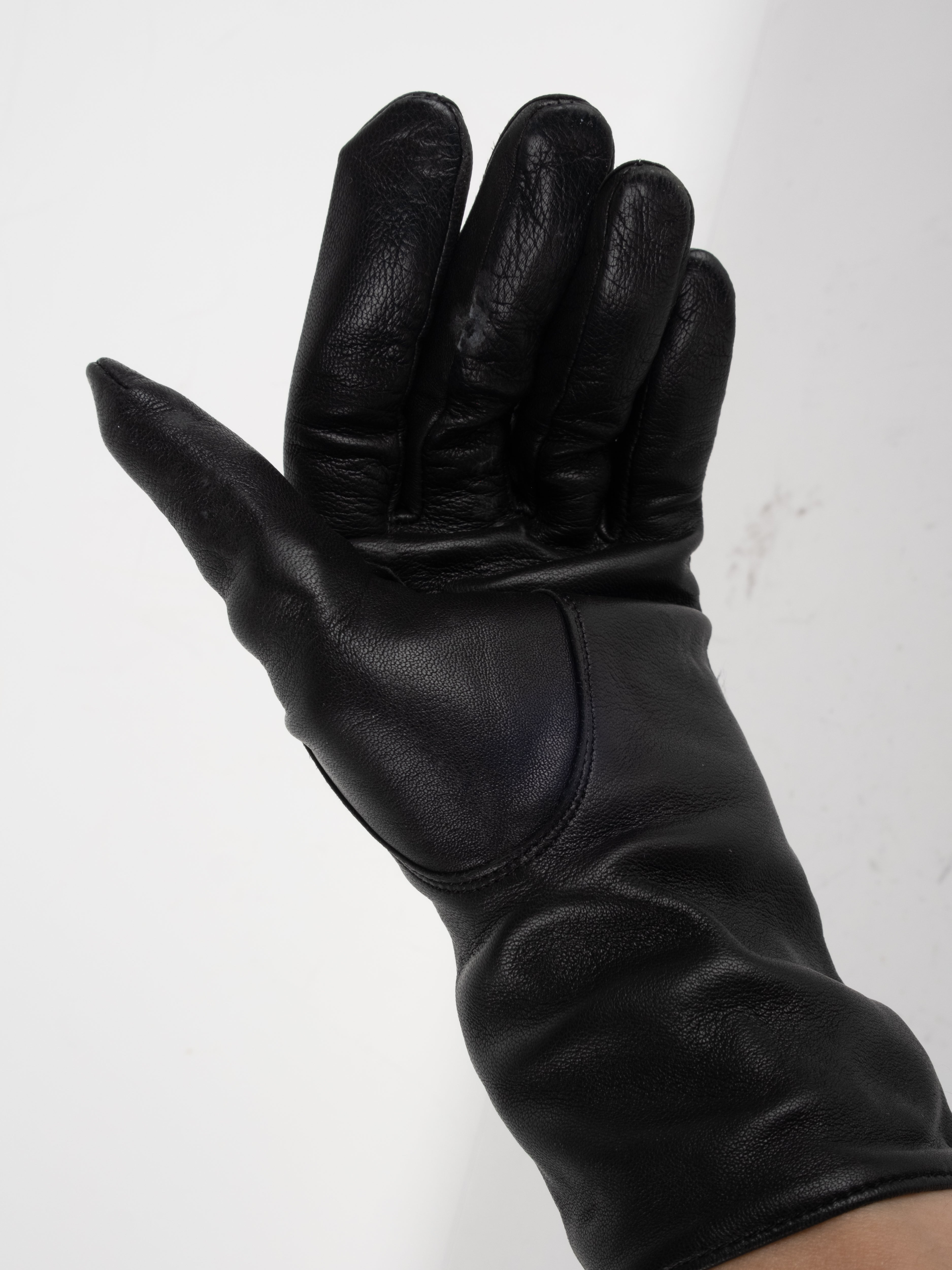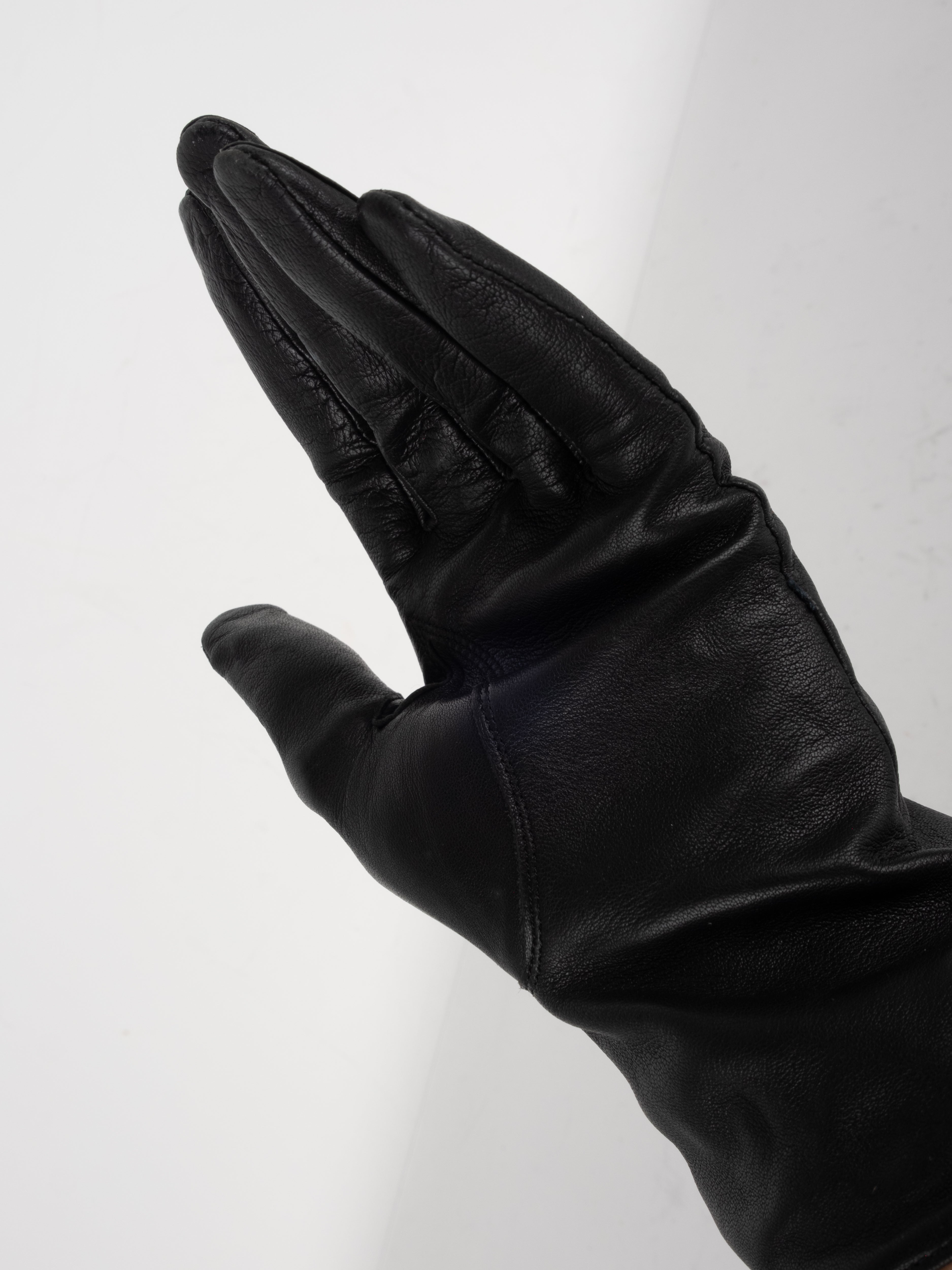 הכפפות עשויות עור שחור רך בחלק הפנימי, וחלק עליון סרוג מלא טקסטורה. גימור עור בקצה הכפפה, תפירה איכותית ומראה קלאסי.