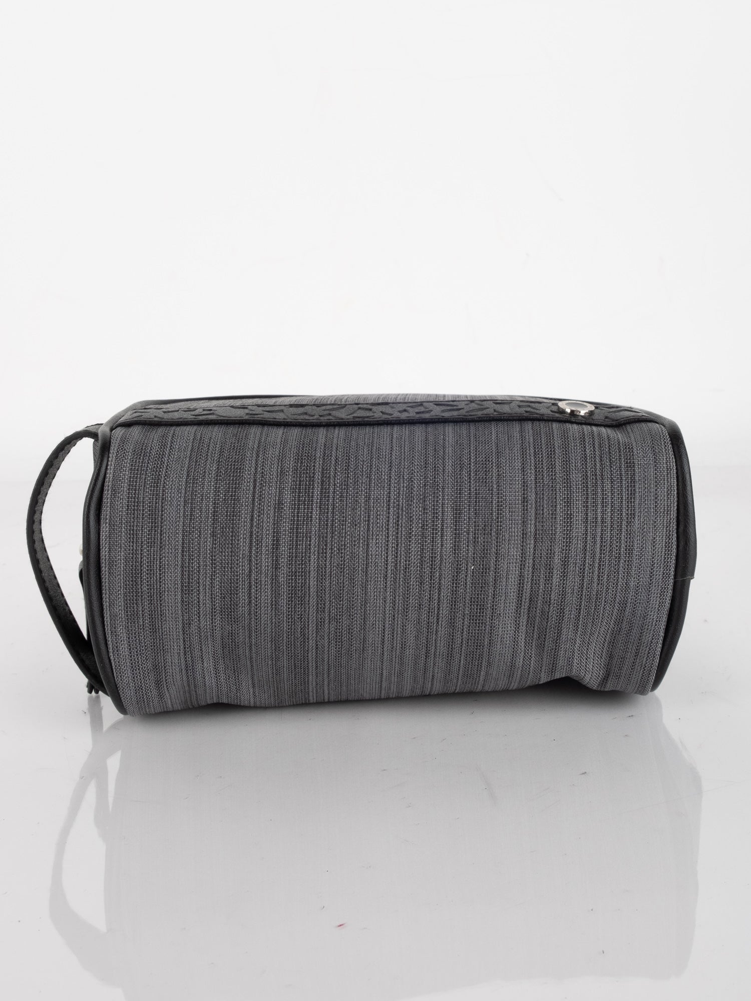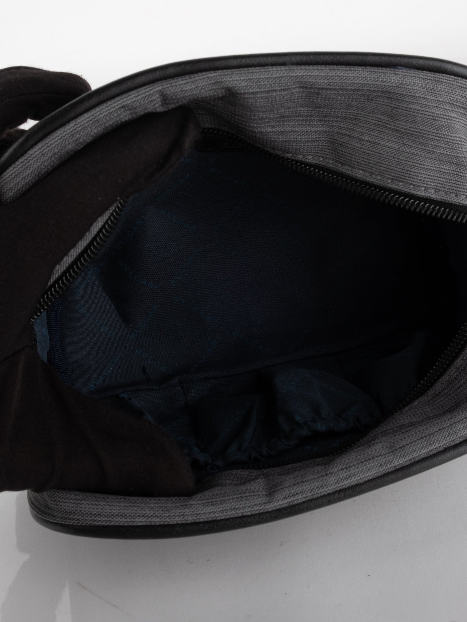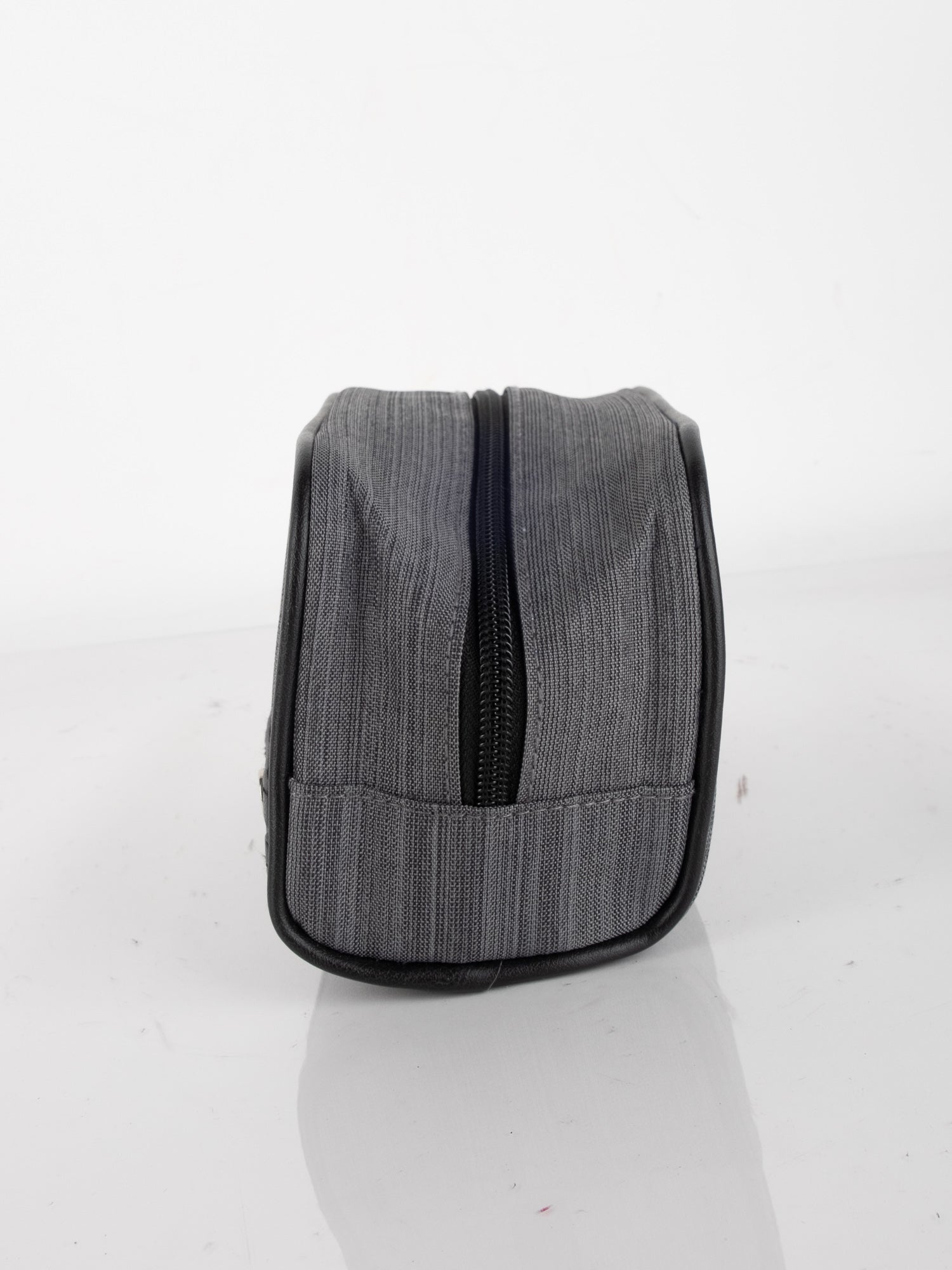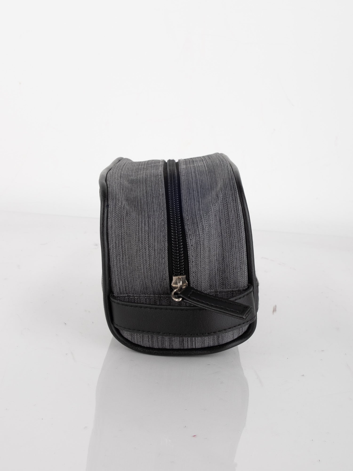 עשוי בד טקסטורתי בגוון אפור עם פס עור שחור בתחתית, רוכסן עליון באיכות גבוהה ותא מרכזי רחב עם בטנת בד פנימית.