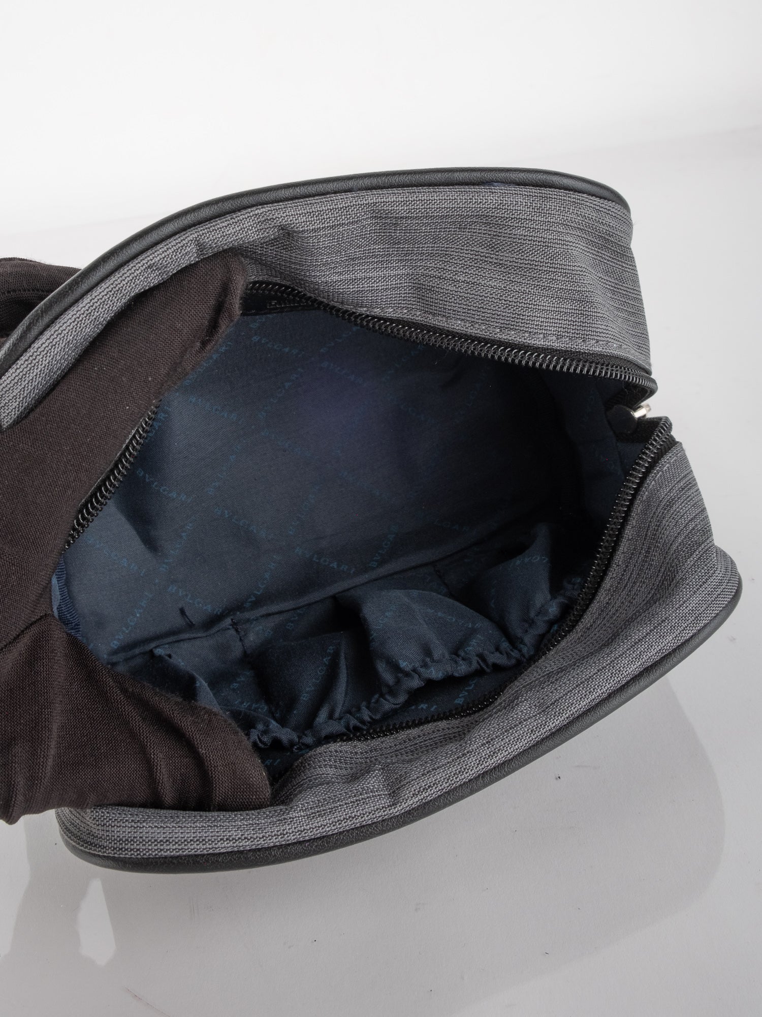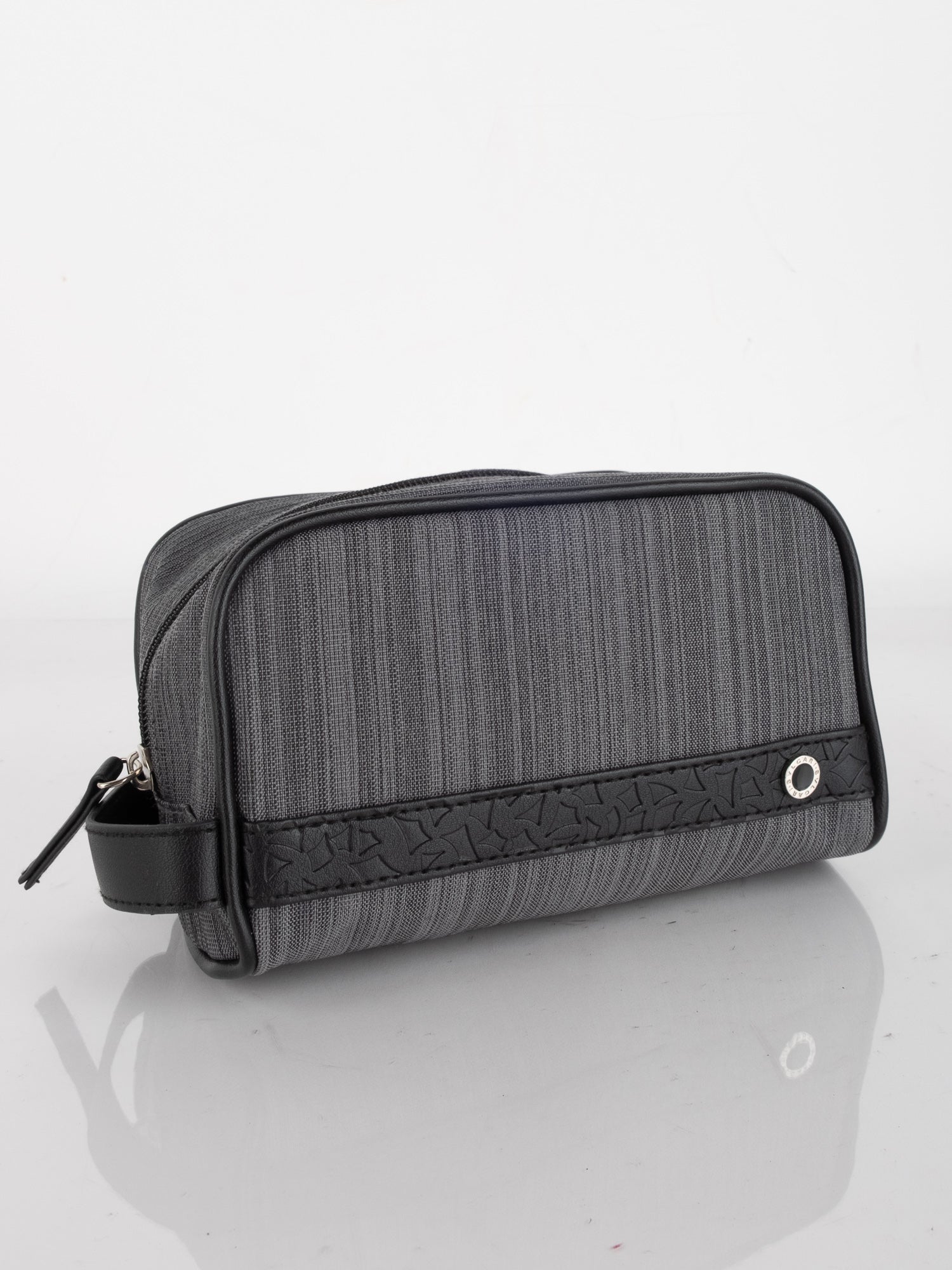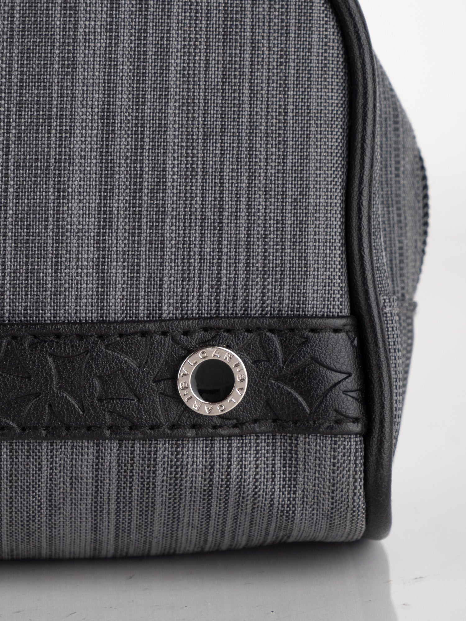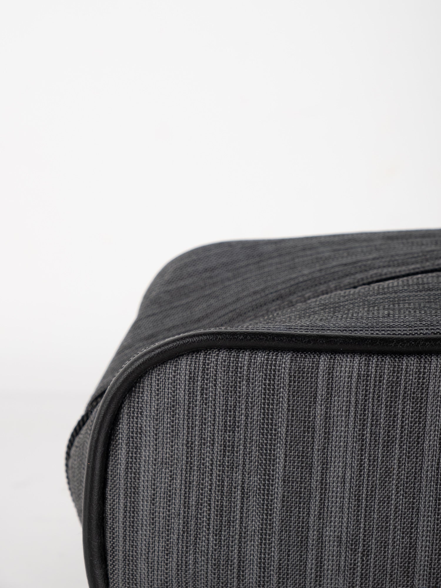 עשוי בד טקסטורתי בגוון אפור עם פס עור שחור בתחתית, רוכסן עליון באיכות גבוהה ותא מרכזי רחב עם בטנת בד פנימית.