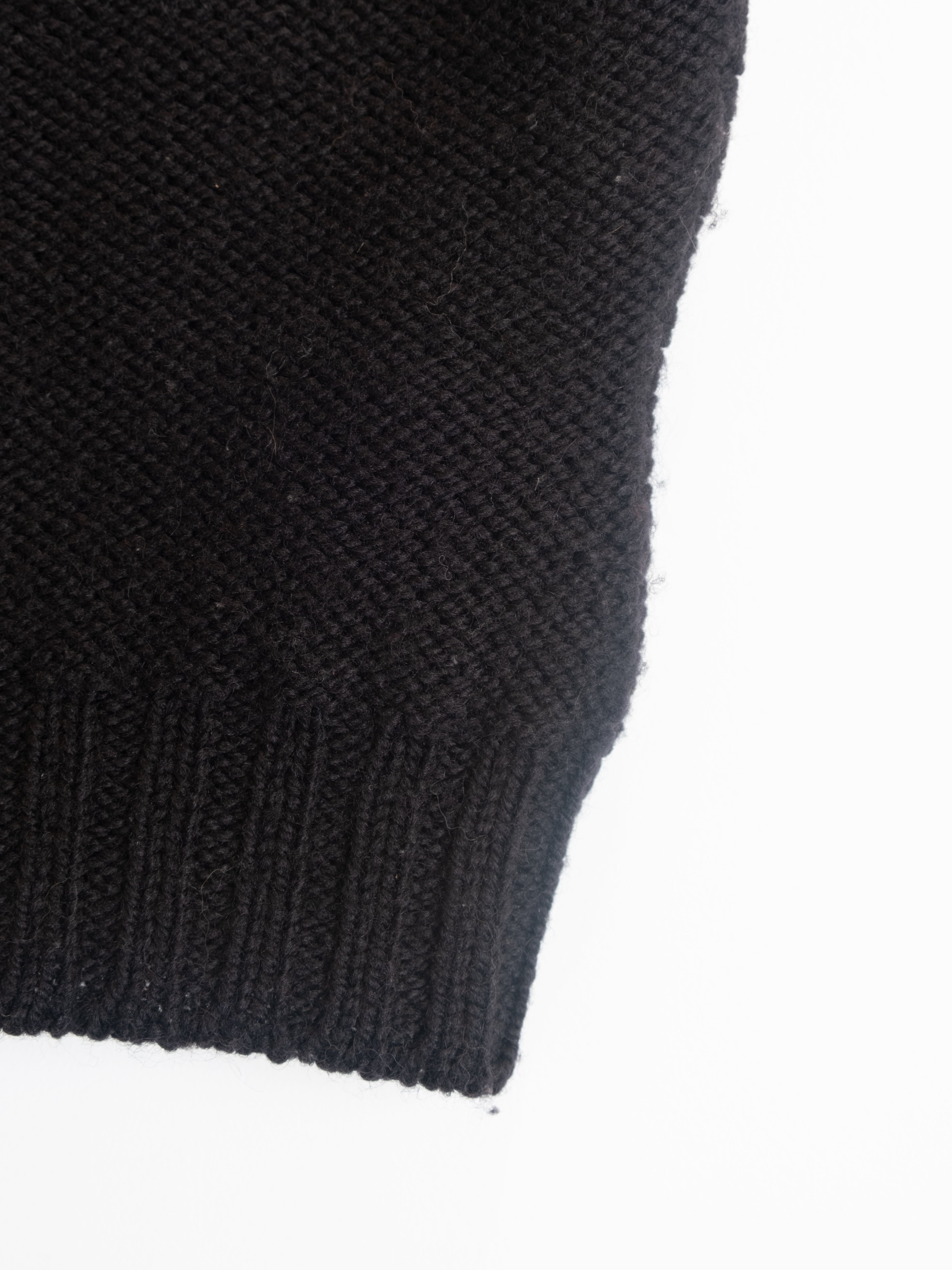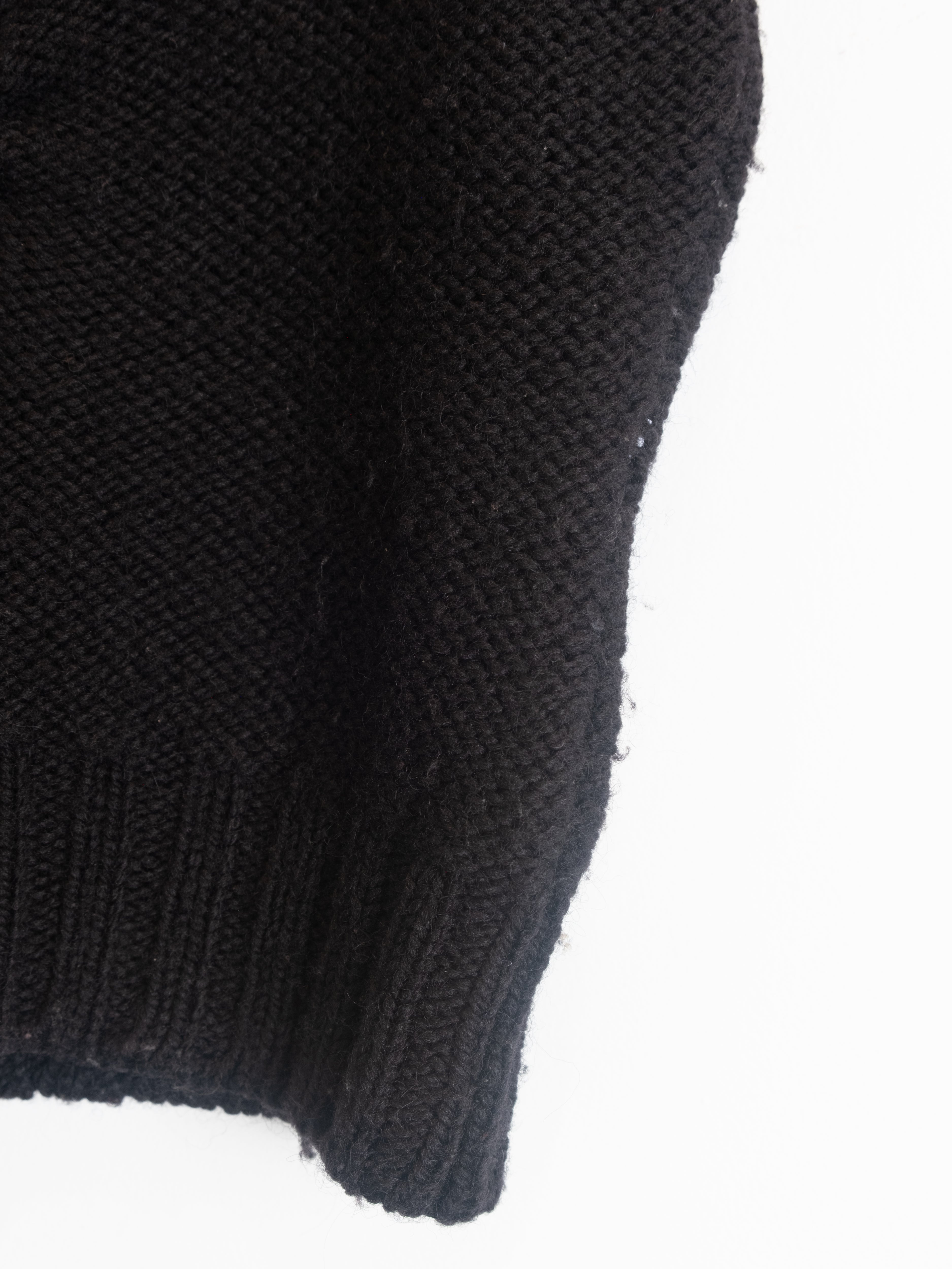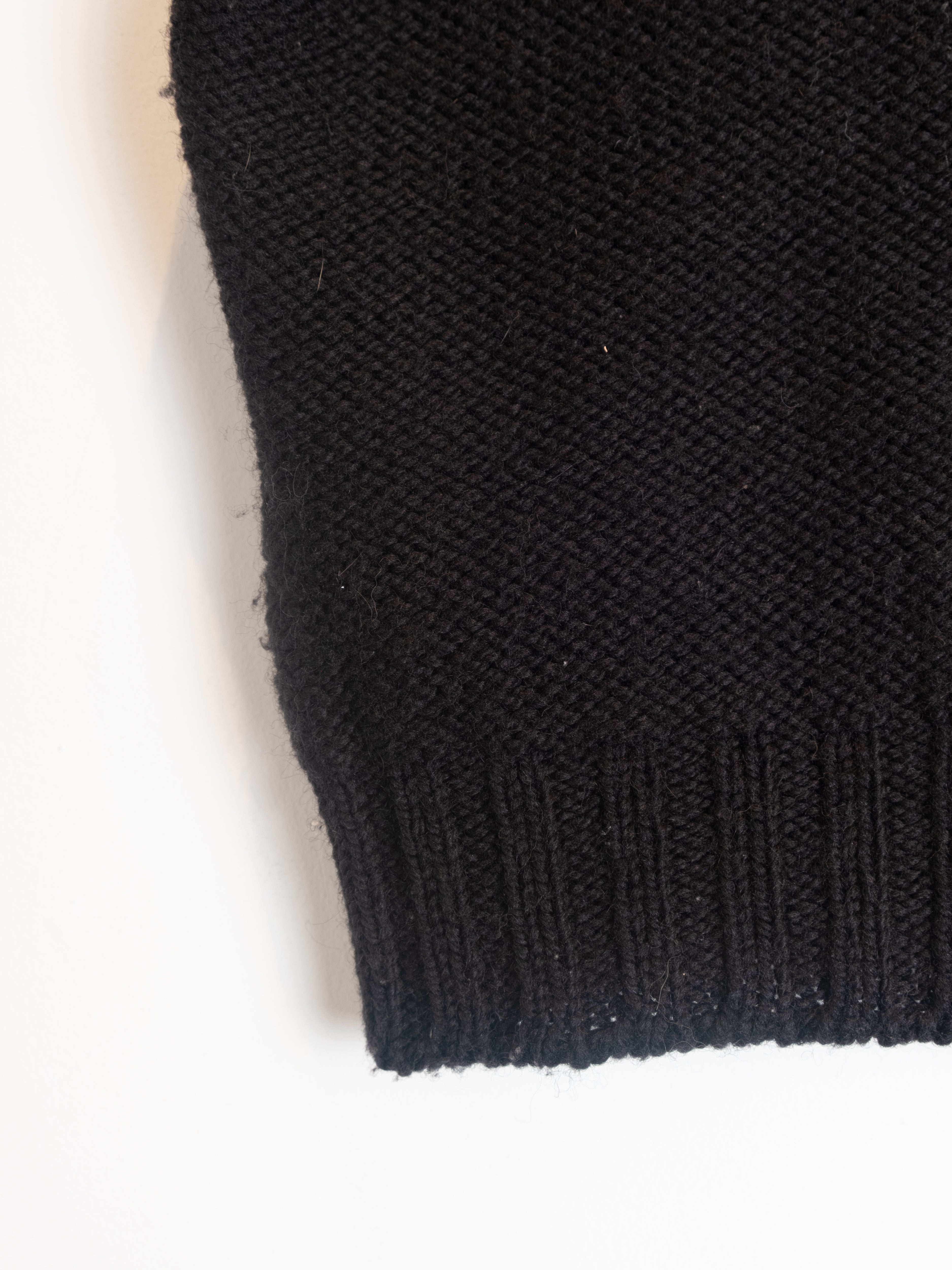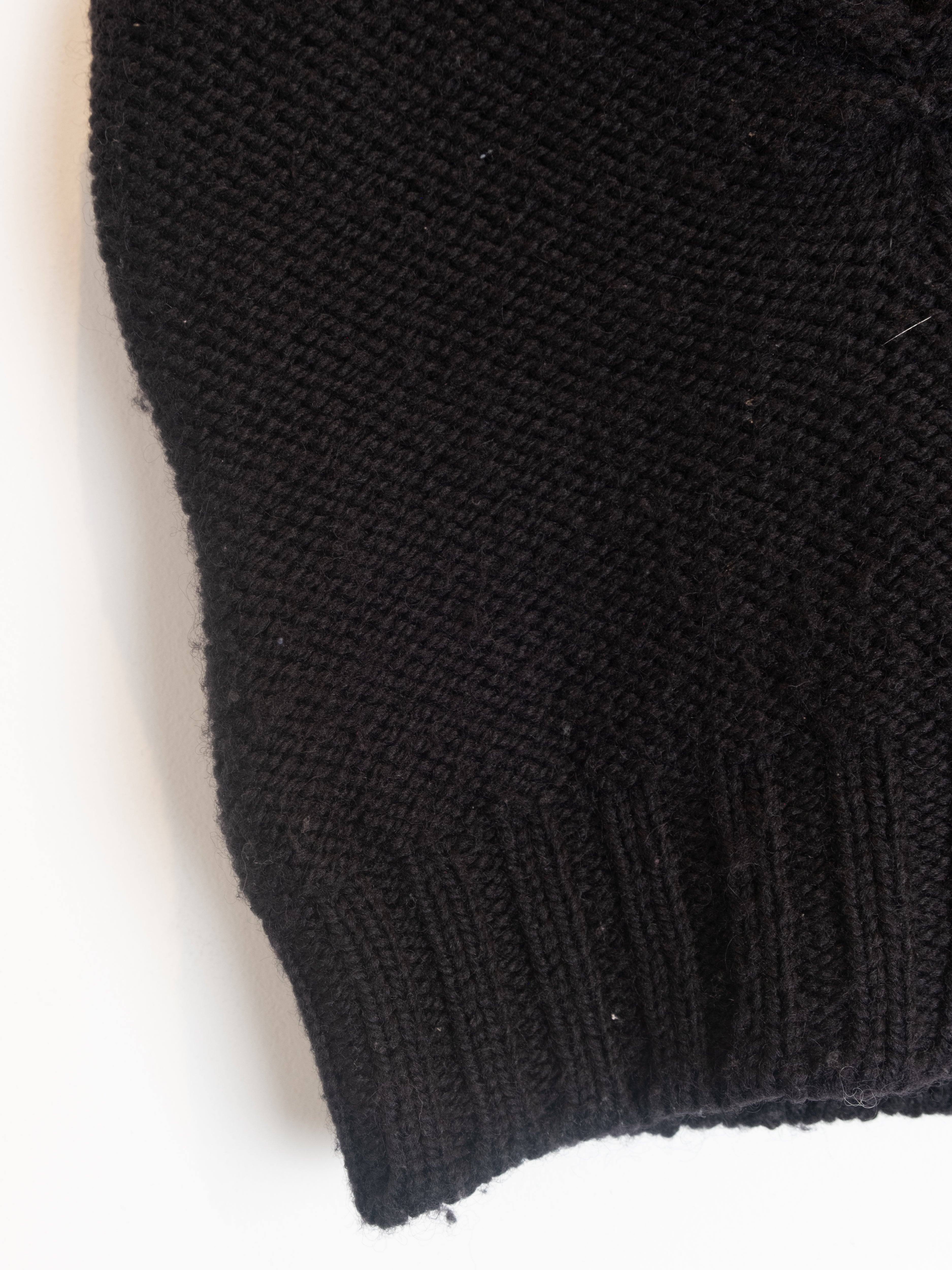 הווסט עשוי צמר רך ונעים למגע, בגוון שחור אחיד. מפתח V קדמי, סריגה אלסטית באזור המותן למראה מחמיא, וגימור נקי ואיכותי לכל אורכו. ללא מידה מצוינת על התווית.