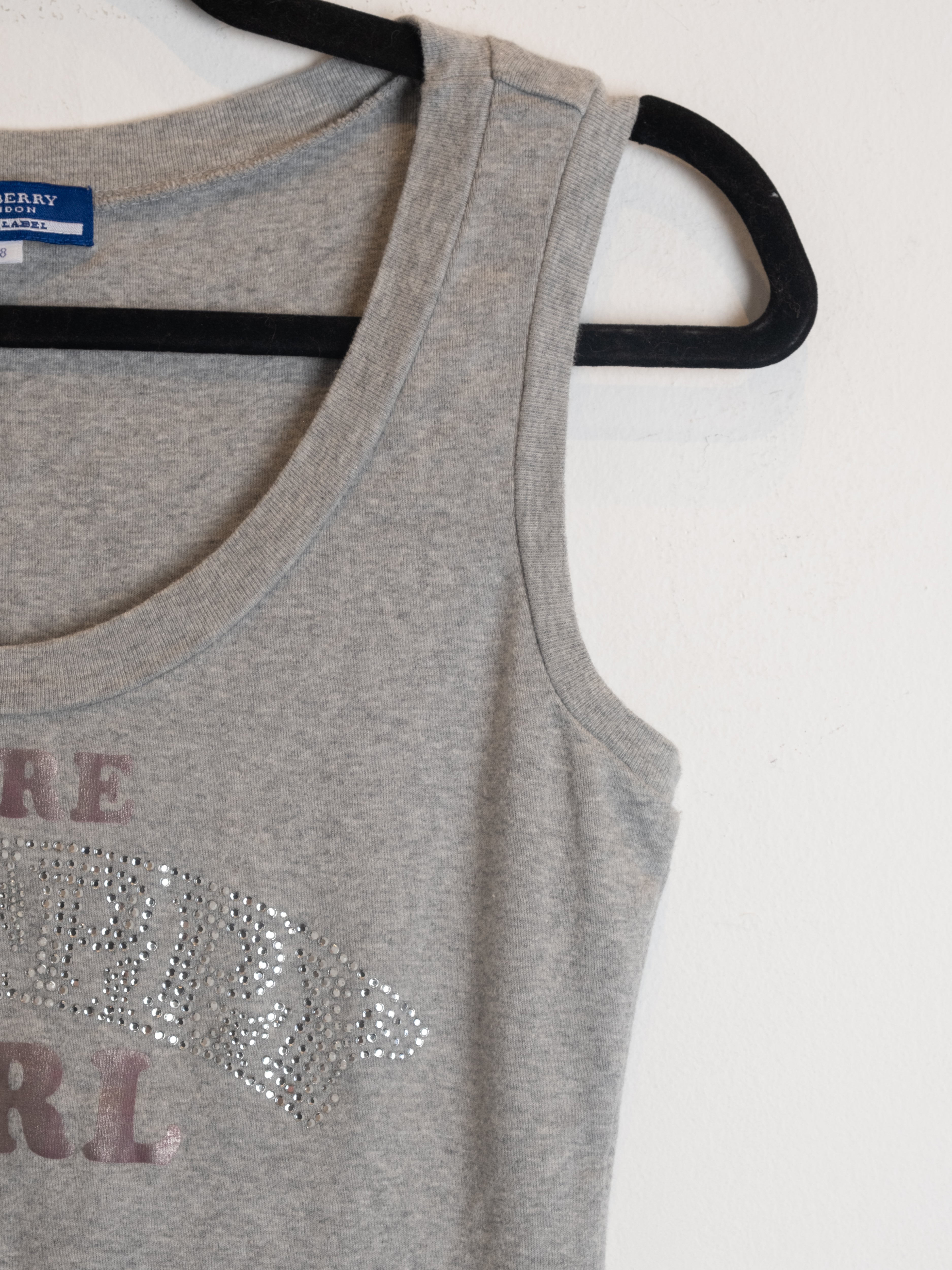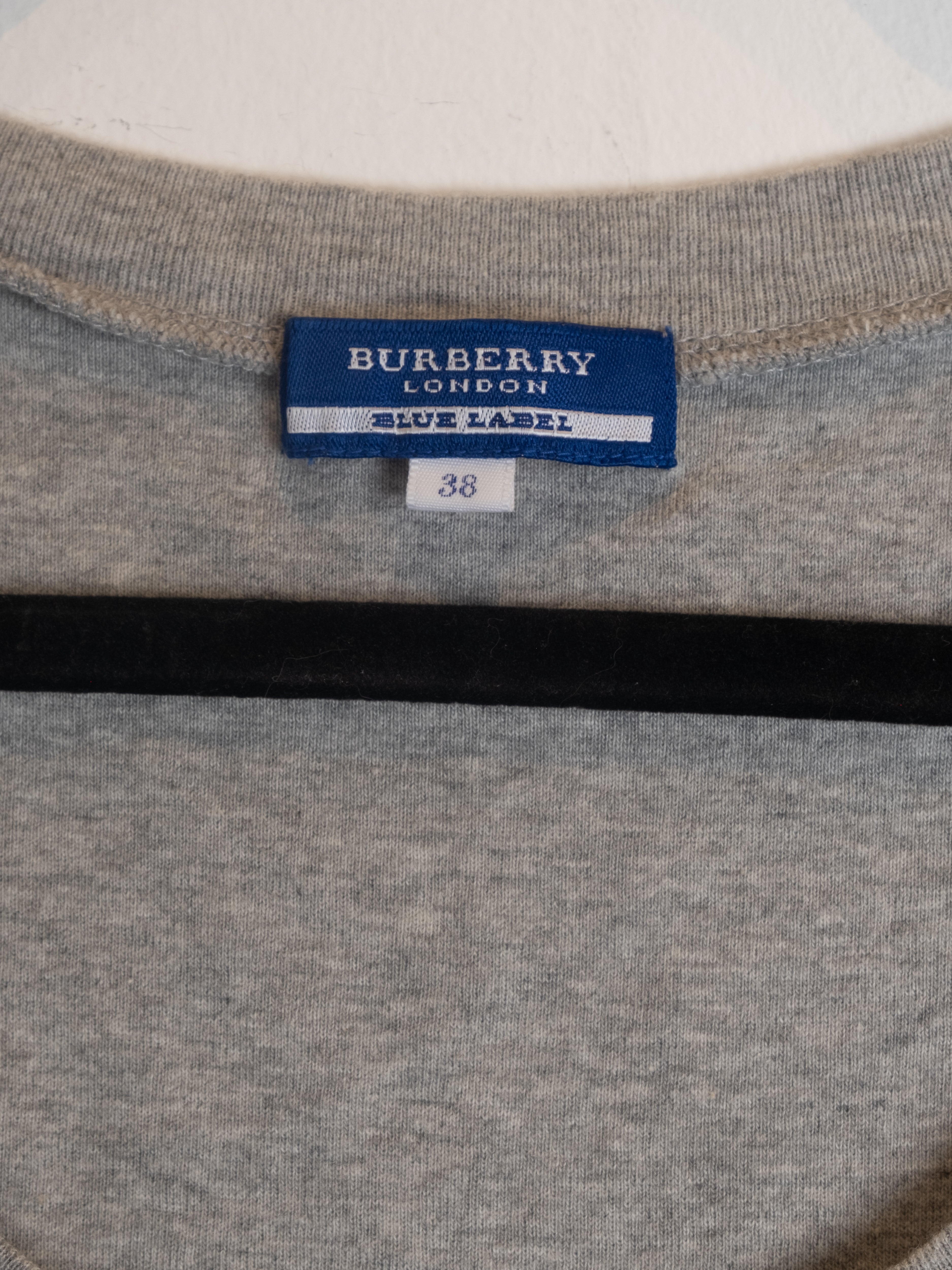 View Similar Productsגופייה אפורה רכה ונעימה מבית Burberry וינטג' יד שנייה, בעיצוב נקי ובגזרה מחמיאה ליומיום. החזית מעוטרת בכיתוב עדין בשילוב נצנוץ קל, המוסיף טאץ’ נשי אך אלגנטי. פריט יומיומי שהופך בקלות ללוק מעודן, איכותי ומלא אופי בריטי קלאסי.