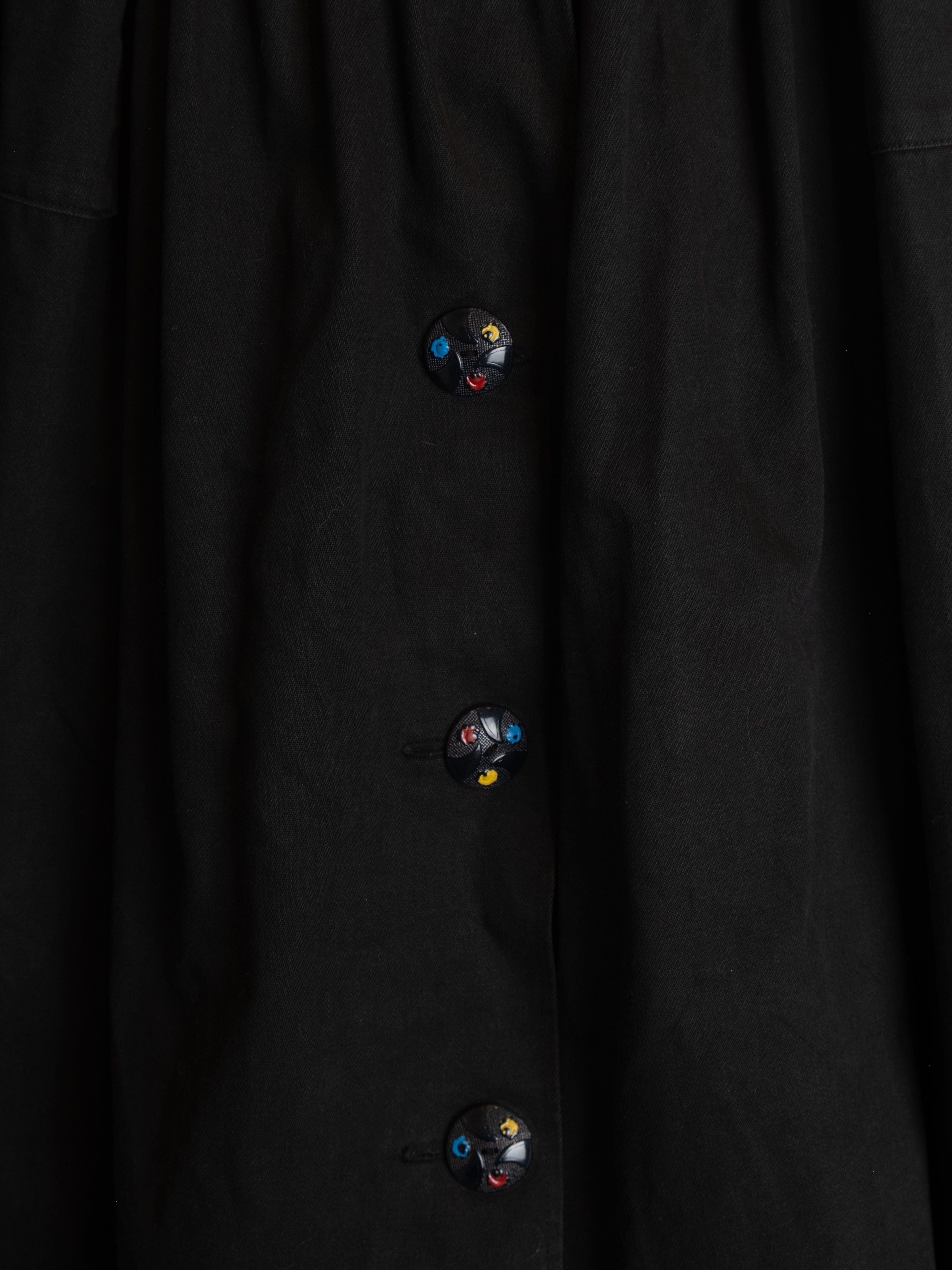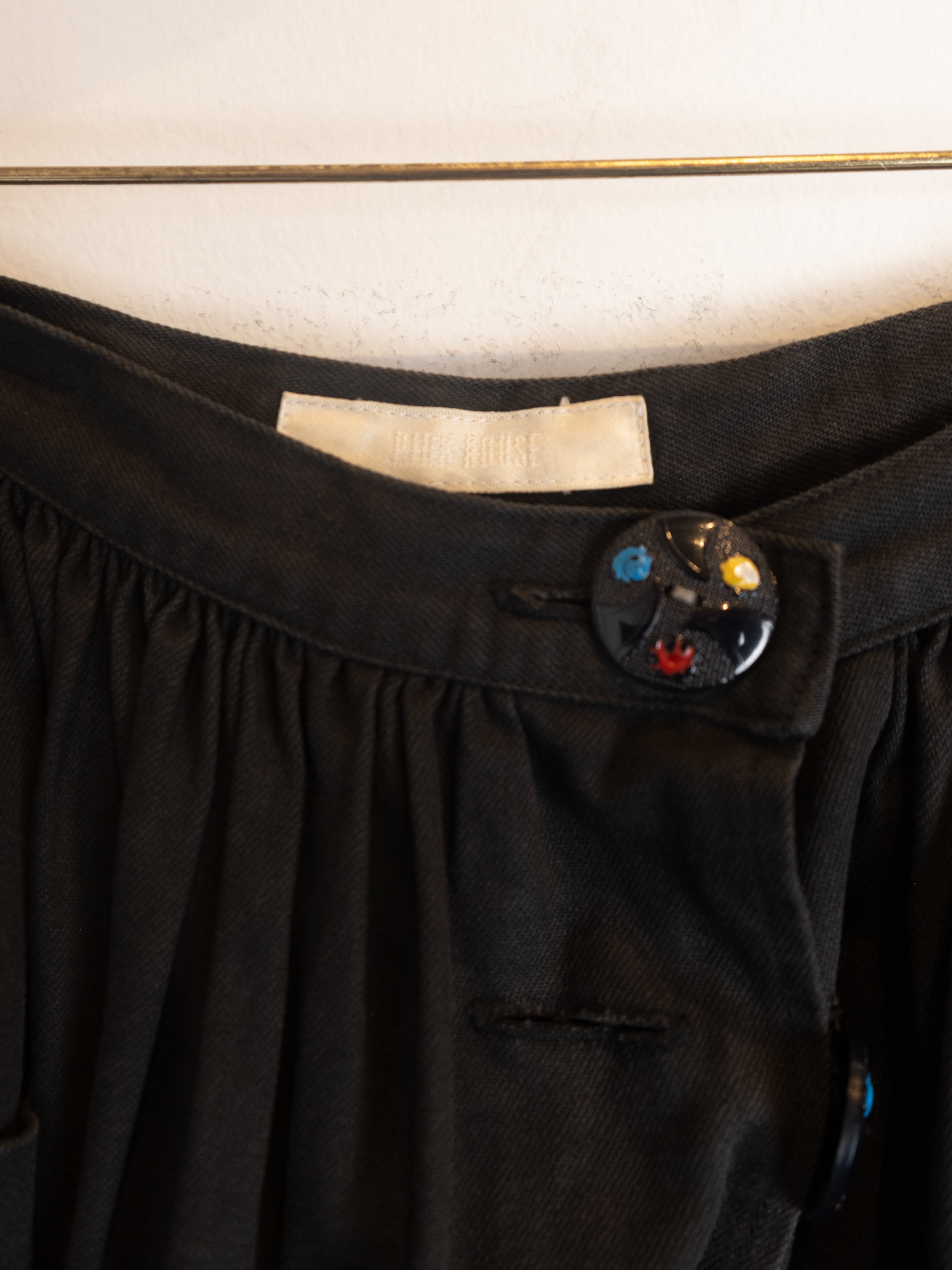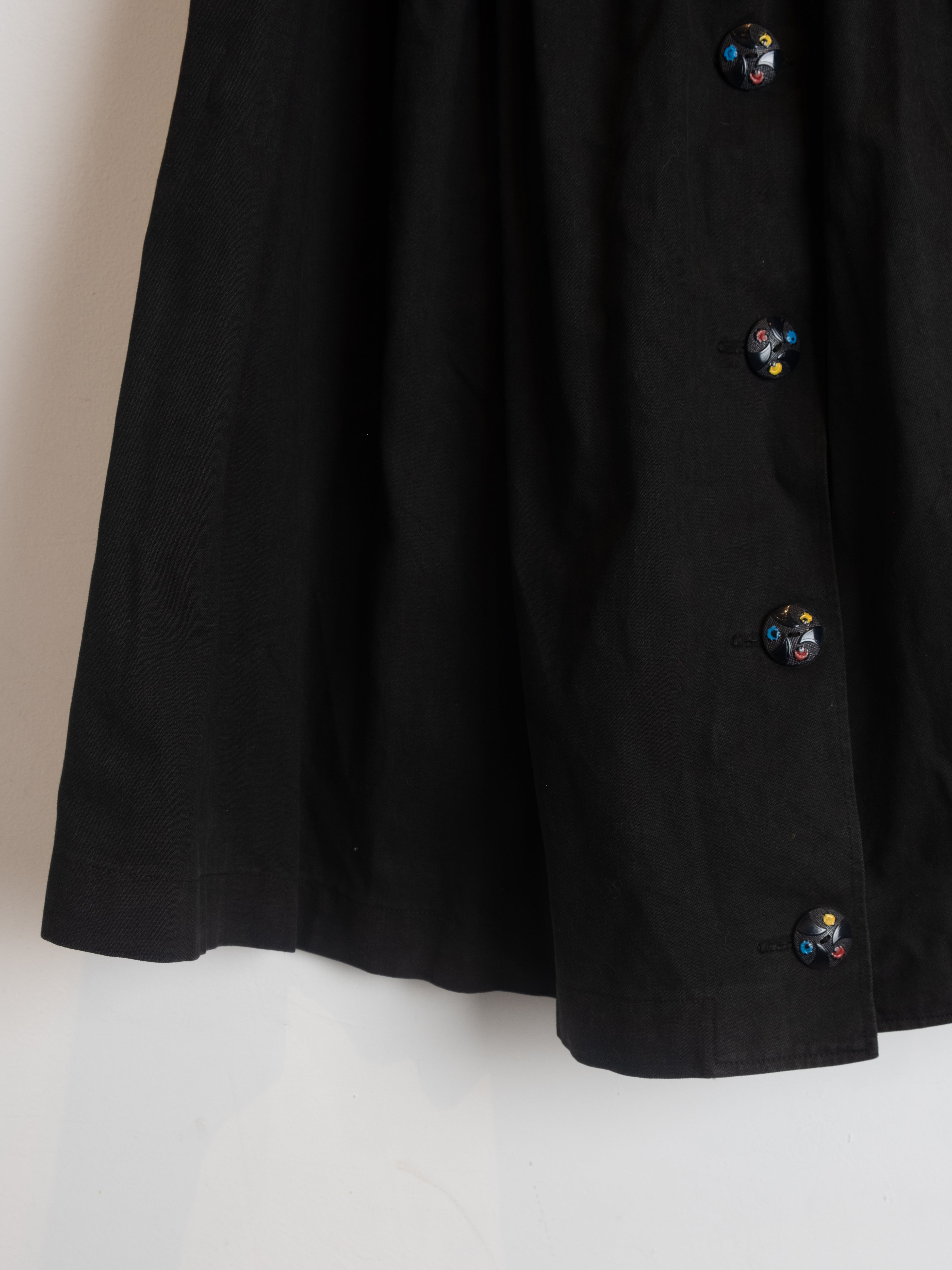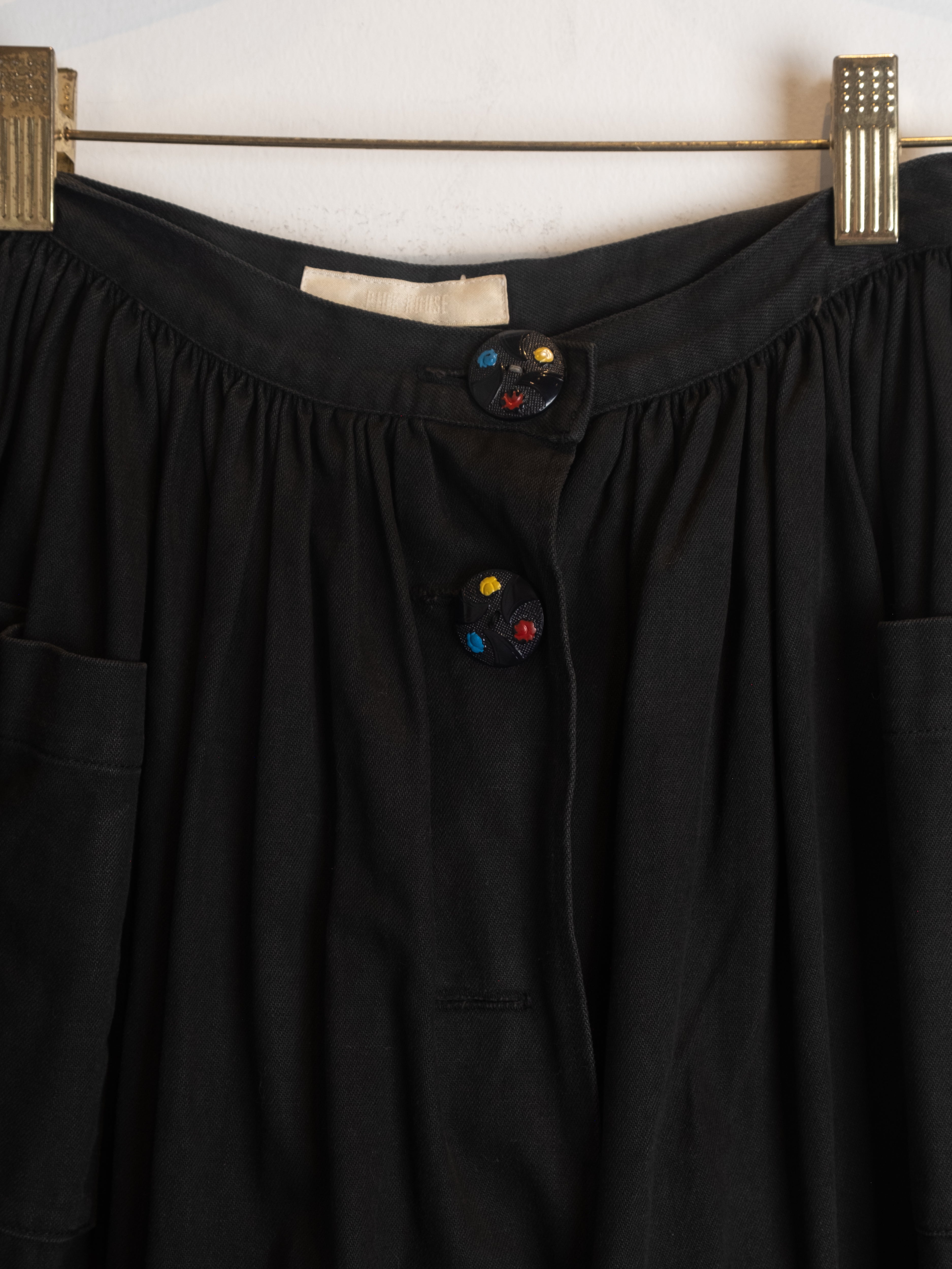 החצאית עשויה בד שחור נשפך ונעים למגע.