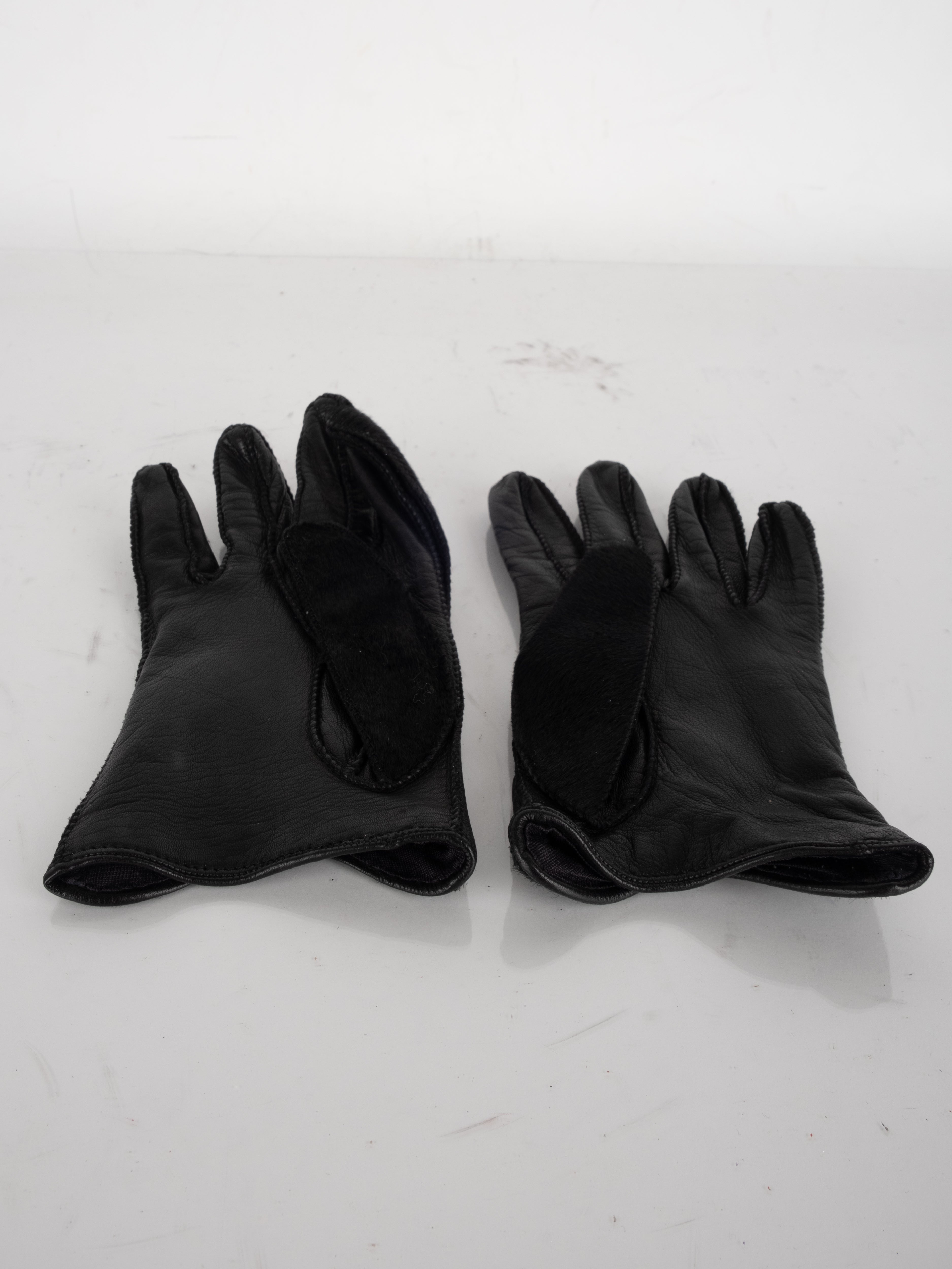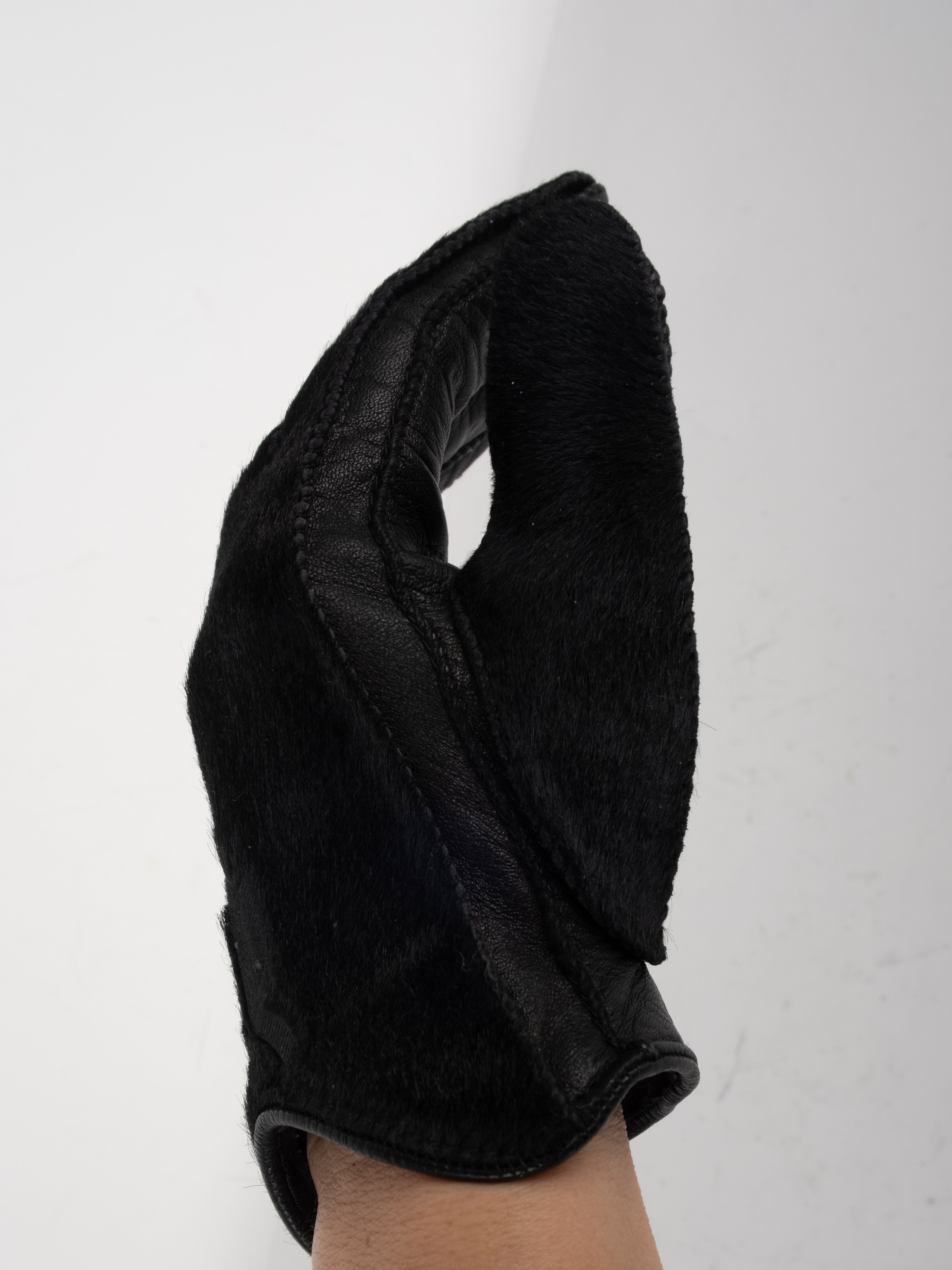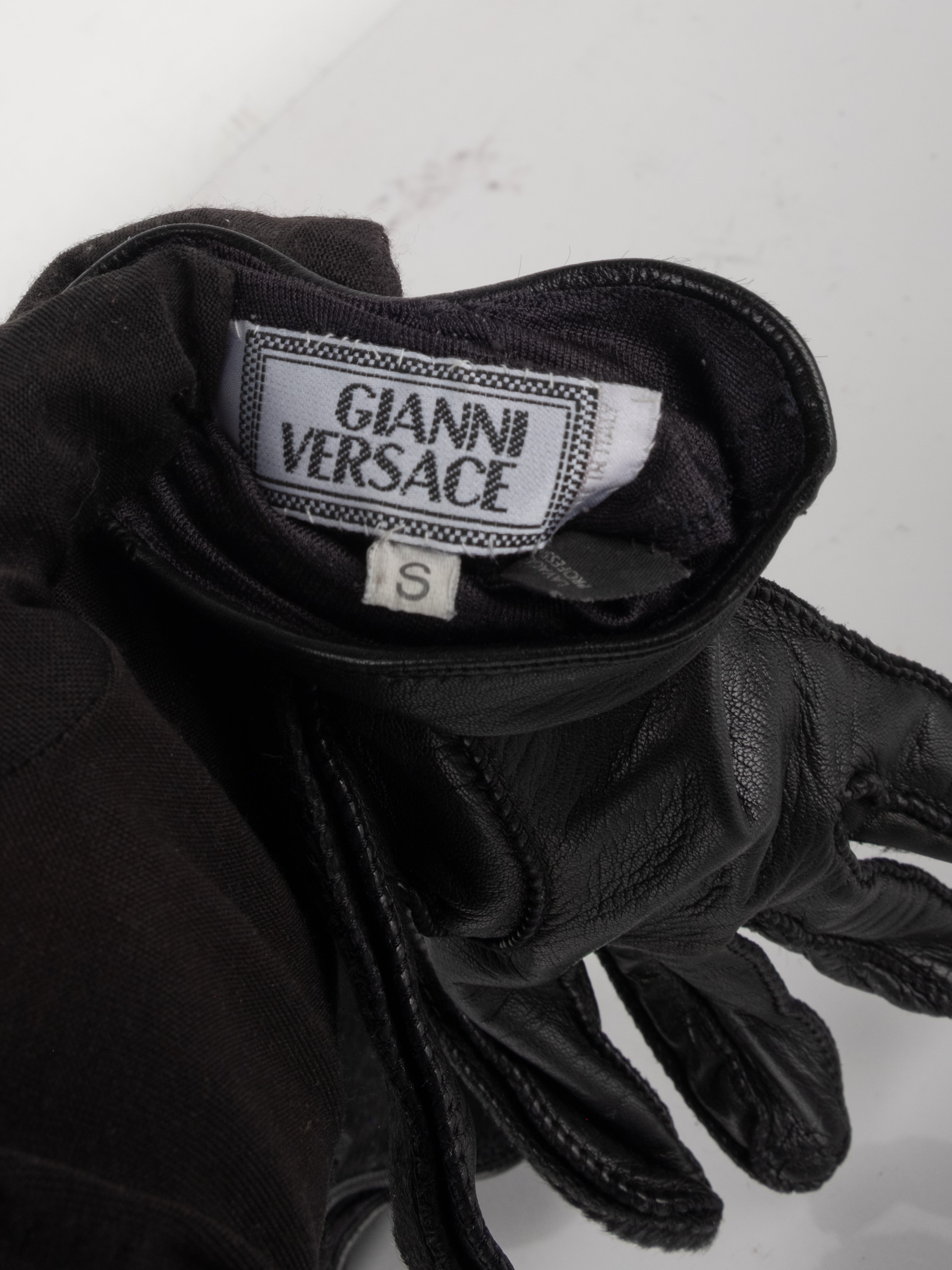 Gianni Versace Black Leather & Knit Gloves פרווה נדיר להשגה