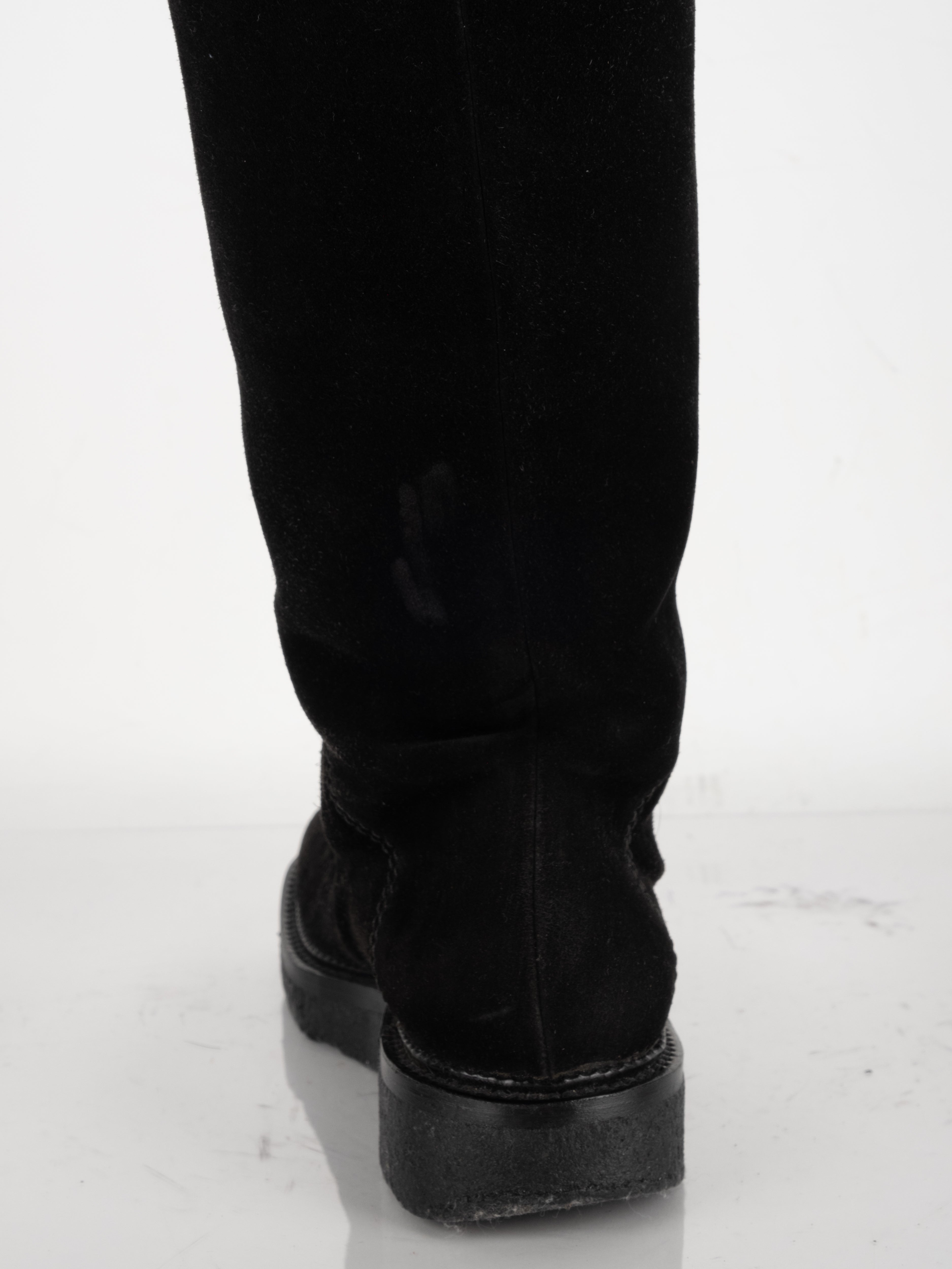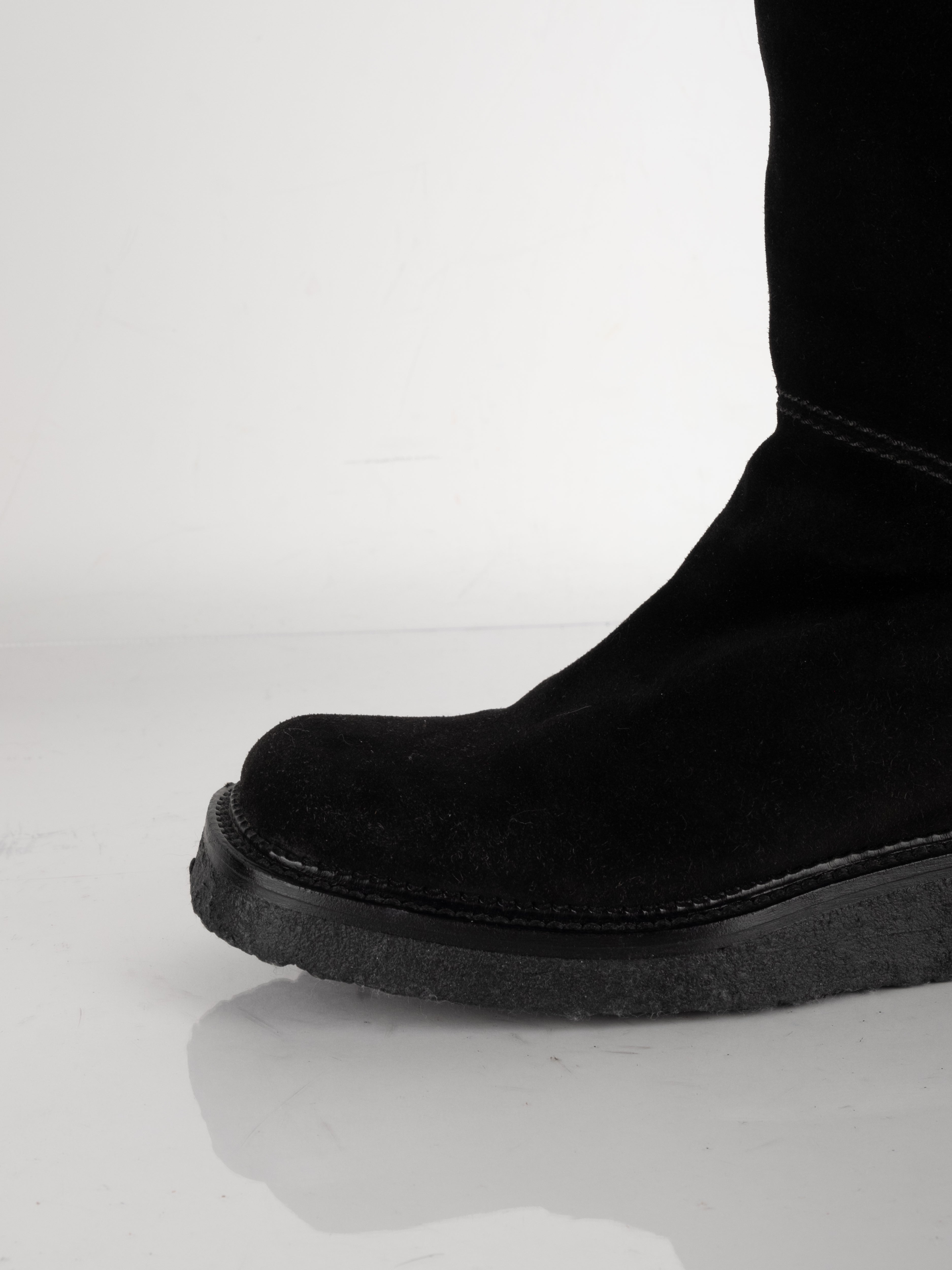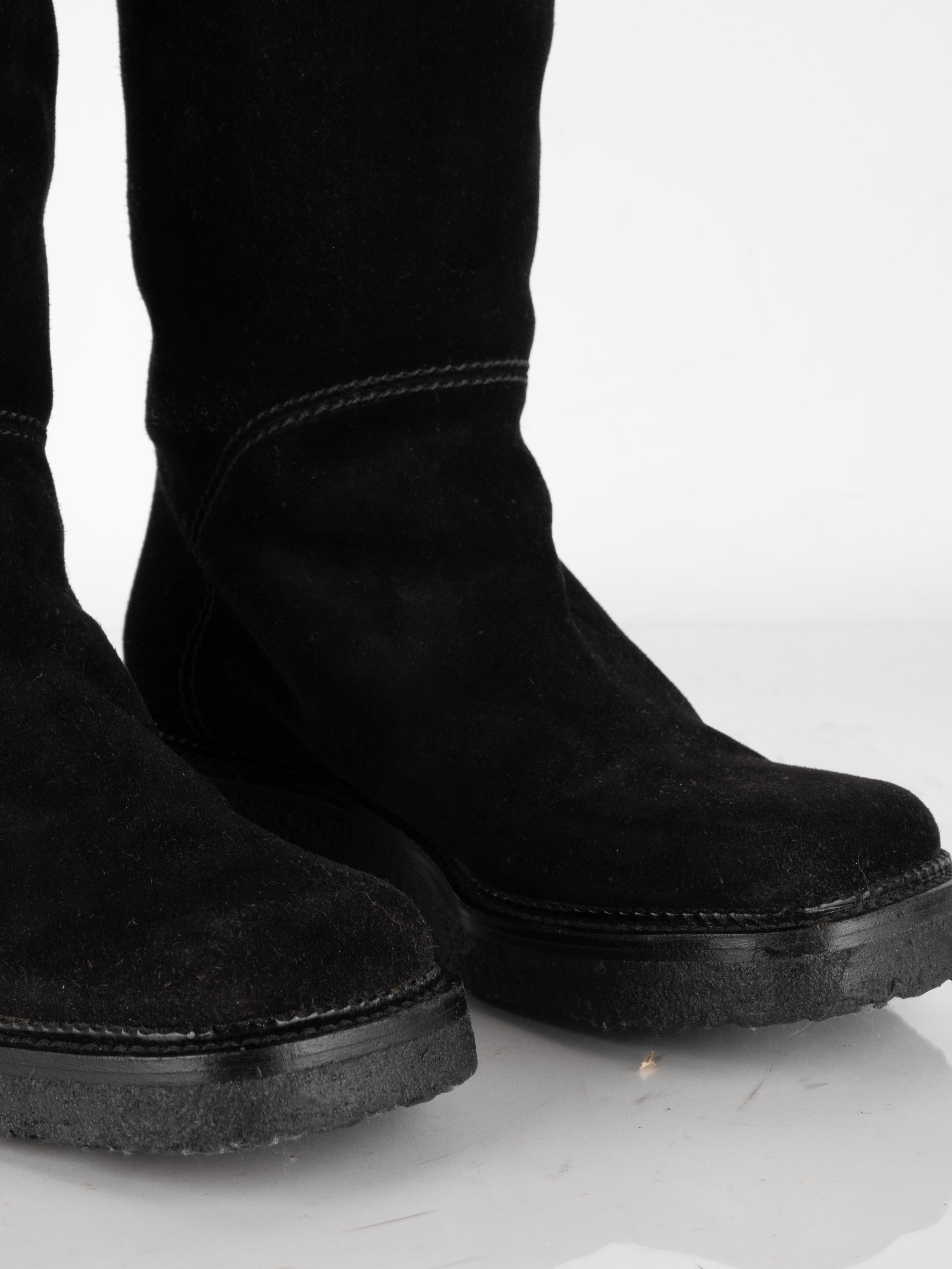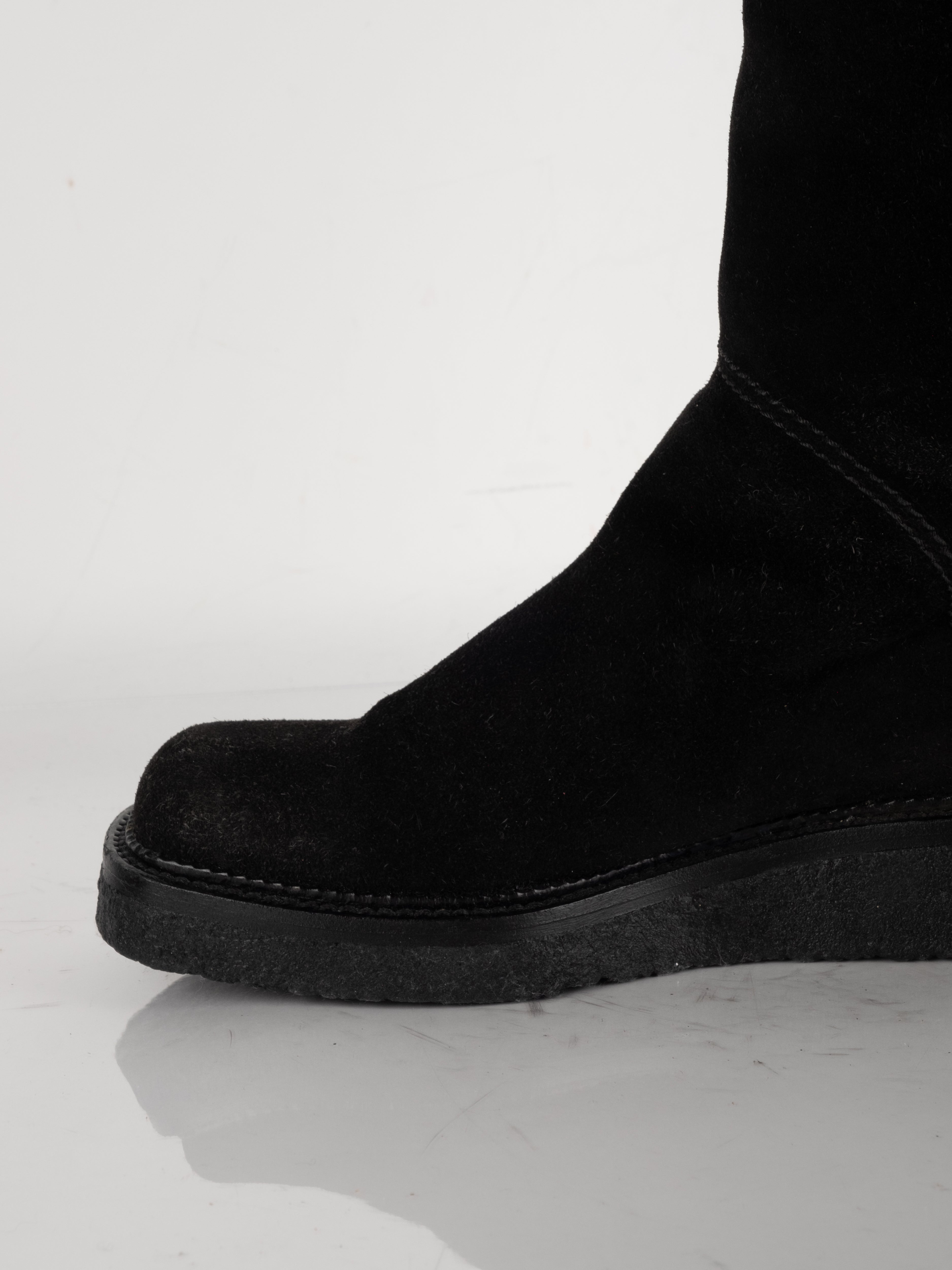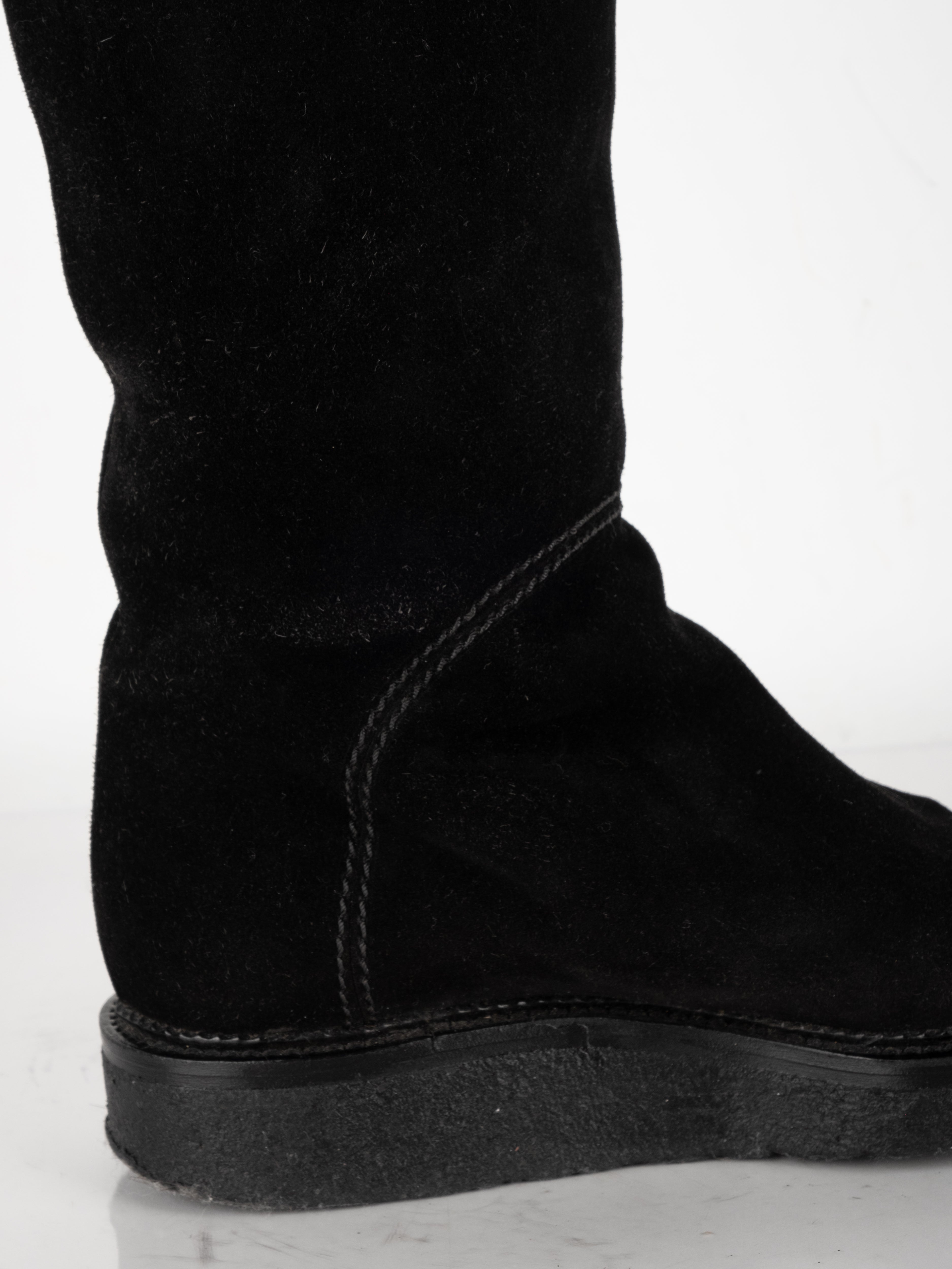 מגפי וינטג' יד שנייה של Bally, שחורים, עם קטרים של פרווה עשירה ורכה. המגפיים משלבים נוחות, עמידות וסגנון אלגנטי שמתאים הן ליום והן לערב — פריט חורפי מושלם.