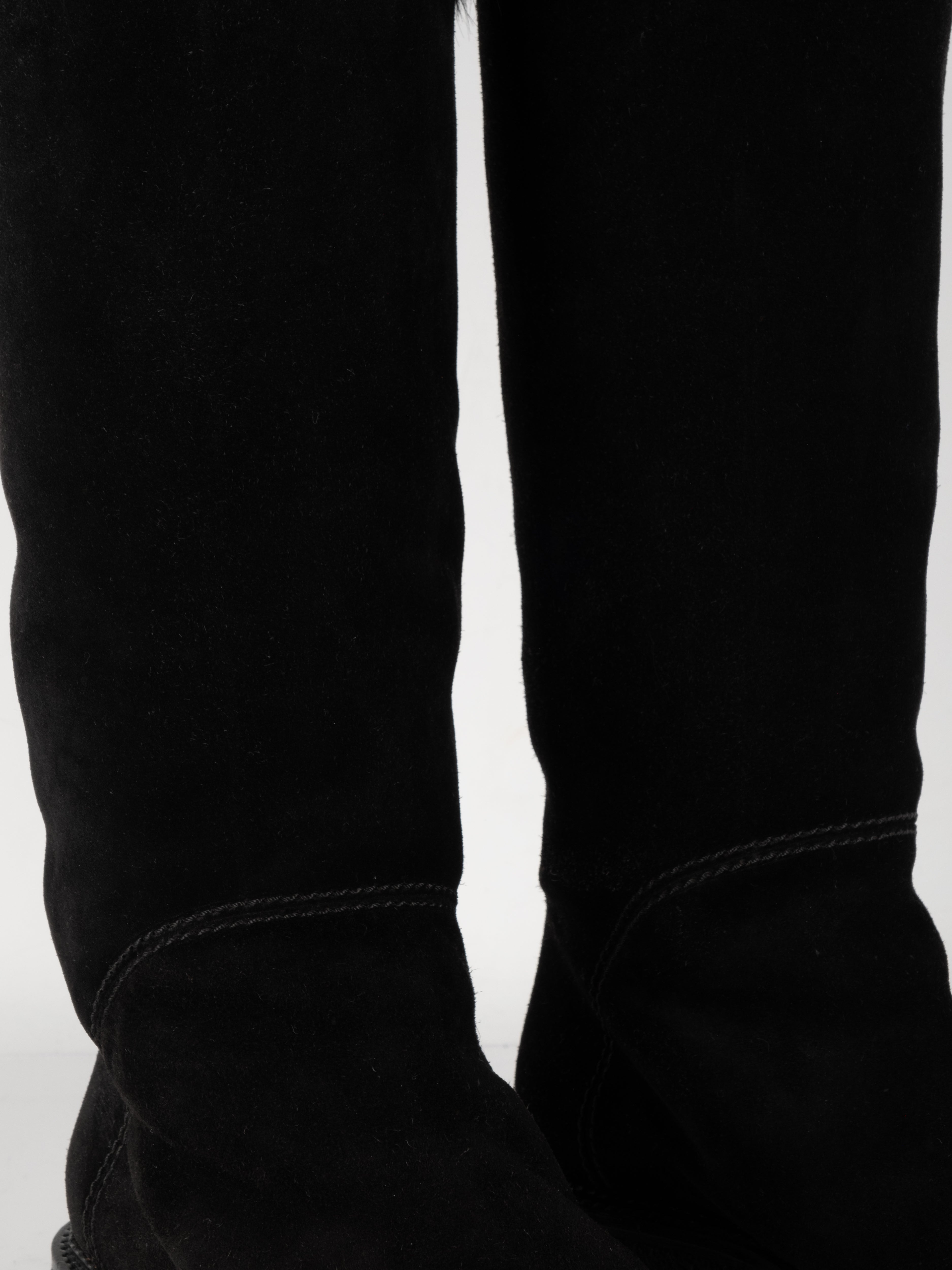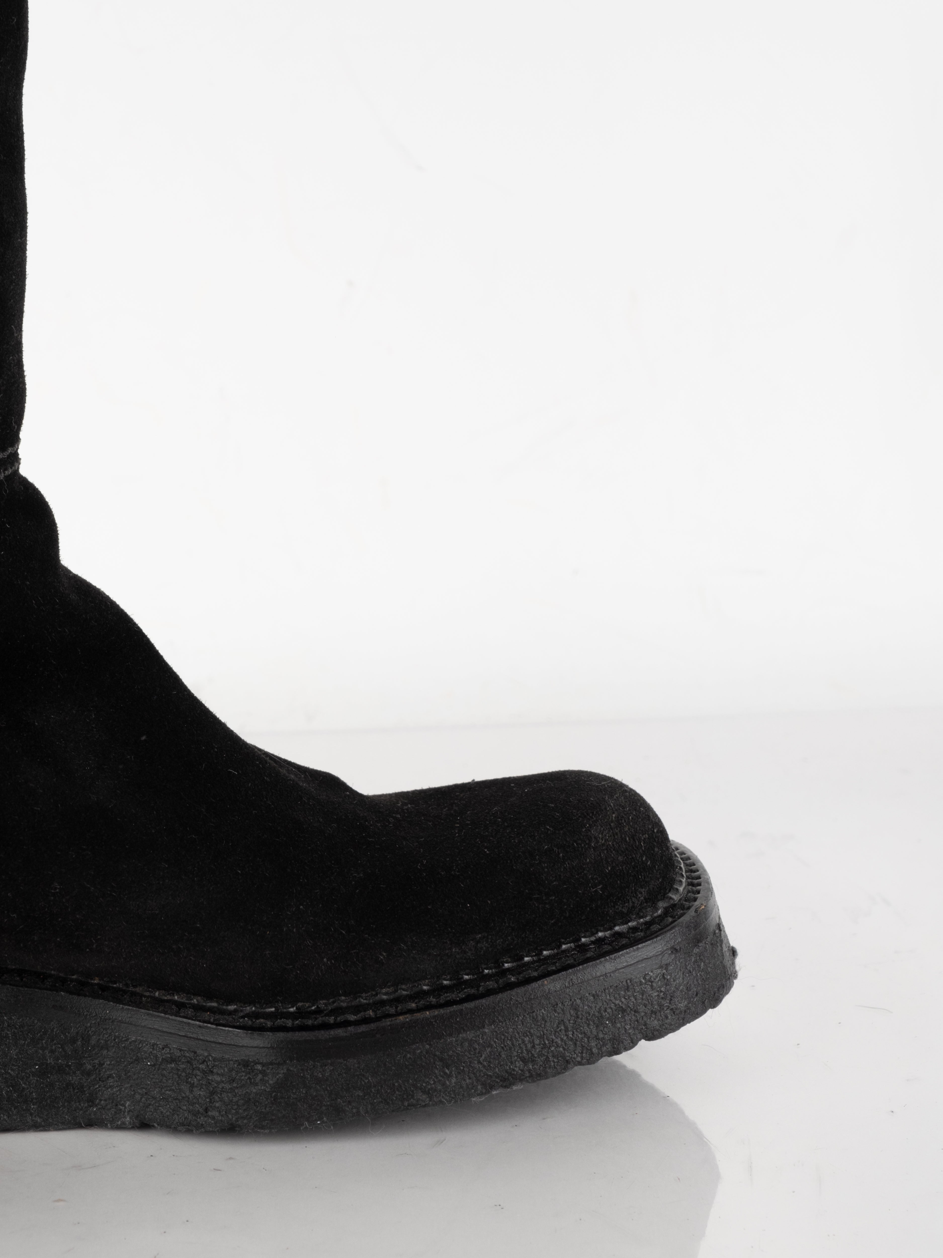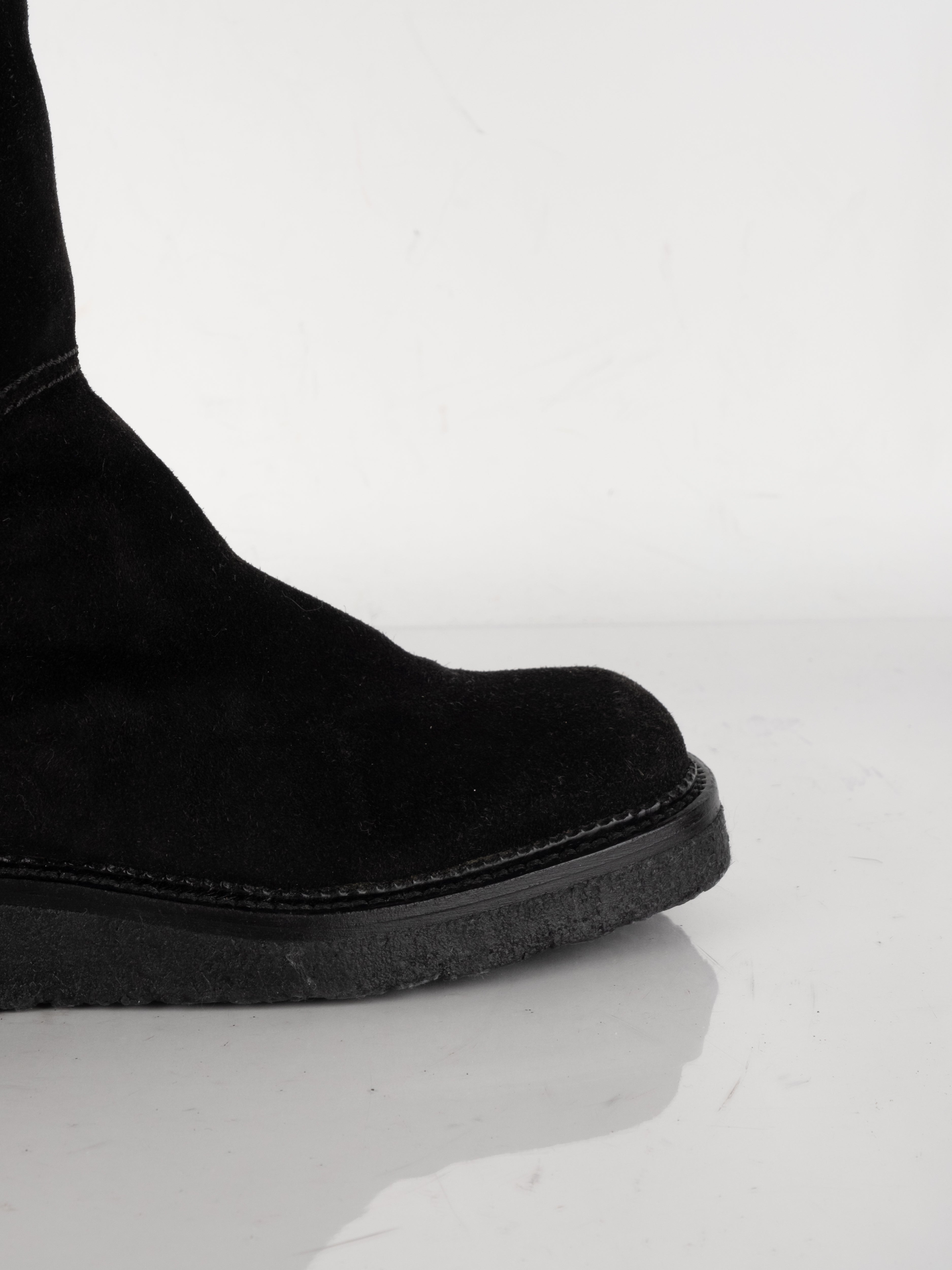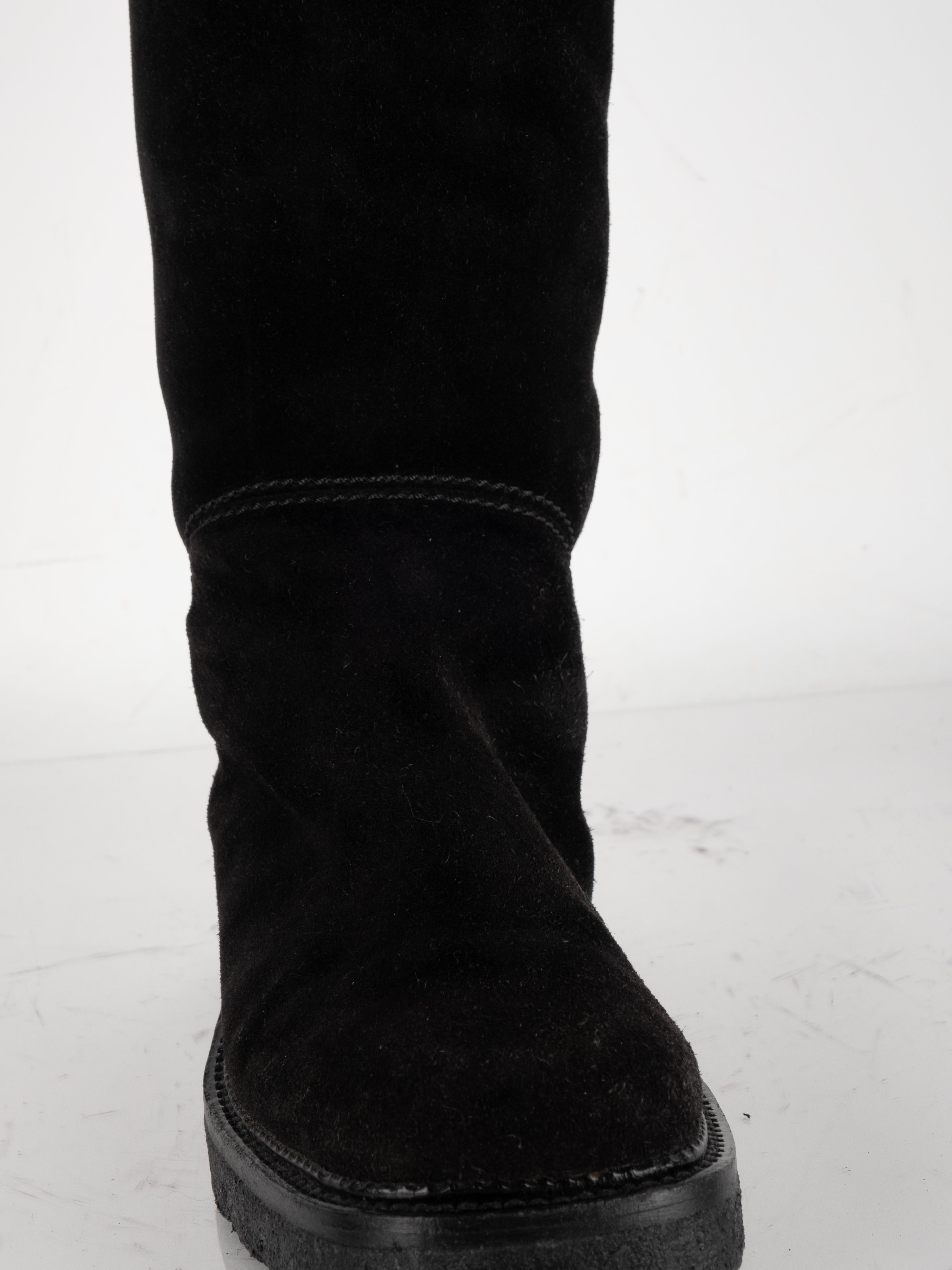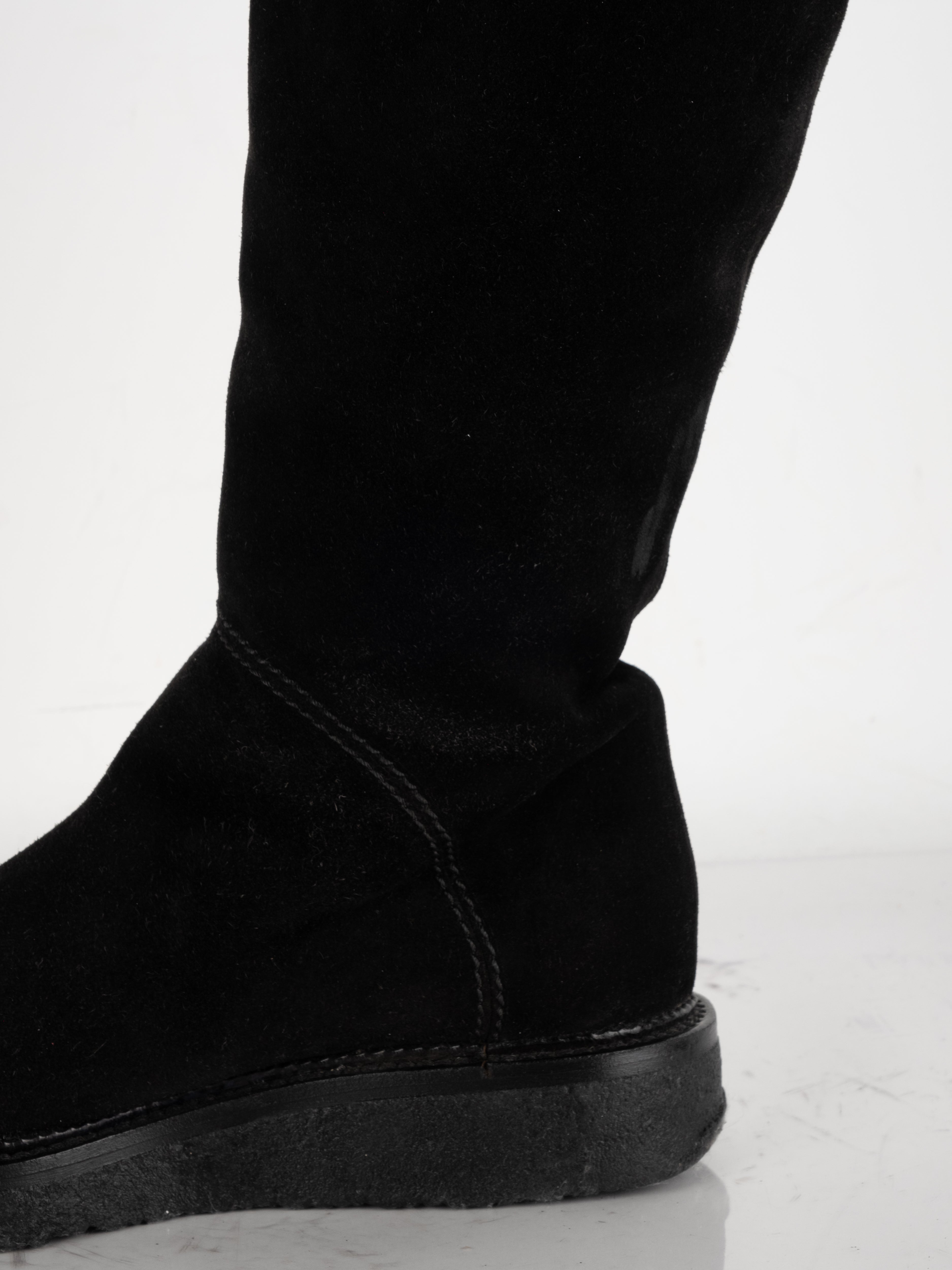 מגפי שחורים עם פרווה בחלק העליון וסוליה נוחה ליום־יום.