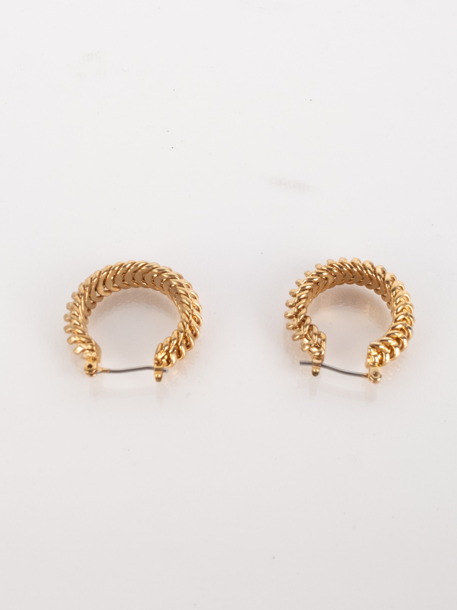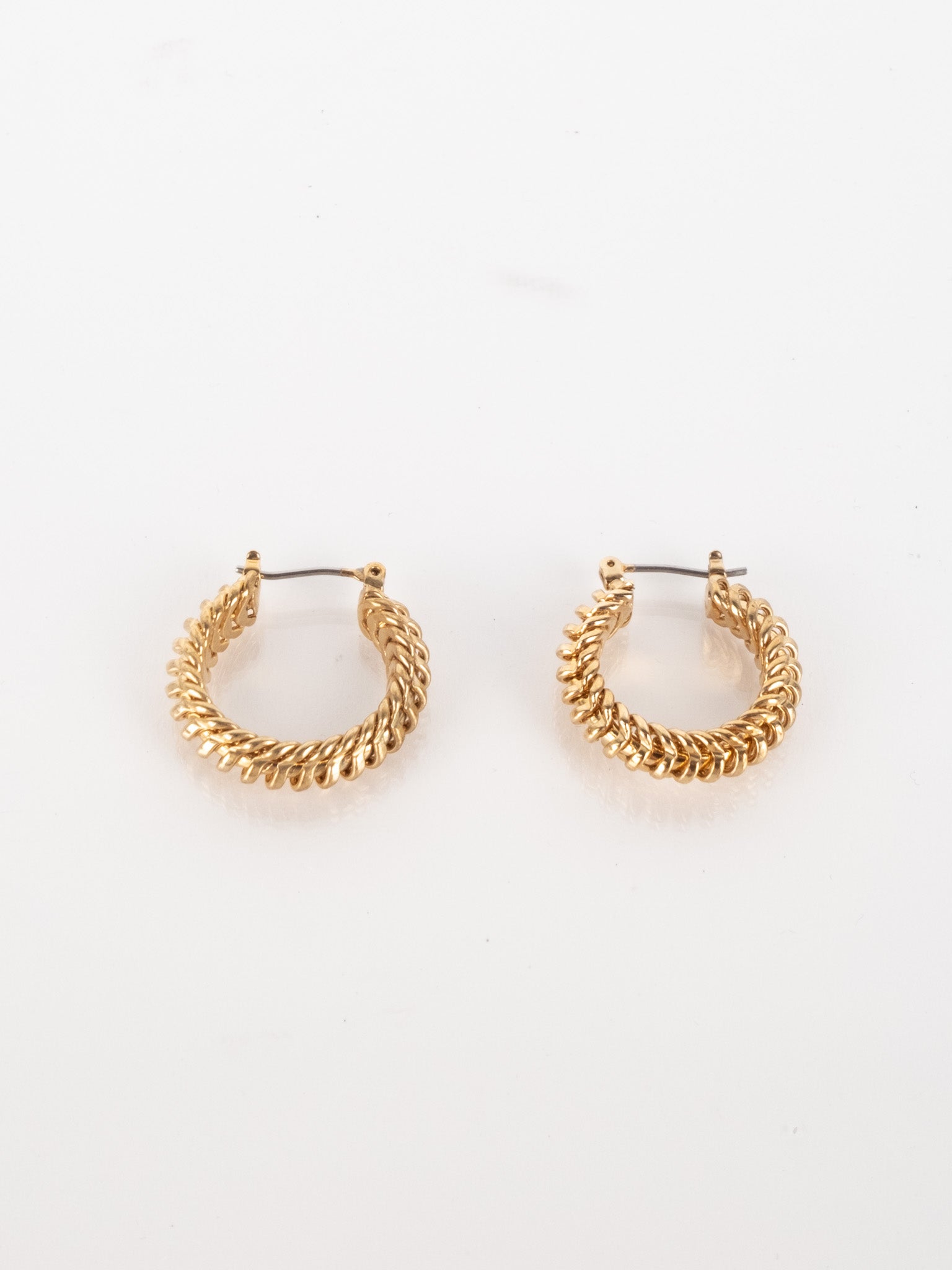 העגילים עשויים מתכת בציפוי זהב בגימור מבריק, עם טקסטורה עדינה. סוגר נעילה אחורי נוח ובטוח.