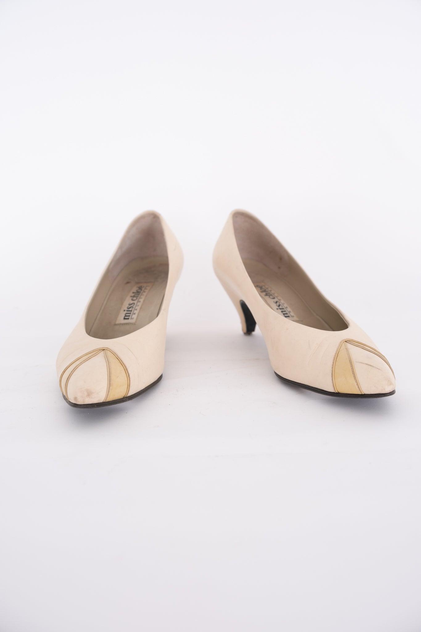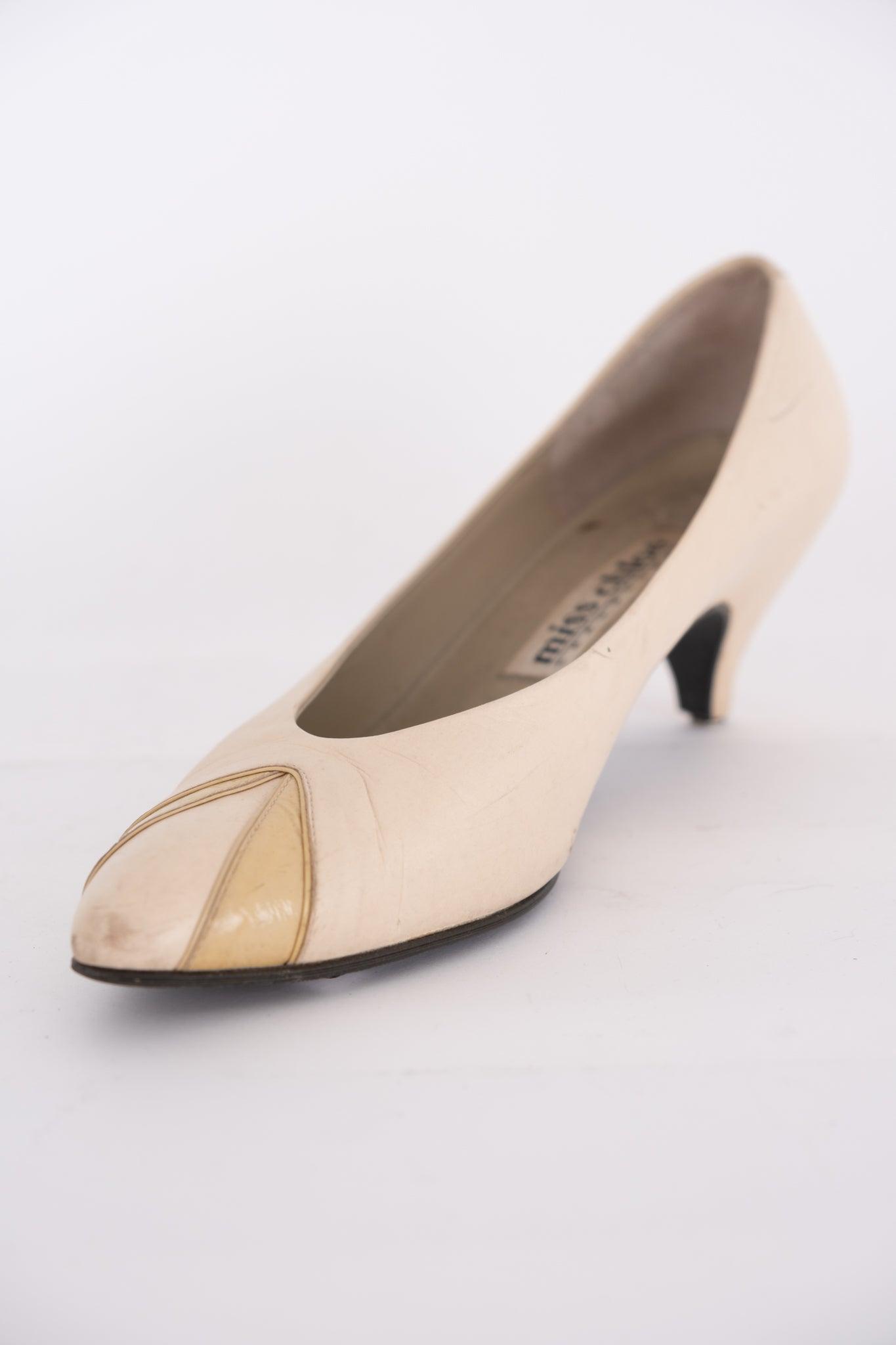 נעלי סירה, מעד מחודדות בקצה, על עקבון בצבע בז'
