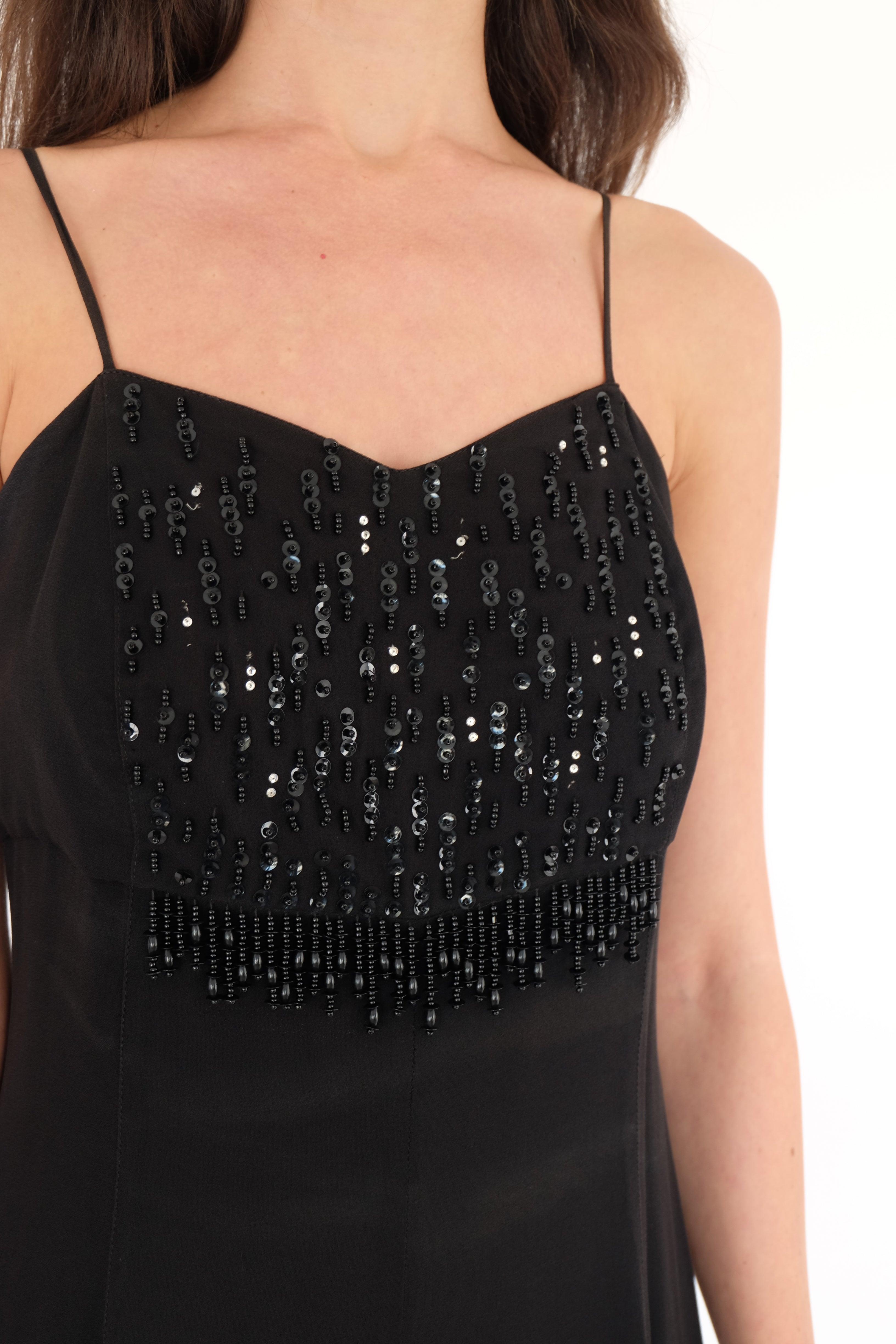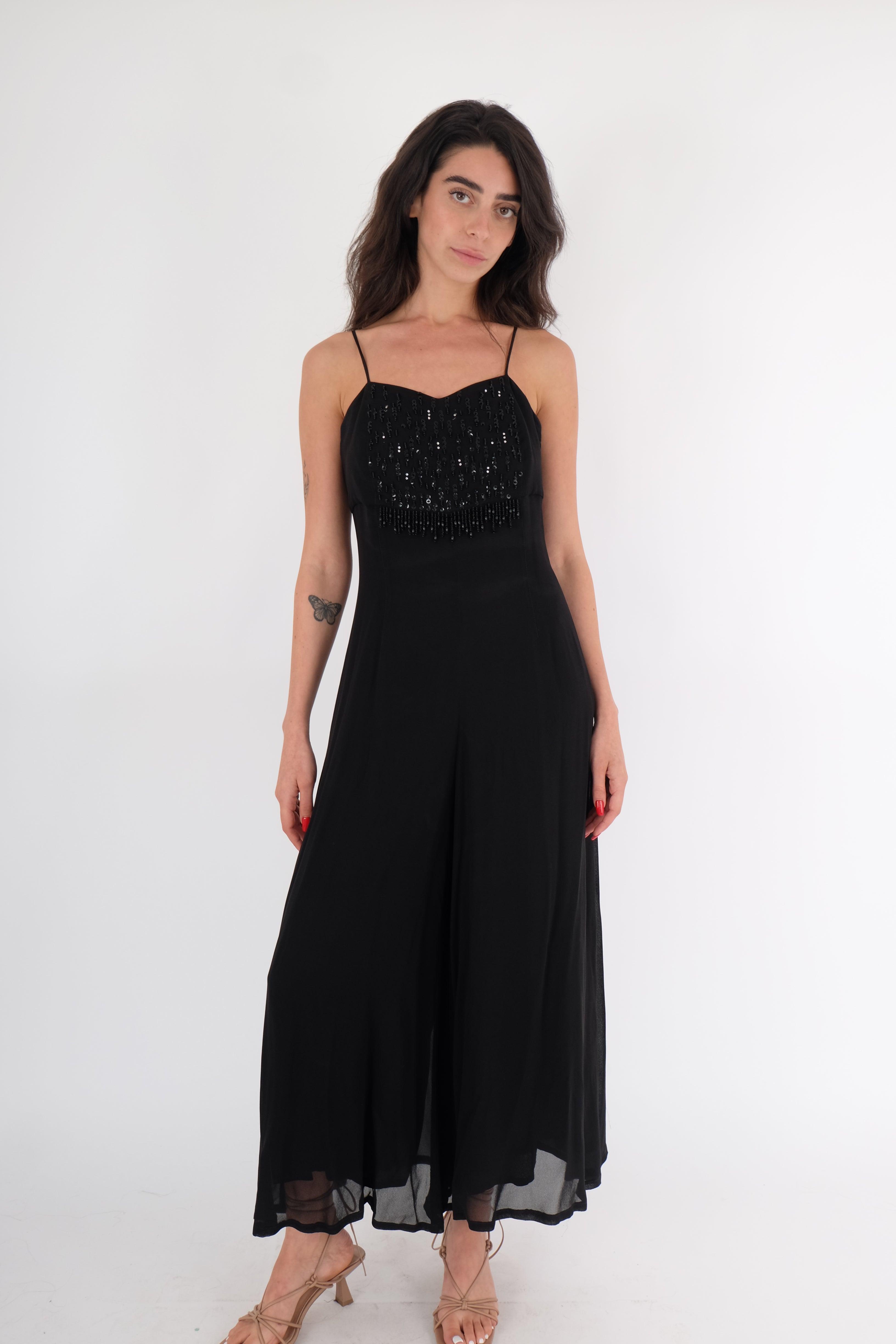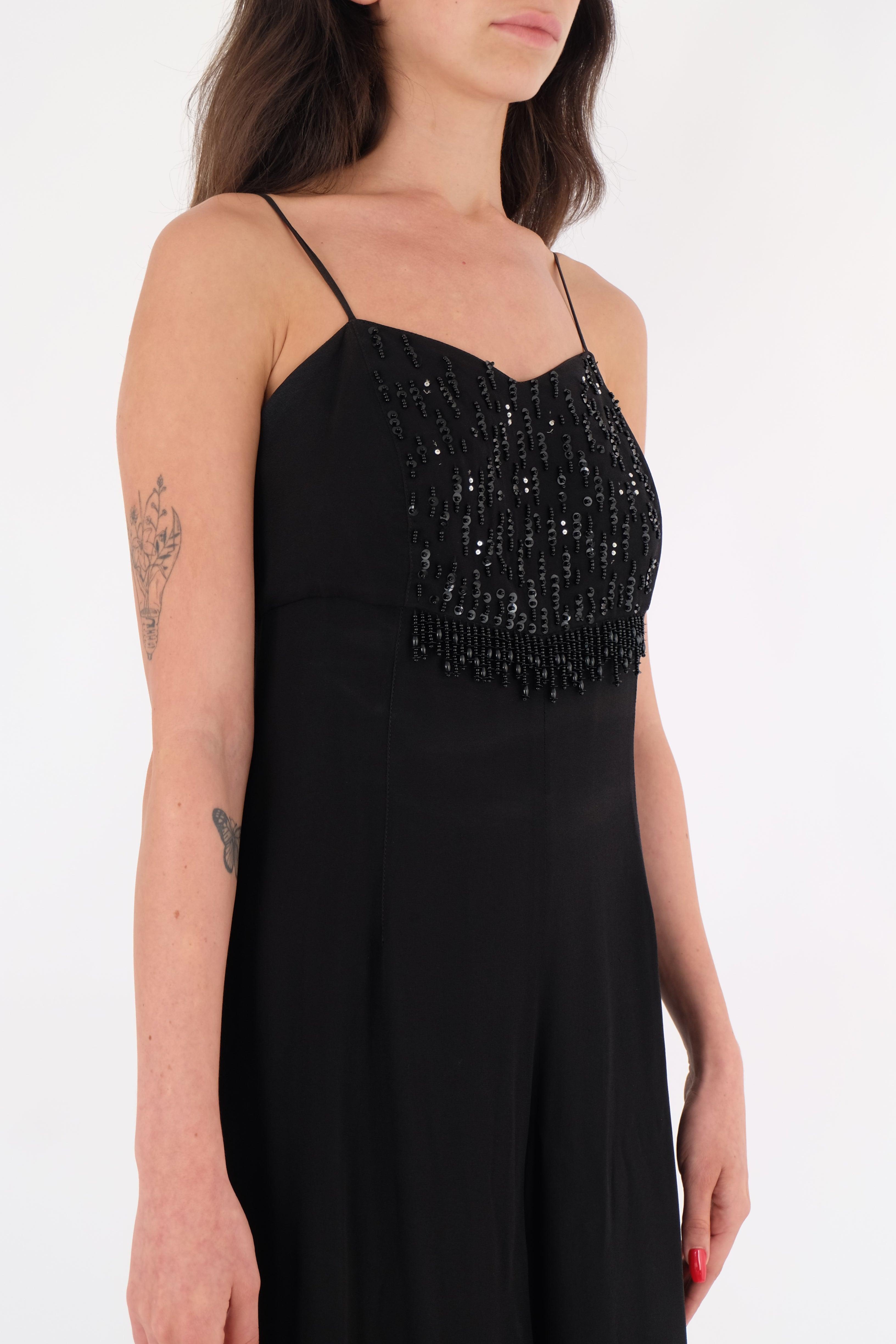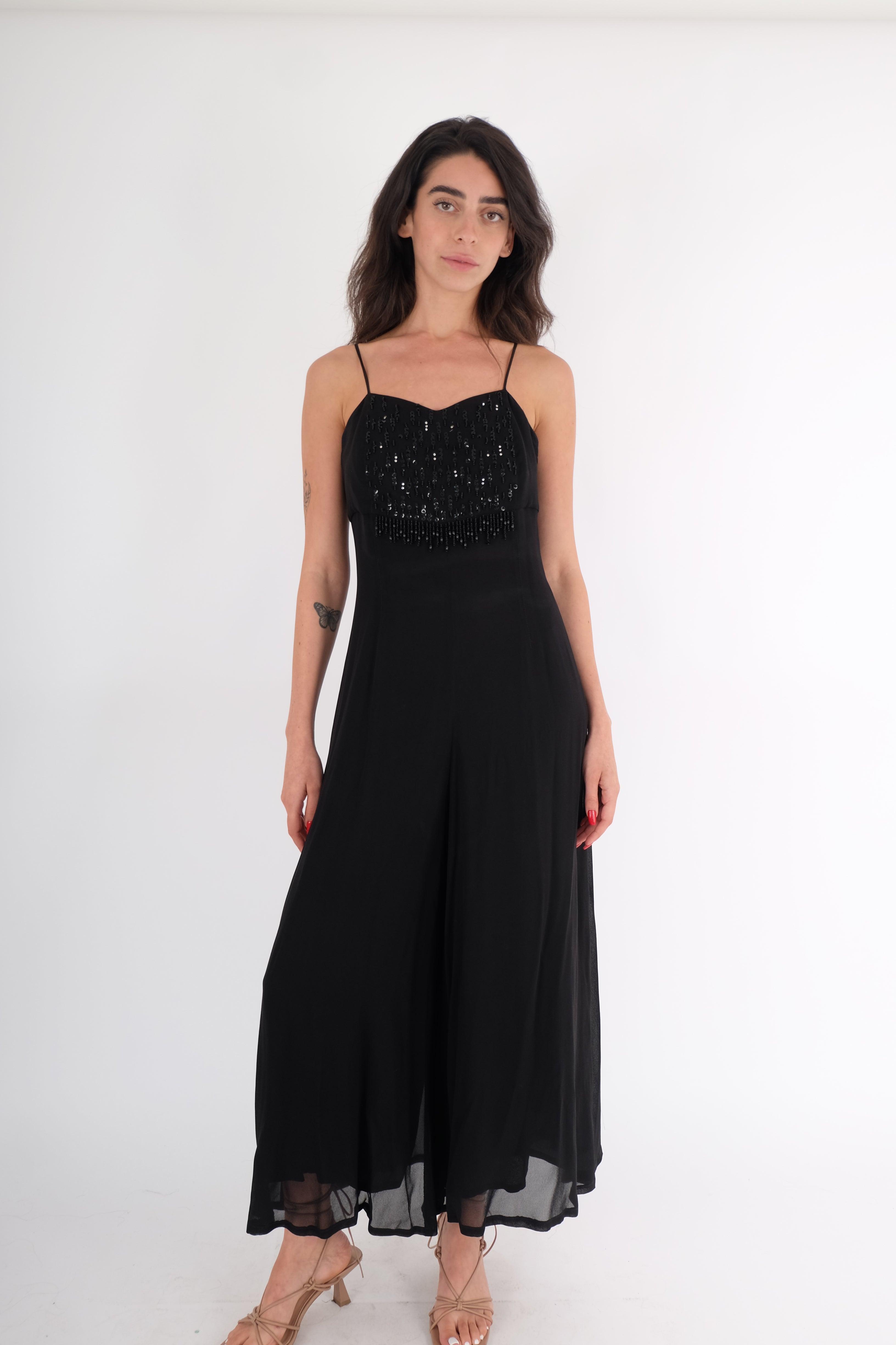 שמלה בצבע שחור מדהימה ארוכה עם חרוזים מקדימה.