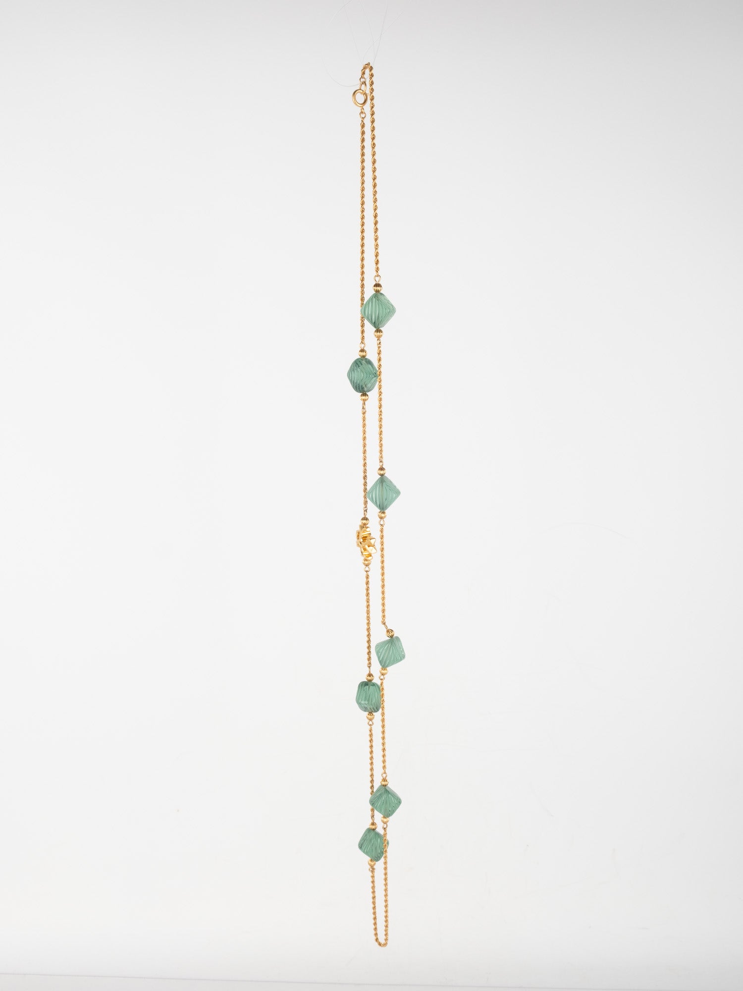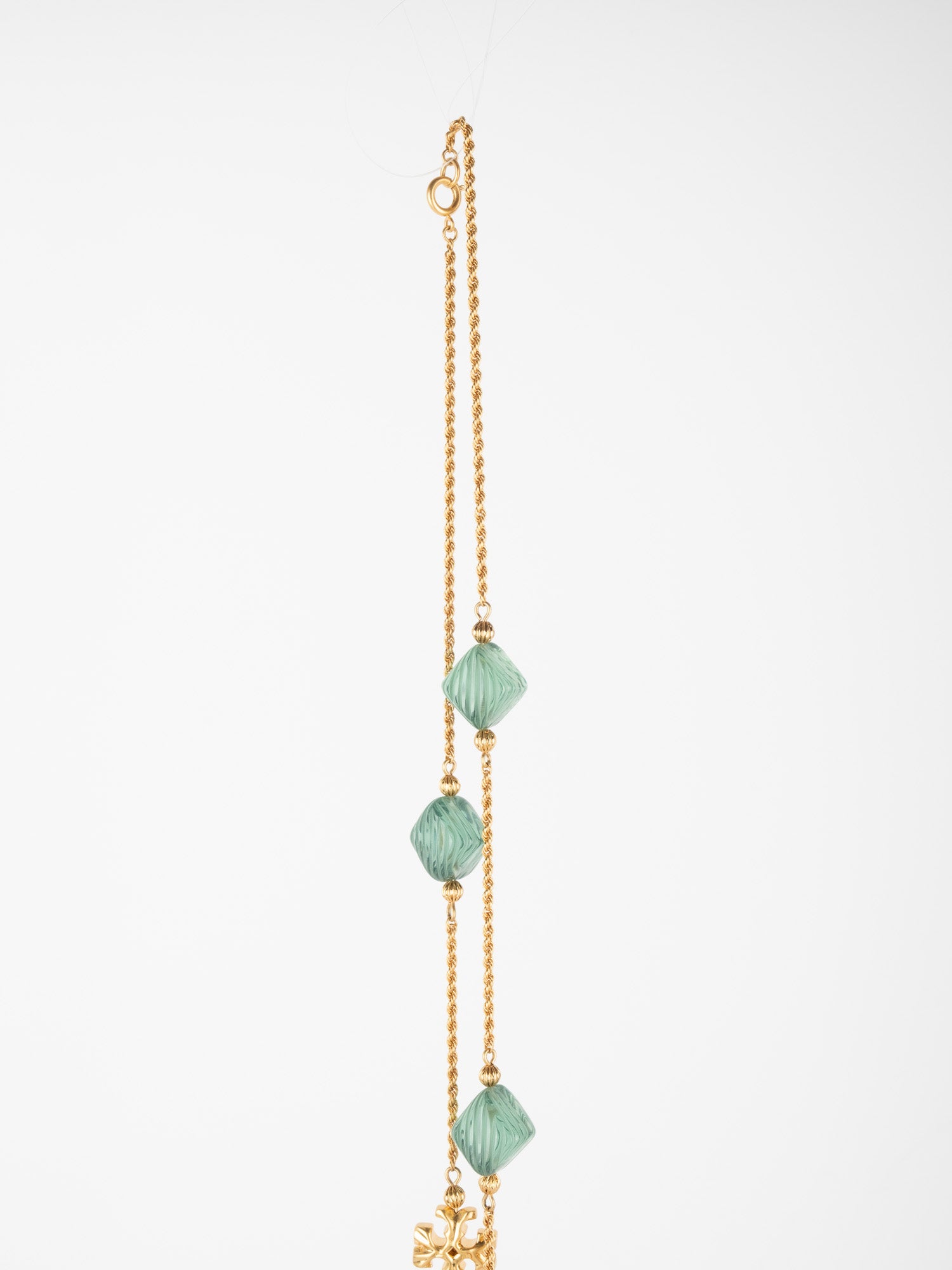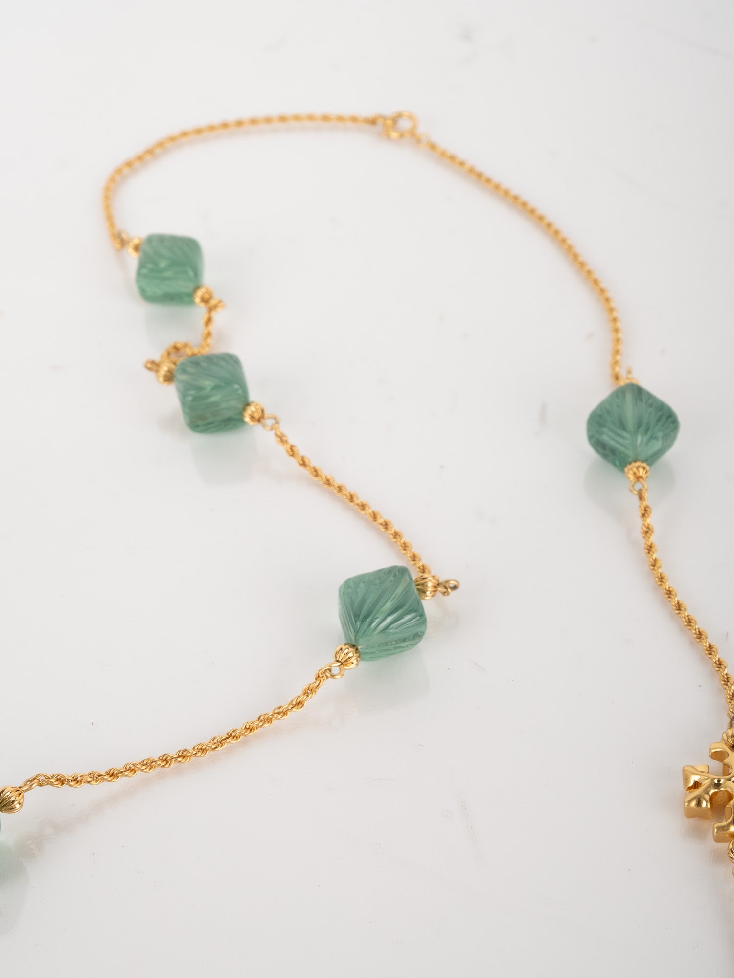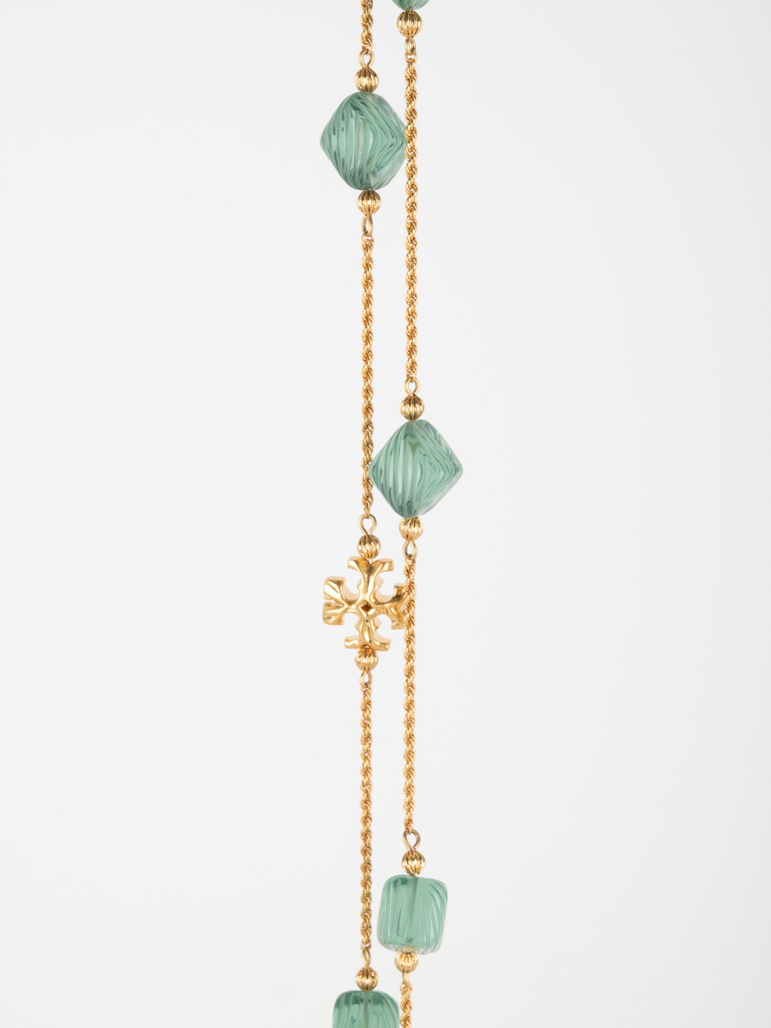 View Similar Productsשרשרת וינטג׳ יד שנייה של טורי ברץ' (Tory Burch) בעיצוב עדין ואלגנטי, משובצת אבנים ירוקות בגוון עמוק ומרקם מלוטש.