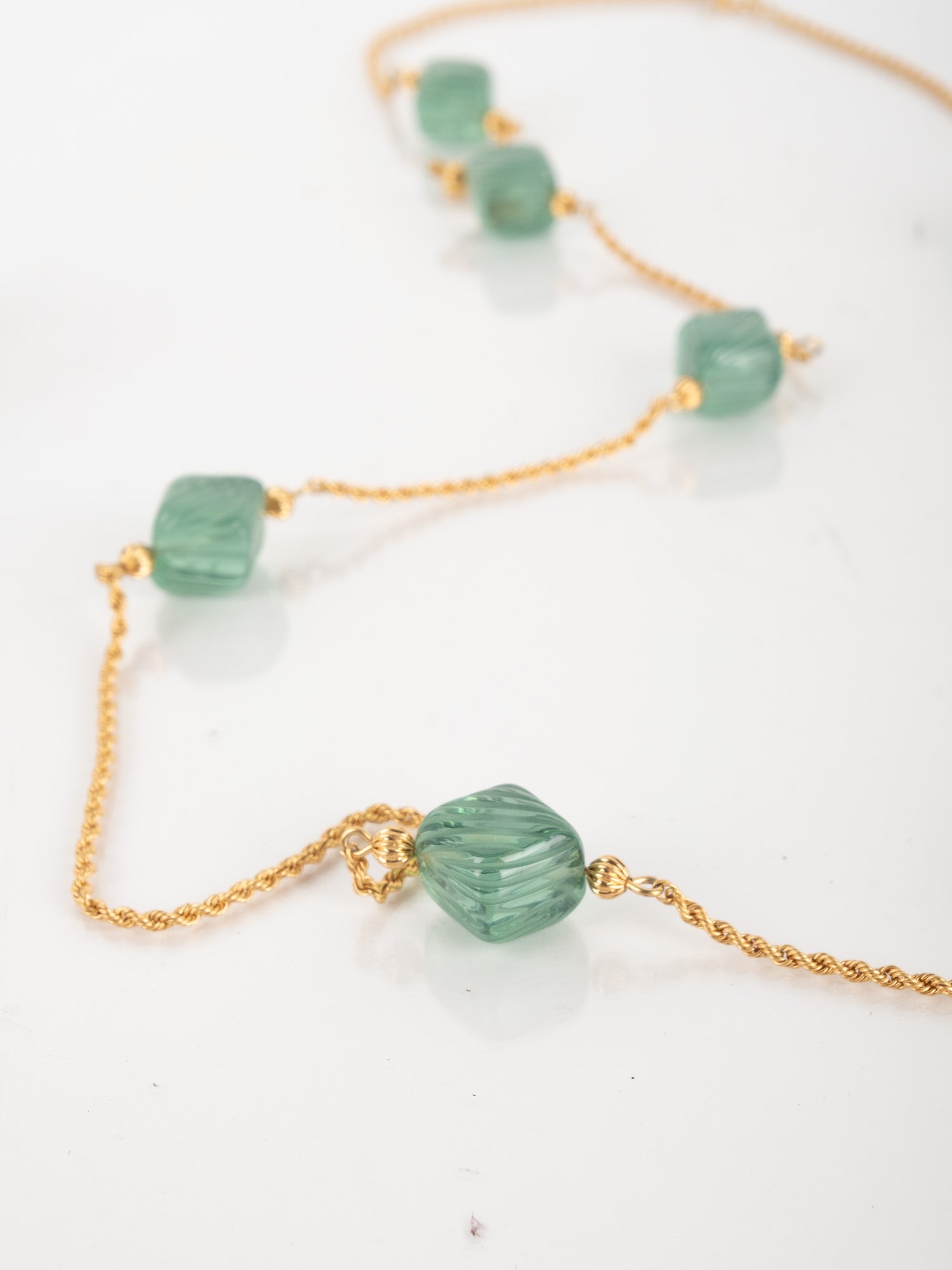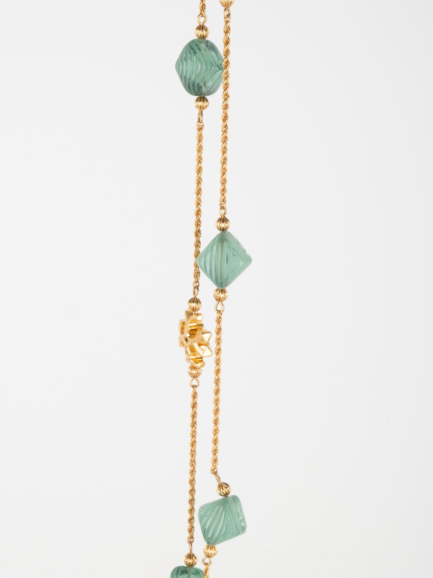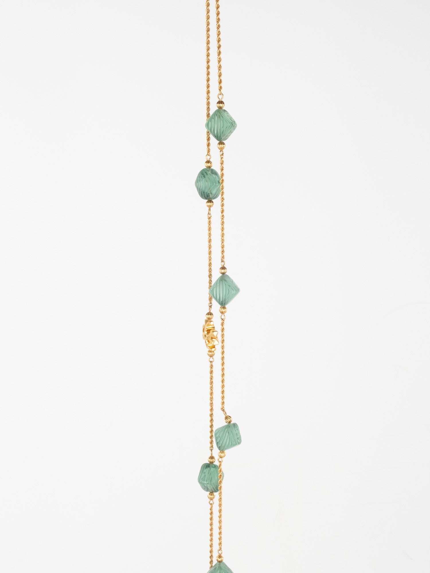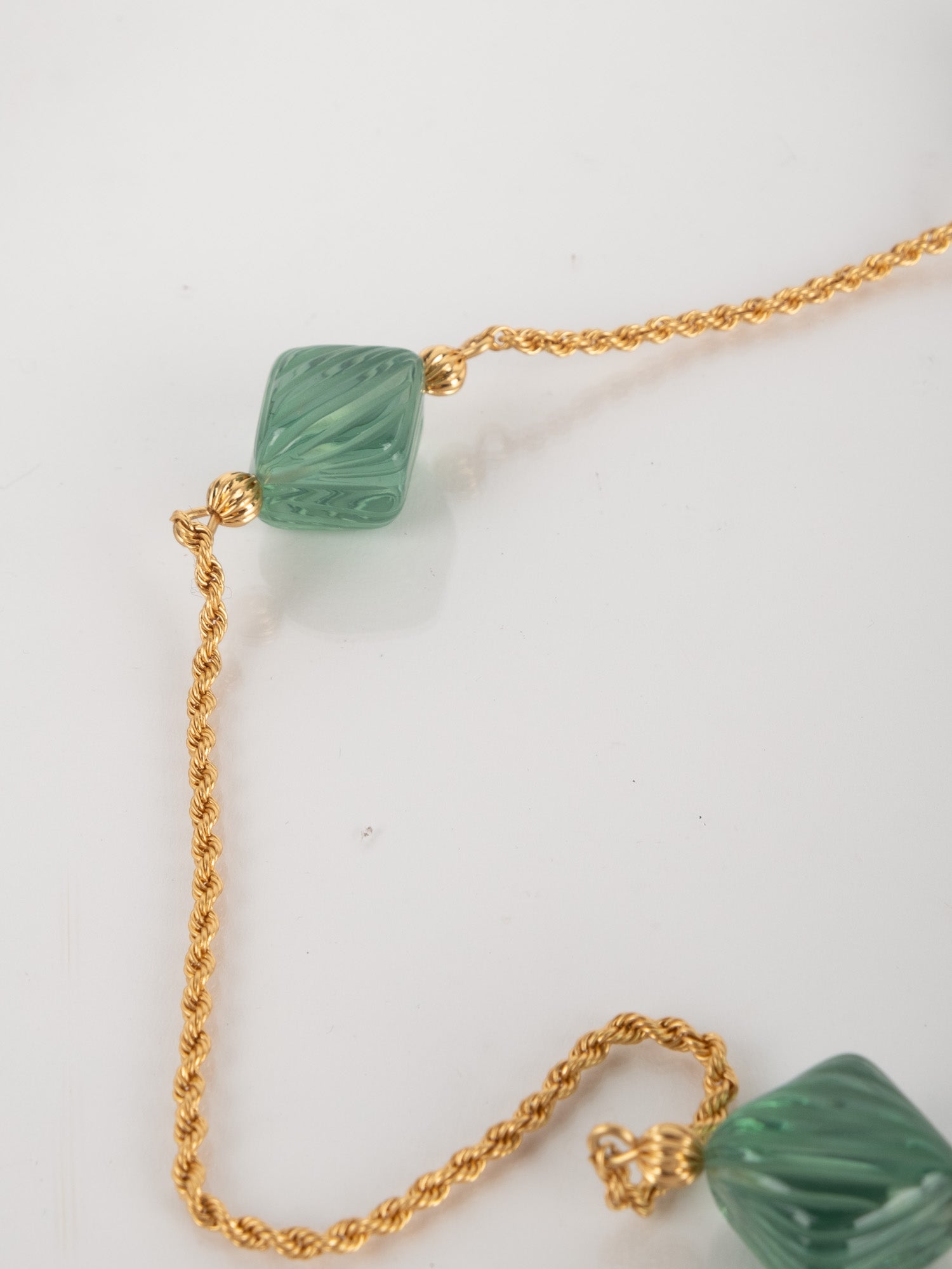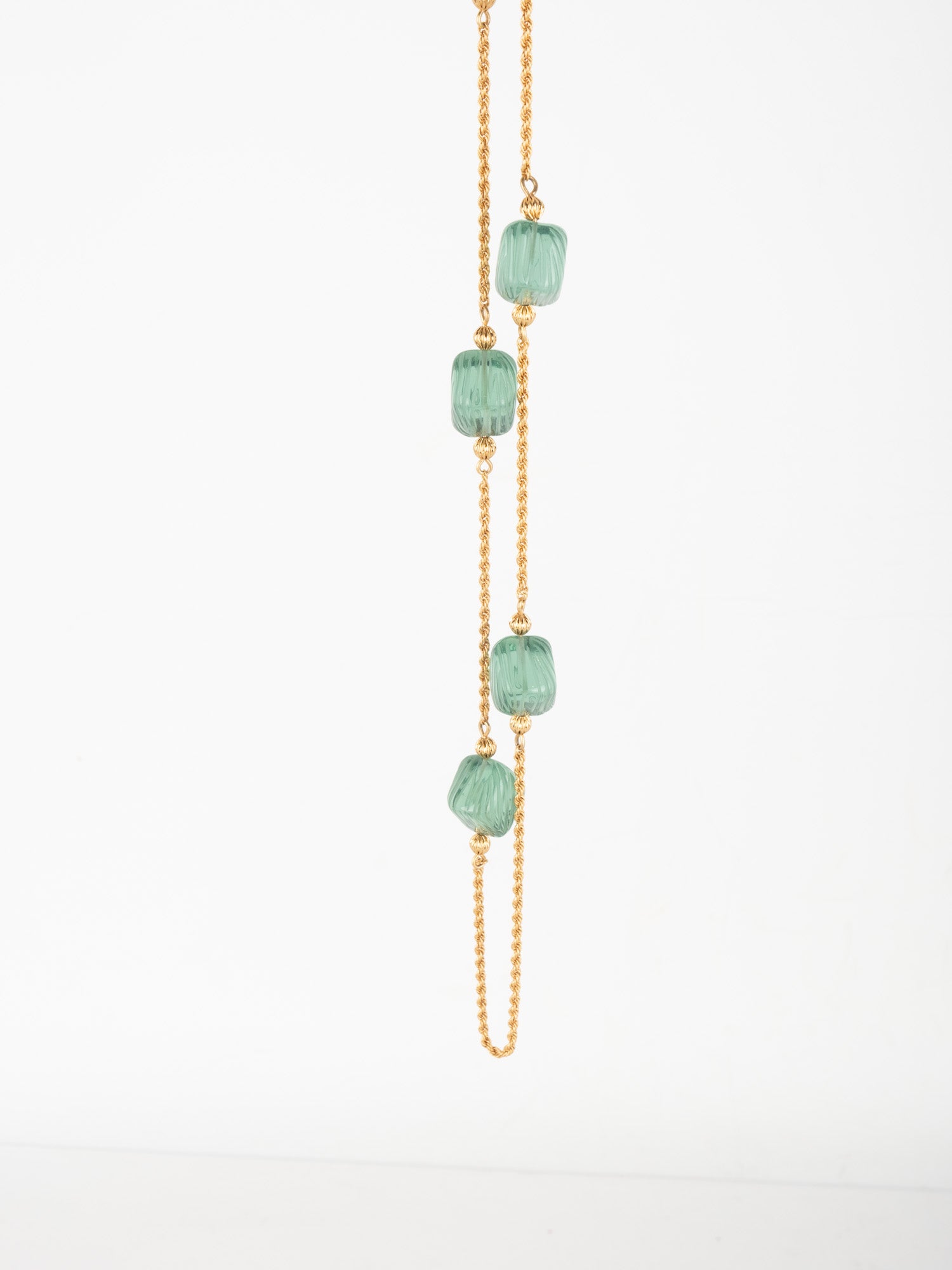 View Similar Productsשרשרת וינטג׳ יד שנייה של טורי ברץ' (Tory Burch) בעיצוב עדין ואלגנטי, משובצת אבנים ירוקות בגוון עמוק ומרקם מלוטש.