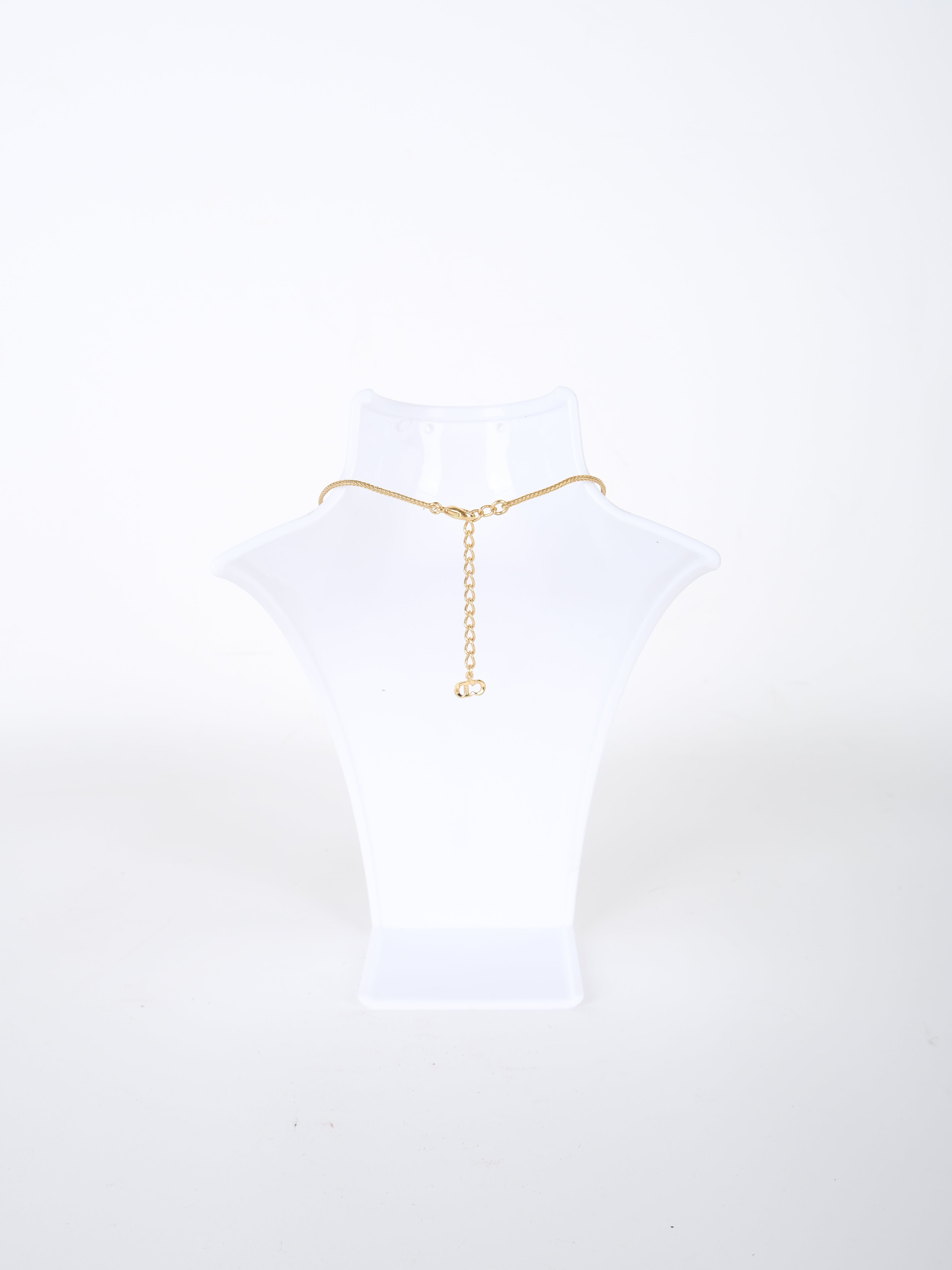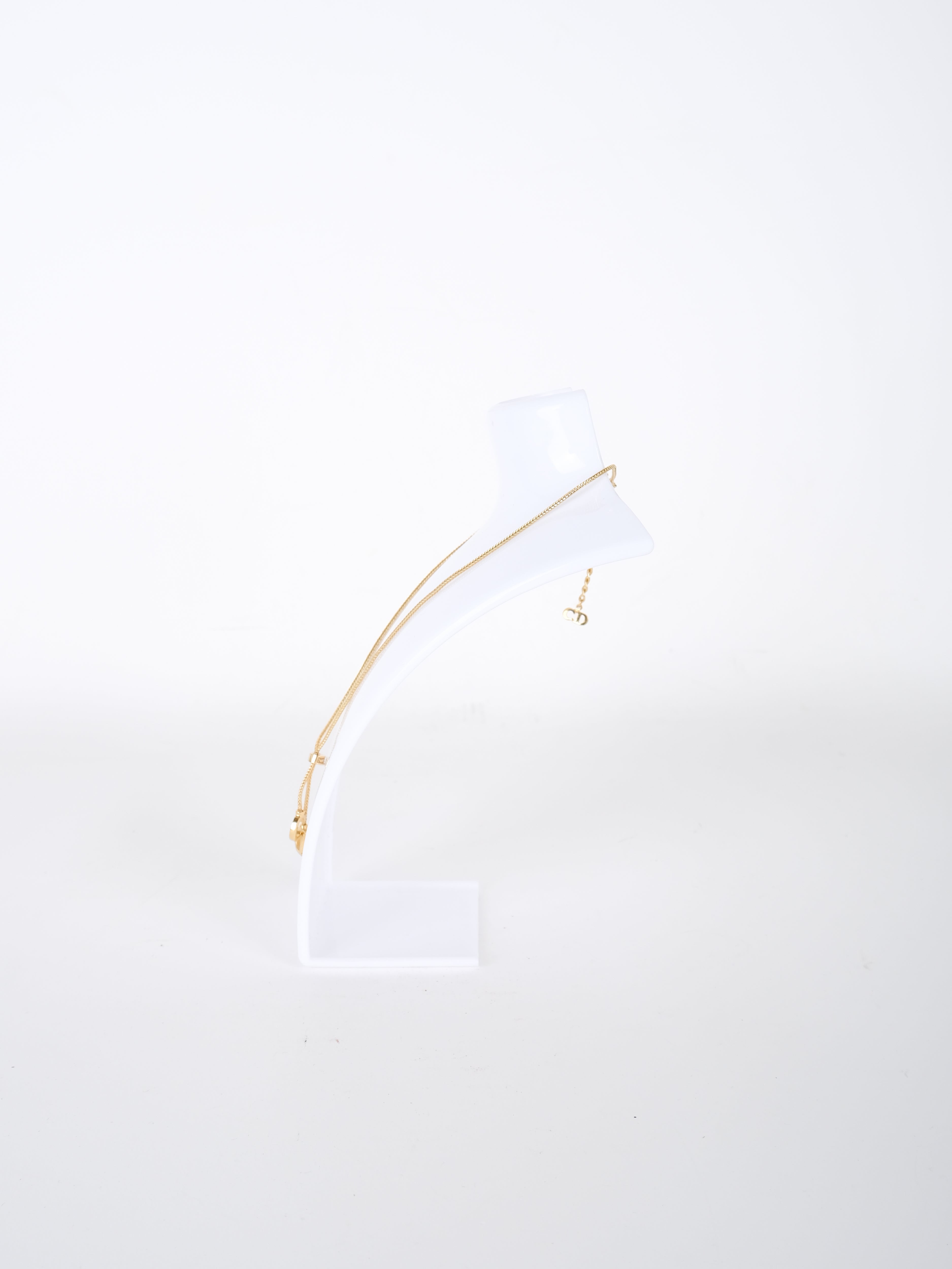 השרשרת עשויה מתכת בגוון זהב, עם שרשרת דקה ונשפכת ותליון מרכזי המורכב מאותיות DIOR מעוצבות ומחוברות בעיצוב קומפקטי ומדויק. החיבור בין האותיות יוצר תליון מזוהה אך עדין, שאינו משתלט ומוסיף טאץ' יוקרתי ברור.