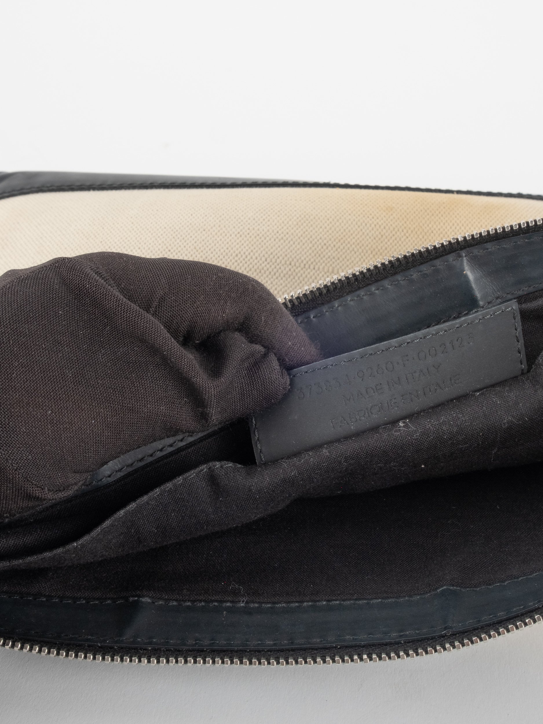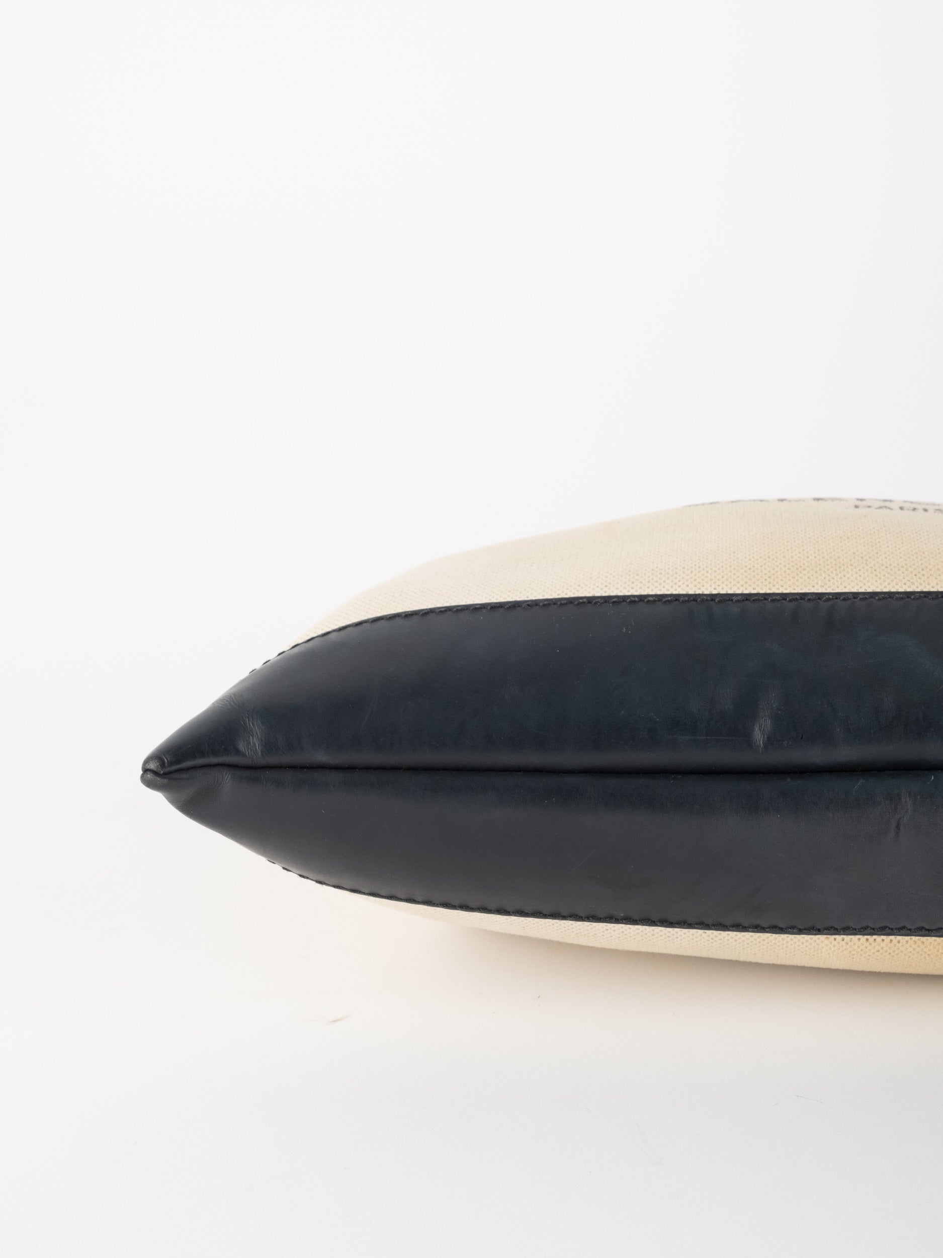 הקלאץ’ עשוי בד קנבס בגוון שמנת עם בסיס ועיטורים בגוון שחור וסגירת רוכסן עליונה. חלל פנימי מרווח יחסית לגודלו ומתאים לשימוש יומיומי, לאיפור או כארנקון גדול בתוך תיק. עיצוב נקי שמאפשר לשלב אותו בקלות עם כל לוק.