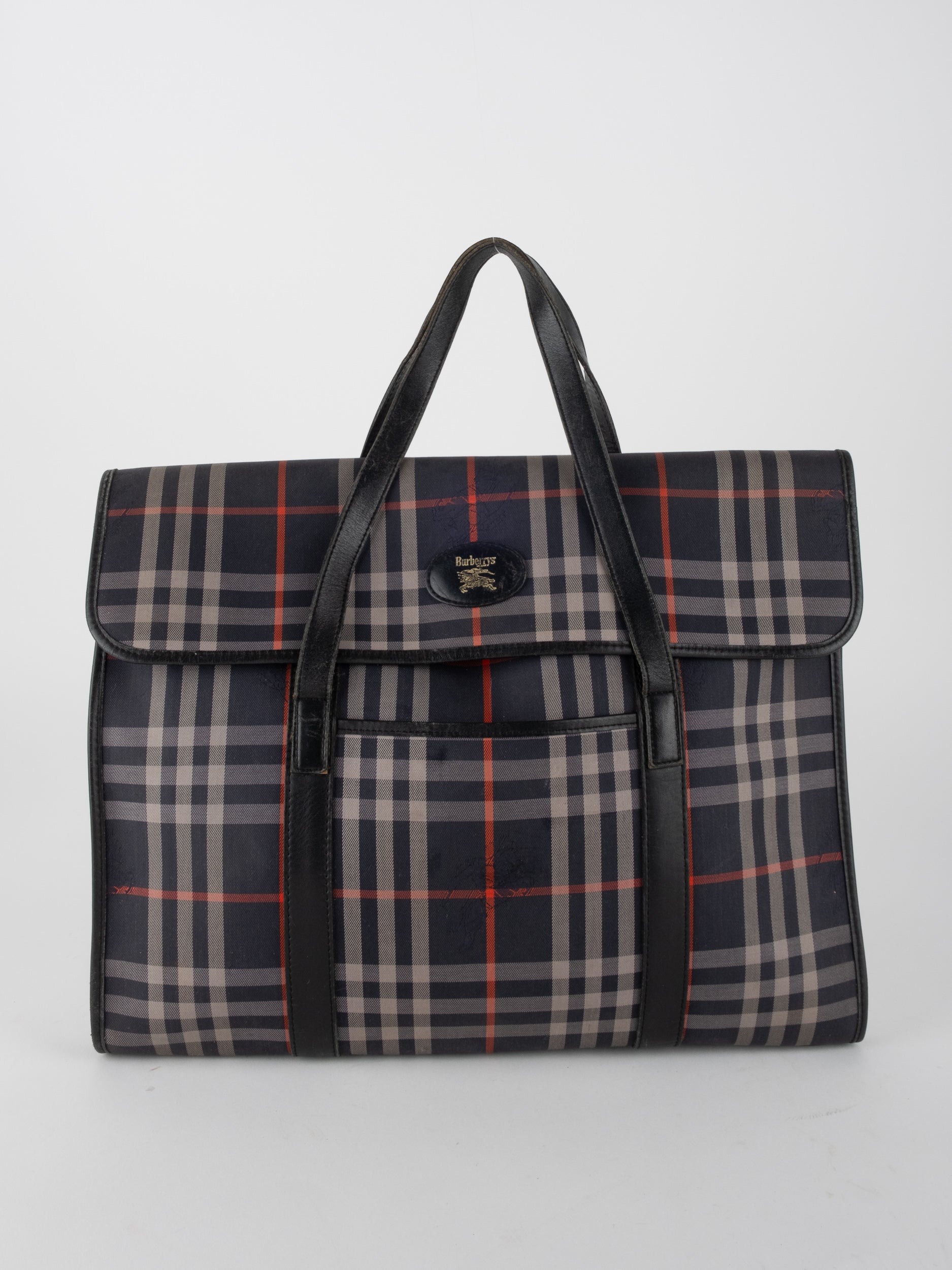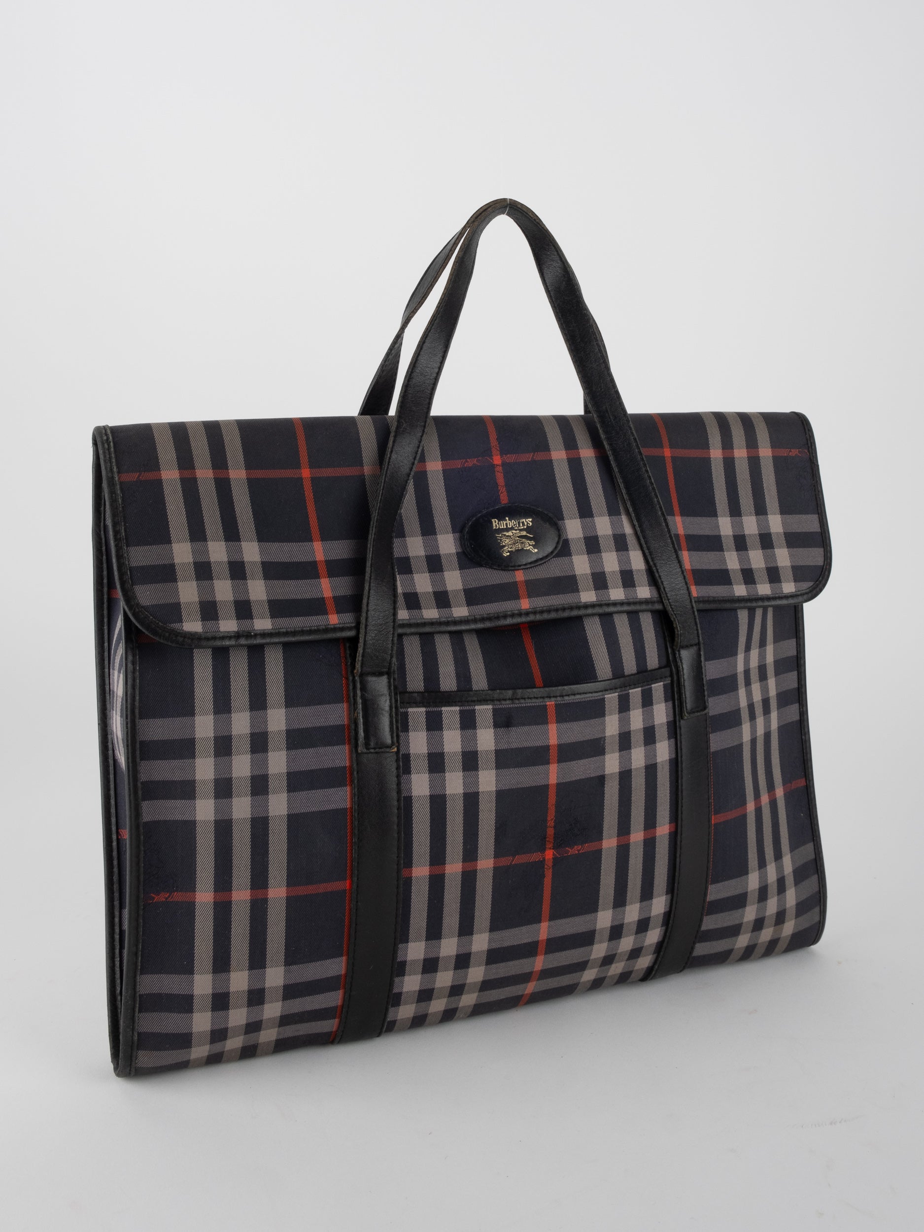 התיק עשוי בד קנבס בדוגמת Nova Check עם עיטורי עור שחור וידיות נשיאה תואמות. מבנה מלבני רחב יחסית עם מכסה קדמי וסגירה מתכתית, חלל פנימי מרווח המתאים למסמכים ואף ללפטופ בגודל בינוני. אידיאלי כתיק עבודה עם אמירה קלאסית וברורה.