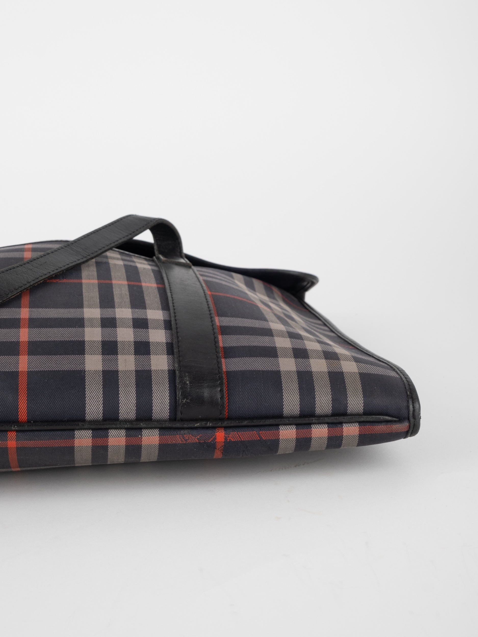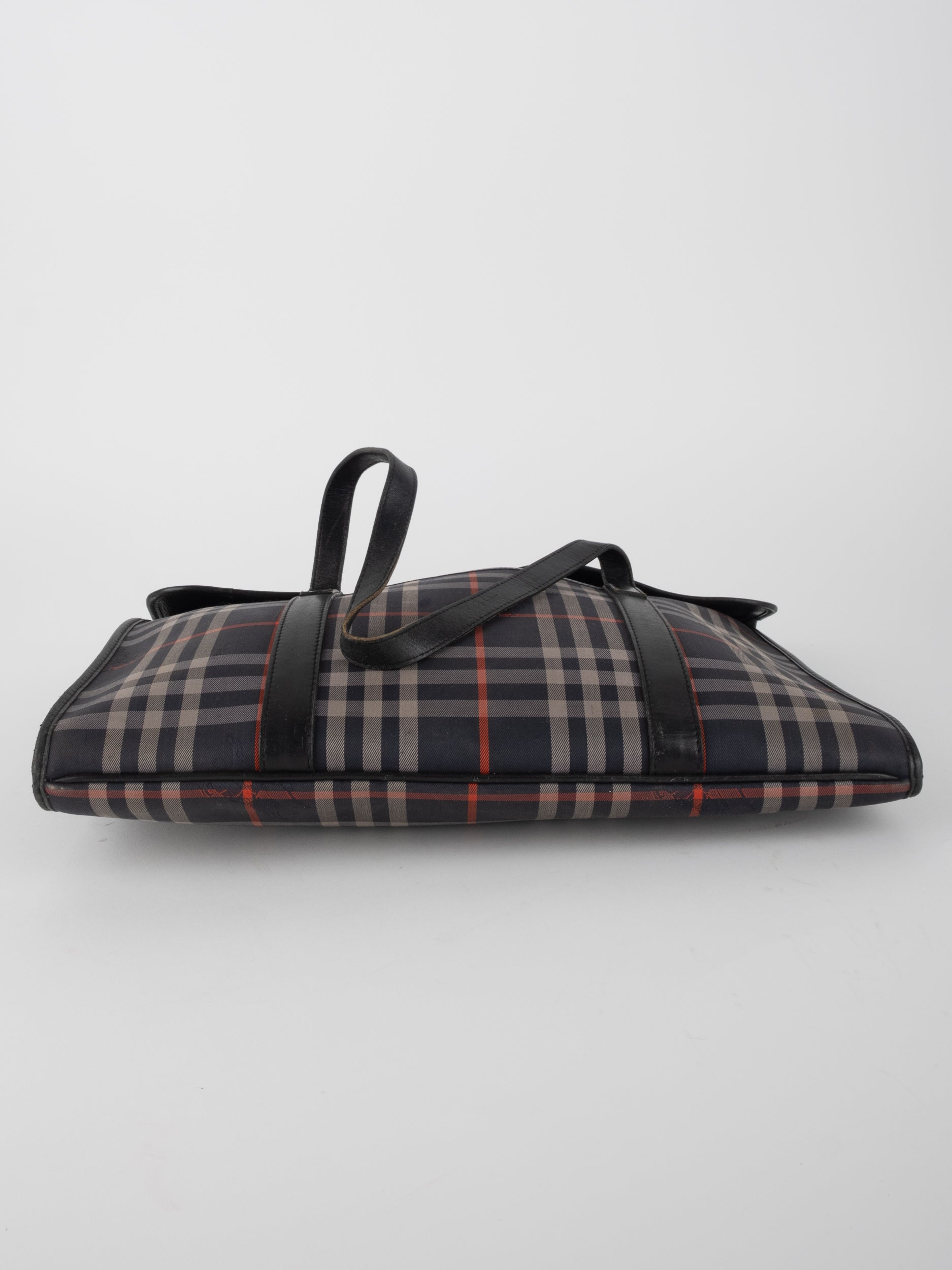 ברברי BURBERRY וינטג' יד שנייה בדוגמת Nova Check האייקונית בגווני בז’, שחור ואדום, בעיצוב קלאסי שמתאים גם לעבודה וגם ליום יום מוקפד. תיק מרובע עם מכסה קדמי וסגירה נקייה, שמשלב בין מורשת בריטית לאלגנטיות פונקציונלית.