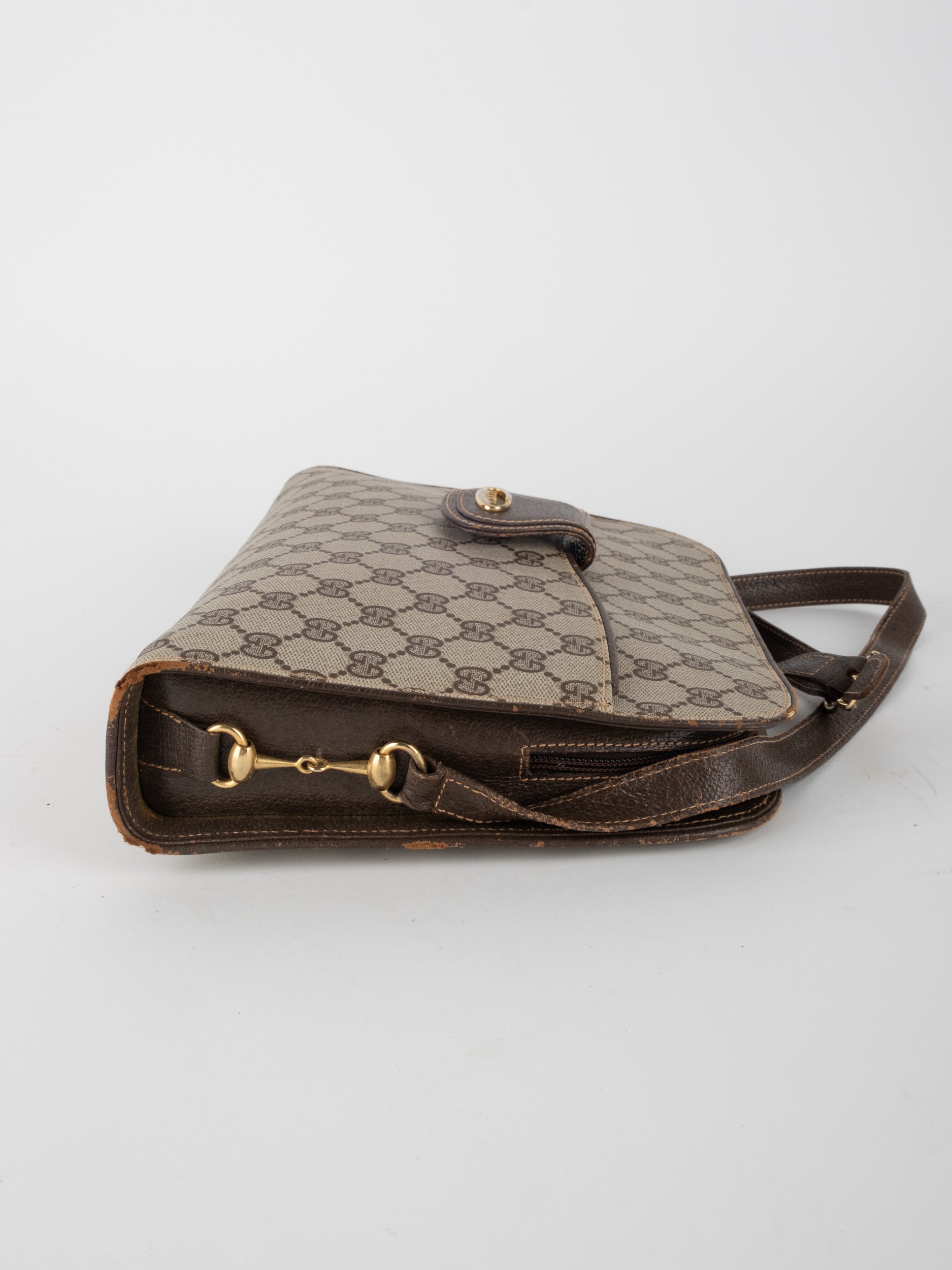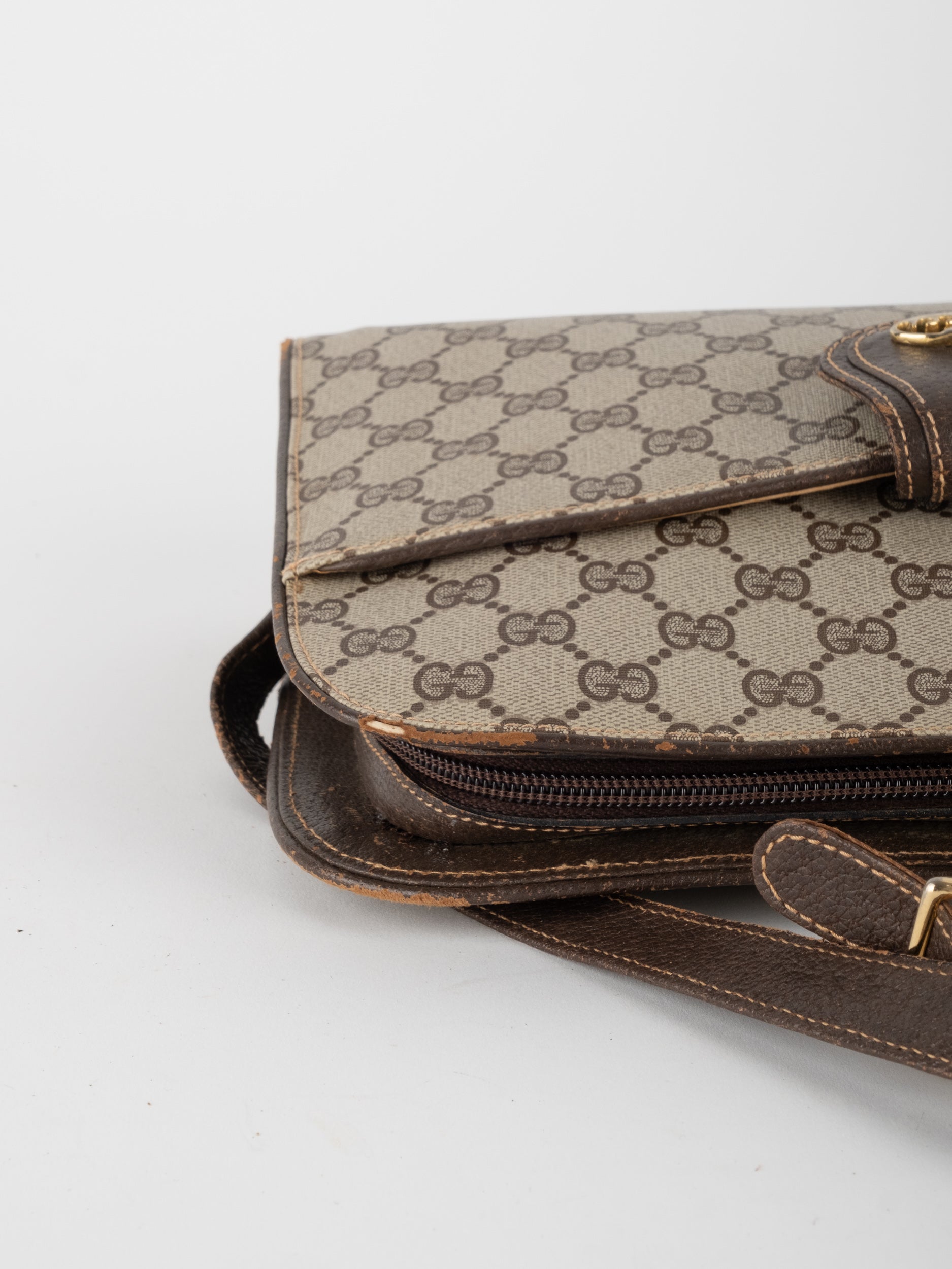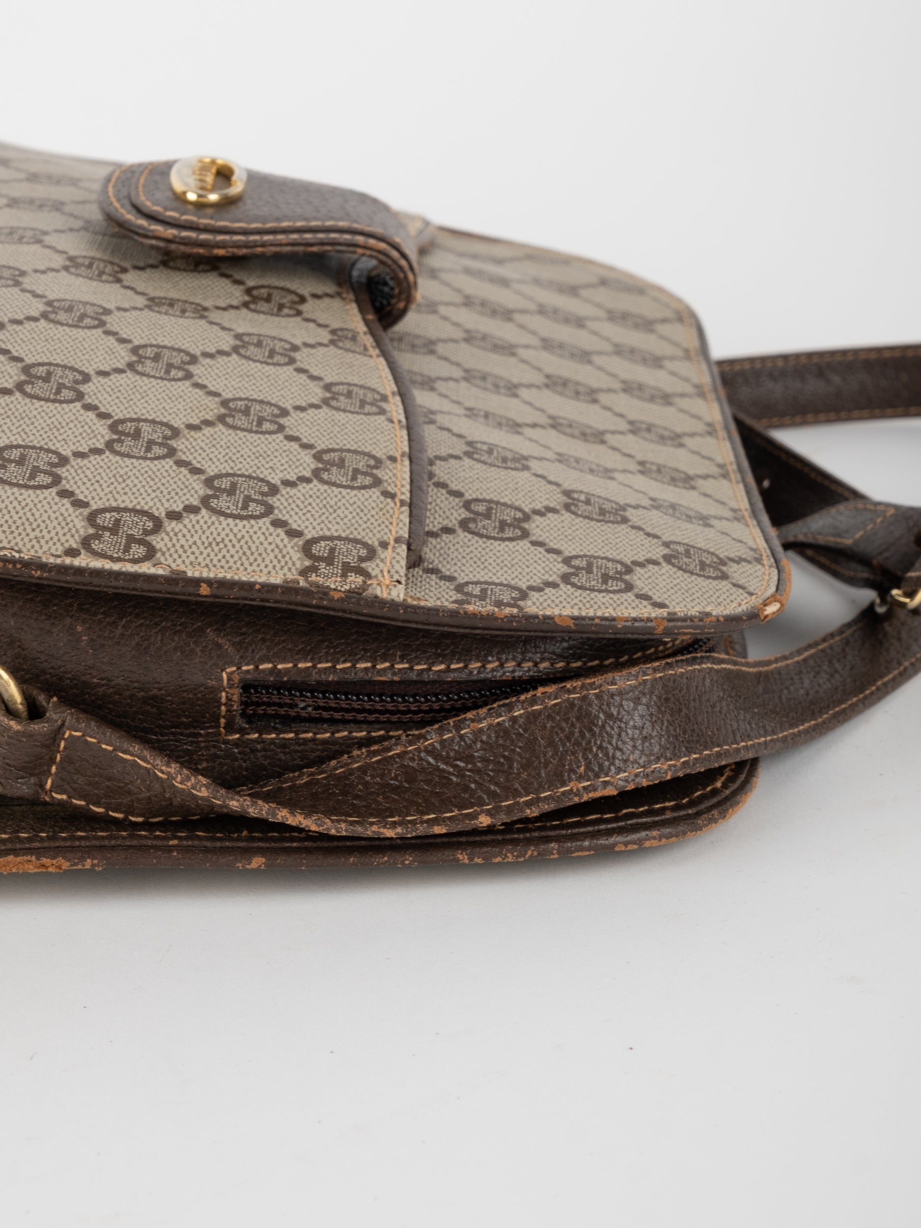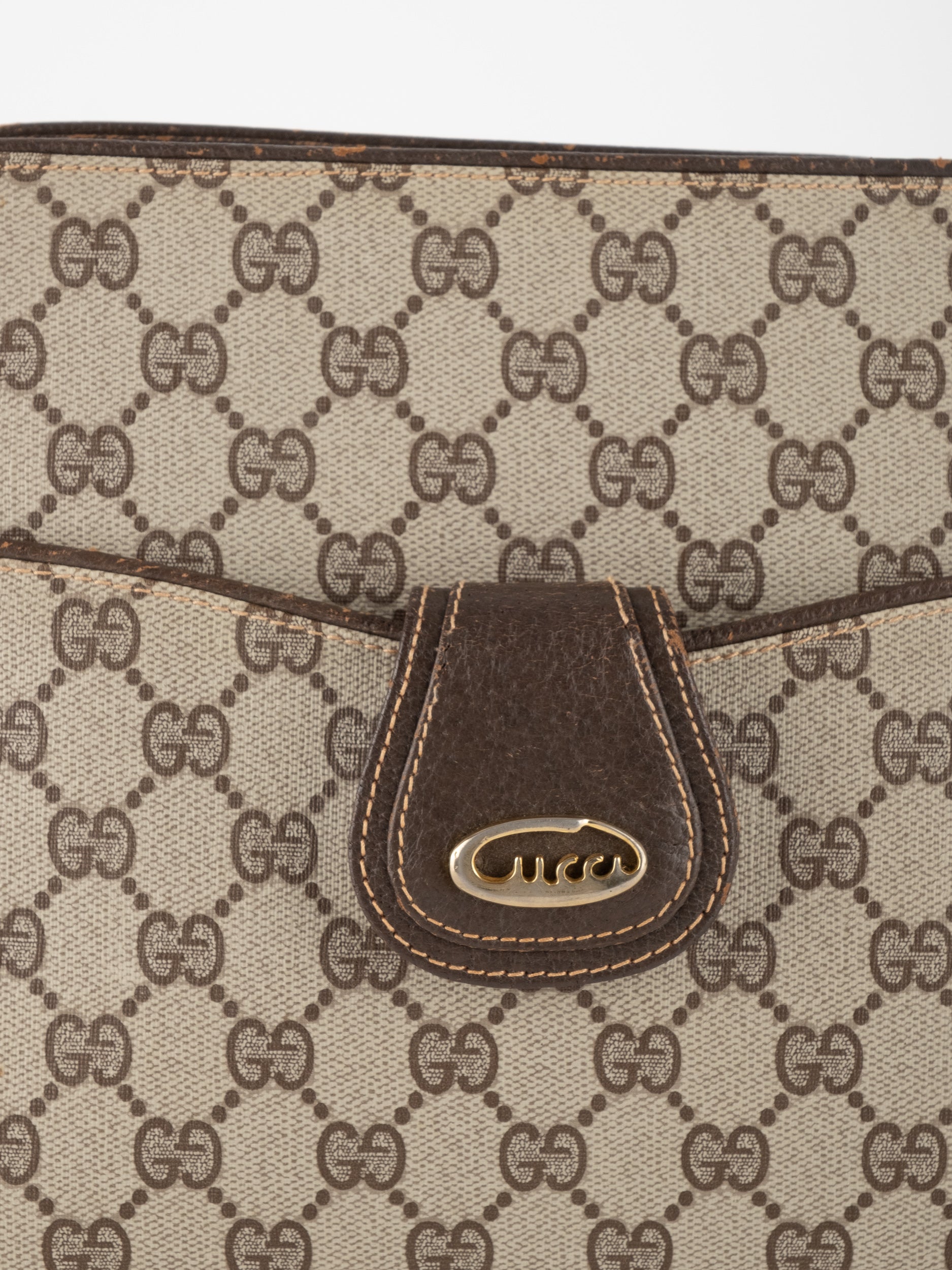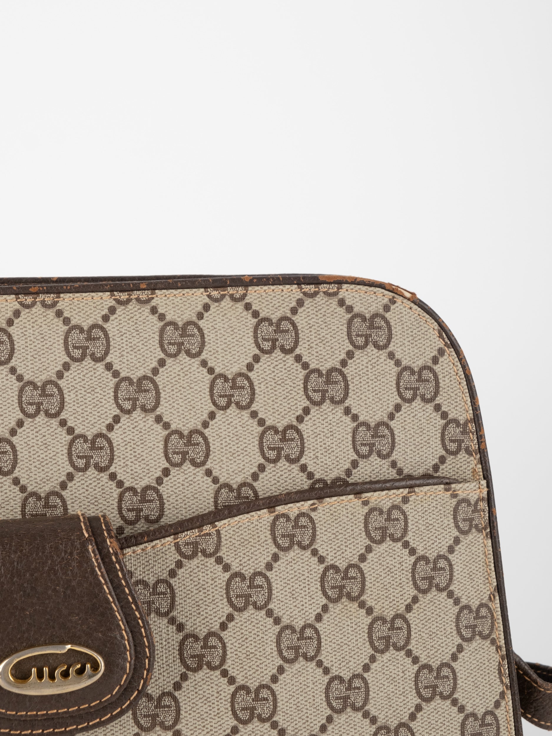 גוצי GUCCI וינטג' יד שנייה בעיצוב קלאסי ועדין עם דוגמת GG מונוגרמה בגווני בז’ וחום. תיק קומפקטי עם קווים מעוגלים ורצועת כתף דקה, שמשלב סטייל איטלקי על־זמני עם שימושיות יומיומית ונוכחות שקטה.