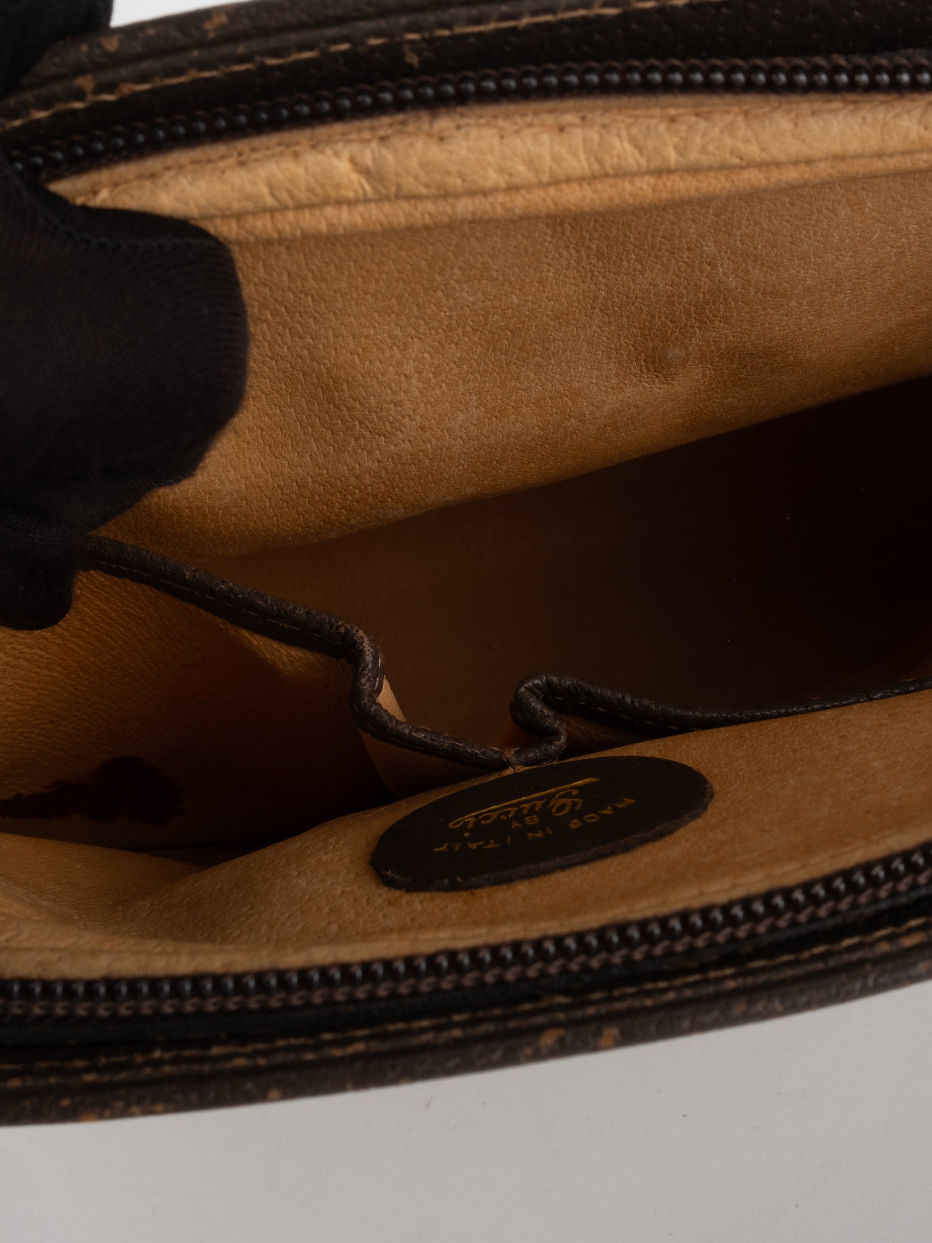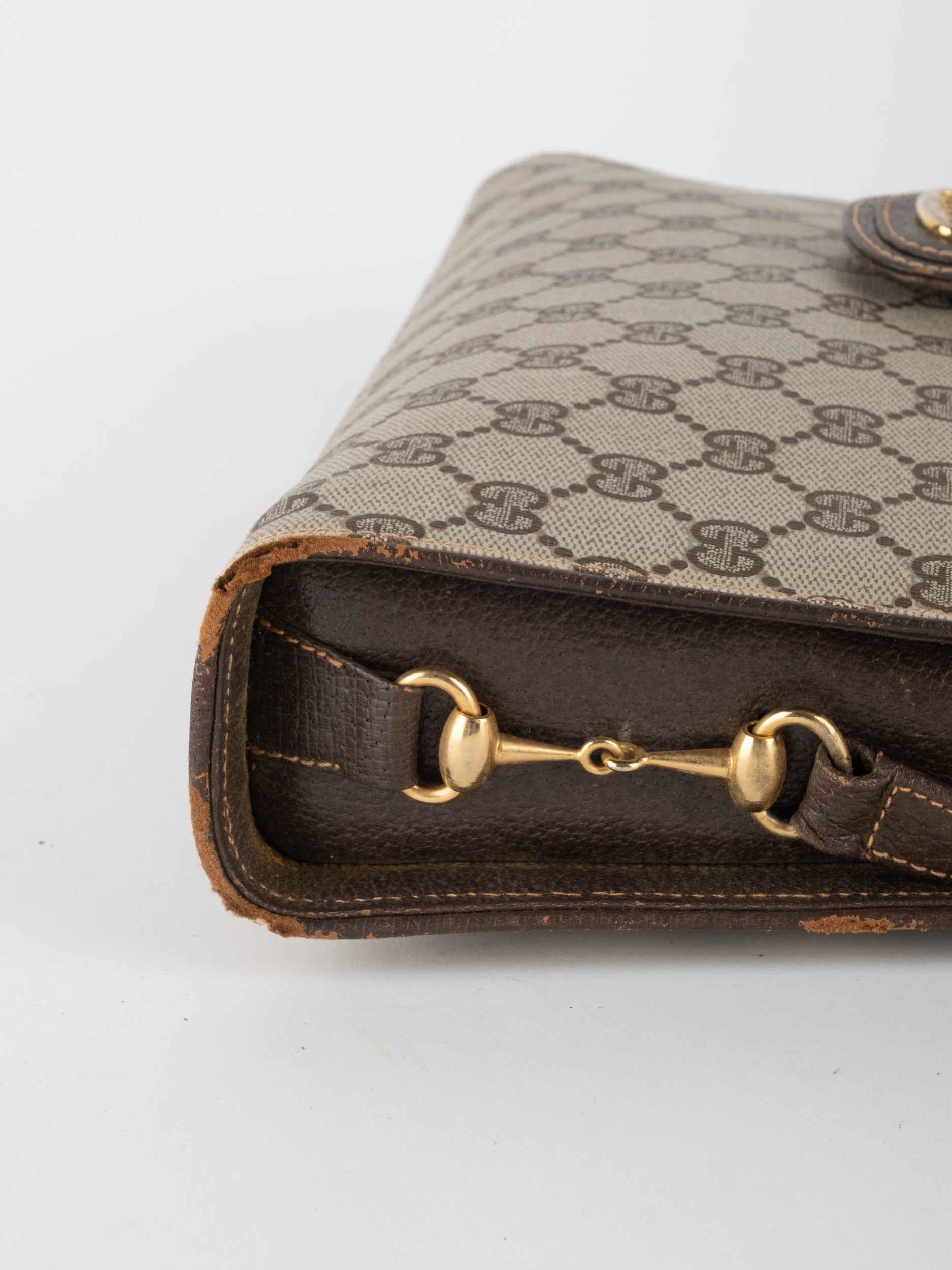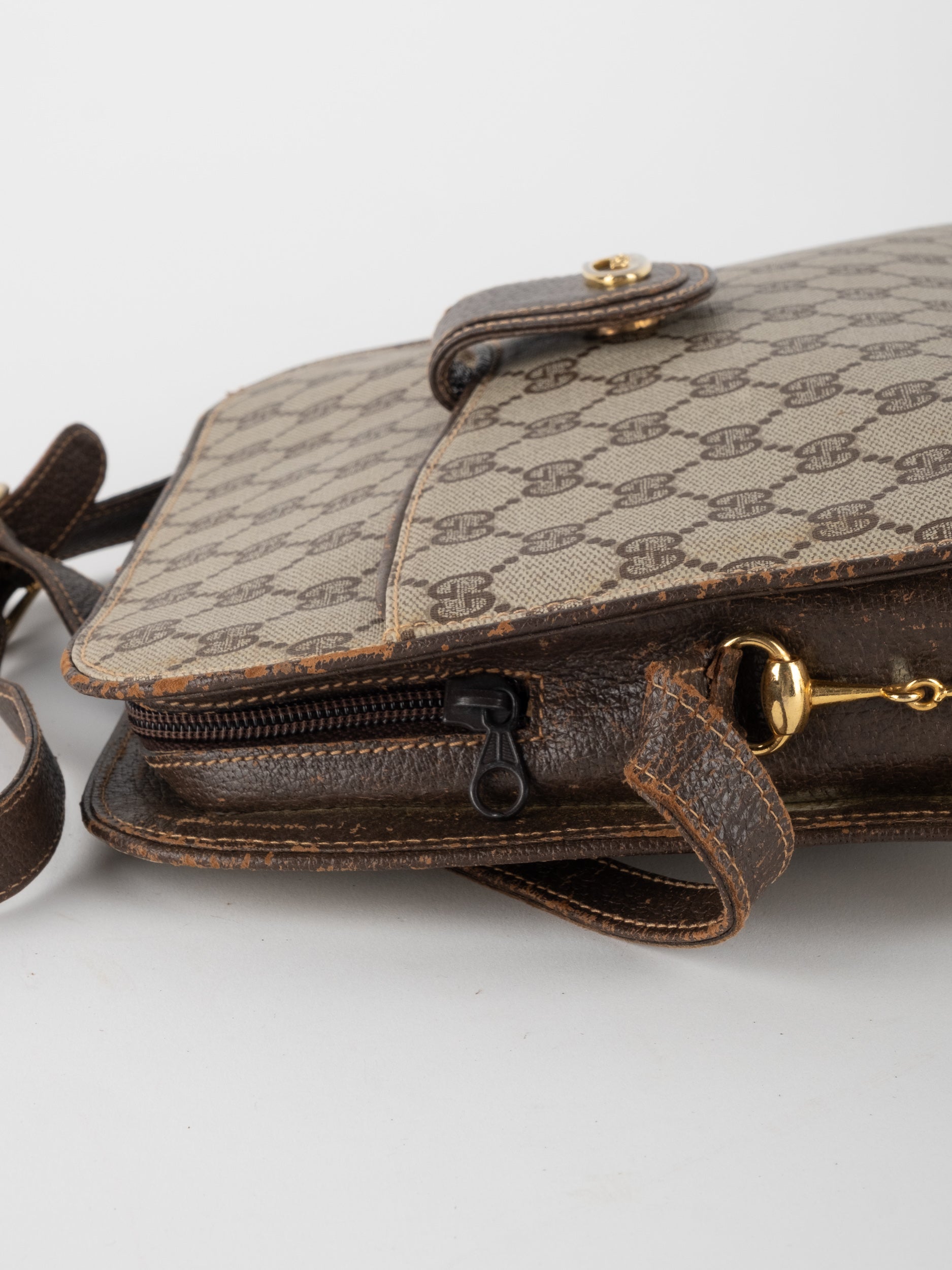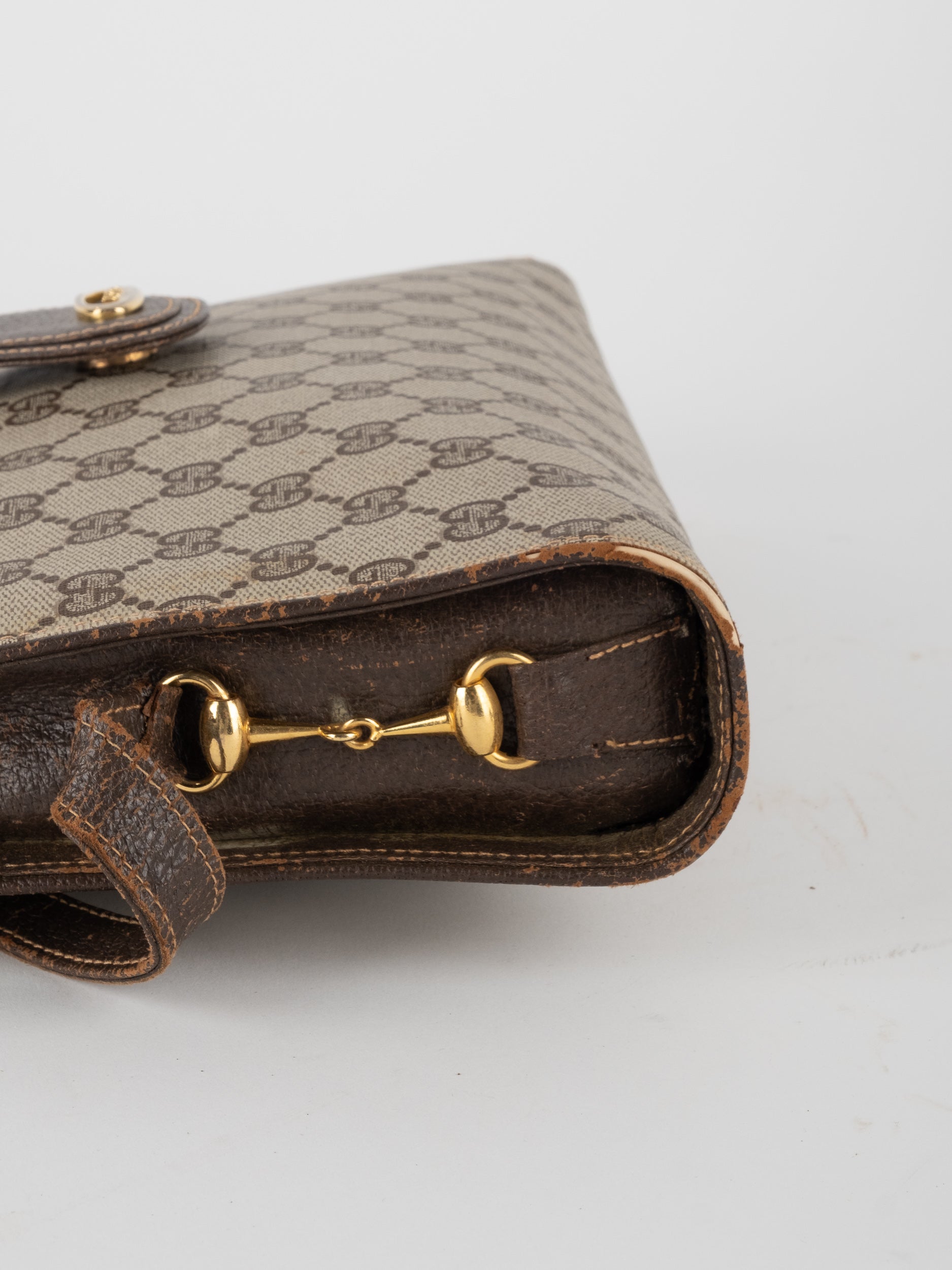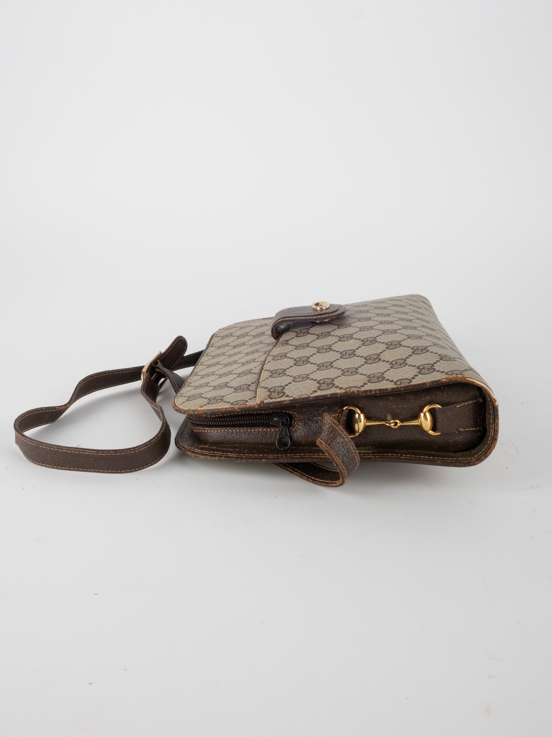 גוצי GUCCI וינטג' יד שנייה בעיצוב קלאסי ועדין עם דוגמת GG מונוגרמה בגווני בז’ וחום. תיק קומפקטי עם קווים מעוגלים ורצועת כתף דקה, שמשלב סטייל איטלקי על־זמני עם שימושיות יומיומית ונוכחות שקטה.