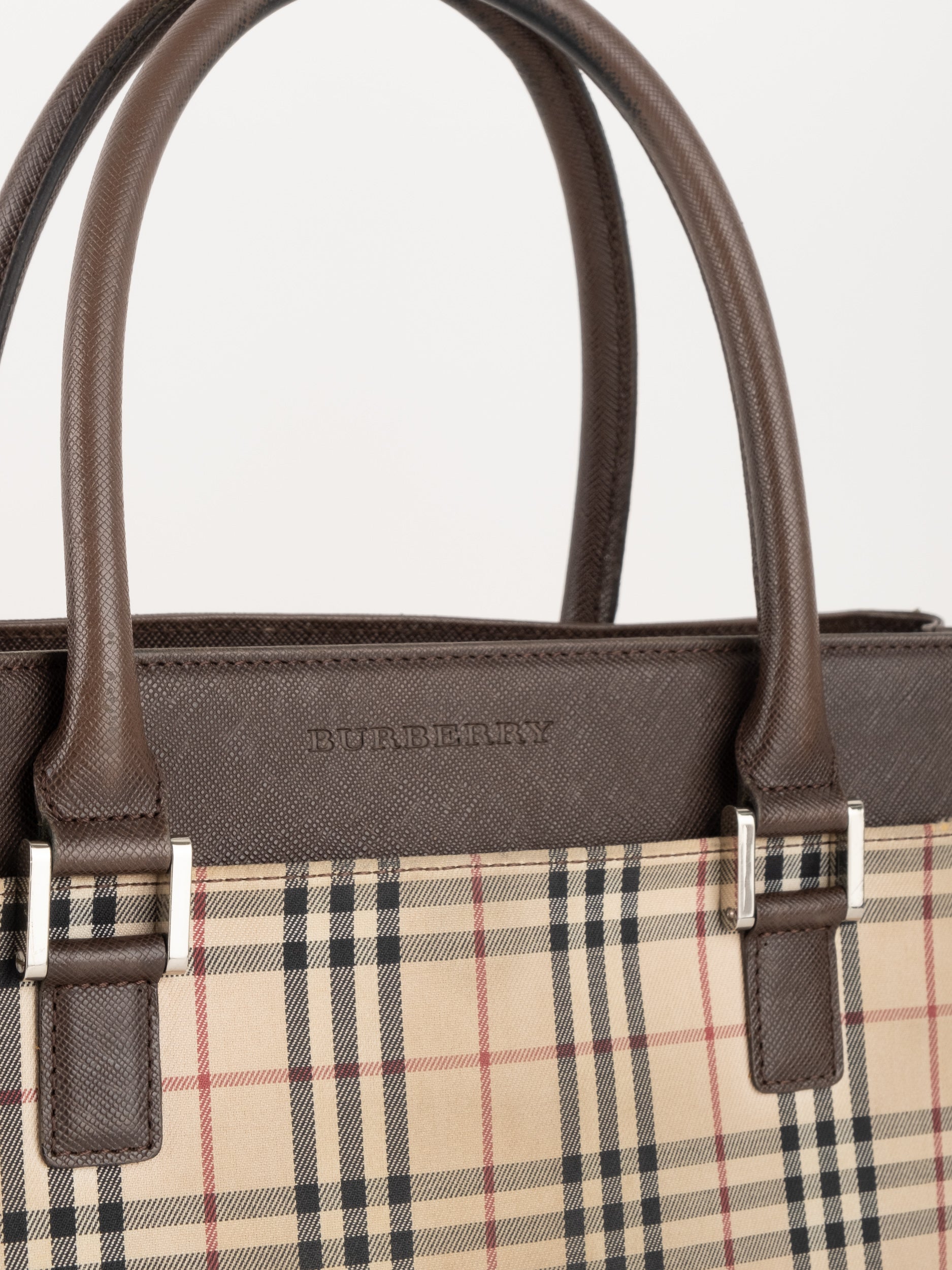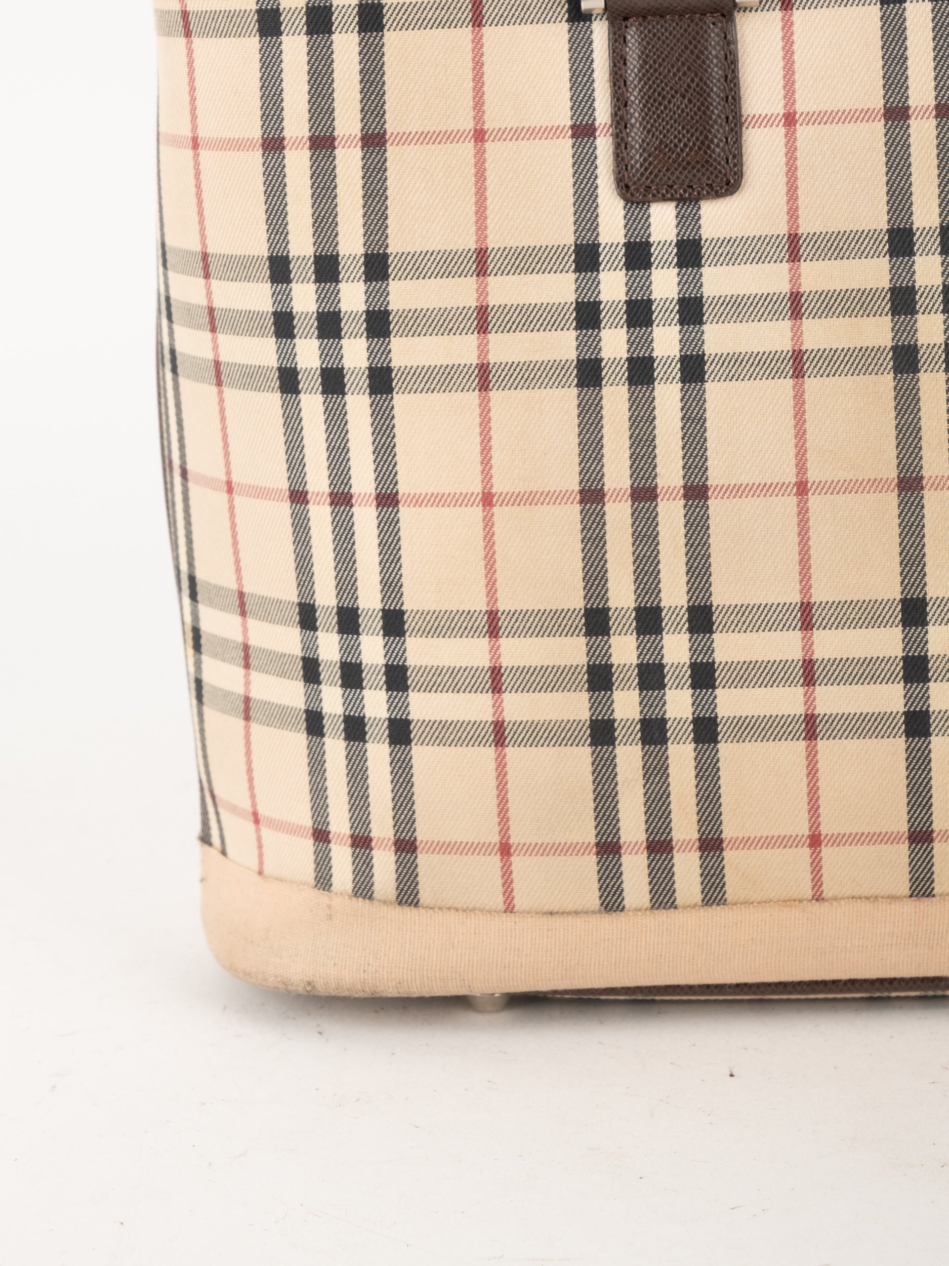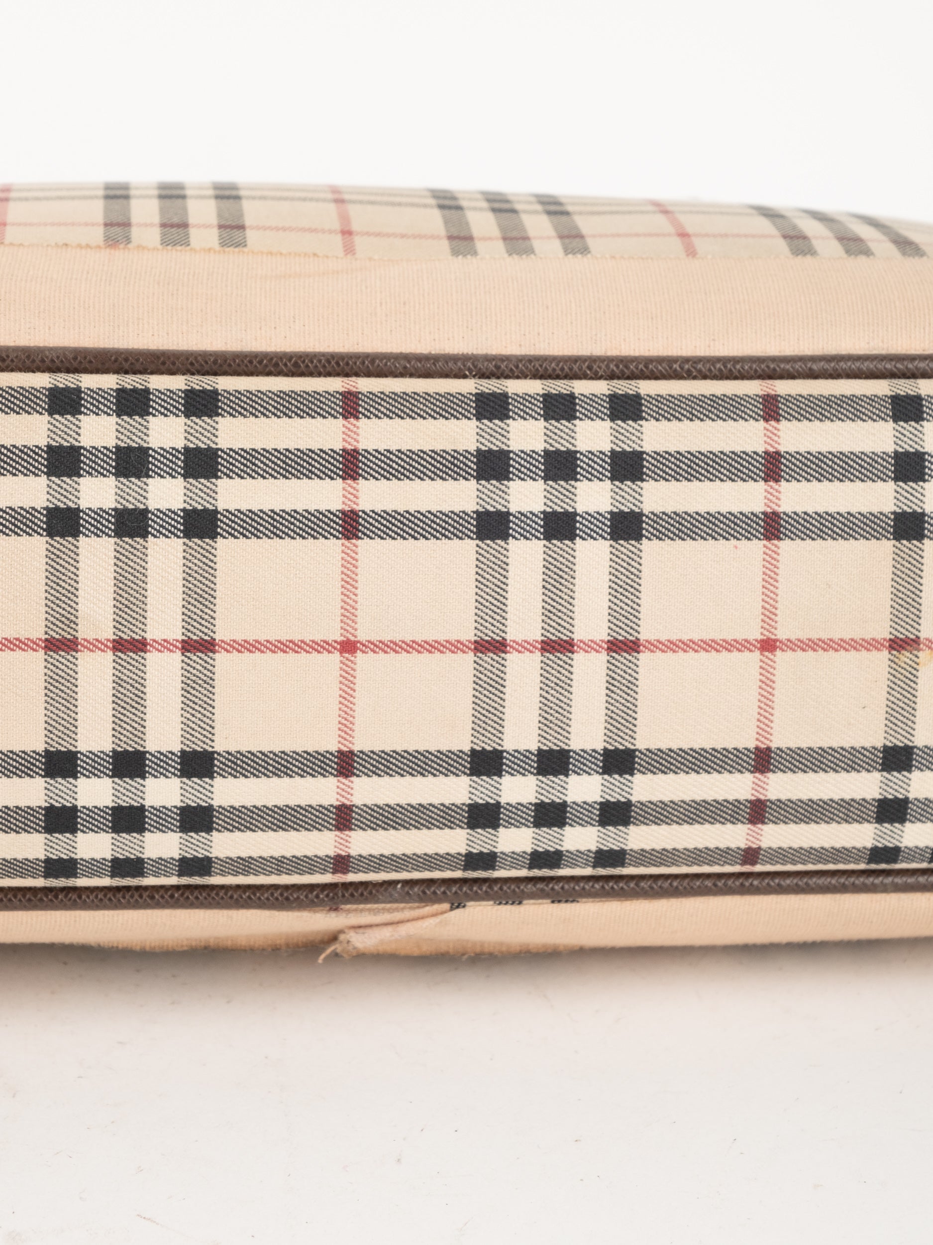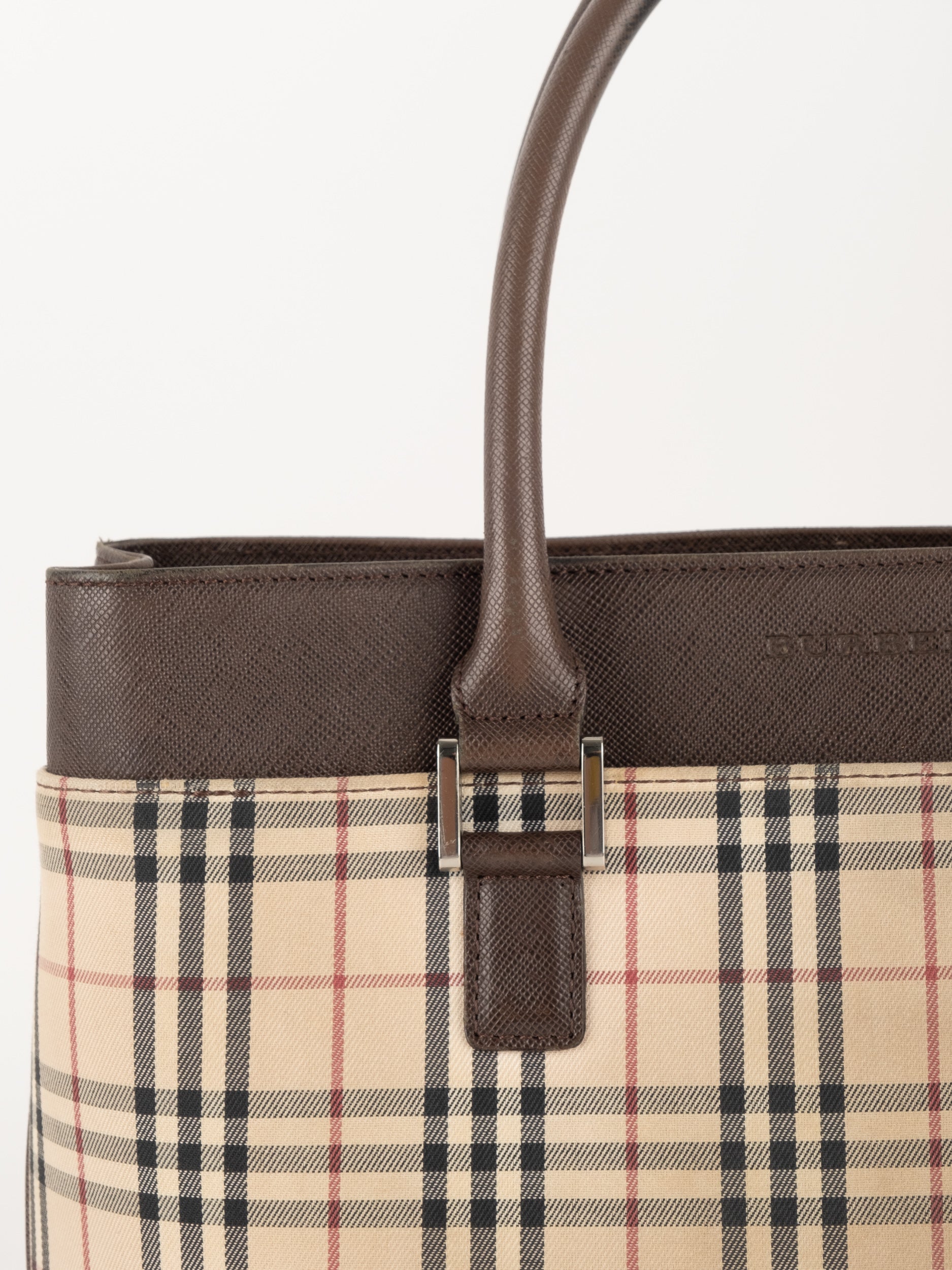 תיק של בית האופנה הבריטי Burberry ברברי – וינטג' יד שנייה, בעיצוב קלאסי מדוגמת Nova Check האייקונית של המותג. דוגמת המשבצות המזוהה עם Burberry הפכה במשך השנים לאחד הסמלים הבולטים של אופנה בריטית אלגנטית ועל-זמנית.