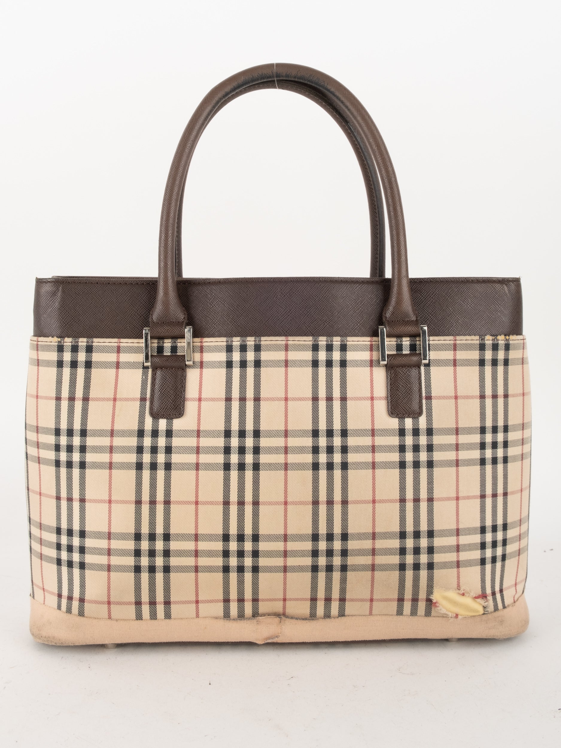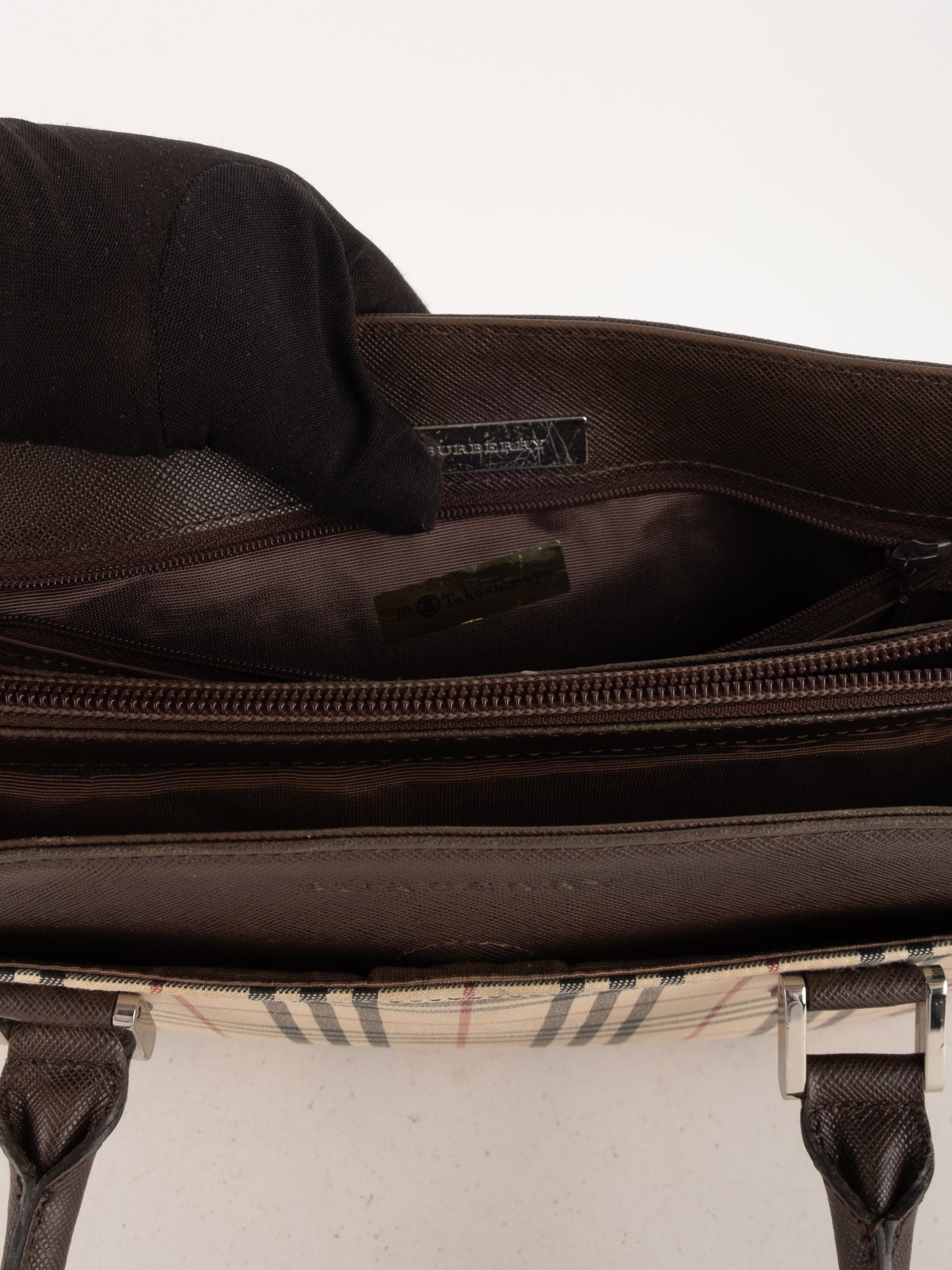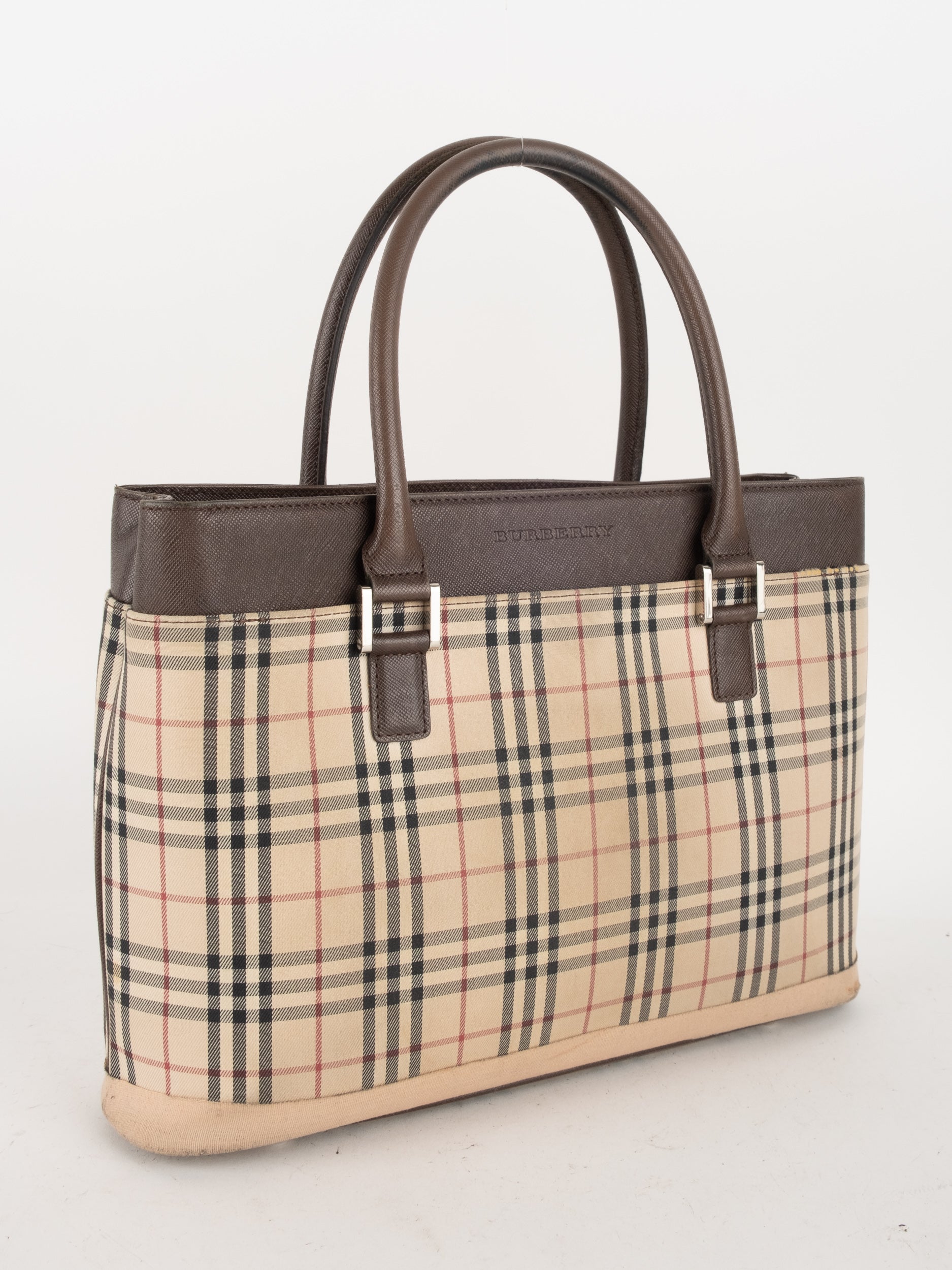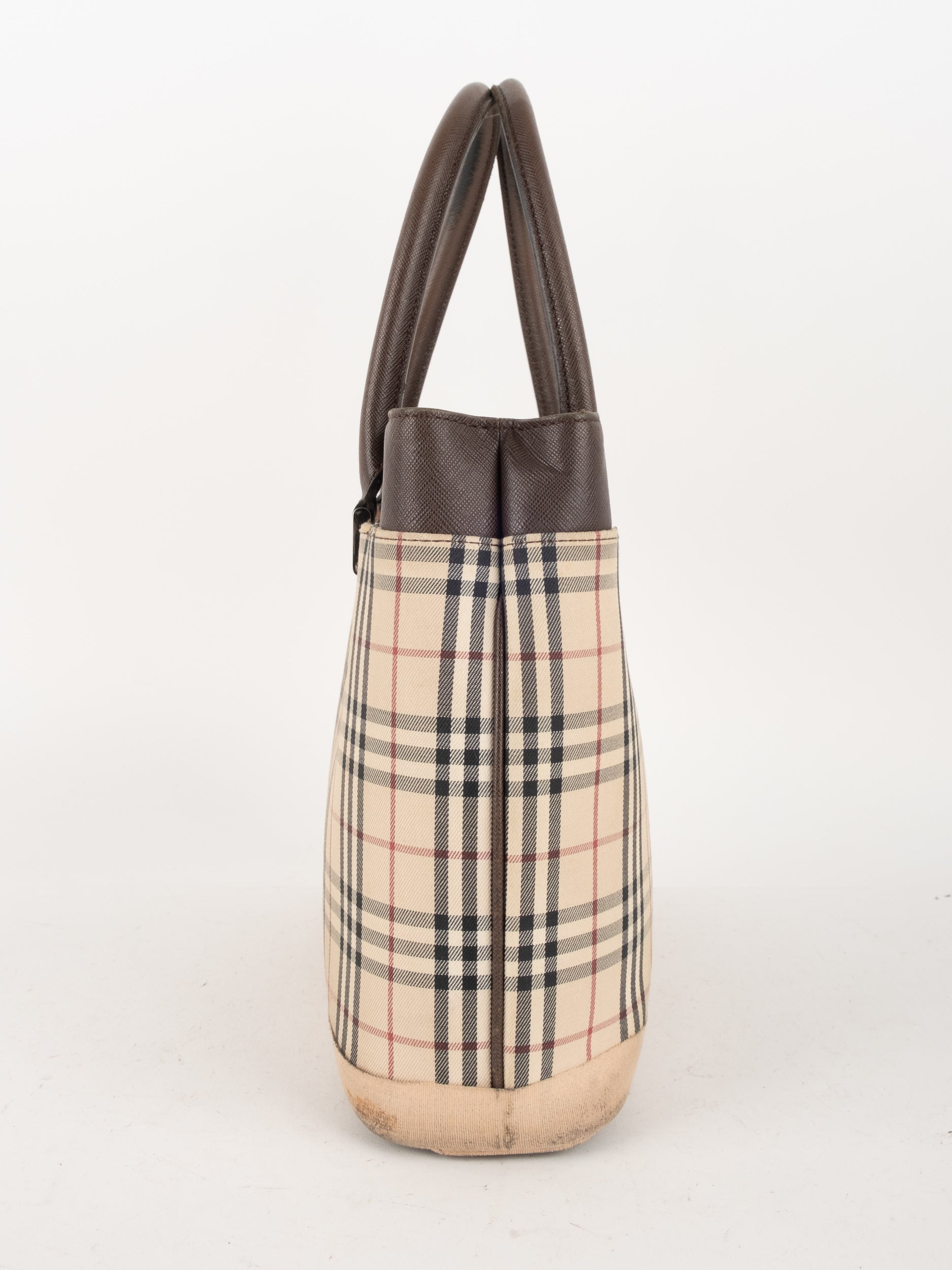 תיק של בית האופנה הבריטי Burberry ברברי – וינטג' יד שנייה, בעיצוב קלאסי מדוגמת Nova Check האייקונית של המותג. דוגמת המשבצות המזוהה עם Burberry הפכה במשך השנים לאחד הסמלים הבולטים של אופנה בריטית אלגנטית ועל-זמנית.