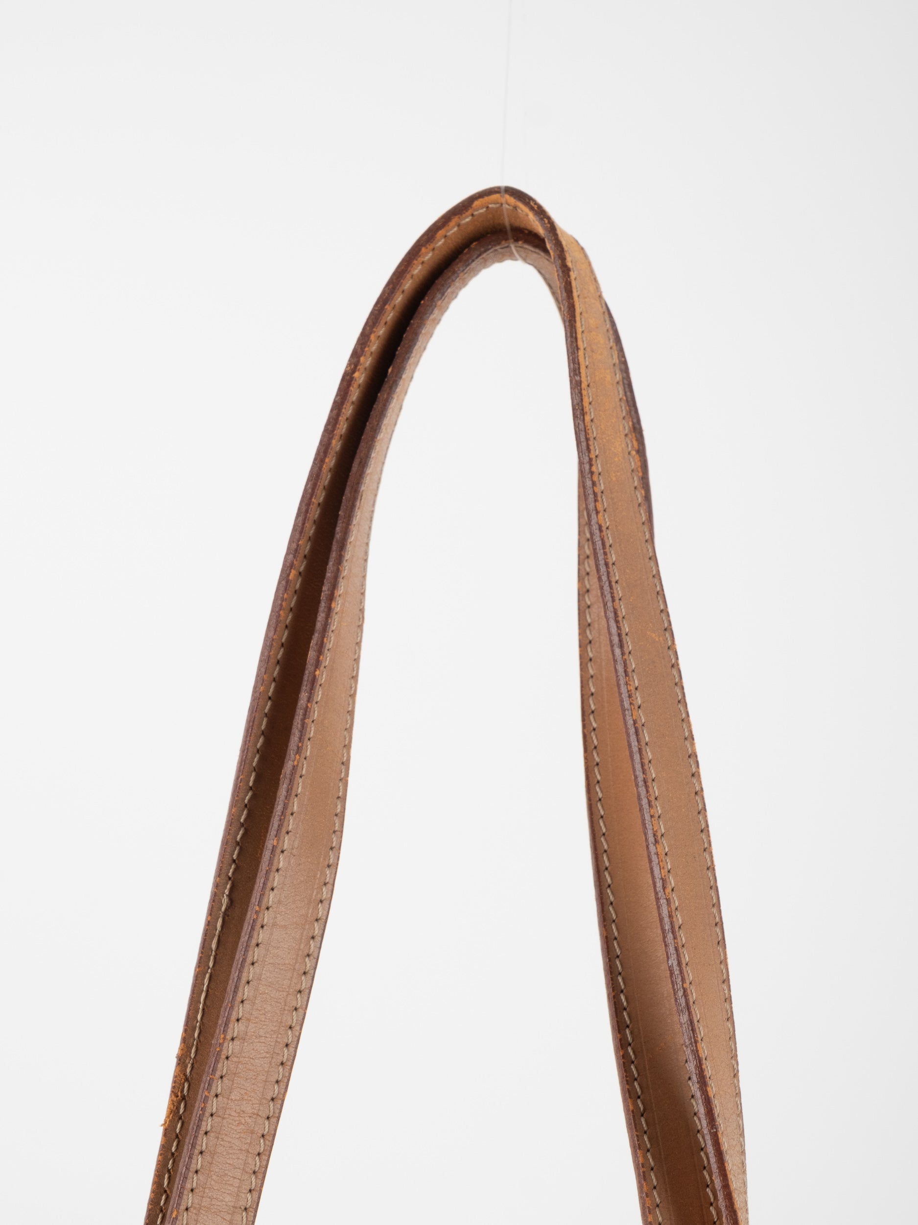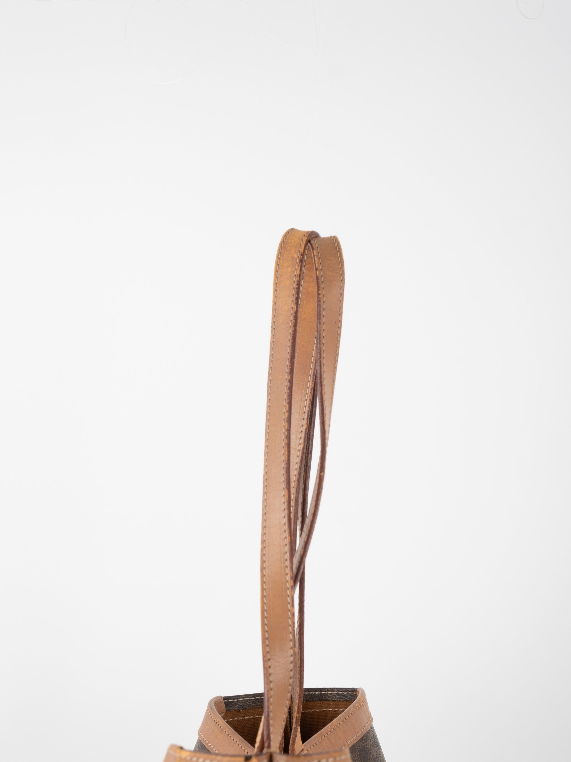התיק עשוי קנבס בדוגמת Macadam בגווני חום בשילוב ידיות ועיטורי עור בגוון קאמל. מבנה פתוח ומרווח לנשיאה על הכתף, מתאים לשימוש יומיומי ולעבודה.