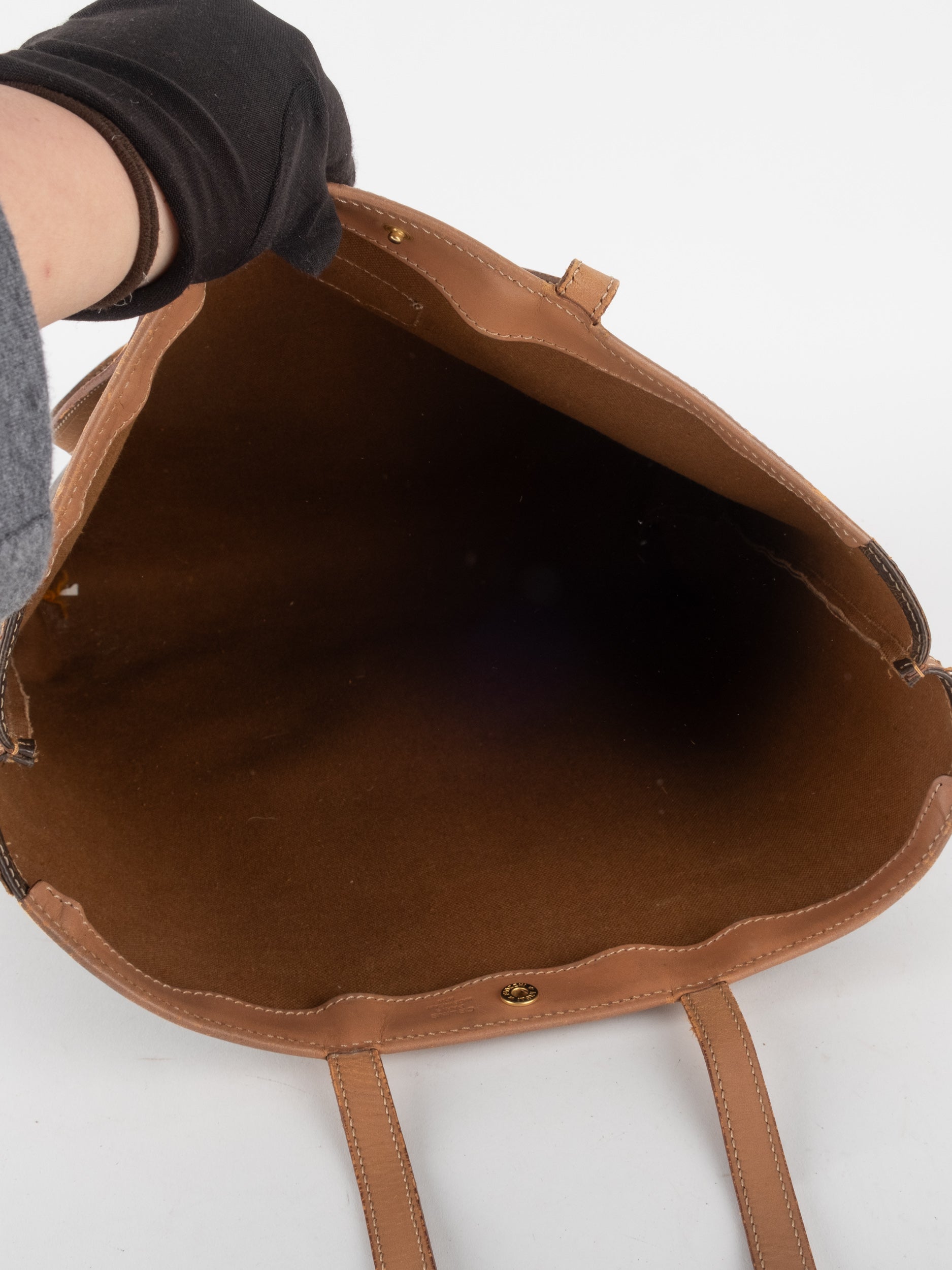 תיק נשיאה של סלין וינטג' יד שנייה בדוגמת Macadam הקלאסית בגווני חום כהים עם עיטורי עור בגוון קאמל טבעי. דגם טוט על־זמני בעל נוכחות שקטה ואלגנטית, כזה שמשדר יוקרה מאופקת ולא מתאמץ להרשים. הצללית הרכה והנקייה יוצרת מראה מינימליסטי מדויק, והתוצאה היא תיק שמשלים כל לוק בצורה טבעית – מג’ינס יומיומי ועד שמלה מוקפדת. זהו פריט שמרגיש נכון, בוגר ובטוח בעצמו, עם אופי פריזאי ברור.