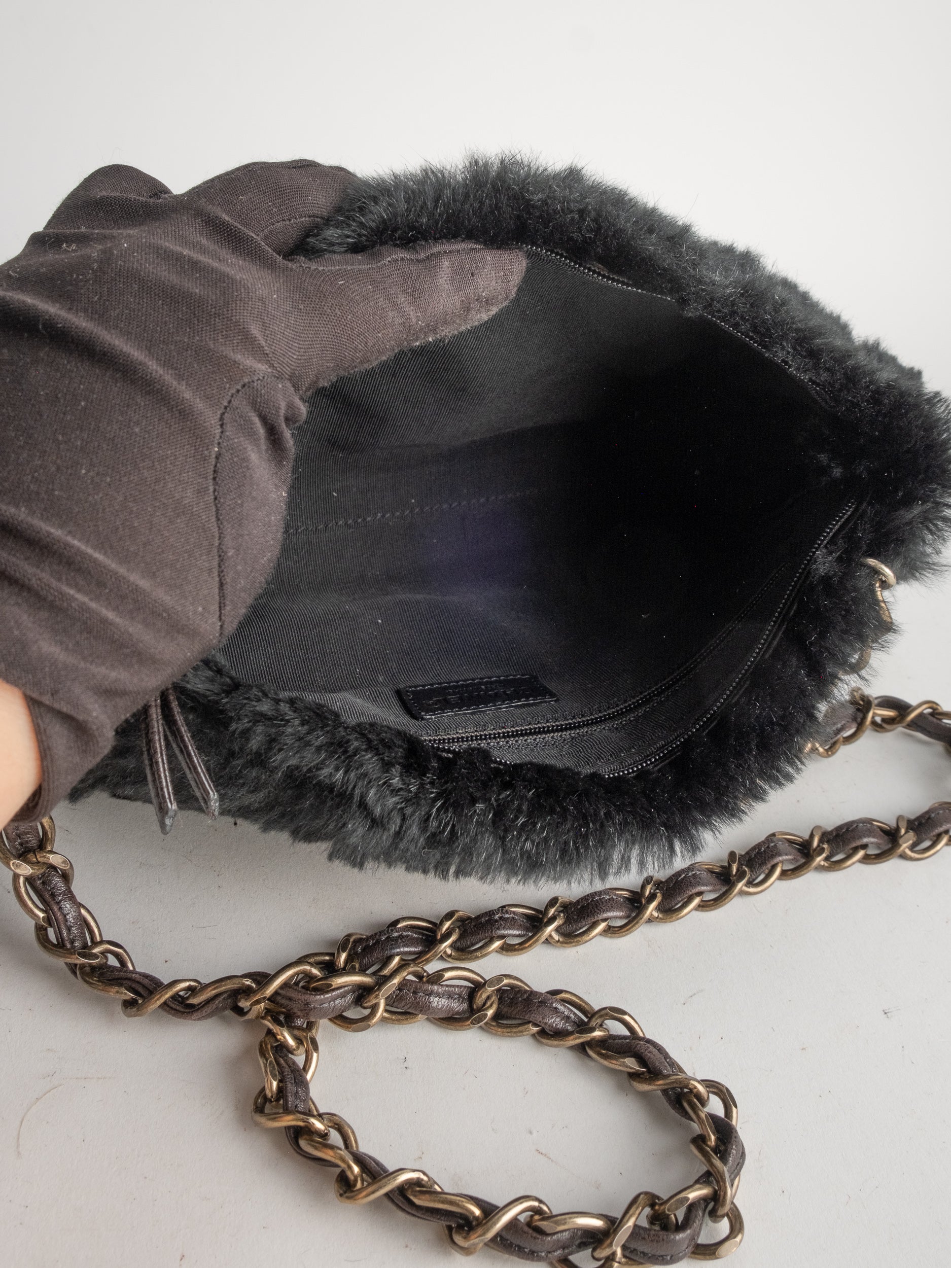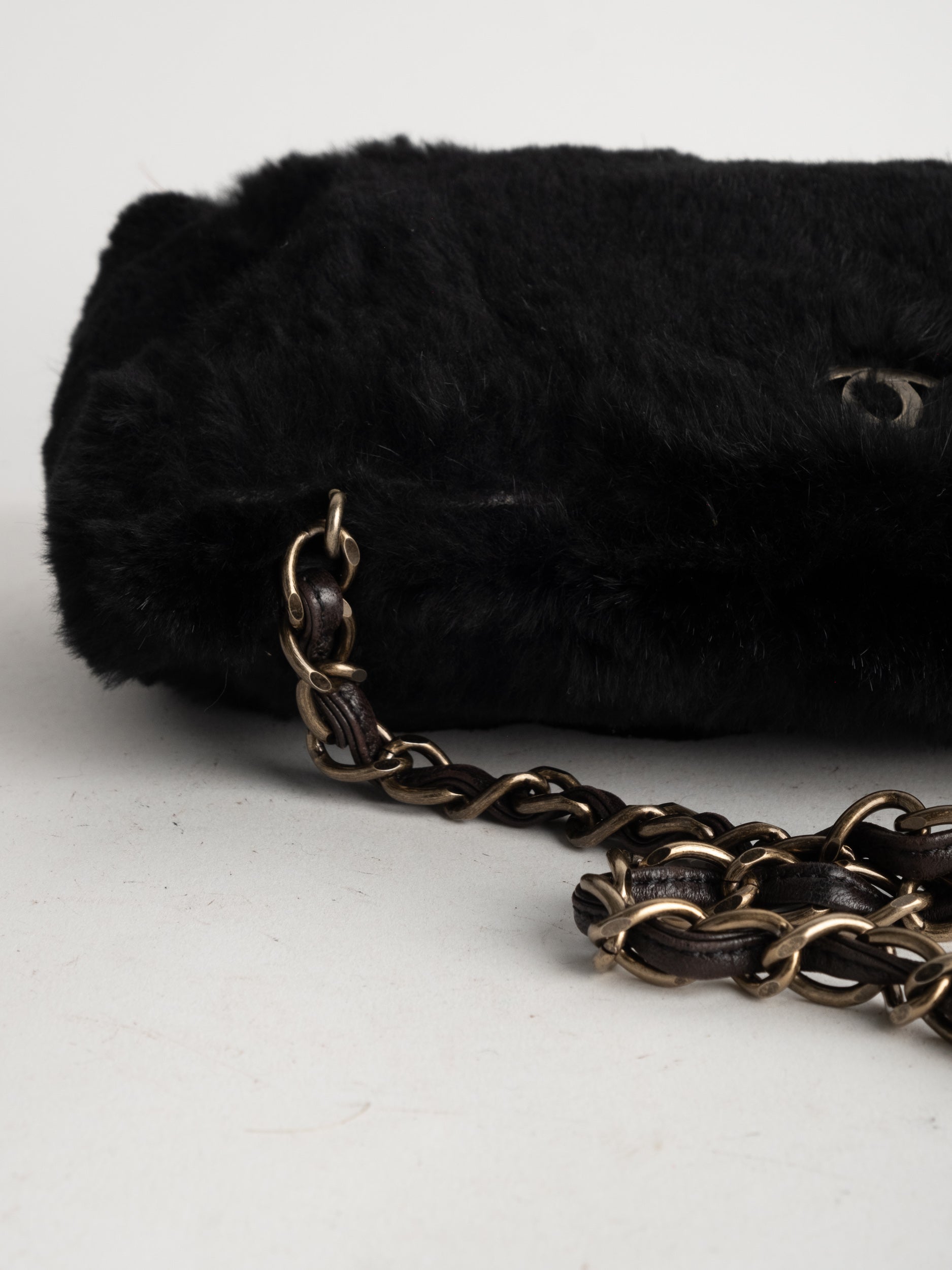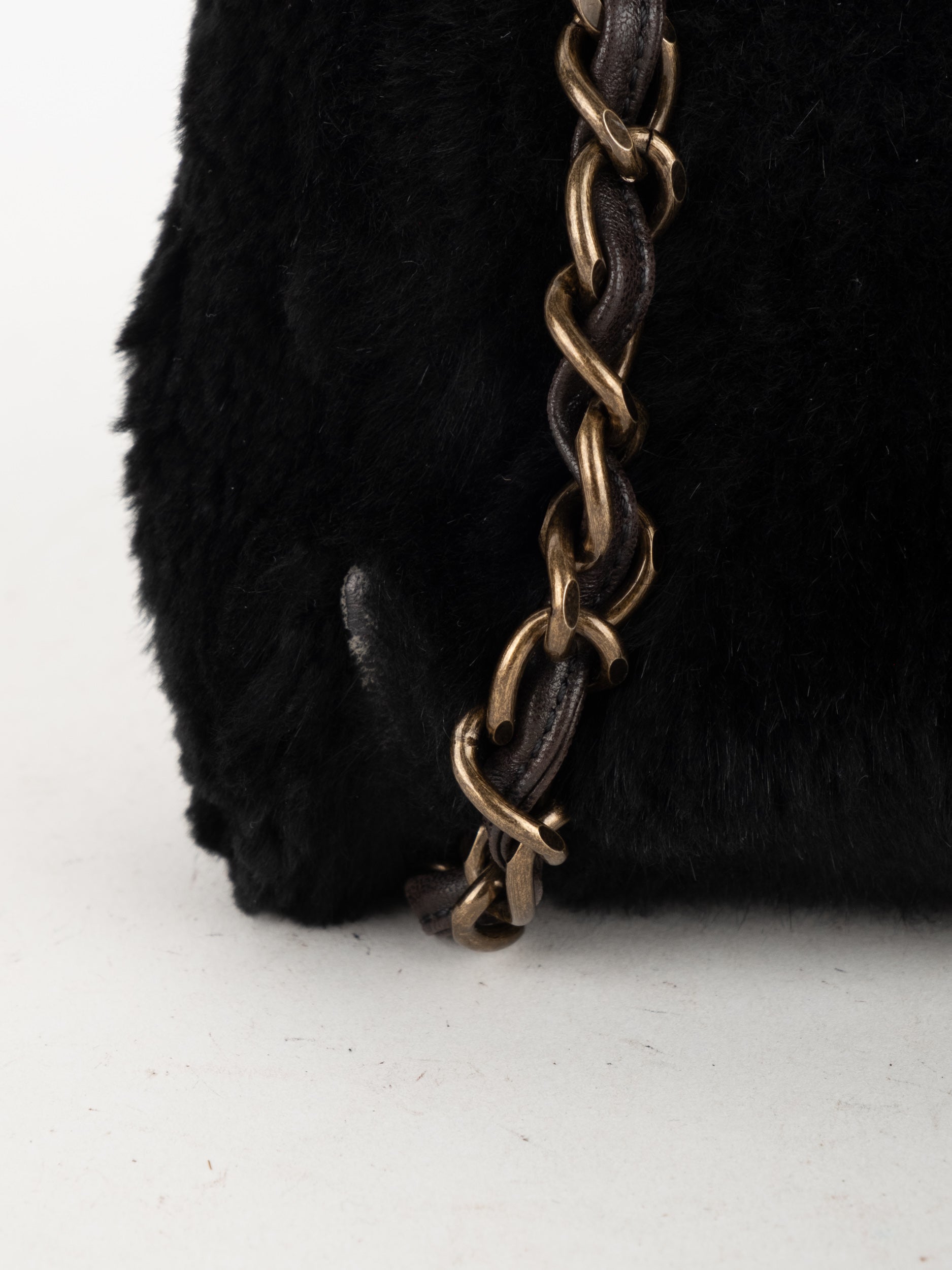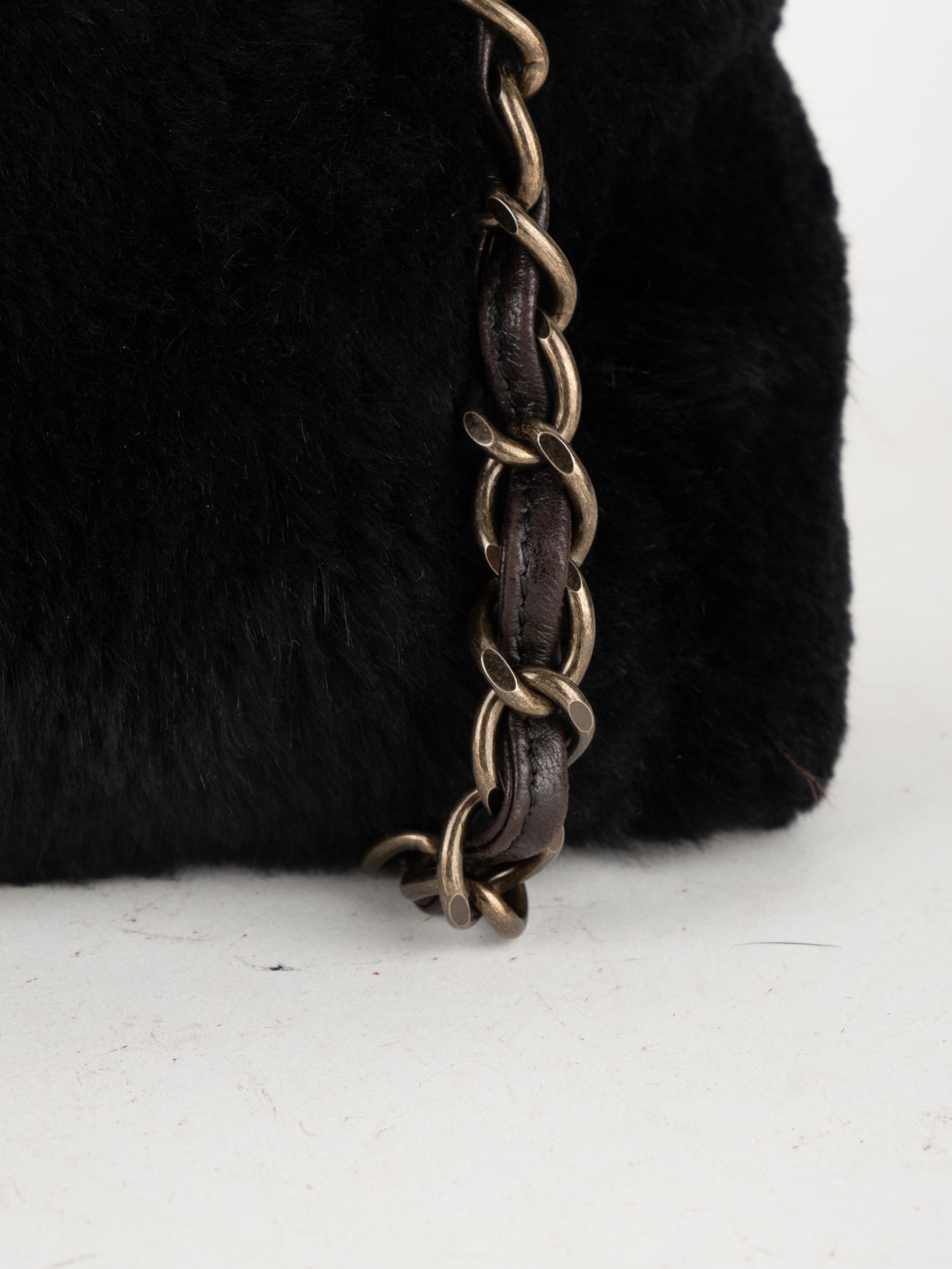 CHANEL Vintage Fur Shoulder Bag Karl Lagerfeld Era