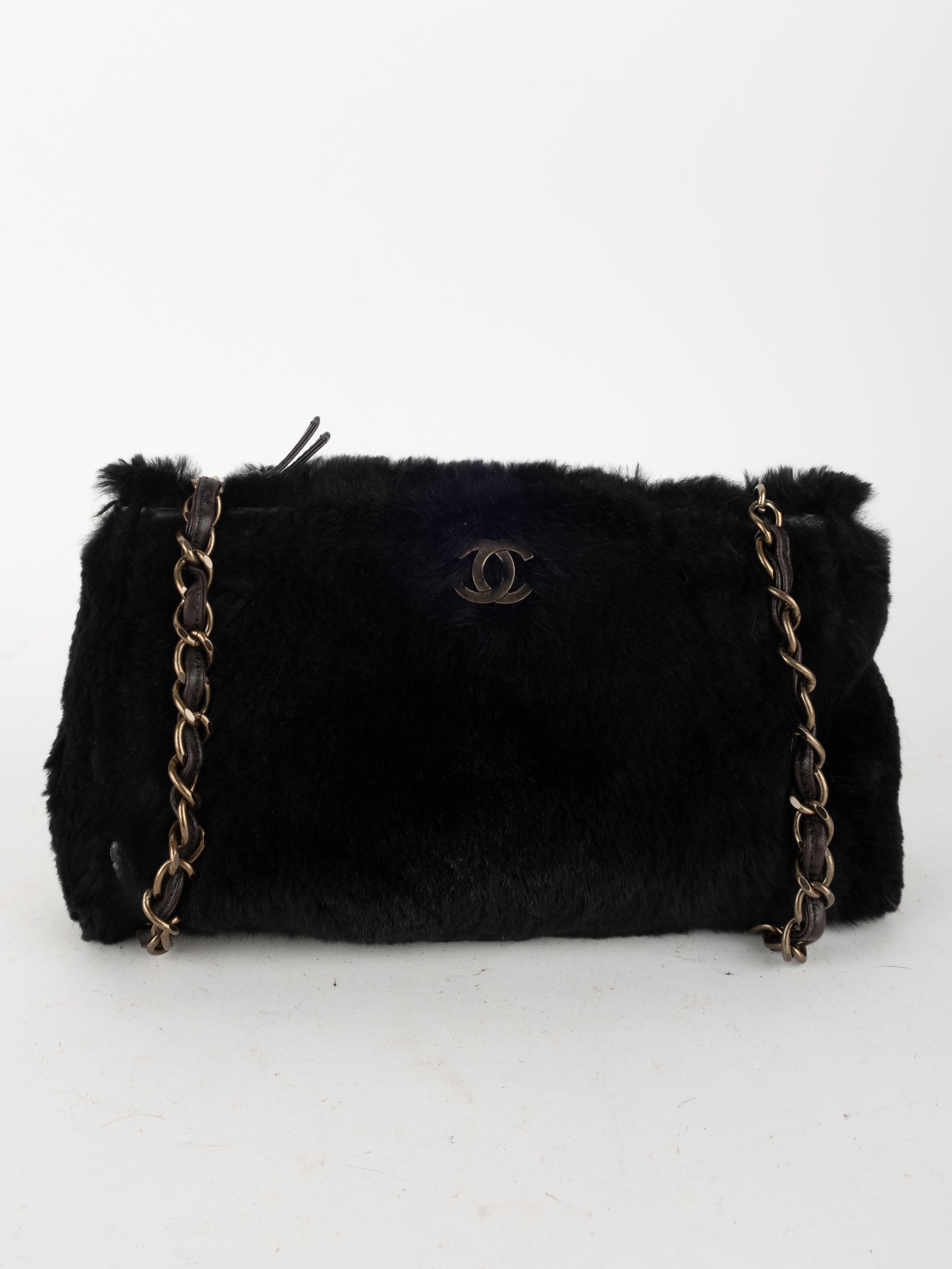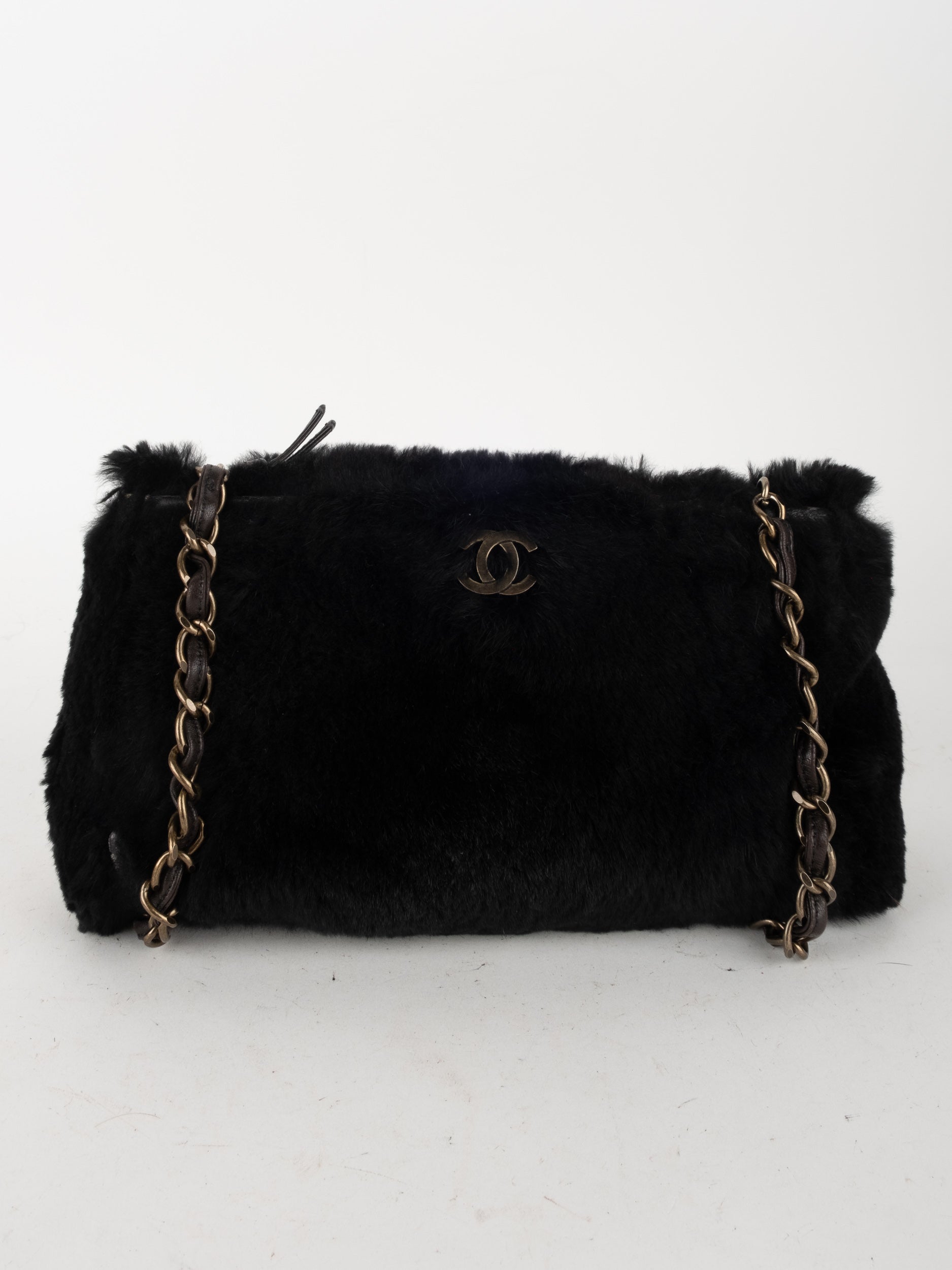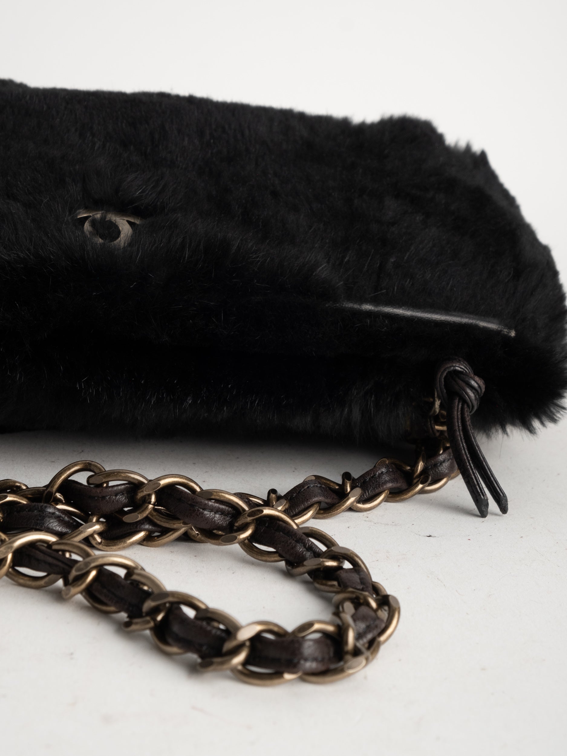 CHANEL Vintage Fur Shoulder Bag Karl Lagerfeld Era