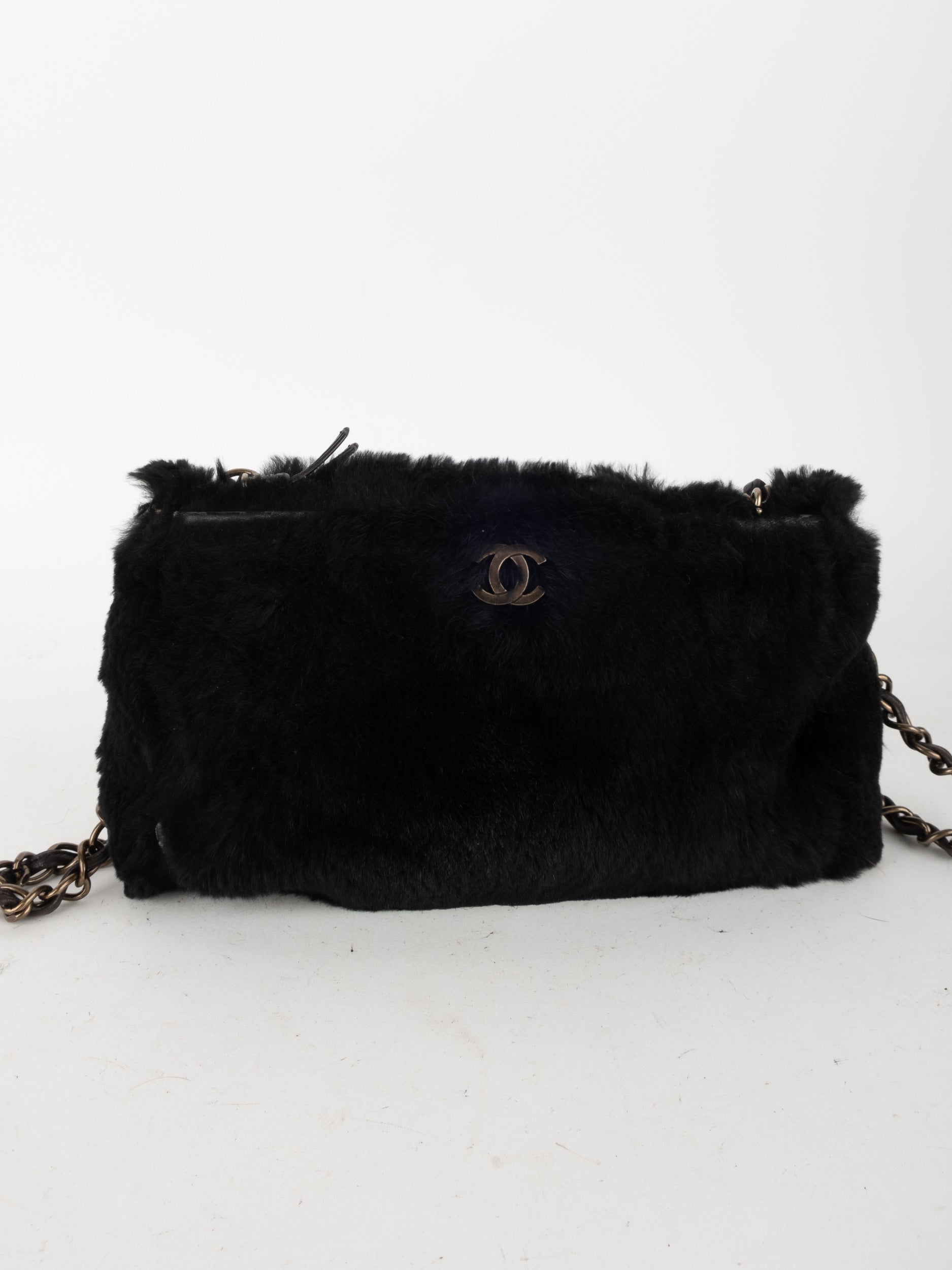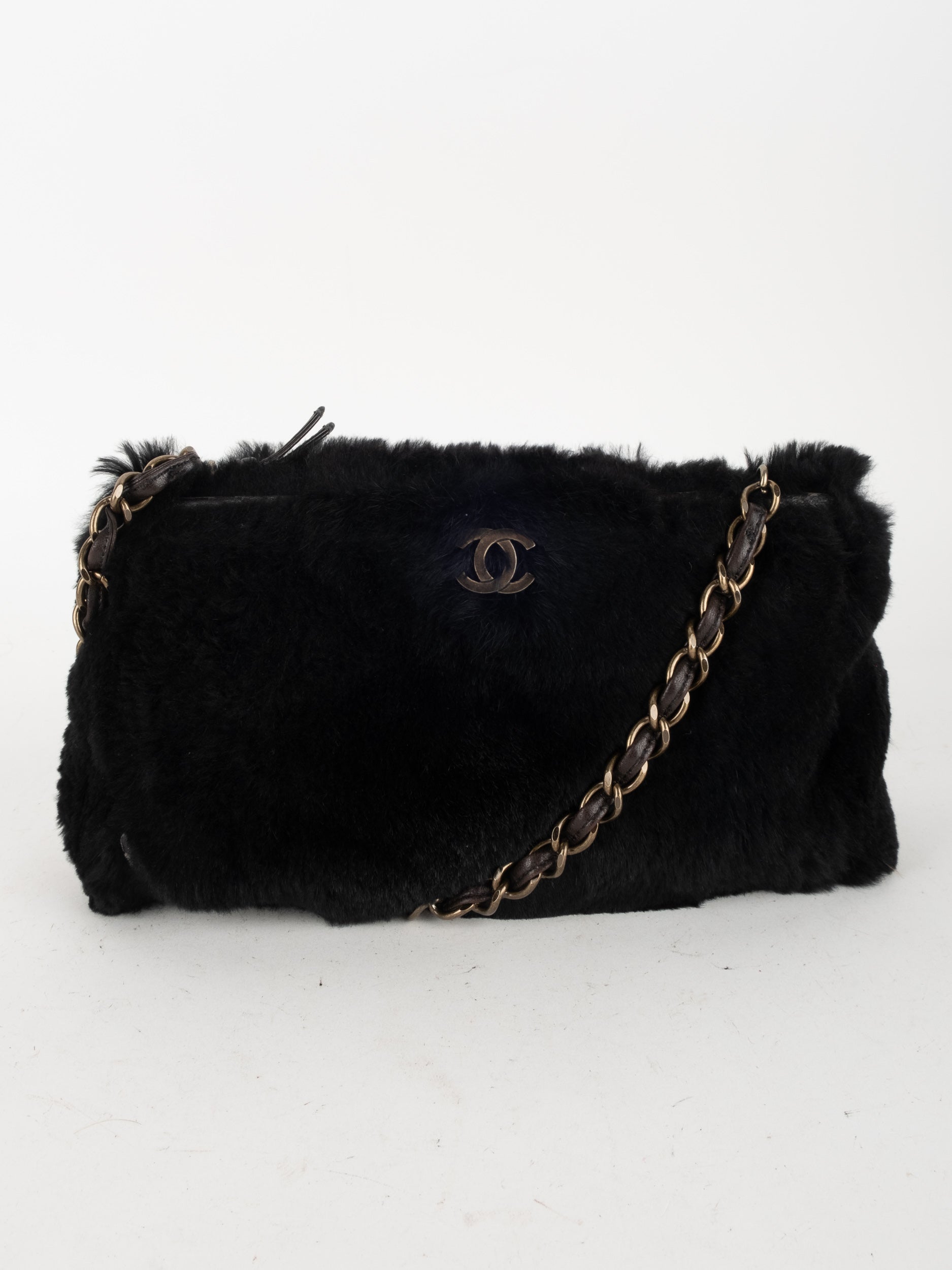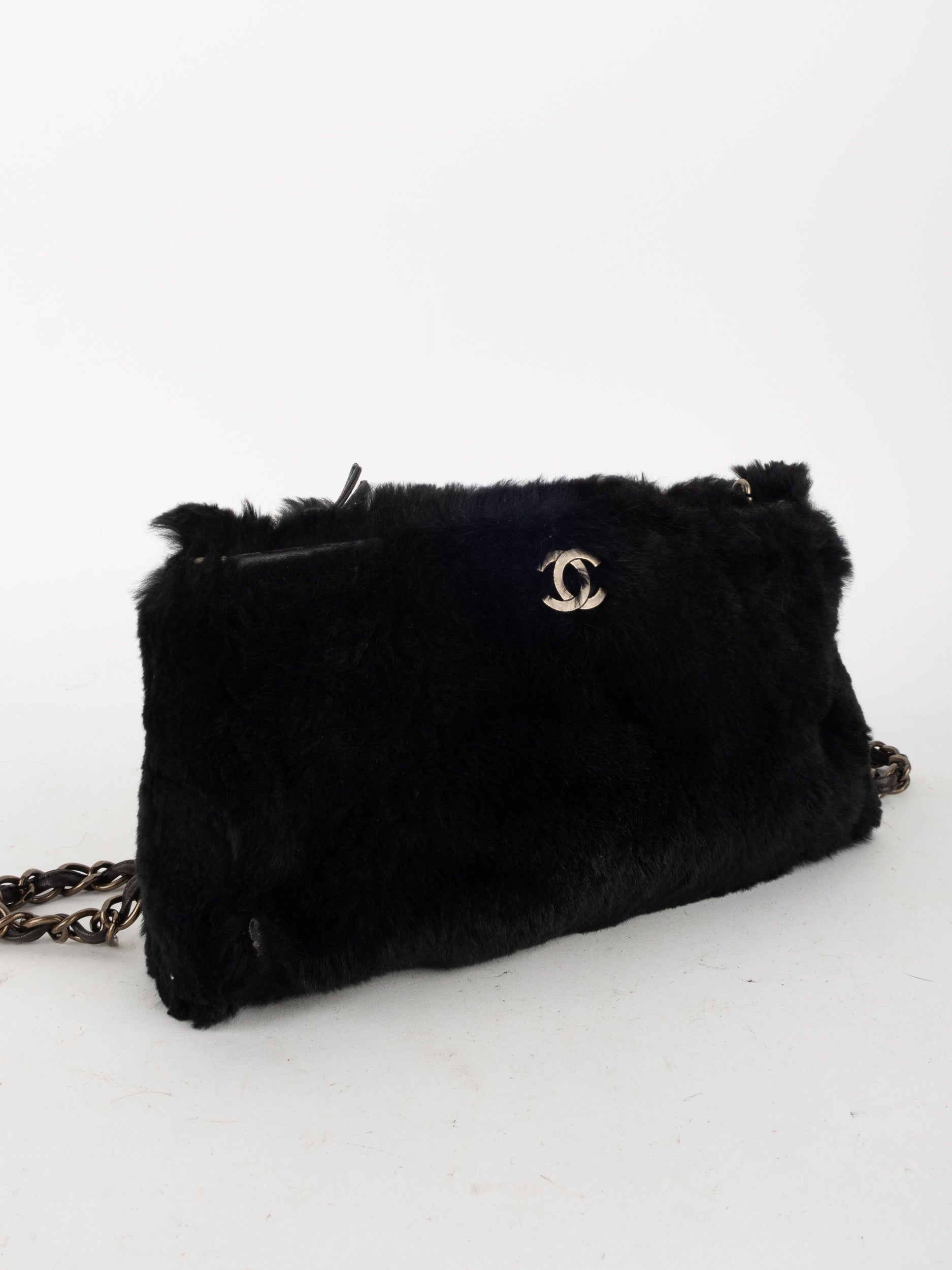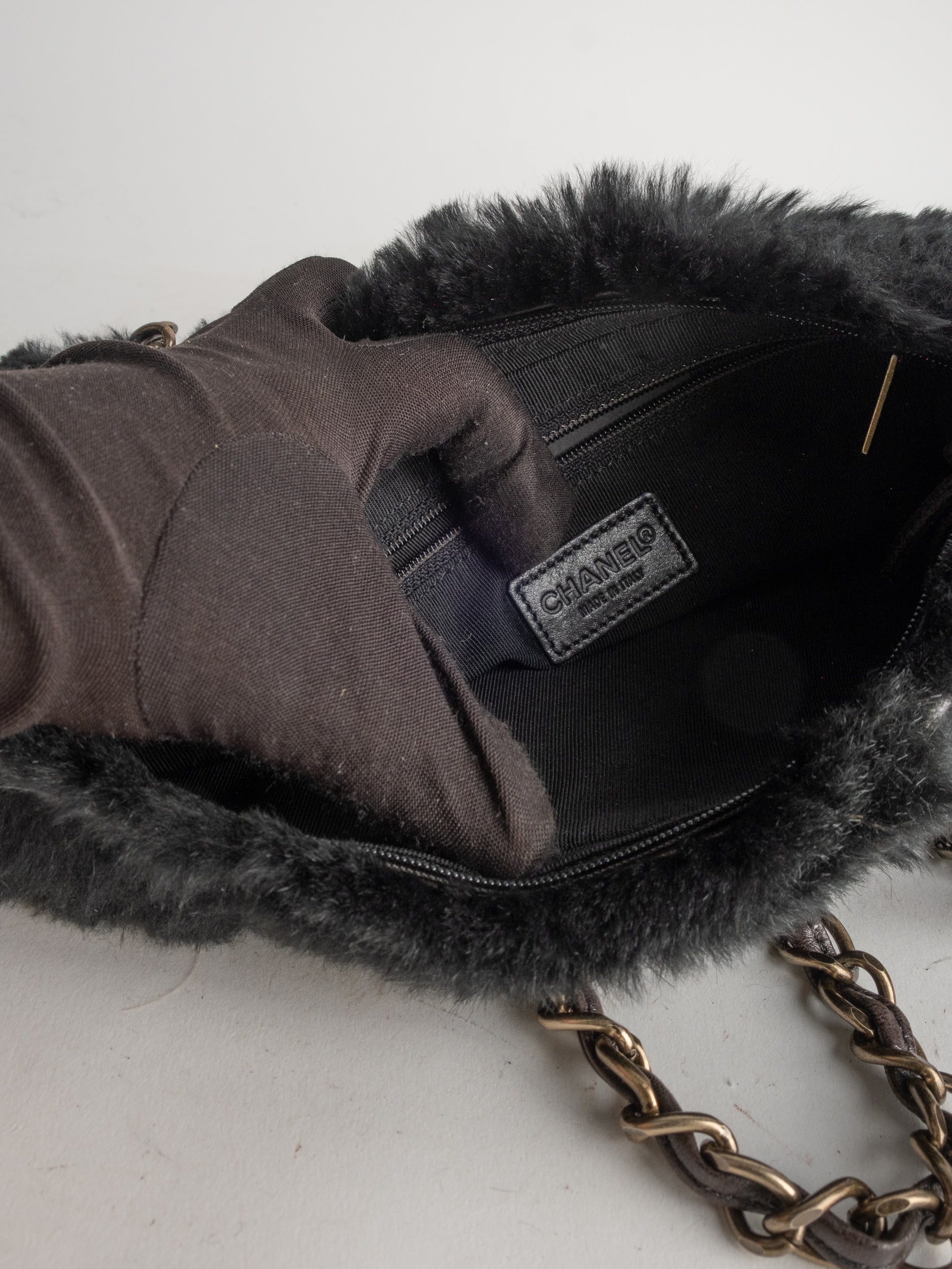 CHANEL Vintage Fur Shoulder Bag Karl Lagerfeld Era