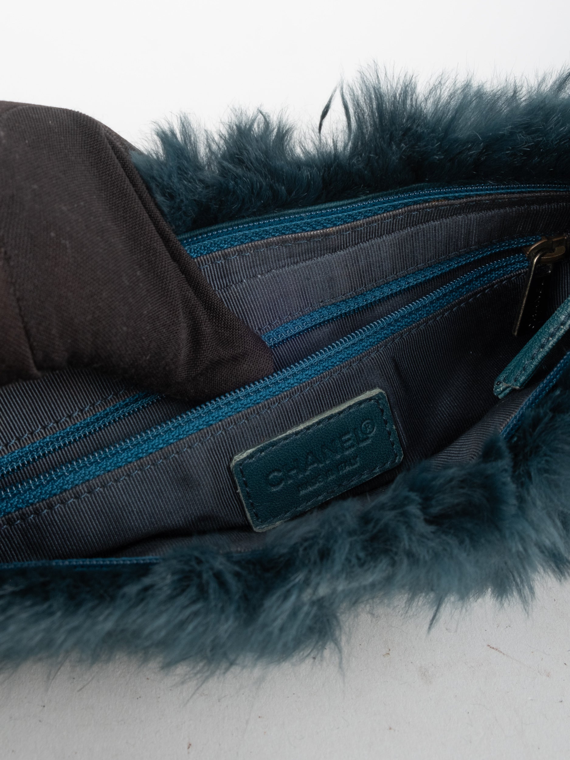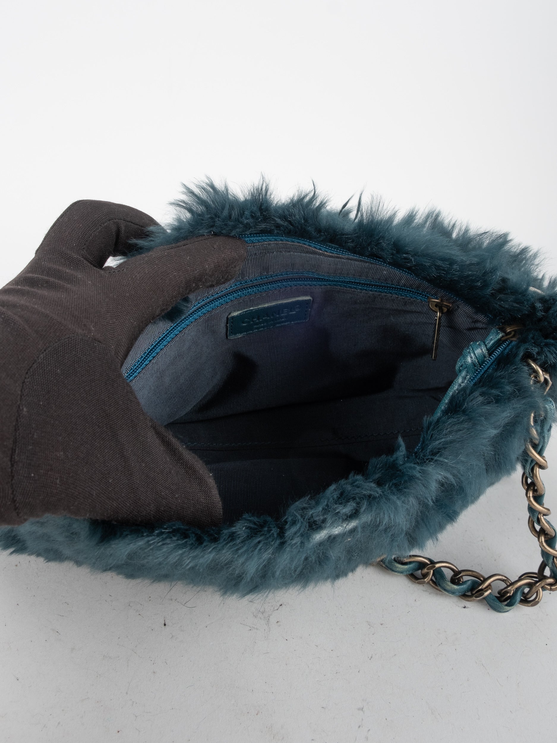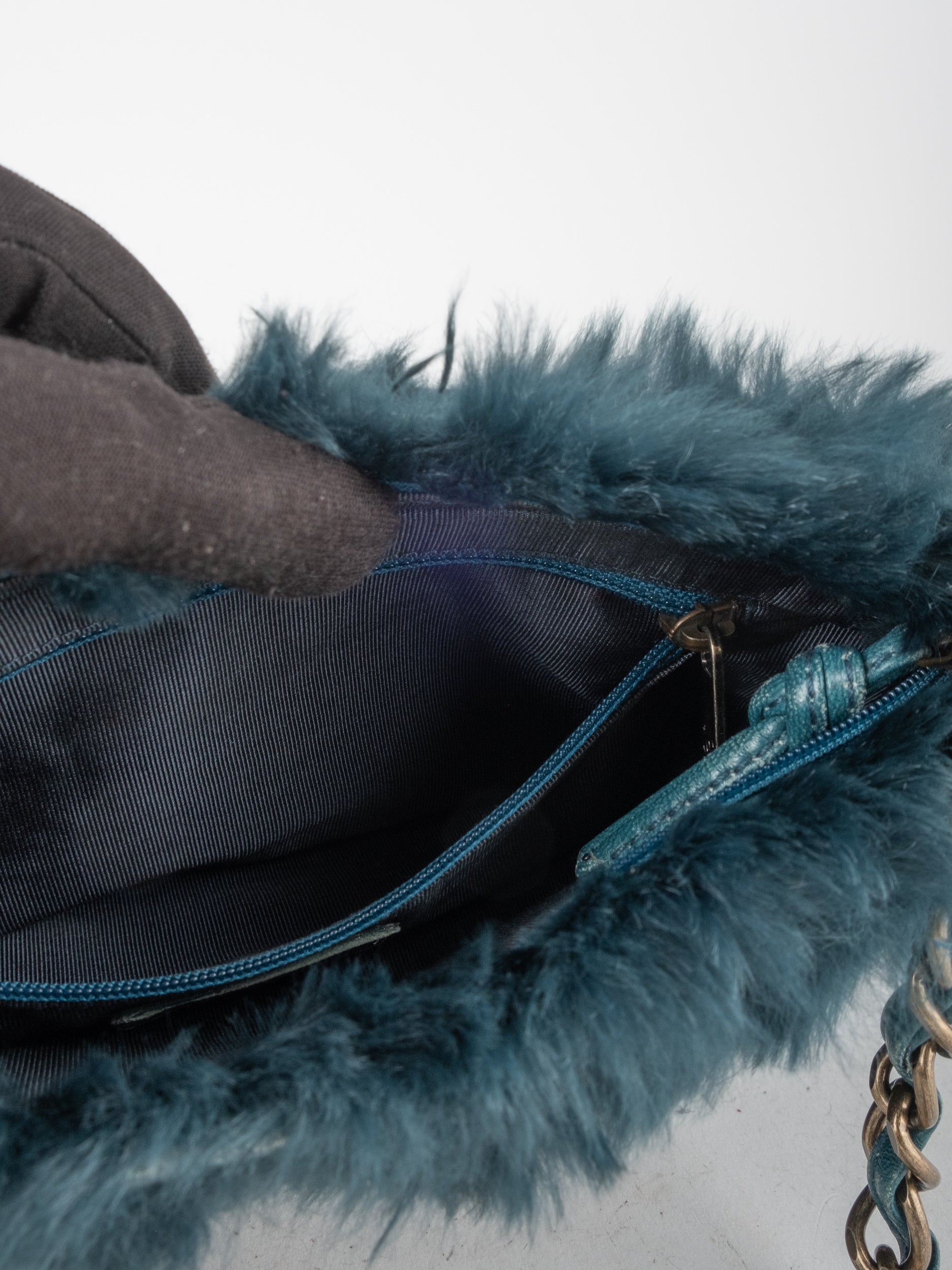 CHANEL Vintage Fur Shoulder Bag Karl Lagerfeld Era Black