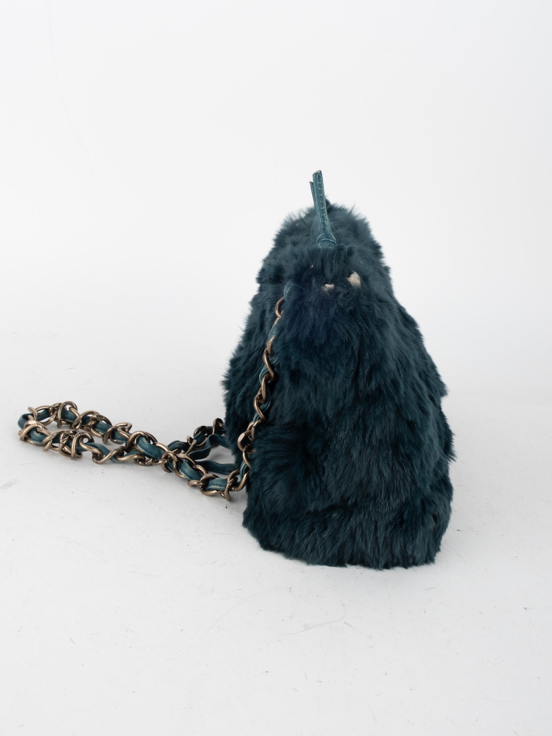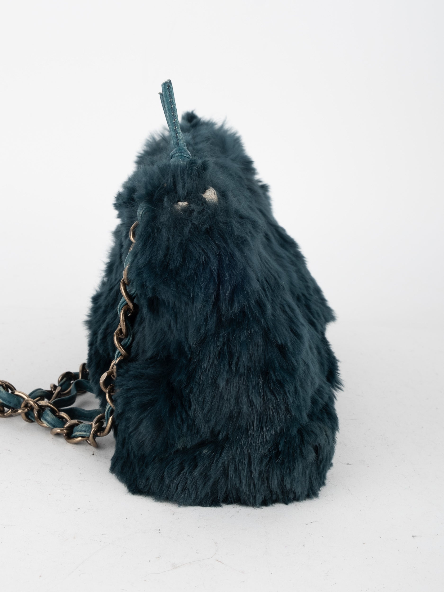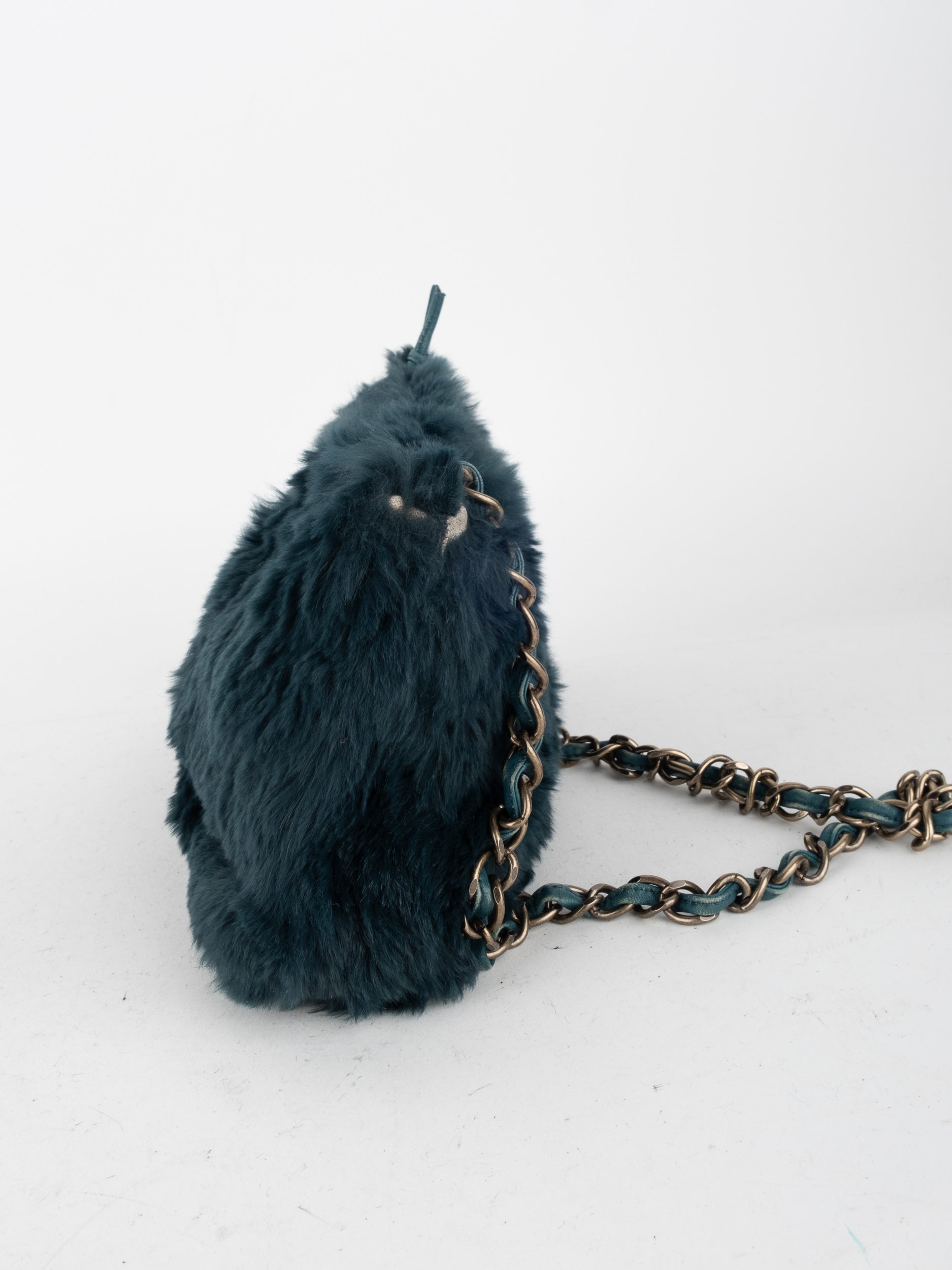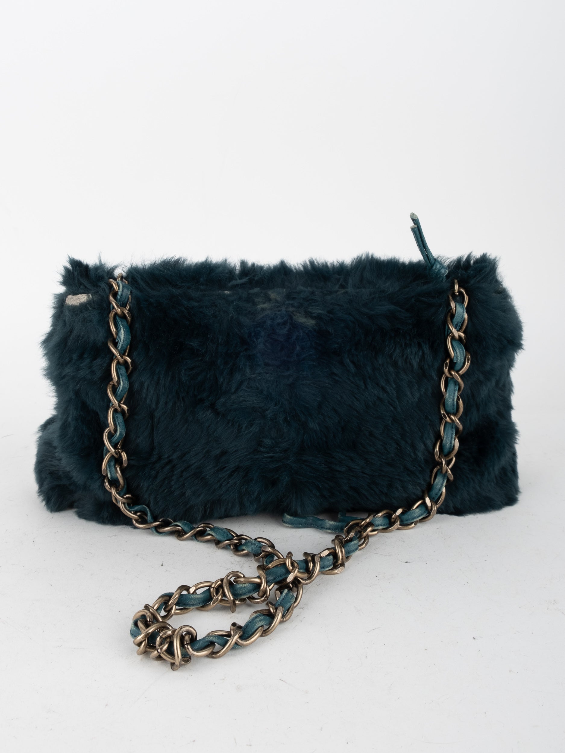 CHANEL Vintage Fur Shoulder Bag Karl Lagerfeld Era Black