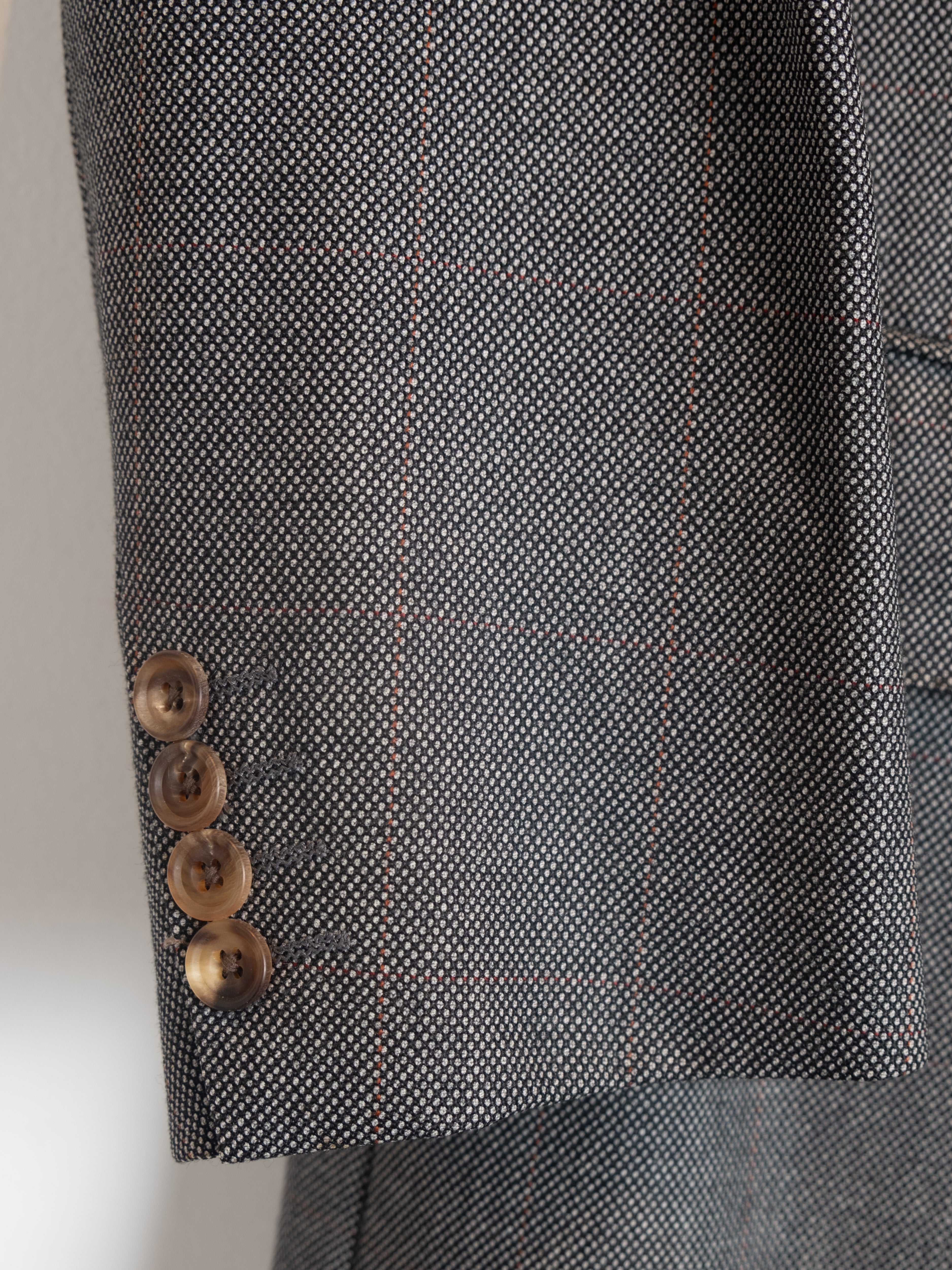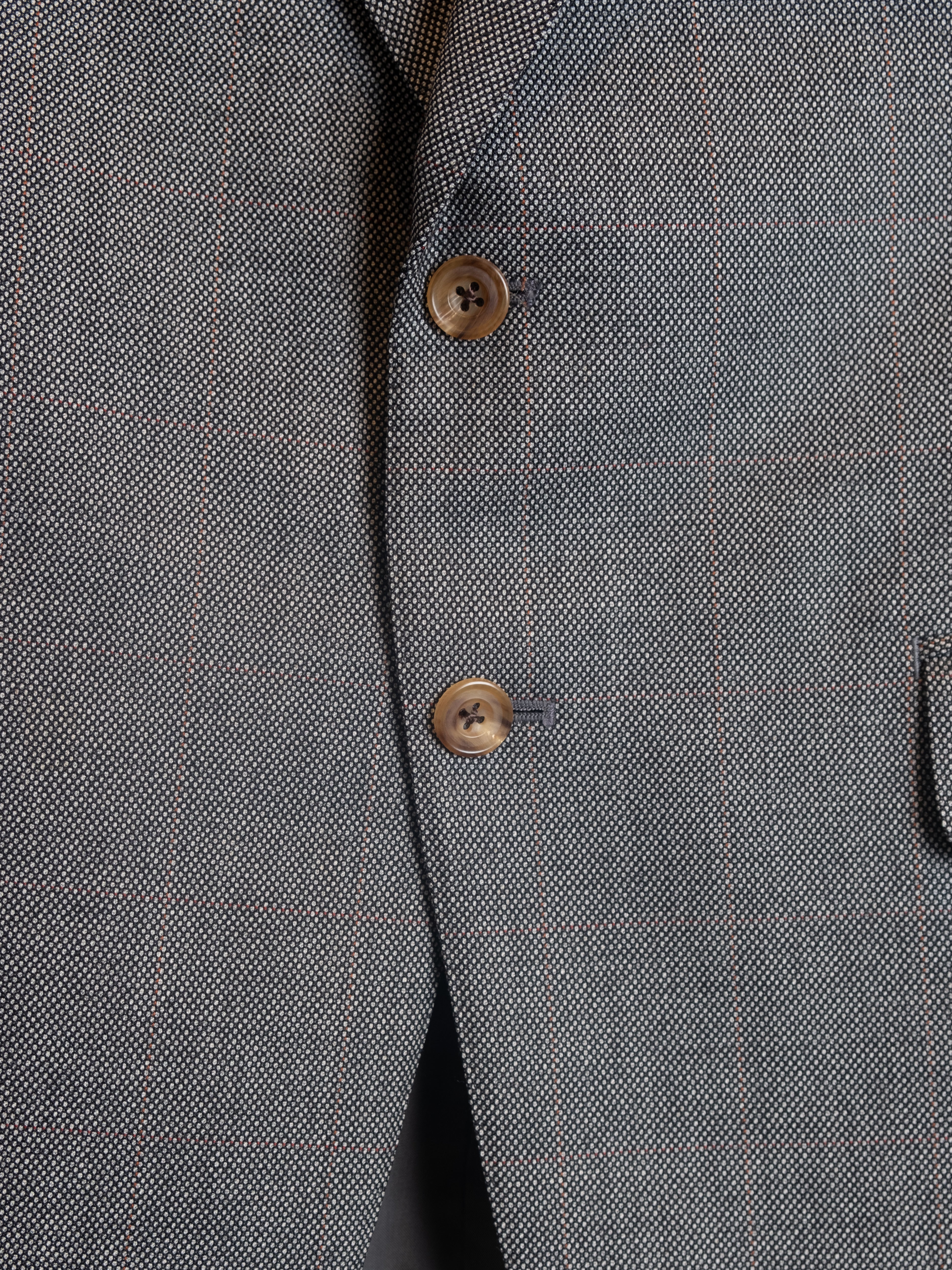 הג׳קט עשוי בד איכותי במרקם עדין, עם בטנה פנימית חלקה. גזרה מחויטת עם דש קלאסי, סגירת כפתורים קדמית, כיסים קדמיים ושרוולים עם כפתורי סיומת. מבנה הג׳קט מעניק מראה מוקפד אך נוח ללבישה.