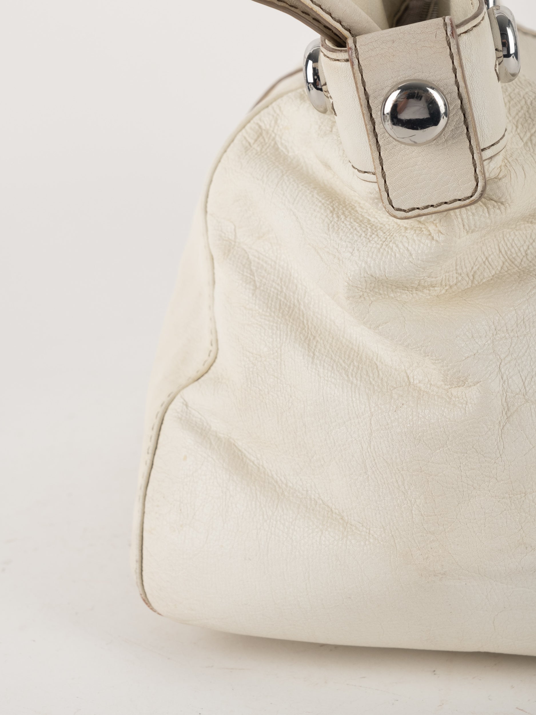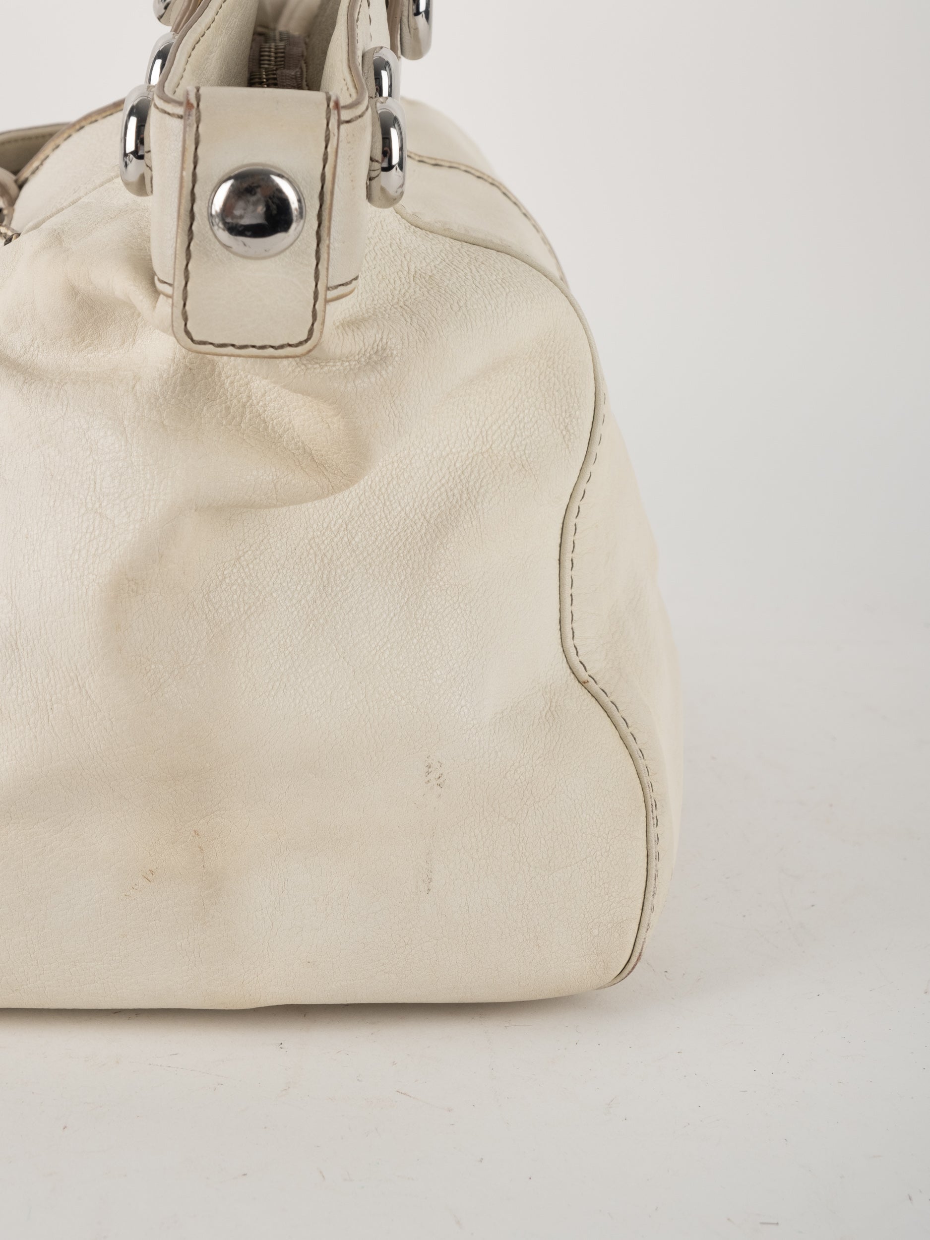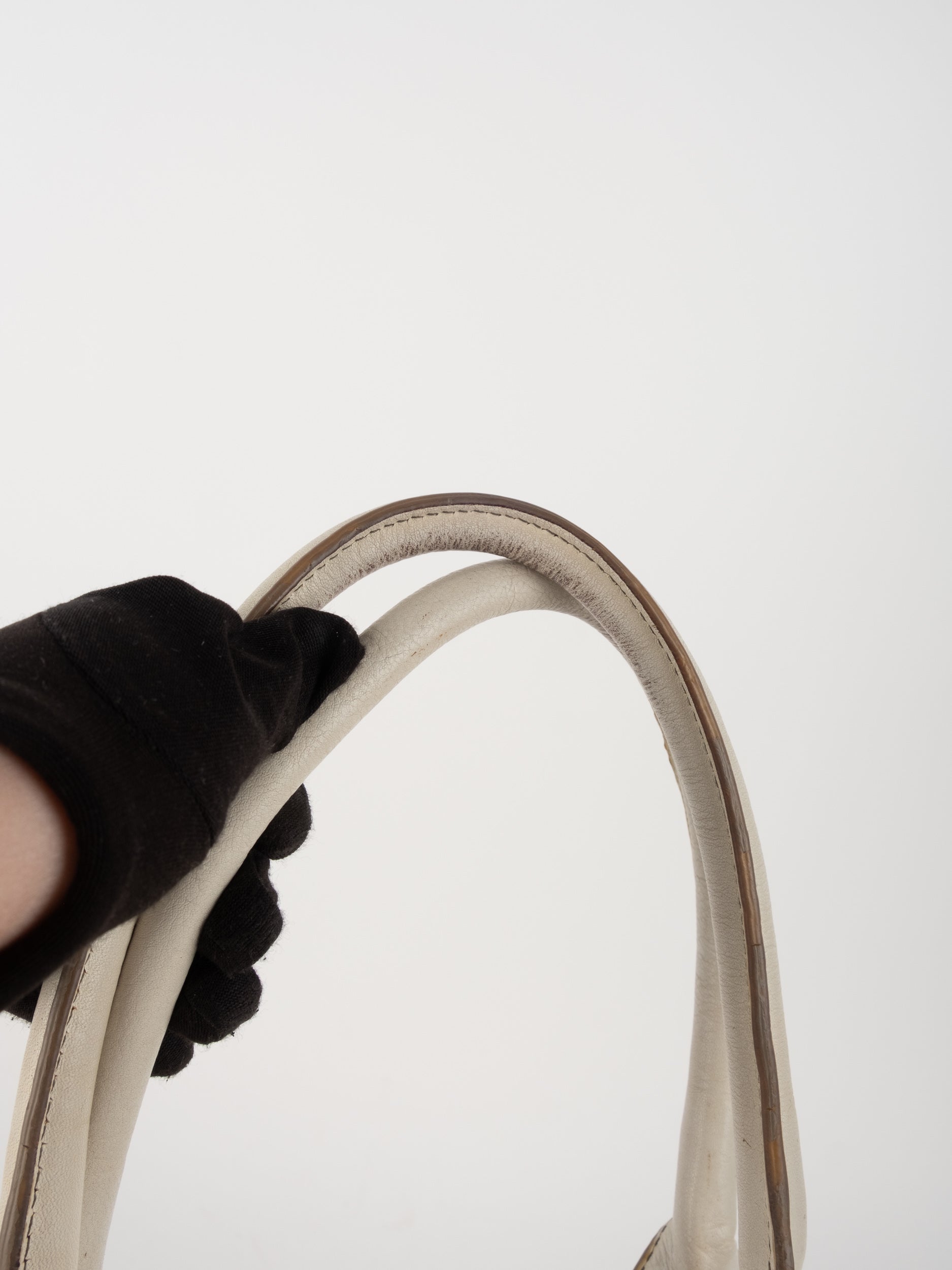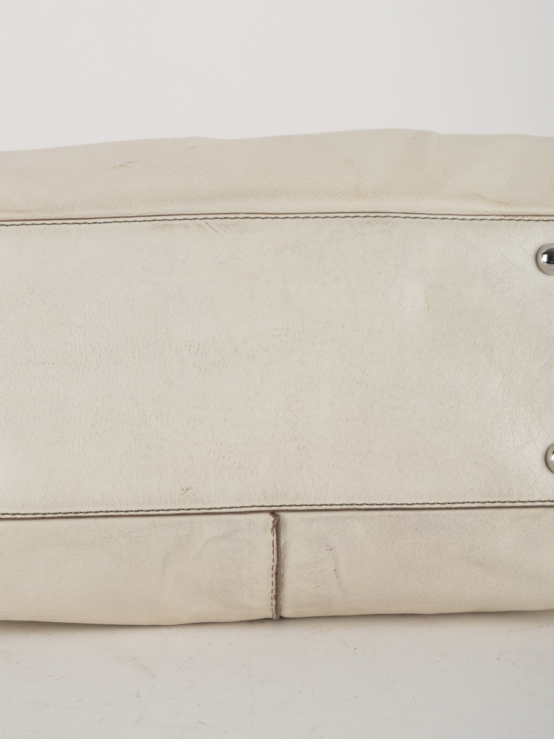 תיק של המותג Banana Republic בננה ריפבליק – וינטג' יד שנייה, בעיצוב אלגנטי בגוון קרם בהיר עם פרטי מתכת בגוון כהה. מדובר בתיק כתף נשי ומוקפד המשלב בין מראה קלאסי לבין קווים מודרניים, ומתאים לשימוש יומיומי לצד הופעות אלגנטיות יותר.