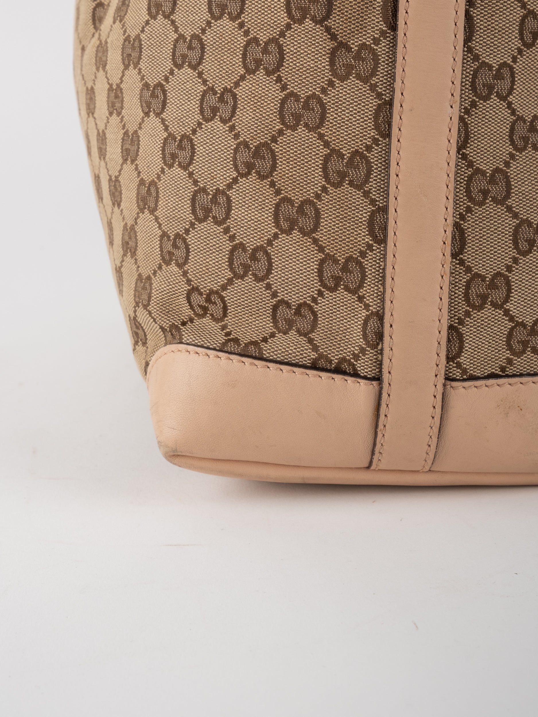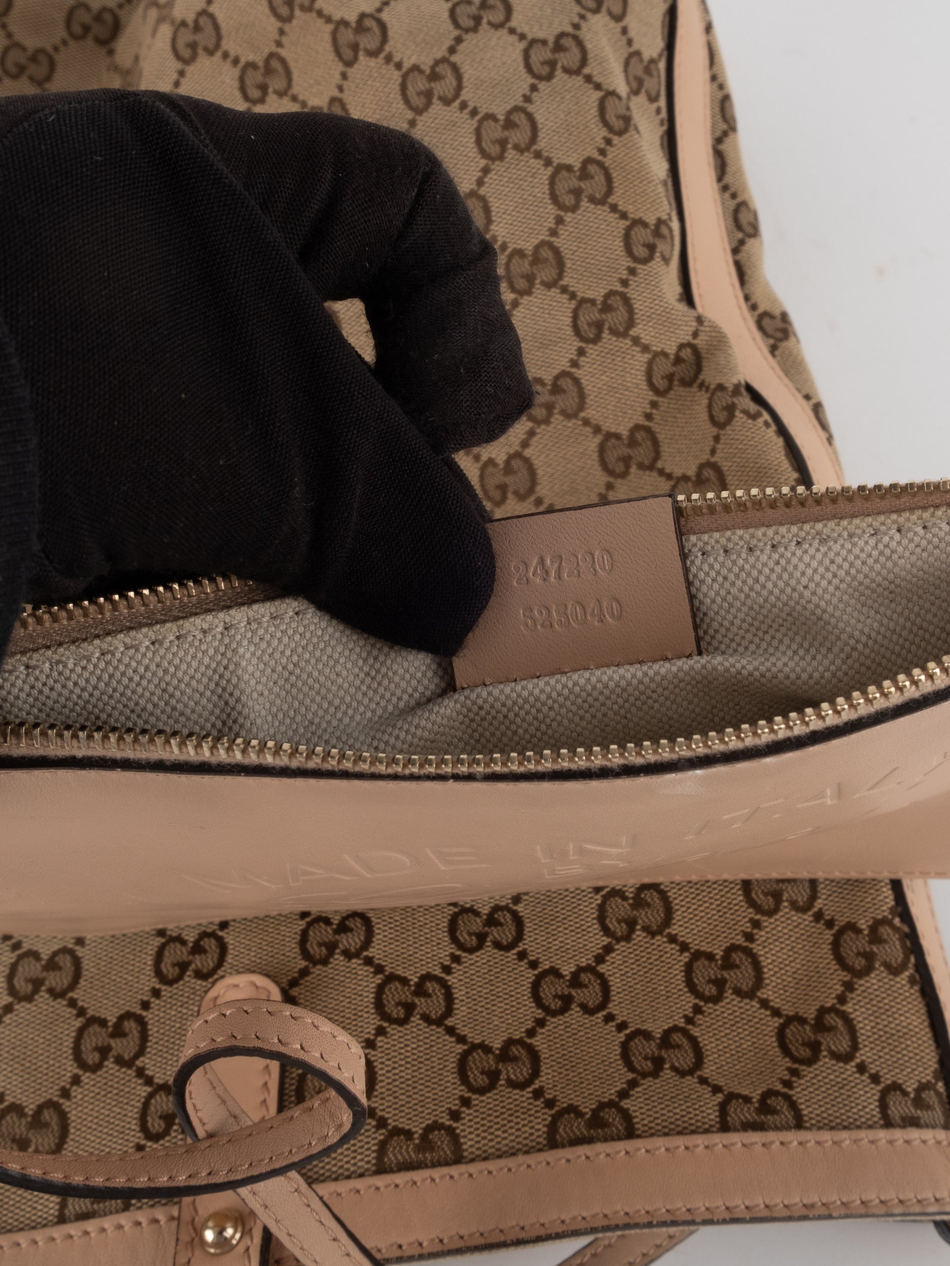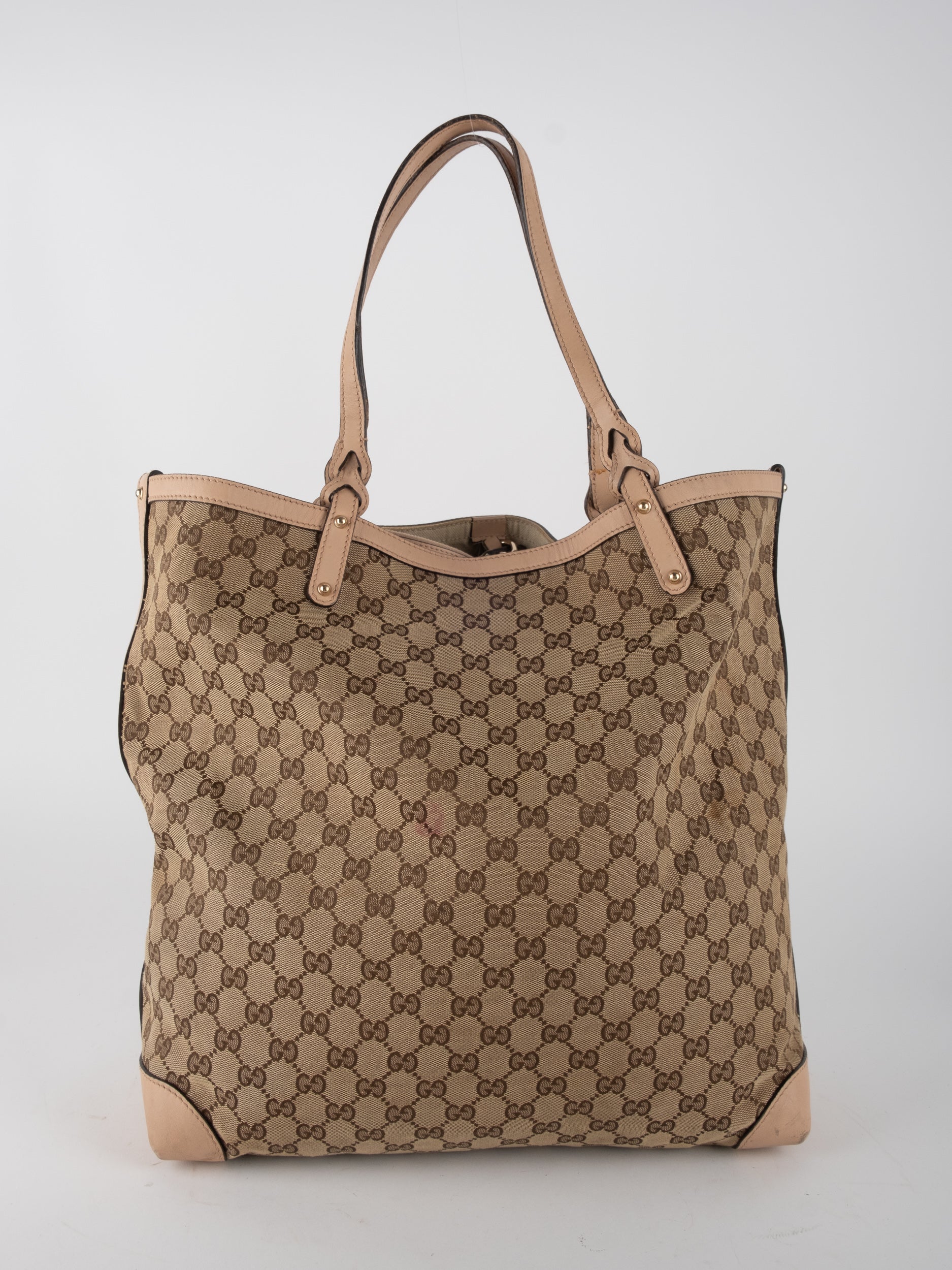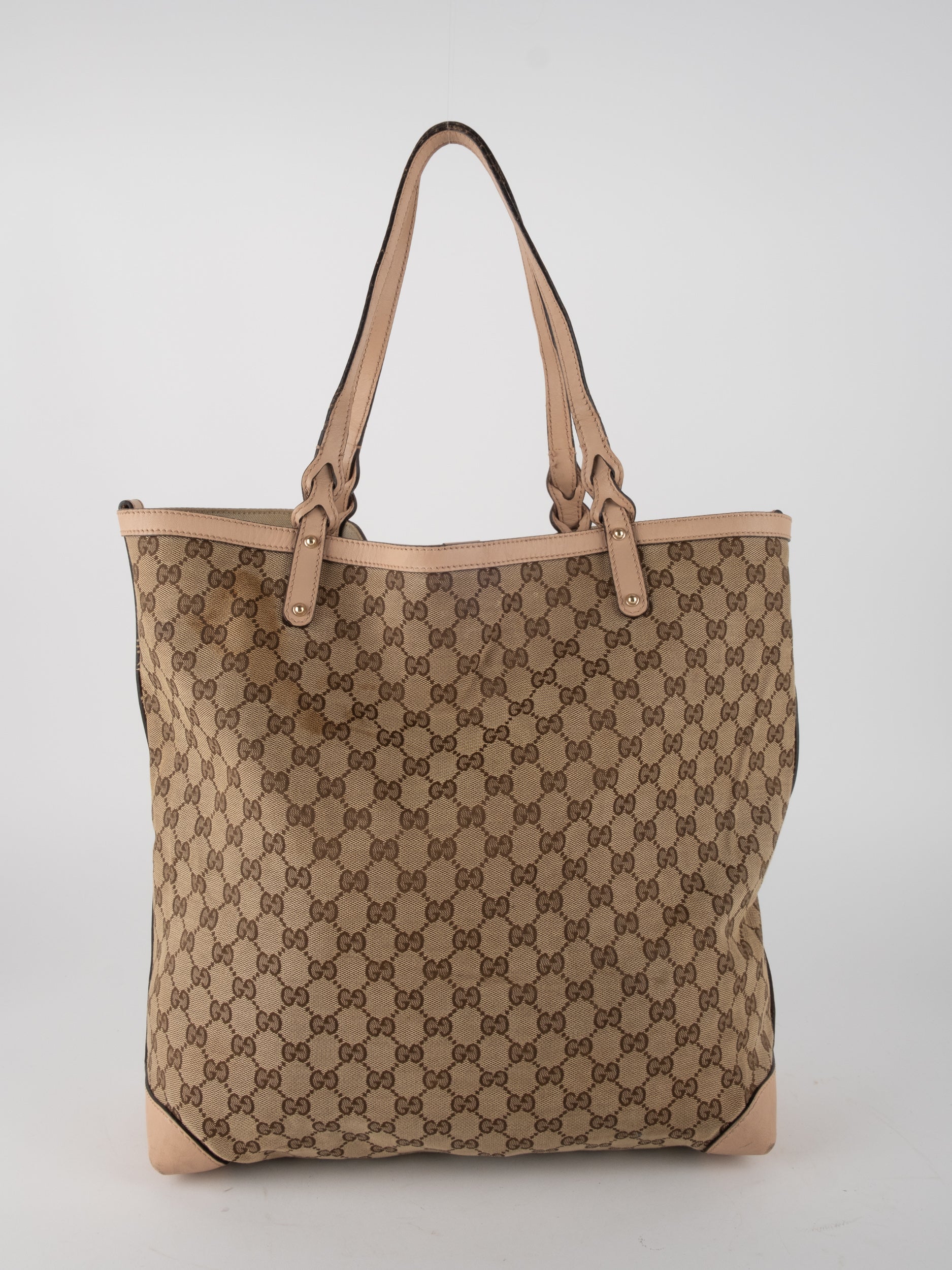 התיק עשוי קנבס בדוגמת GG בגווני בז’ וחום, עם ידיות כתף מעור בגוון ניוד בהיר וסגירה עליונה. מגיע עם נרתיק תואם נשלף שניתן לשימוש כקלאץ’ או לארגון פנימי. מבנה רך ומרווח במיוחד, אידיאלי לעבודה, יום עמוס או נסיעה קצרה.