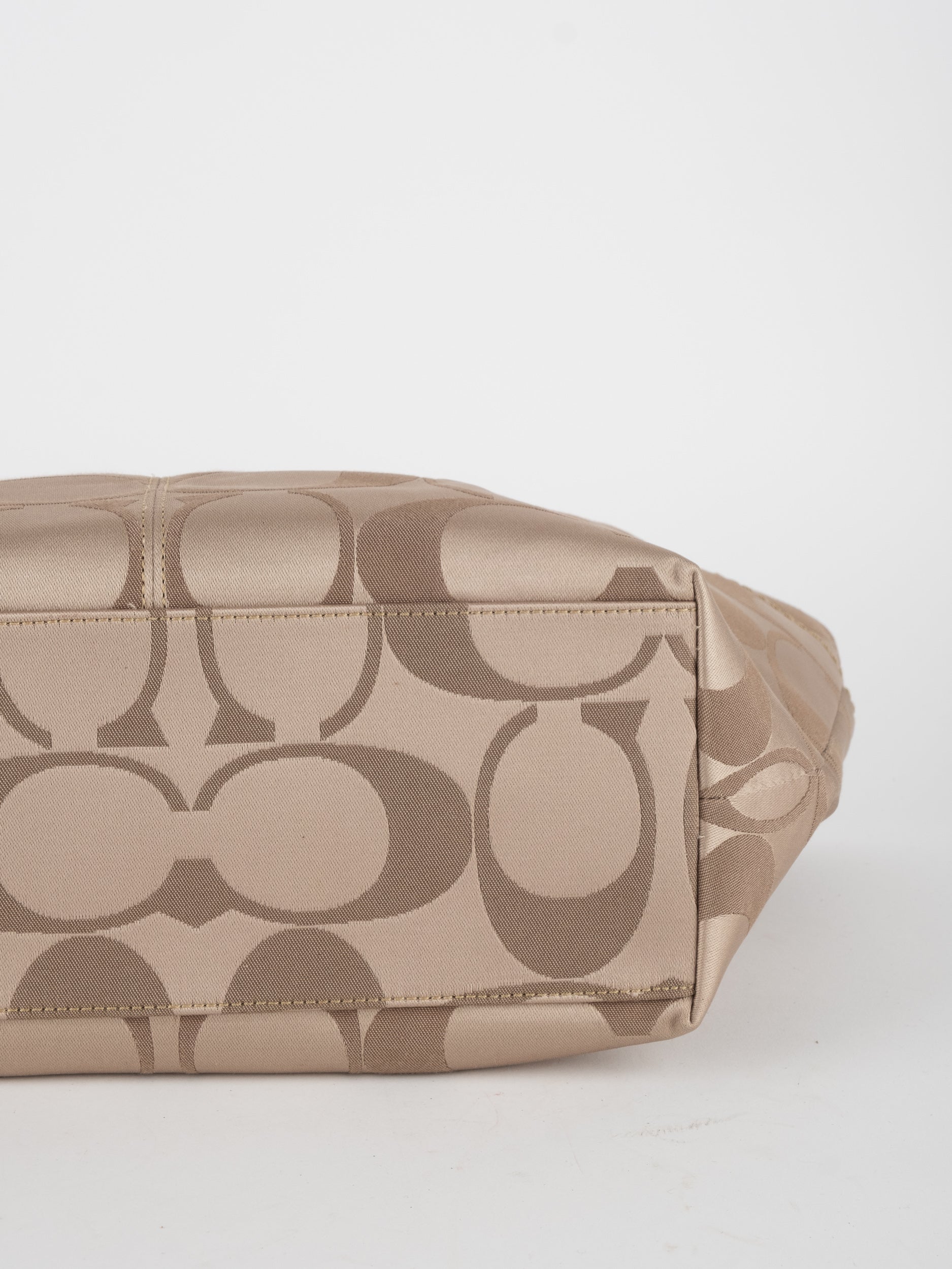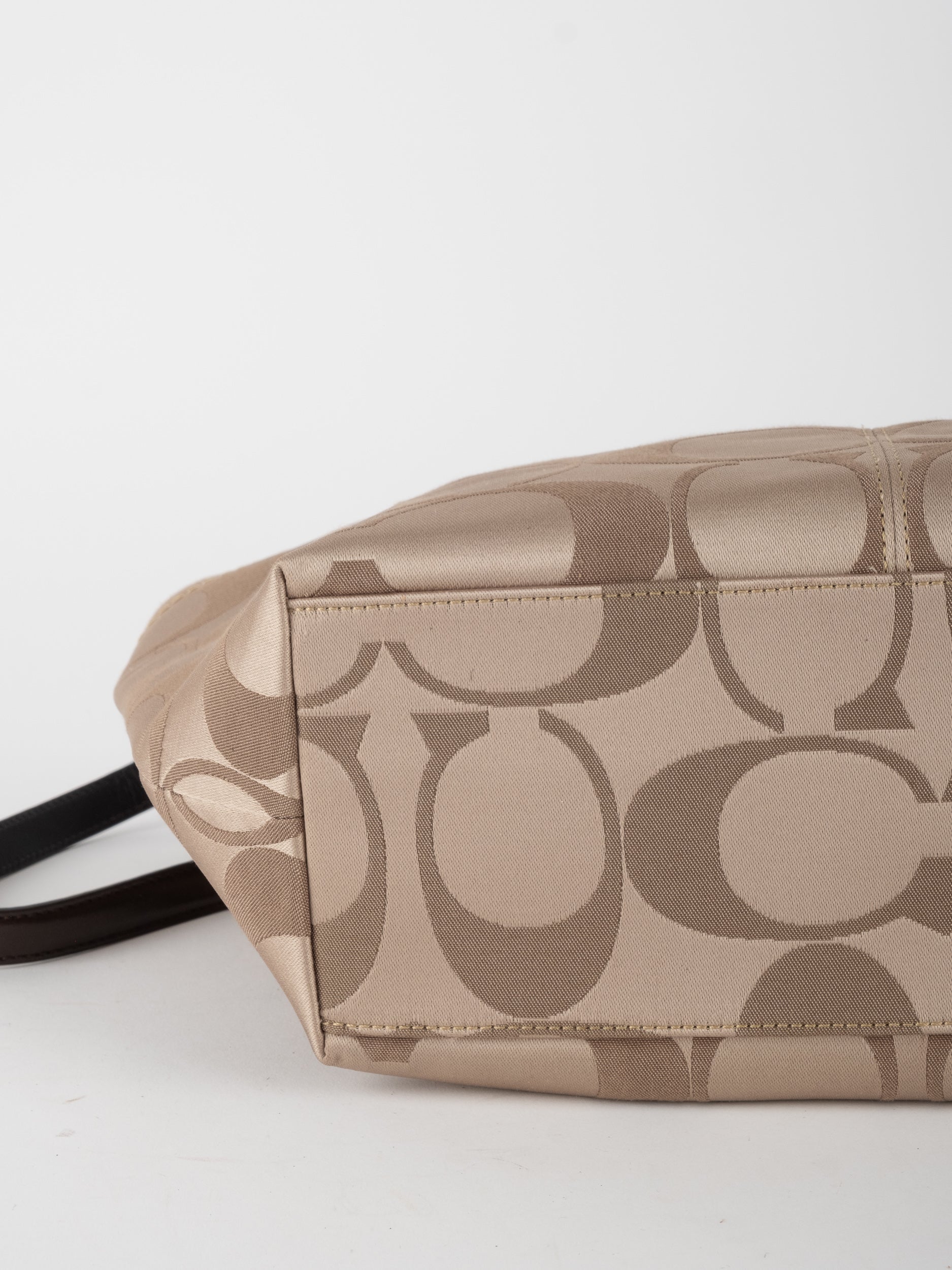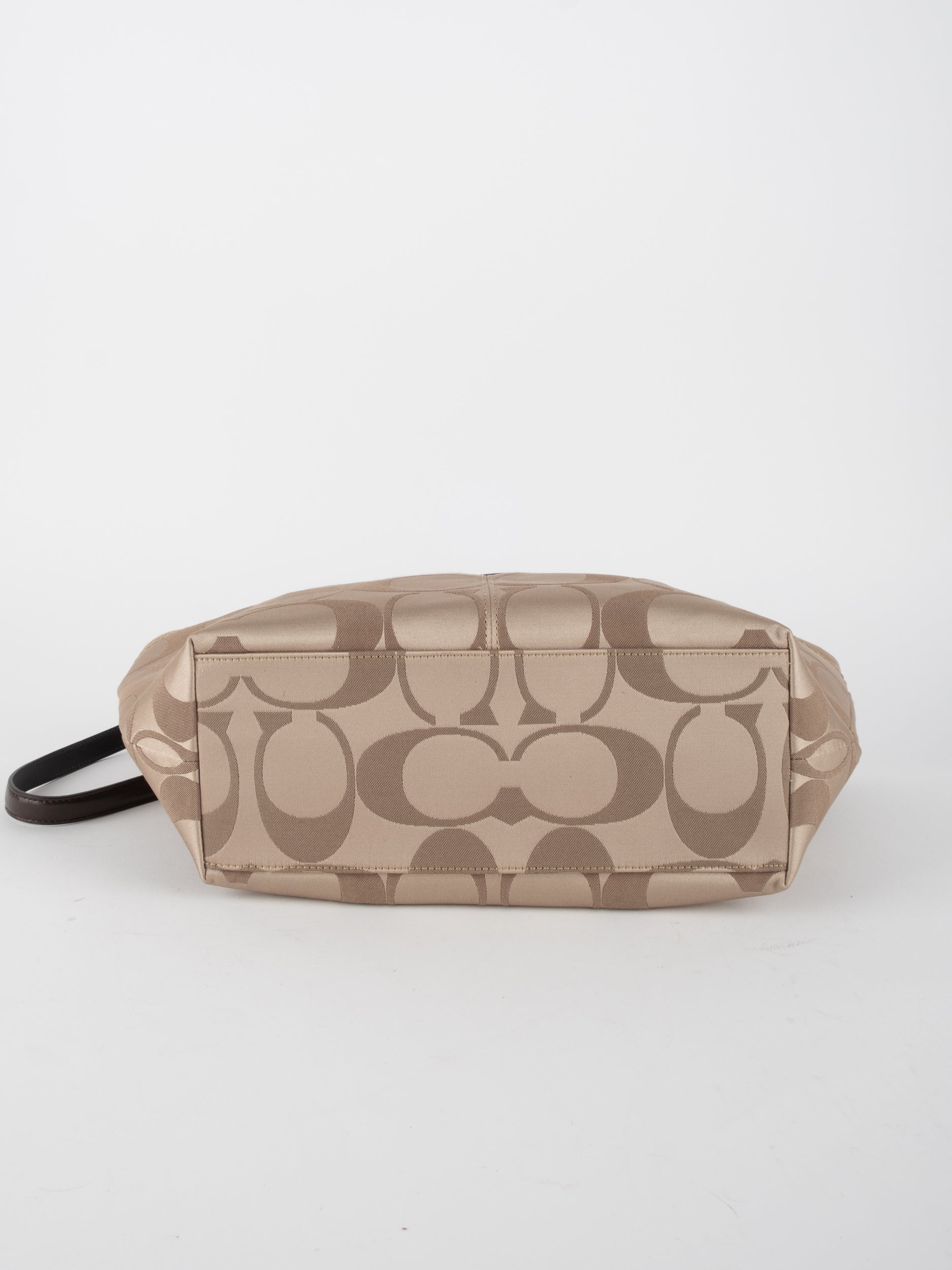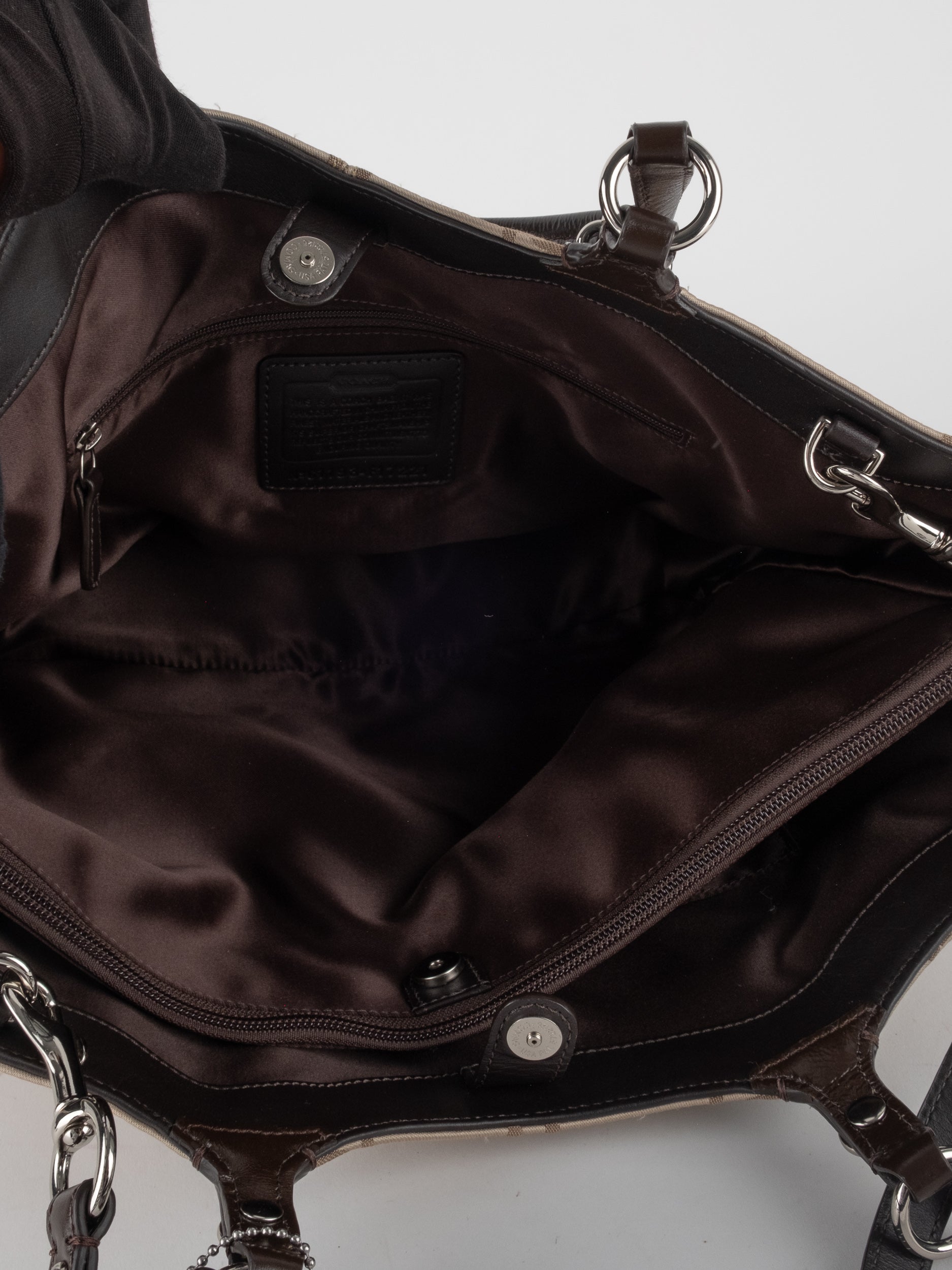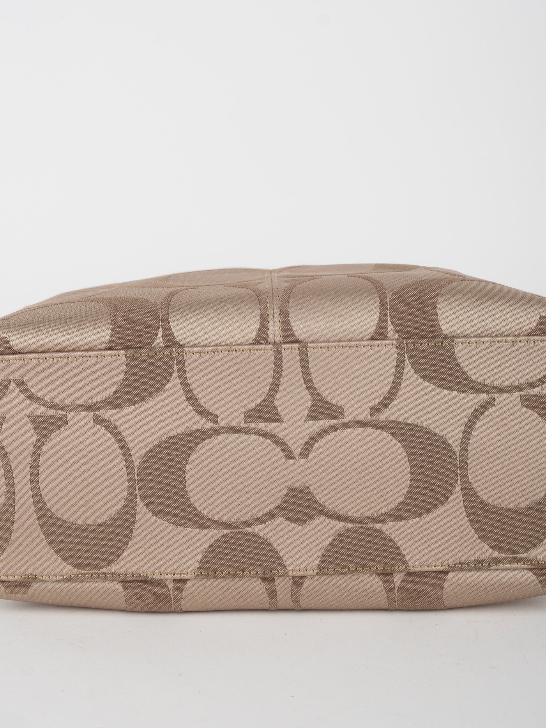 View Similar Productsקואץ' COACH וינטג' יד שנייה בדוגמת Signature בגווני בז’ וחום כהה, בעיצוב נשי ורך עם ידית קצרה ורצועת כתף ארוכה מתכווננת. תיק אלגנטי אך יומיומי, כזה שמרגיש קליל ונוח אבל עדיין מוקפד.